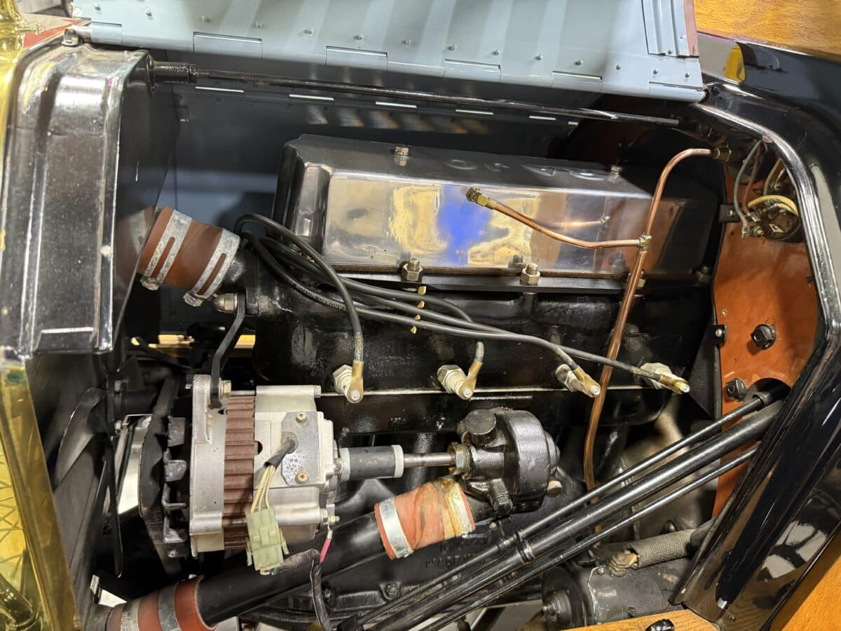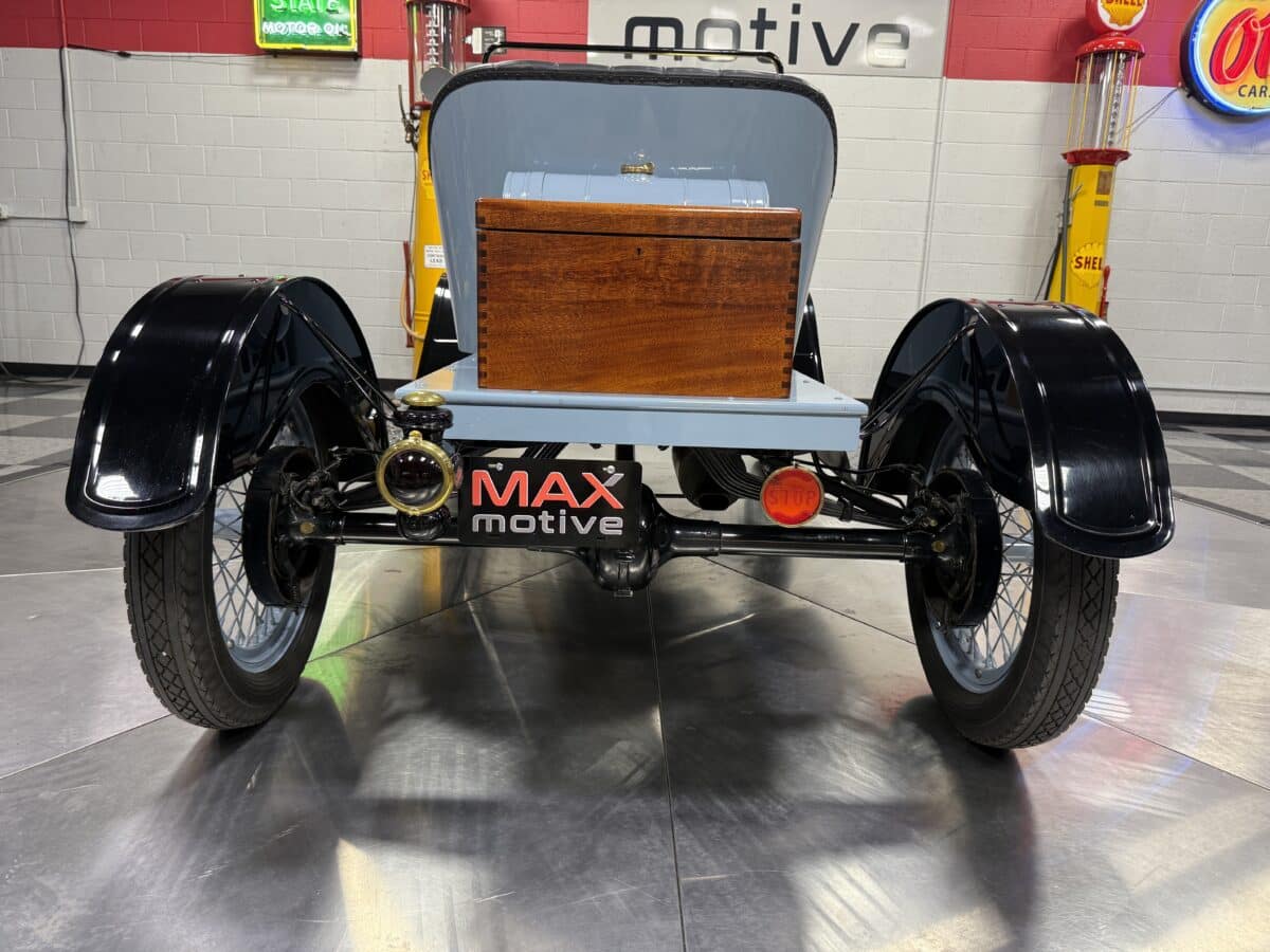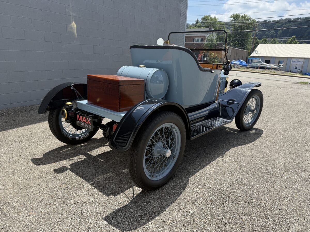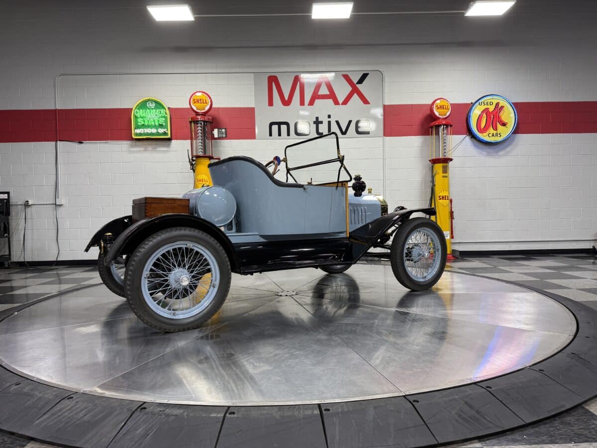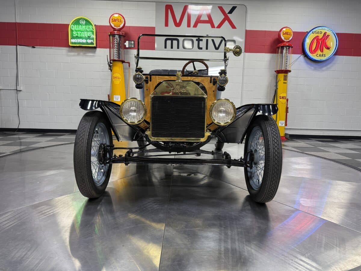 Maxmotive is proud to offer this incredible time capsule, a 1915 Ford Model T Speedster. This Model T went through a comprehensive restoration. It is a modified Torpedo Runabout fitted with speedster bodywork. Under the hood, you will find an inline 177CI Flathead 4 cylinder engine, paired to a two speed manual Epicyclic manual transmission. The engine has received a Rajo overhead valve conversion. The Model T has been updated with a 12 volt system, Bosch magneto, and a modern alternator as well. There is an onboard starter, oil pressure gauge, electric horn as well. The interior bench seat shows beautifully, and the wood trim and floors show nicely. The brass on the Model T is in great shape, and the Ford logos are still clearly shown as you can see from the photographs. For more pictures and info please check our website www.maxmotive.com