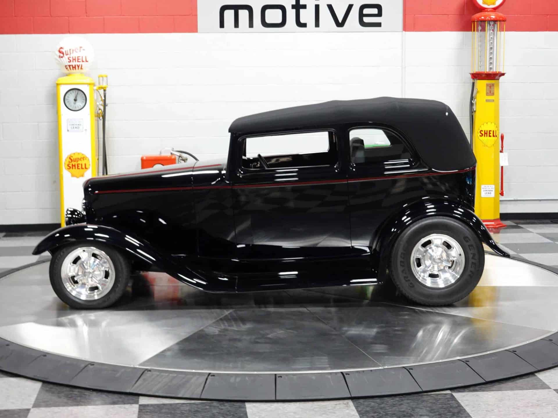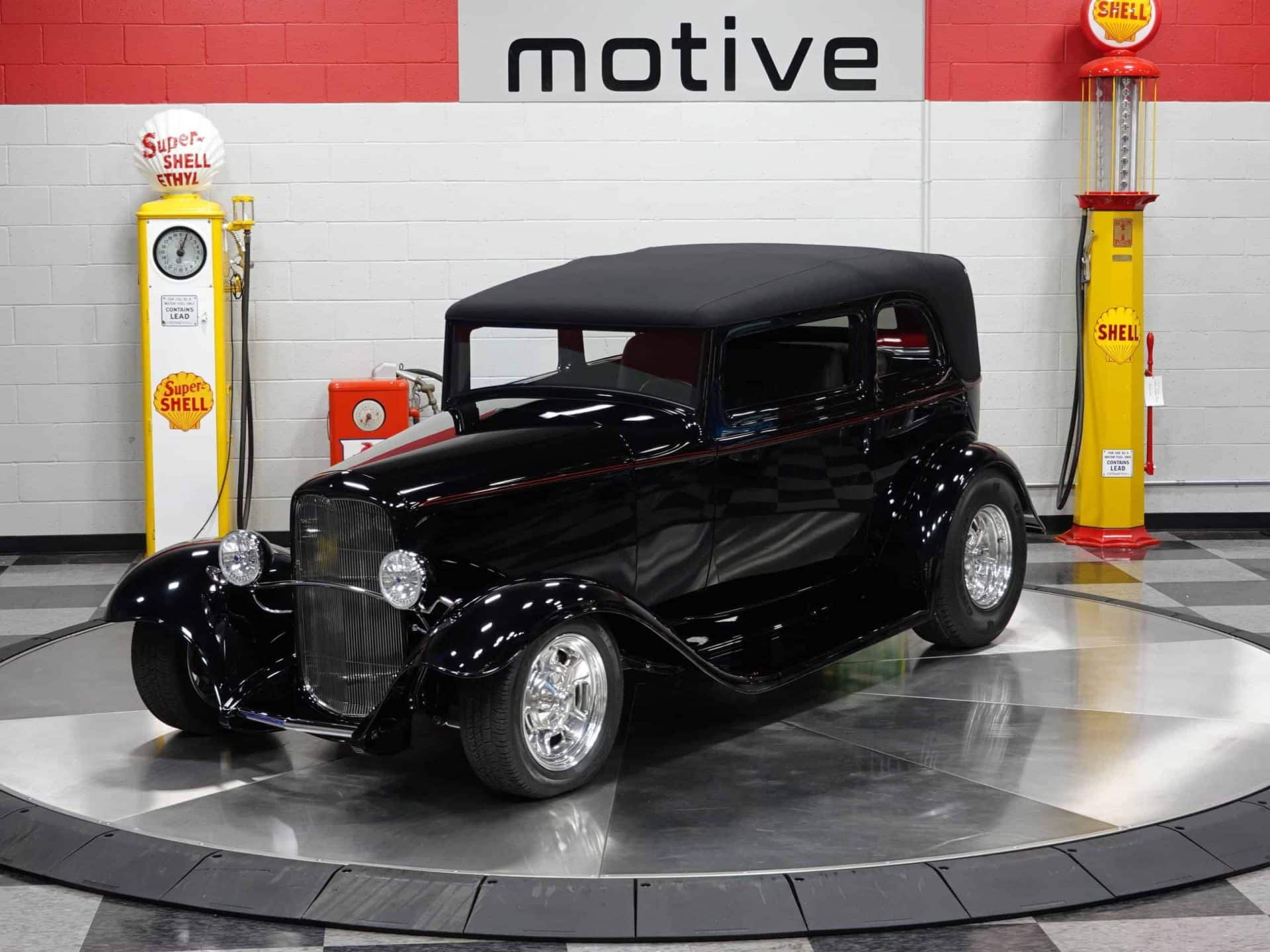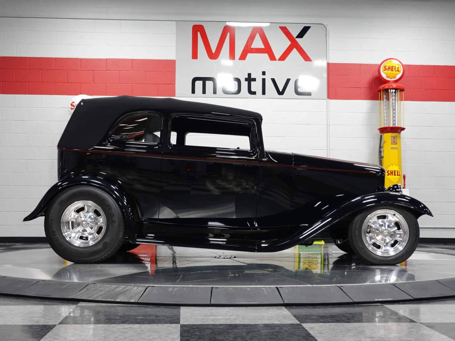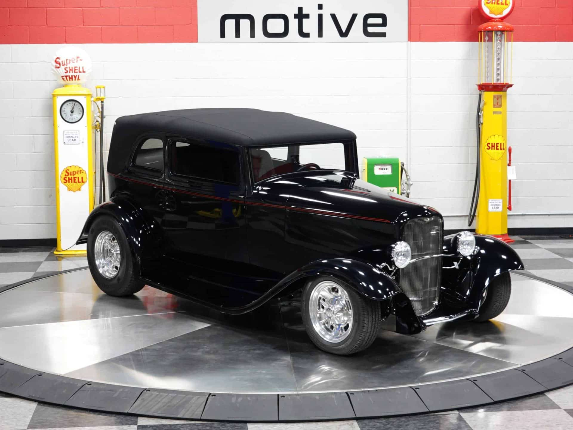 “This was one of the last cars Boyd had his mind and hands on before his passing. And just like all his projects, this ‘32 utilizes only the best products, and greatest depth of skill available.” – Roger C. Johnson. This is the car that became known as “The Master’s Last Hod Rod” after the untimely passing of master builder Boyd Coddington. Boyd was indeed a master, building cars for star personalities and launching the careers of the likes of Chip Foose, Jesse James, and Larry Erickson, Chief Designer of the Mustang and Thunderbird at Ford Motor Company. You would expect the product of Boyd’s many successful years of design and building experience to be something special – and it is. Boyd personally took the car to 90% complete status. Then, as a tribute to the legend, some of the greatest names in the custom car industry brought it to completion. The body was recreated by Coddington’s Shop of Wonders with help from Marcel’s Custom Metal Shaping, creating a longer hood and side panels, and matching stretched fenders. The finish is a simple but effective application of rich black exterior paint by Bernet Carlsen. The crowning touch is the one-of-a-kind steel lift-off top. Ample power is supplied by none other than Roush Racing – a 358 cubic inch fuel injected Ford small block with a complete roller valvetrain and custom fabbed headers. The exhaust exits in a marvelously executed single outlet that fits ingeniously beneath the chromed independent rear suspension. Ron Mangus worked his magic on the interior, which presents the luxurious high-end feel of the world’s greatest automobiles. Black high-grade leather covers the power bucket seats, and the look, feel, and that wonderful aroma confirm that only the very best made it into this build. Wool carpeting, deep, dark wood trim, and custom gauges highlight a truly decadent cabin. Superior engineering was always a Boyd trademark, and this build is a showcase. The car has fully independent suspension with coil overs at all four corners. Also all the way around are power disc brakes. Driver control is also aided by power rack & pinion steering. The closer and longer you look, the more amazing details you discover – as it is with any true masterpiece. The essence of Boyd Coddington permeates this one-of-a-kind creation. It’s a magnum opus of a beloved and respected leader, innovator, teacher, and craftsman whose work has been carefully preserved here. The odometer currently shows less than one mile. A 1932 Ford B400 Custom Convertible, verified in the Official Boyd Coddington American Registry with a Certificate of Authenticity.