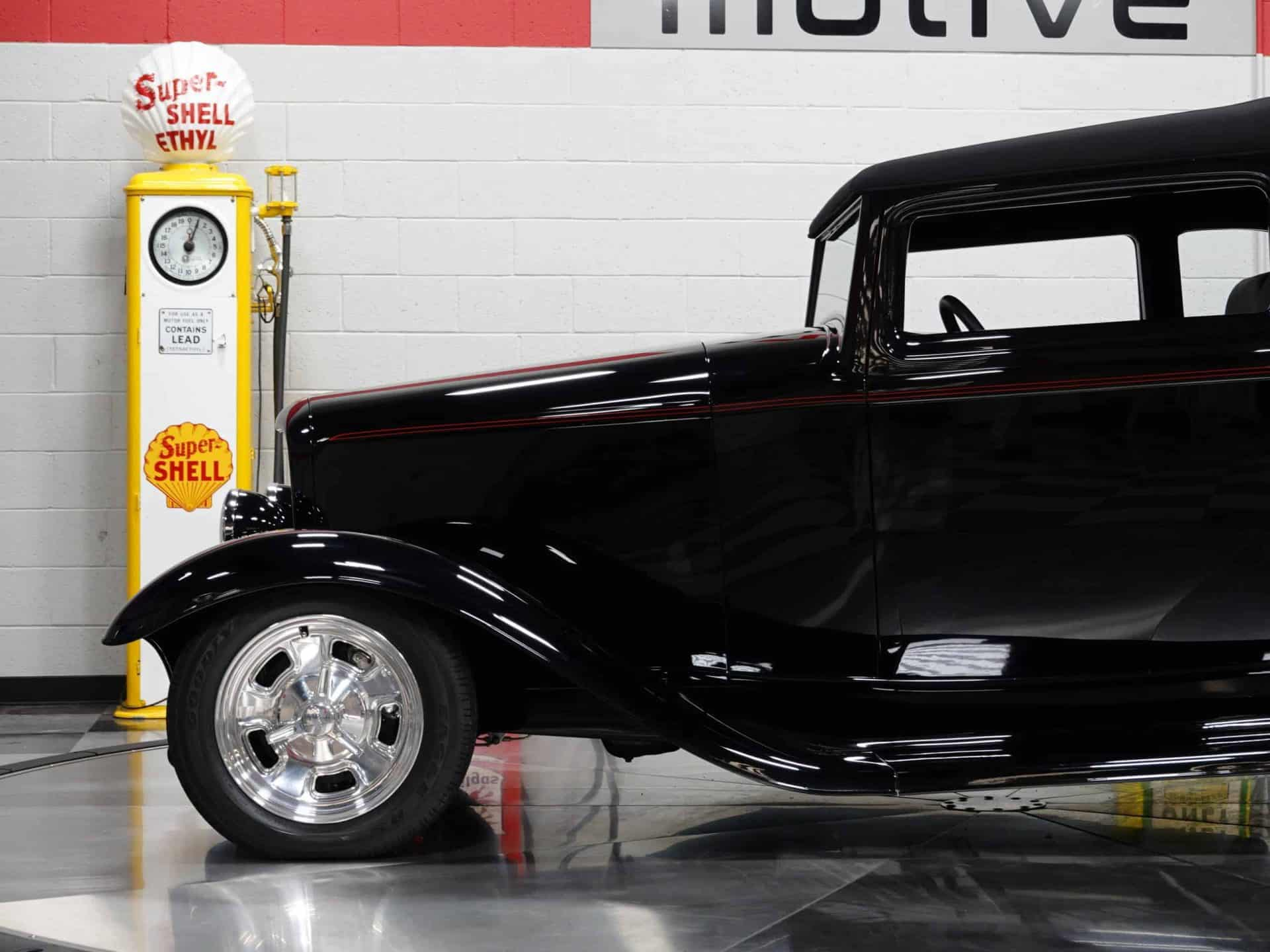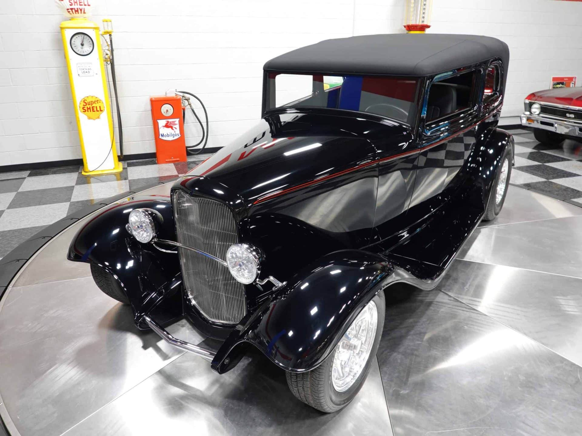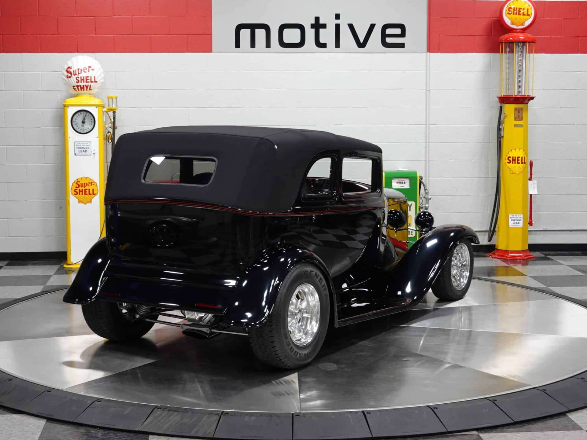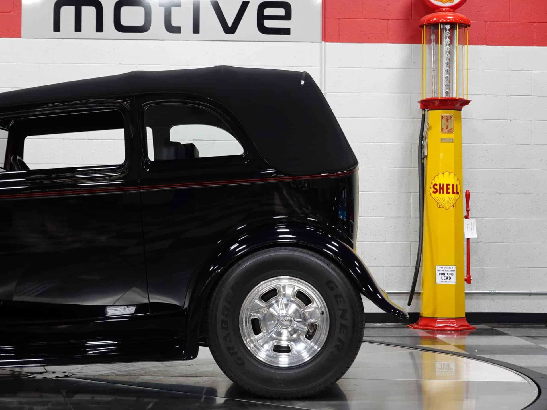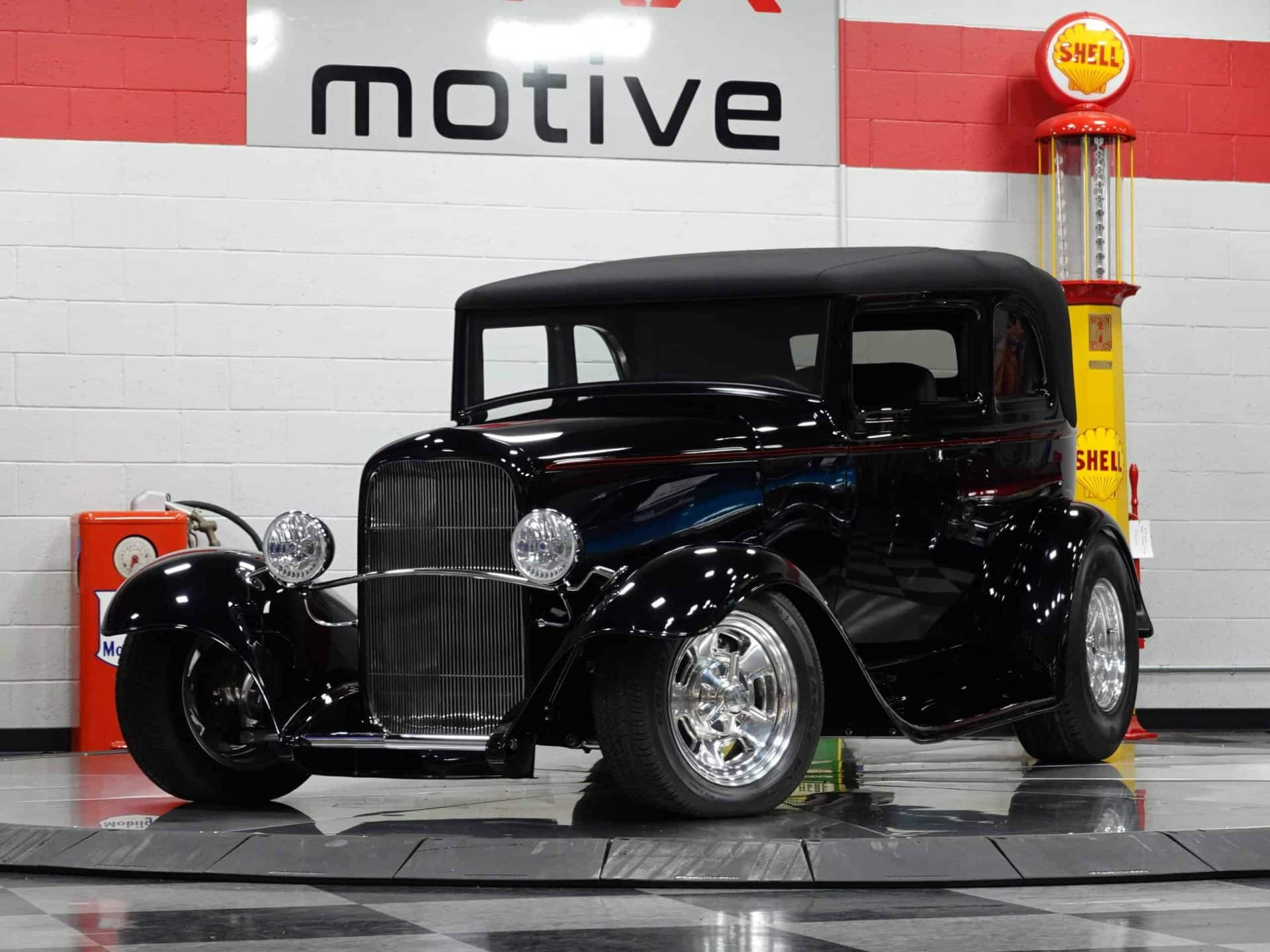 “This was one of the last cars Boyd had his mind and hands on before his passing. And just like all his projects, this ‘32 utilizes only the best products, and greatest depth of skill available.” – Roger C. Johnson. This is the car that became known as “The Master’s Last Hod Rod” after the untimely passing of master builder Boyd Coddington. Boyd was indeed a master, building cars for star personalities and launching the careers of the likes of Chip Foose, Jesse James, and Larry Erickson, Chief Designer of the Mustang and Thunderbird at Ford Motor Company. You would expect the product of Boyd’s many successful years of design and building experience to be something special – and it is. Boyd personally took the car to 90% complete status. Then, as a tribute to the legend, some of the greatest names in the custom car industry brought it to completion. The body was recreated by Coddington’s Shop of Wonders with help from Marcel’s Custom Metal Shaping, creating a longer hood and side panels, and matching stretched fenders. The finish is a simple but effective application of rich black exterior paint by Bernet Carlsen. The crowning touch is the one-of-a-kind steel lift-off top. Ample power is supplied by none other than Roush Racing – a 358 cubic inch fuel injected Ford small block with a complete roller valvetrain and custom fabbed headers. The exhaust exits in a marvelously executed single outlet that fits ingeniously beneath the chromed independent rear suspension. Ron Mangus worked his magic on the interior, which presents the luxurious high-end feel of the world’s greatest automobiles. Black high-grade leather covers the power bucket seats, and the look, feel, and that wonderful aroma confirm that only the very best made it into this build. Wool carpeting, deep, dark wood trim, and custom gauges highlight a truly decadent cabin. Superior engineering was always a Boyd trademark, and this build is a showcase. The car has fully independent suspension with coil overs at all four corners. Also all the way around are power disc brakes. Driver control is also aided by power rack & pinion steering. The closer and longer you look, the more amazing details you discover – as it is with any true masterpiece. The essence of Boyd Coddington permeates this one-of-a-kind creation. It’s a magnum opus of a beloved and respected leader, innovator, teacher, and craftsman whose work has been carefully preserved here. The odometer currently shows less than one mile. A 1932 Ford B400 Custom Convertible, verified in the Official Boyd Coddington American Registry with a Certificate of Authenticity.
