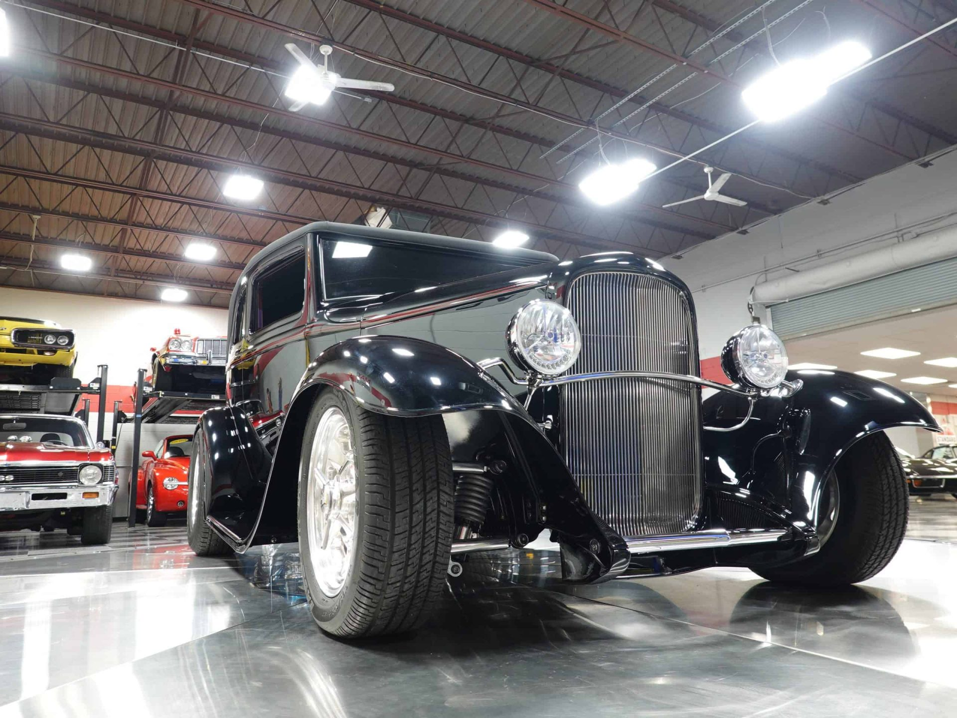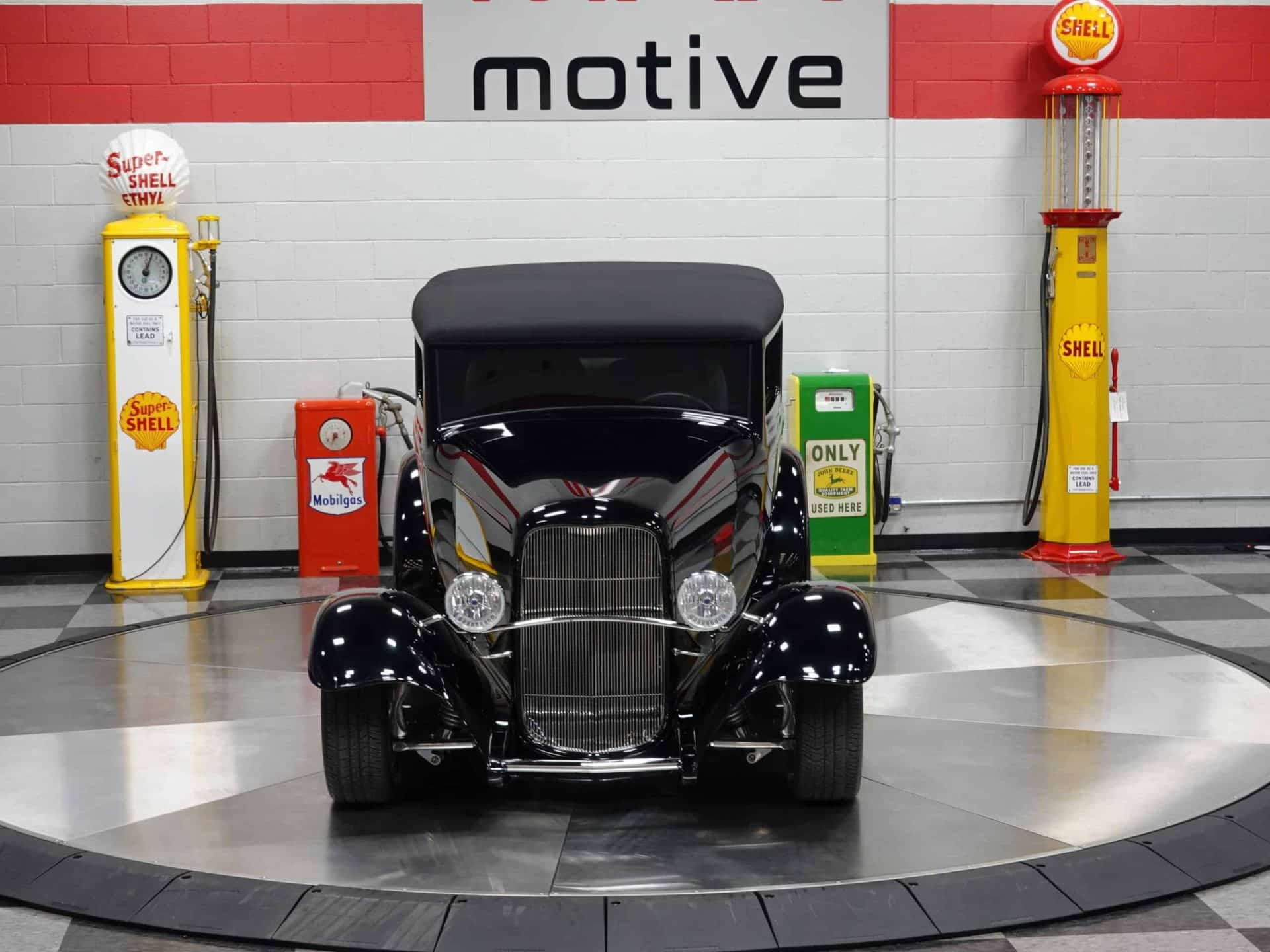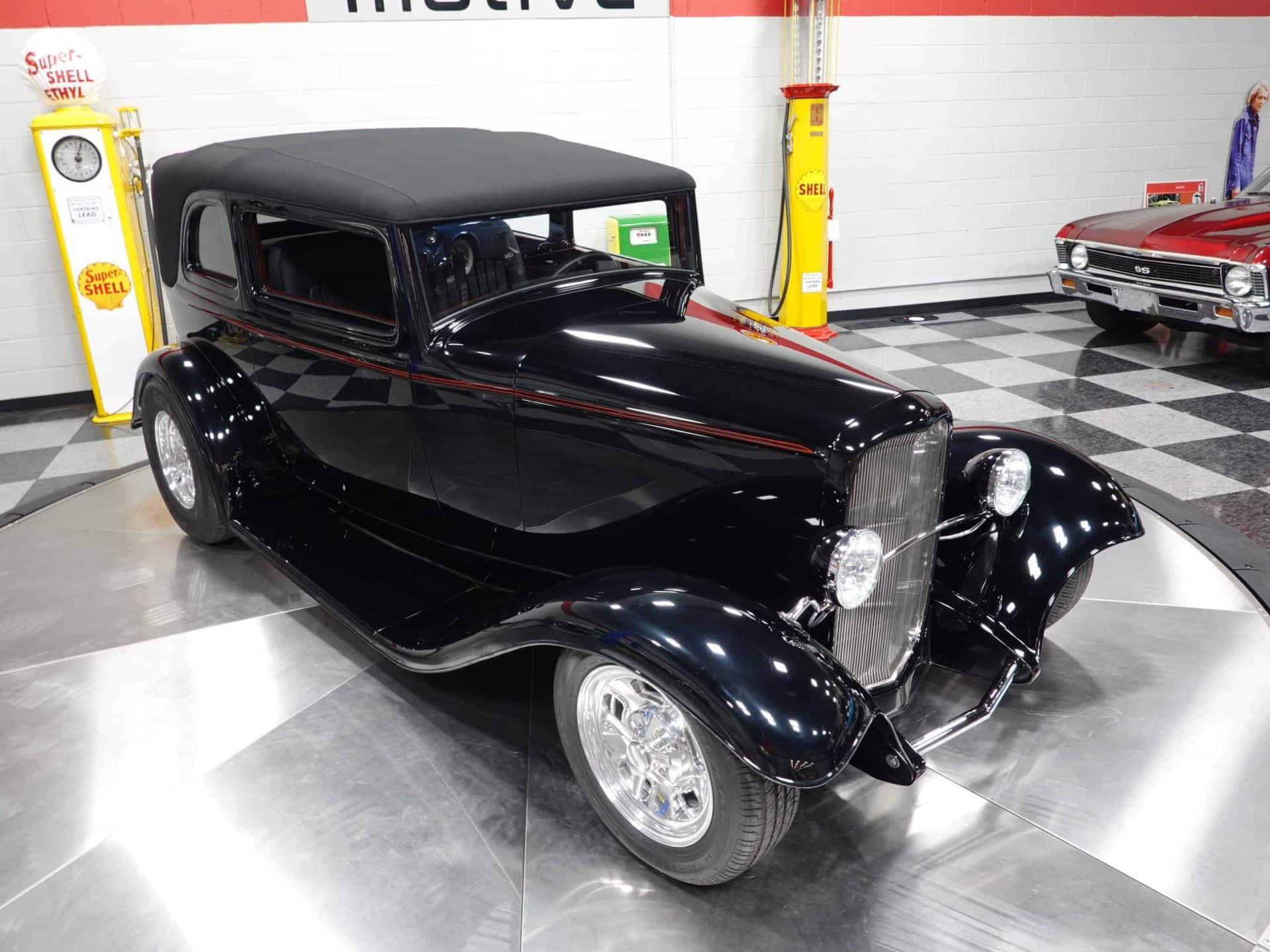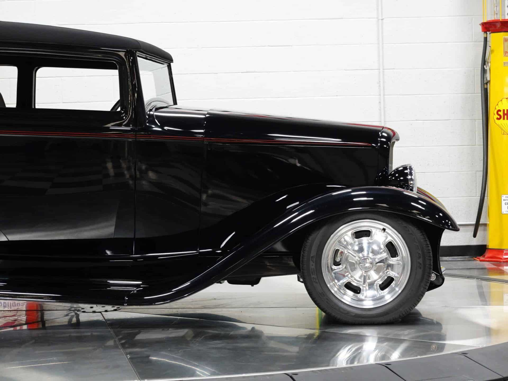 “This was one of the last cars Boyd had his mind and hands on before his passing. And just like all his projects, this ‘32 utilizes only the best products, and greatest depth of skill available.” – Roger C. Johnson. This is the car that became known as “The Master’s Last Hod Rod” after the untimely passing of master builder Boyd Coddington. Boyd was indeed a master, building cars for star personalities and launching the careers of the likes of Chip Foose, Jesse James, and Larry Erickson, Chief Designer of the Mustang and Thunderbird at Ford Motor Company. You would expect the product of Boyd’s many successful years of design and building experience to be something special – and it is. Boyd personally took the car to 90% complete status. Then, as a tribute to the legend, some of the greatest names in the custom car industry brought it to completion. The body was recreated by Coddington’s Shop of Wonders with help from Marcel’s Custom Metal Shaping, creating a longer hood and side panels, and matching stretched fenders. The finish is a simple but effective application of rich black exterior paint by Bernet Carlsen. The crowning touch is the one-of-a-kind steel lift-off top. Ample power is supplied by none other than Roush Racing – a 358 cubic inch fuel injected Ford small block with a complete roller valvetrain and custom fabbed headers. The exhaust exits in a marvelously executed single outlet that fits ingeniously beneath the chromed independent rear suspension. Ron Mangus worked his magic on the interior, which presents the luxurious high-end feel of the world’s greatest automobiles. Black high-grade leather covers the power bucket seats, and the look, feel, and that wonderful aroma confirm that only the very best made it into this build. Wool carpeting, deep, dark wood trim, and custom gauges highlight a truly decadent cabin. Superior engineering was always a Boyd trademark, and this build is a showcase. The car has fully independent suspension with coil overs at all four corners. Also all the way around are power disc brakes. Driver control is also aided by power rack & pinion steering. The closer and longer you look, the more amazing details you discover – as it is with any true masterpiece. The essence of Boyd Coddington permeates this one-of-a-kind creation. It’s a magnum opus of a beloved and respected leader, innovator, teacher, and craftsman whose work has been carefully preserved here. The odometer currently shows less than one mile. A 1932 Ford B400 Custom Convertible, verified in the Official Boyd Coddington American Registry with a Certificate of Authenticity.