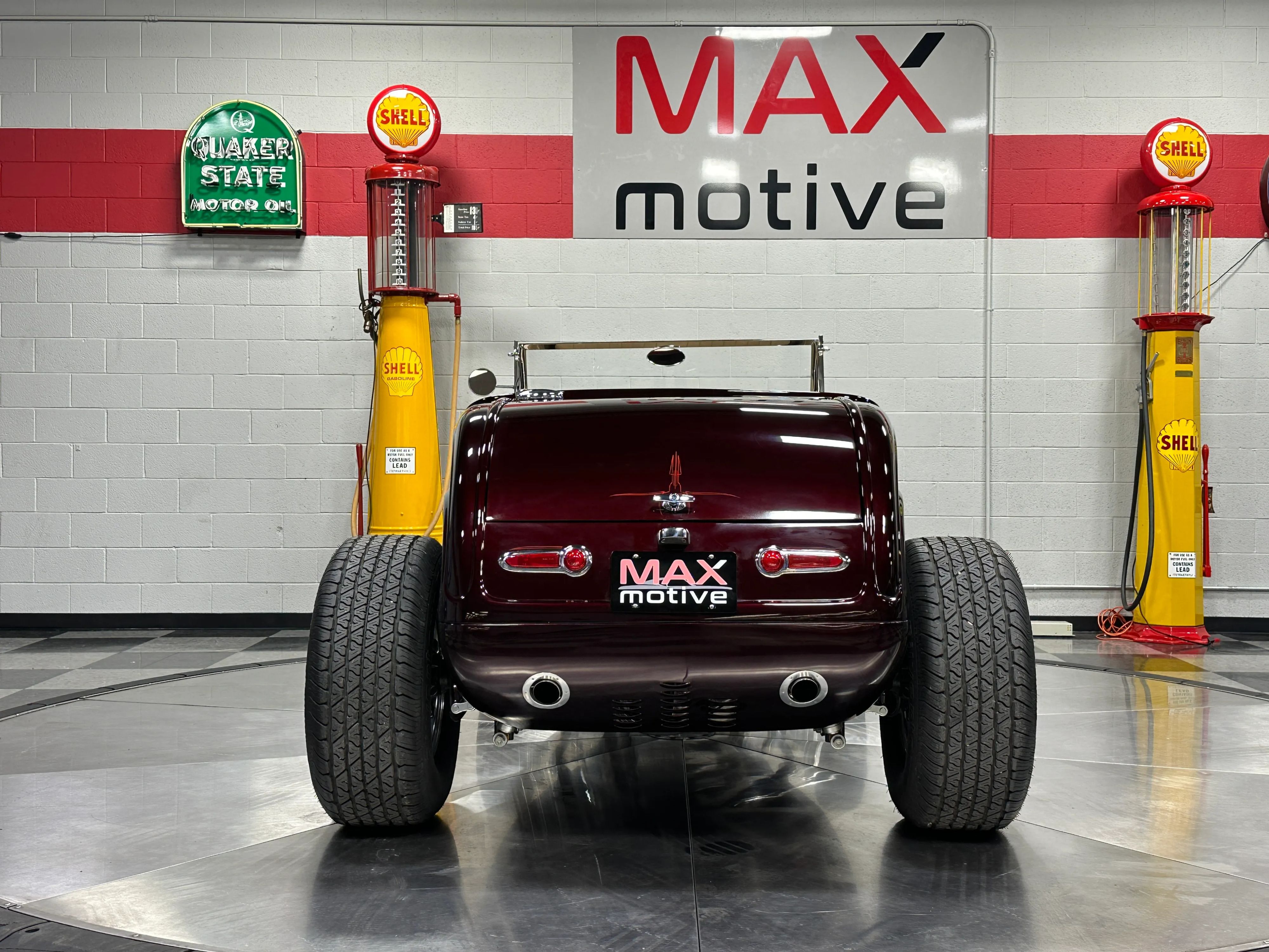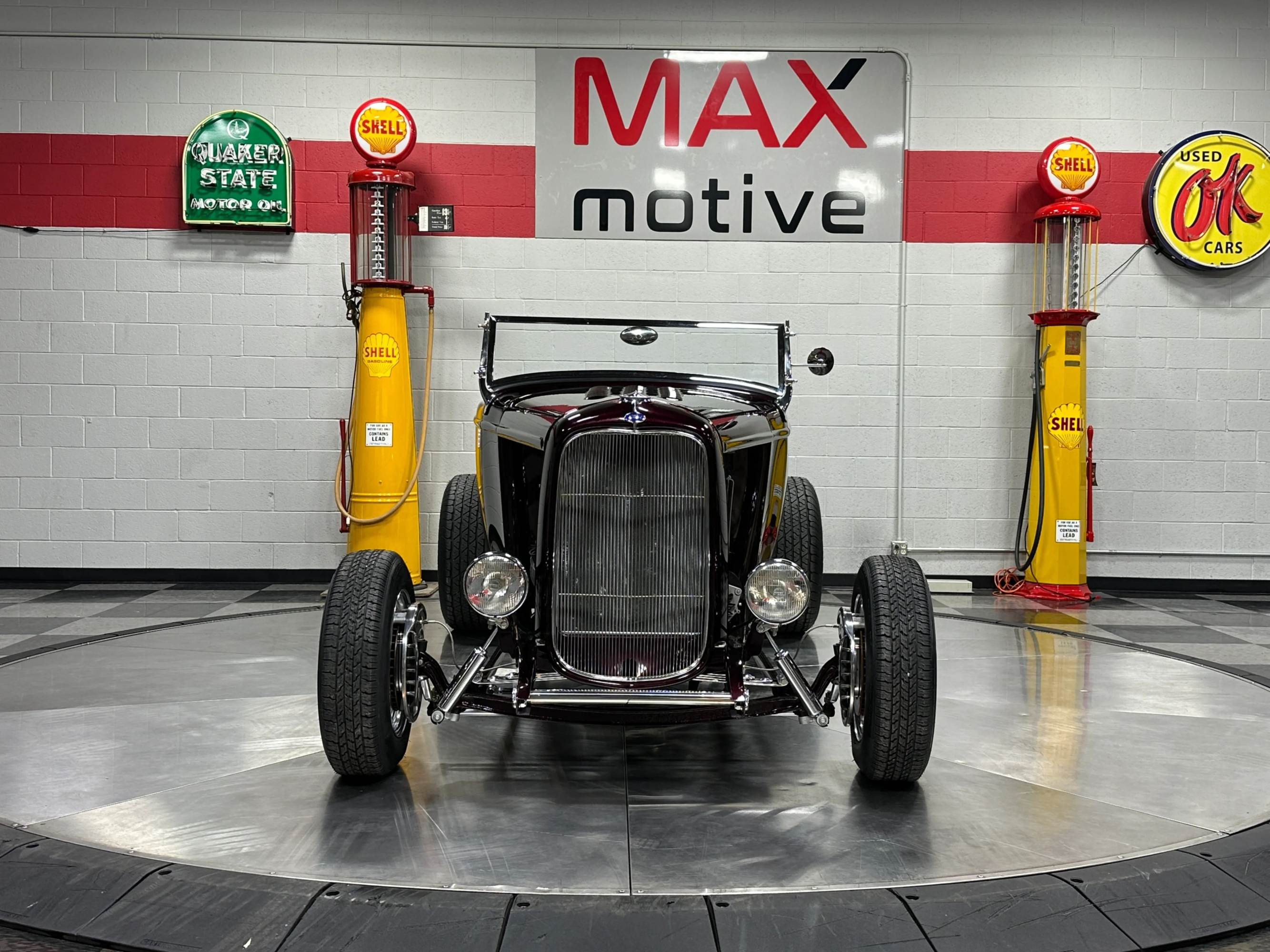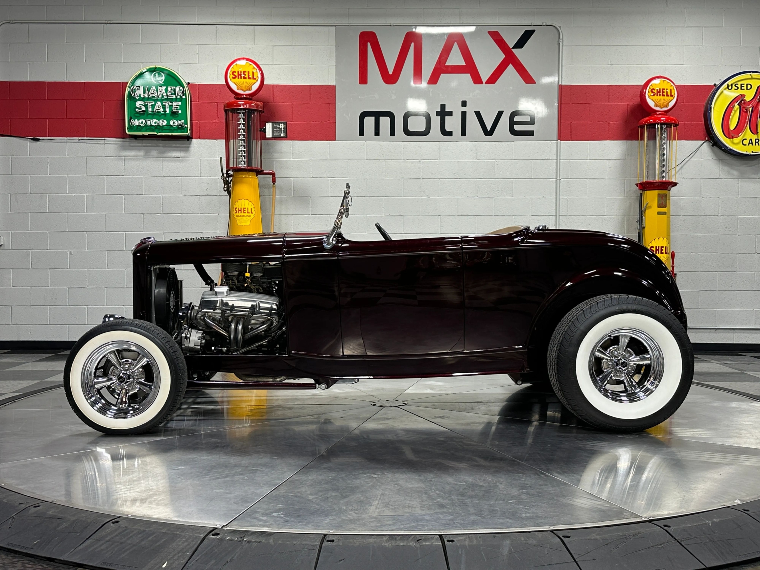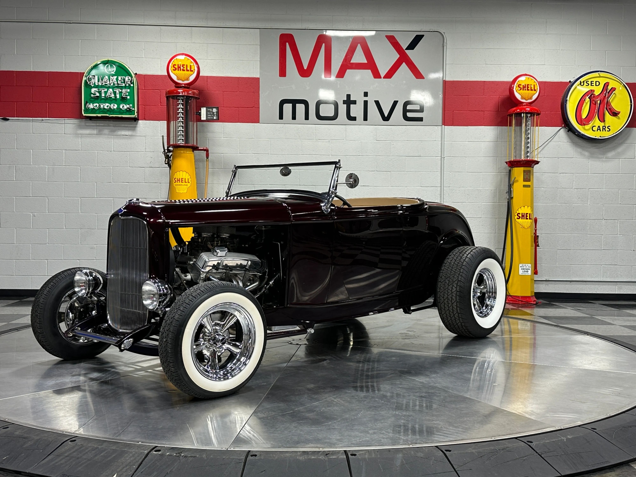 It doesnt get more classic in the classic car/hot rod world than a 1932 Ford Model B Roadster, and MaxMotive has a top tier example here for you. Completed in 2022 by the previous owner, this hot rod has seen just 1308 miles. The classicness continues with a 350ci small block Chevrolet V8 engine pumping out an estimated 450 horsepower through a Turbo 350 transmission to a 9-inch rear with 3.50 gears. On top are twin 500cfm Edelbrock carburetors The foundation is a body and chassis by the legendary Downs Manufacturing, with a straight axle front suspension, four-link rear suspension, and 4-wheel disc brakes. The body sports a hand-crafted all-aluminum hood with louvers. Harley Davidson Typhoon Maroon makes a nice contrast to the beige vinyl interior. Here youll find a Stewart-Warner tach and gauges and a quick release steering wheel for easy entry and exit. A new aftermarket wiring harness handles all the electricals and theres a 15 gallon aluminum fuel tank with an electric fuel pump. Details such as stainless headers and exhaust and a fully upholstered trunk are further hints to the quality of the build, riding on staggered Coker wide whites on chrome 5-spoke Supreme Wheels. Honoring time-honored hot rod heritage with modern technology in the mix, this 1932 Ford Model B Roadster was recently completed and is ready to show and go. Please see the photos, videos, and details at maxmotive.com.