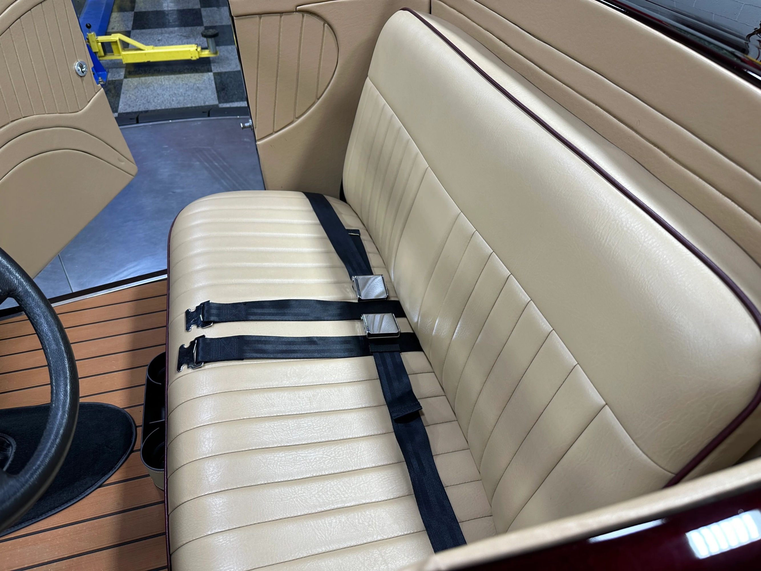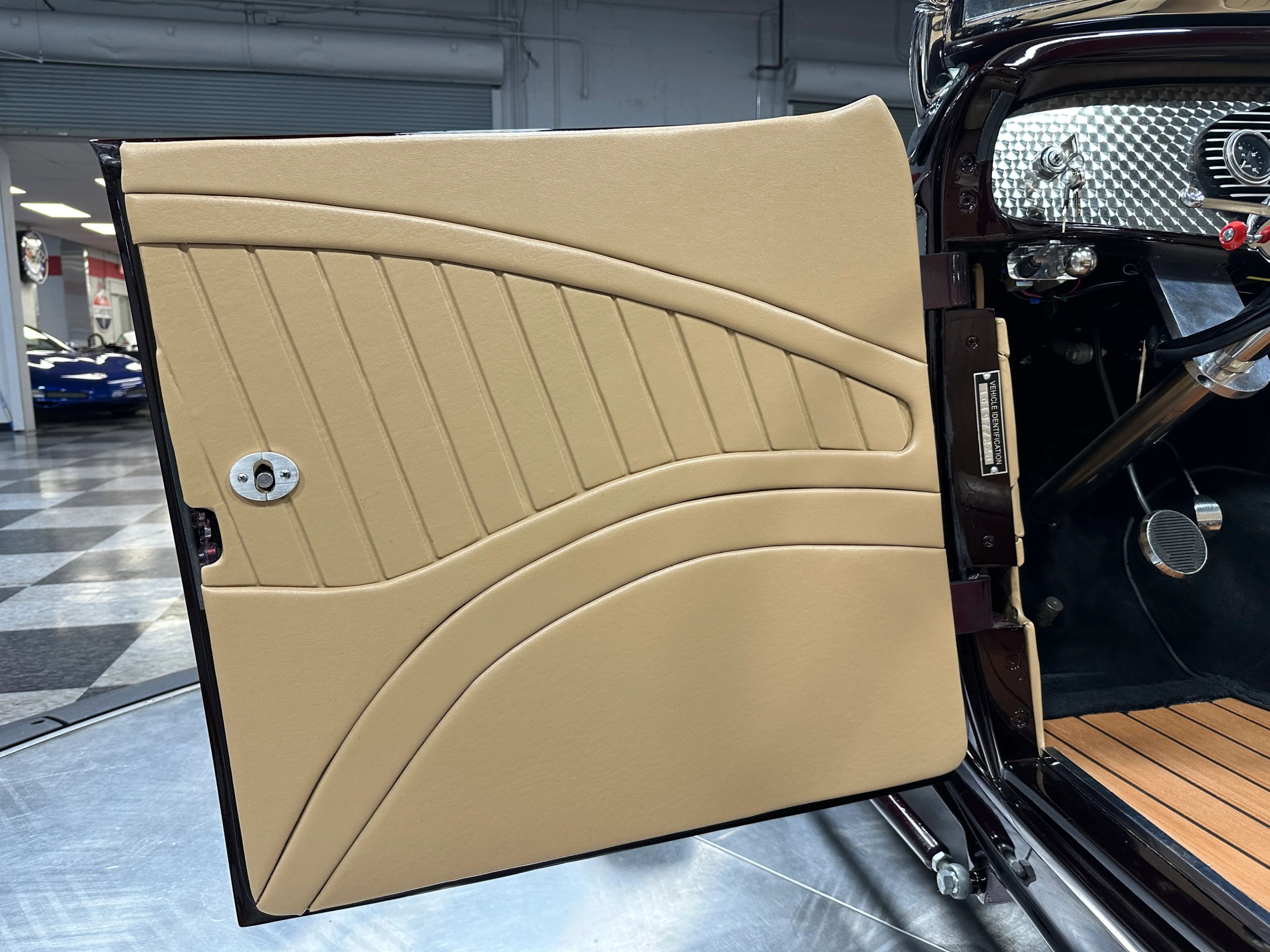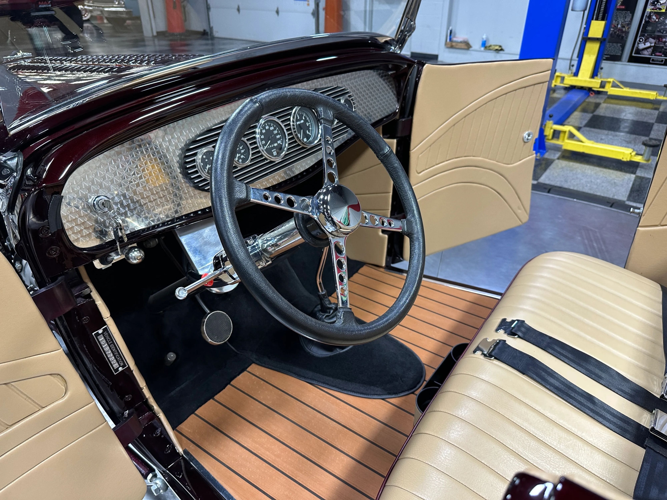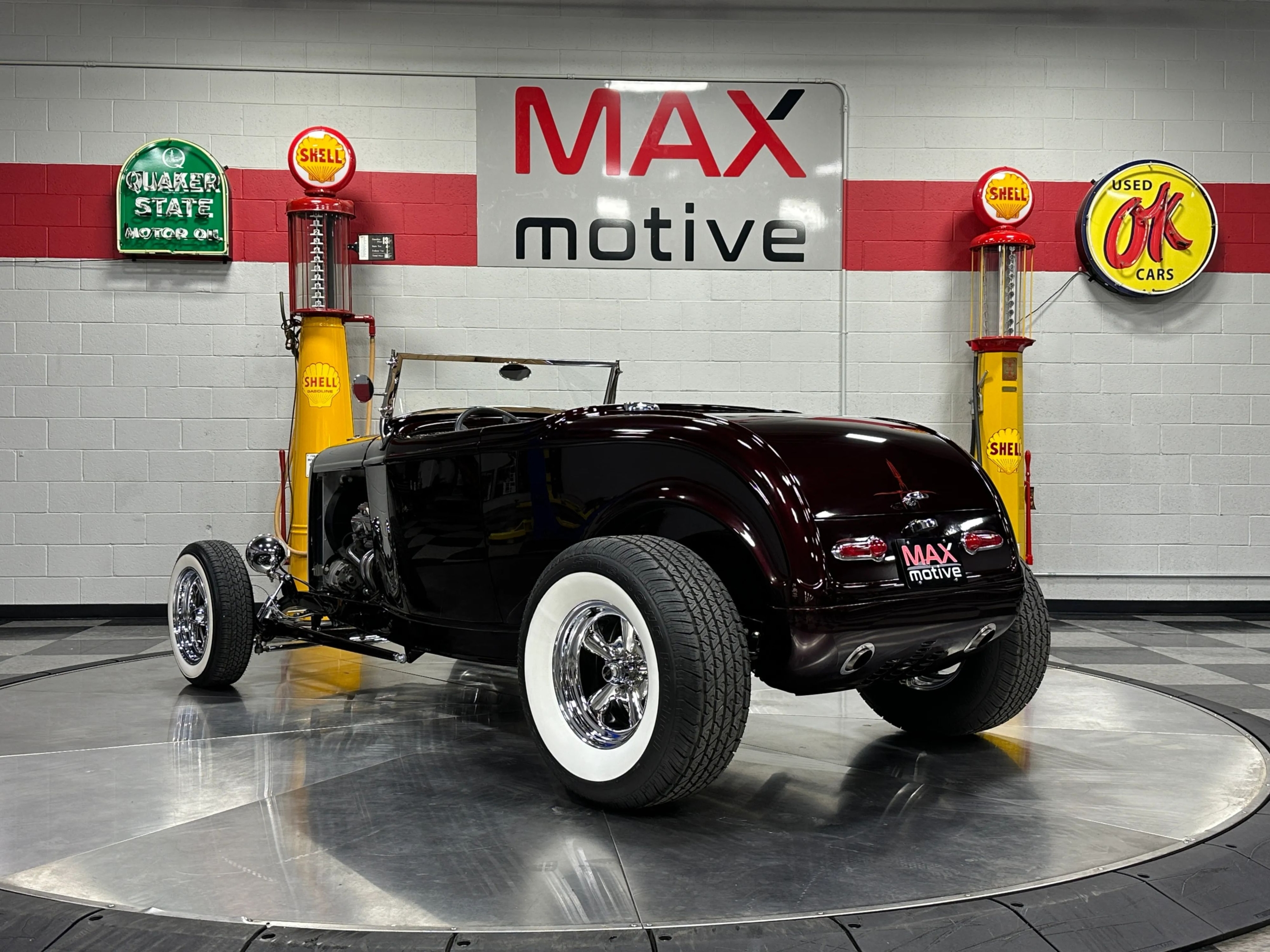 It doesnt get more classic in the classic car/hot rod world than a 1932 Ford Model B Roadster, and MaxMotive has a top tier example here for you. Completed in 2022 by the previous owner, this hot rod has seen just 1308 miles. The classicness continues with a 350ci small block Chevrolet V8 engine pumping out an estimated 450 horsepower through a Turbo 350 transmission to a 9-inch rear with 3.50 gears. On top are twin 500cfm Edelbrock carburetors The foundation is a body and chassis by the legendary Downs Manufacturing, with a straight axle front suspension, four-link rear suspension, and 4-wheel disc brakes. The body sports a hand-crafted all-aluminum hood with louvers. Harley Davidson Typhoon Maroon makes a nice contrast to the beige vinyl interior. Here youll find a Stewart-Warner tach and gauges and a quick release steering wheel for easy entry and exit. A new aftermarket wiring harness handles all the electricals and theres a 15 gallon aluminum fuel tank with an electric fuel pump. Details such as stainless headers and exhaust and a fully upholstered trunk are further hints to the quality of the build, riding on staggered Coker wide whites on chrome 5-spoke Supreme Wheels. Honoring time-honored hot rod heritage with modern technology in the mix, this 1932 Ford Model B Roadster was recently completed and is ready to show and go. Please see the photos, videos, and details at maxmotive.com.