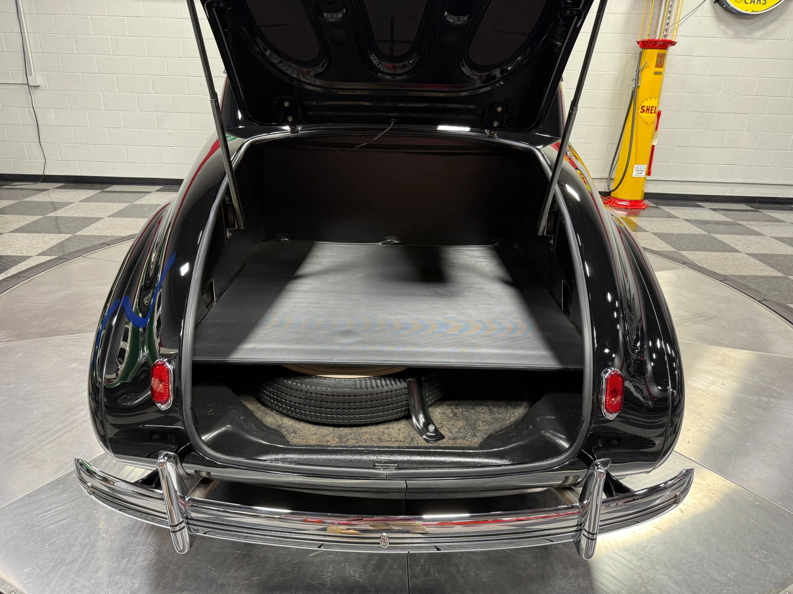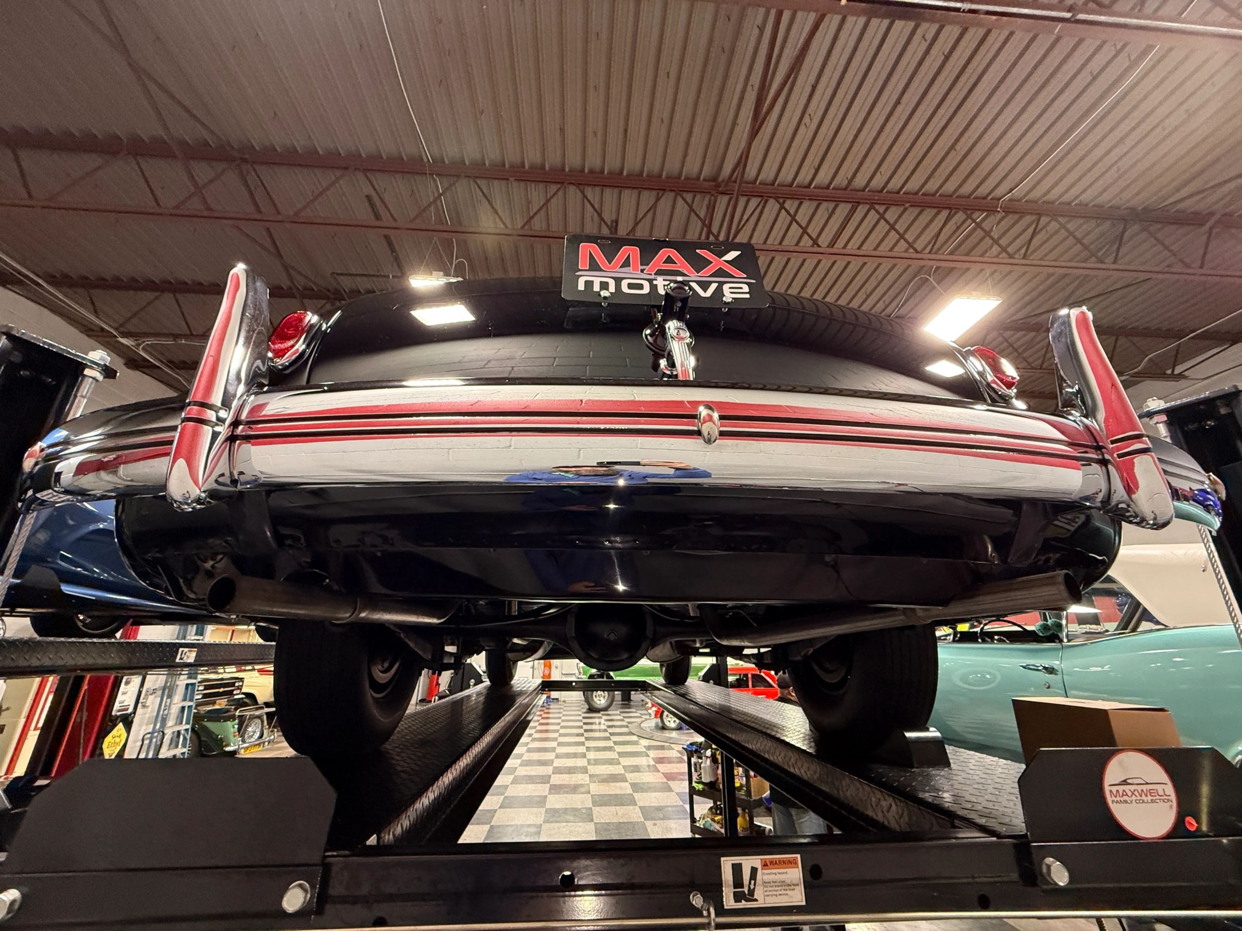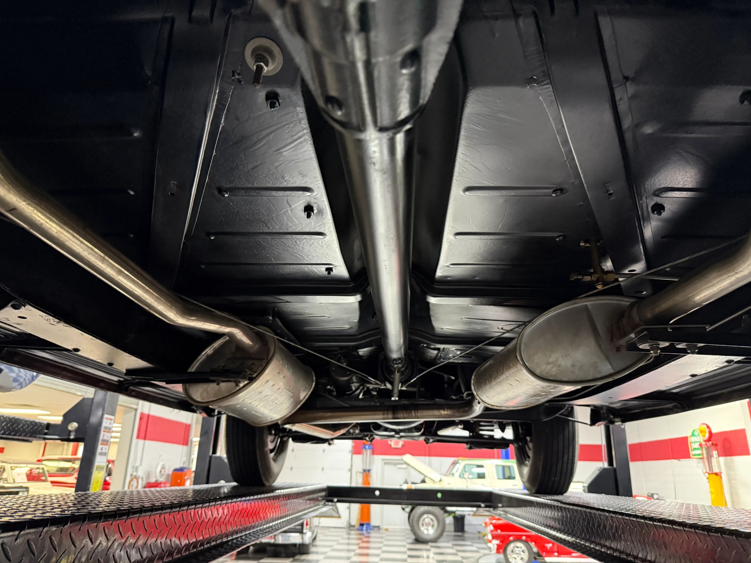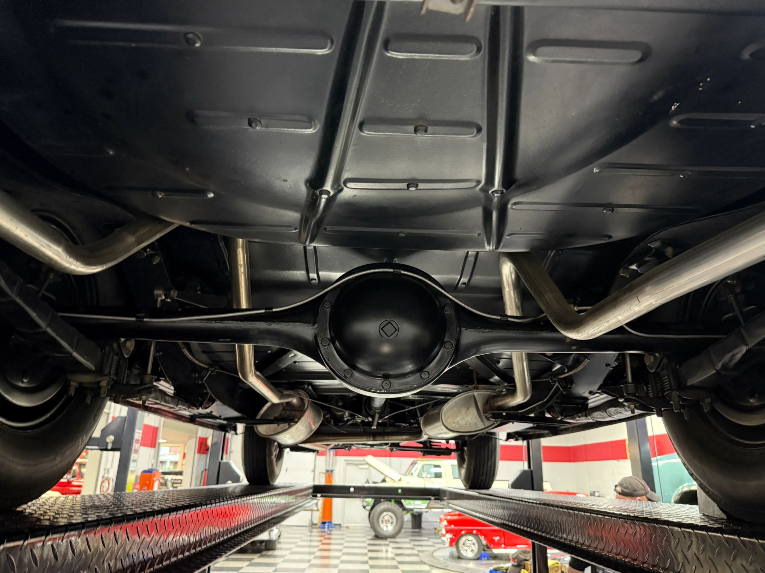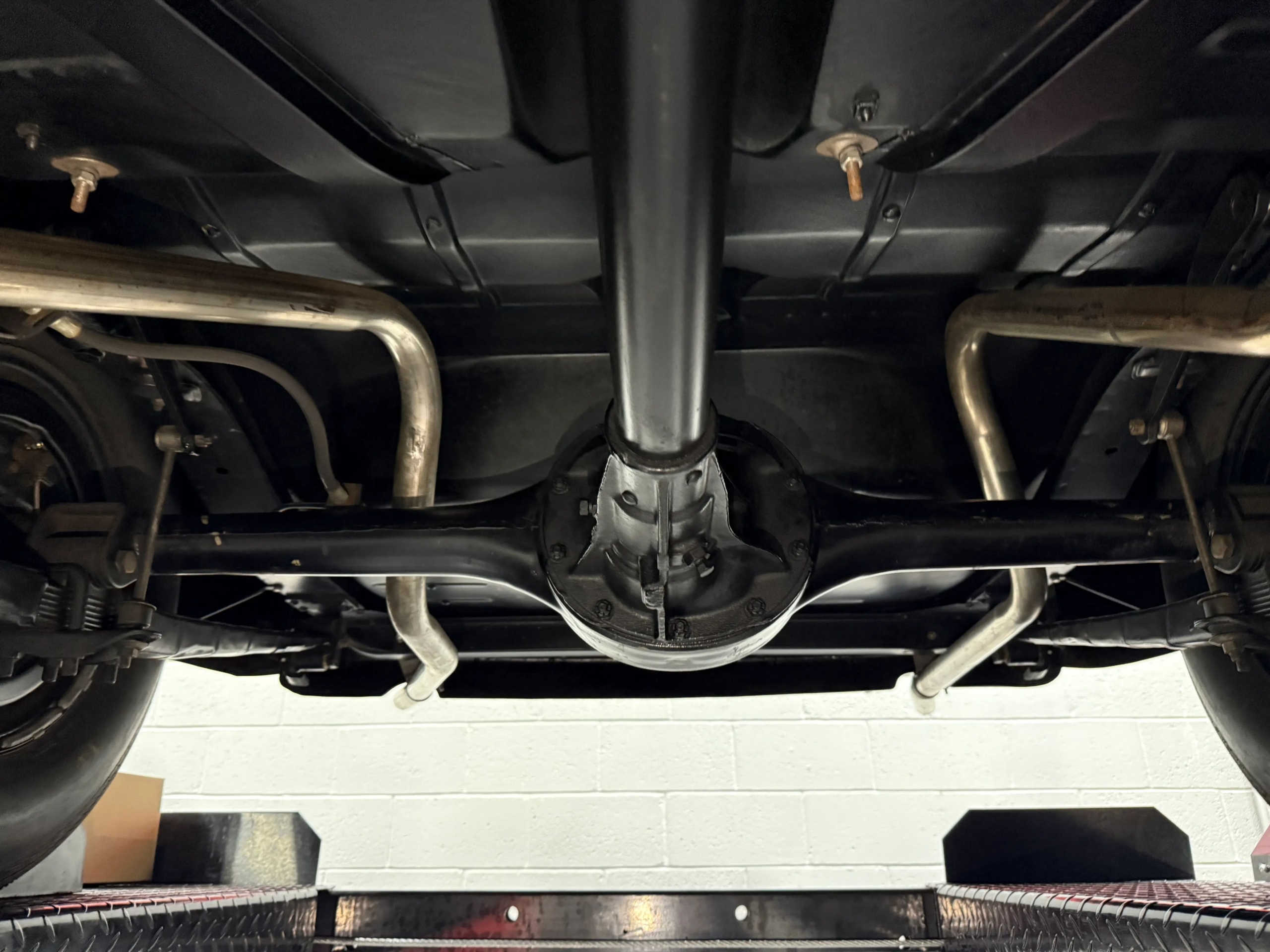 The interior has a charming period look highlighted by a wood-grain dash and a factory steering wheel equipped with a rare integrated spinner wheel knob. The car also features vacuum-assist shifting, adding to its vintage driving experience. Comfort is enhanced with a Vintage Air heat and air-conditioning system. The car rides on factory-style wide whitewall tires and Commander G78-15 4-ply polyester cord tubeless tires. Period fog lights remain in place (not yet wired), and the car retains four-wheel drum brakes. The odometer currently shows 33,029 miles but is not functioning.