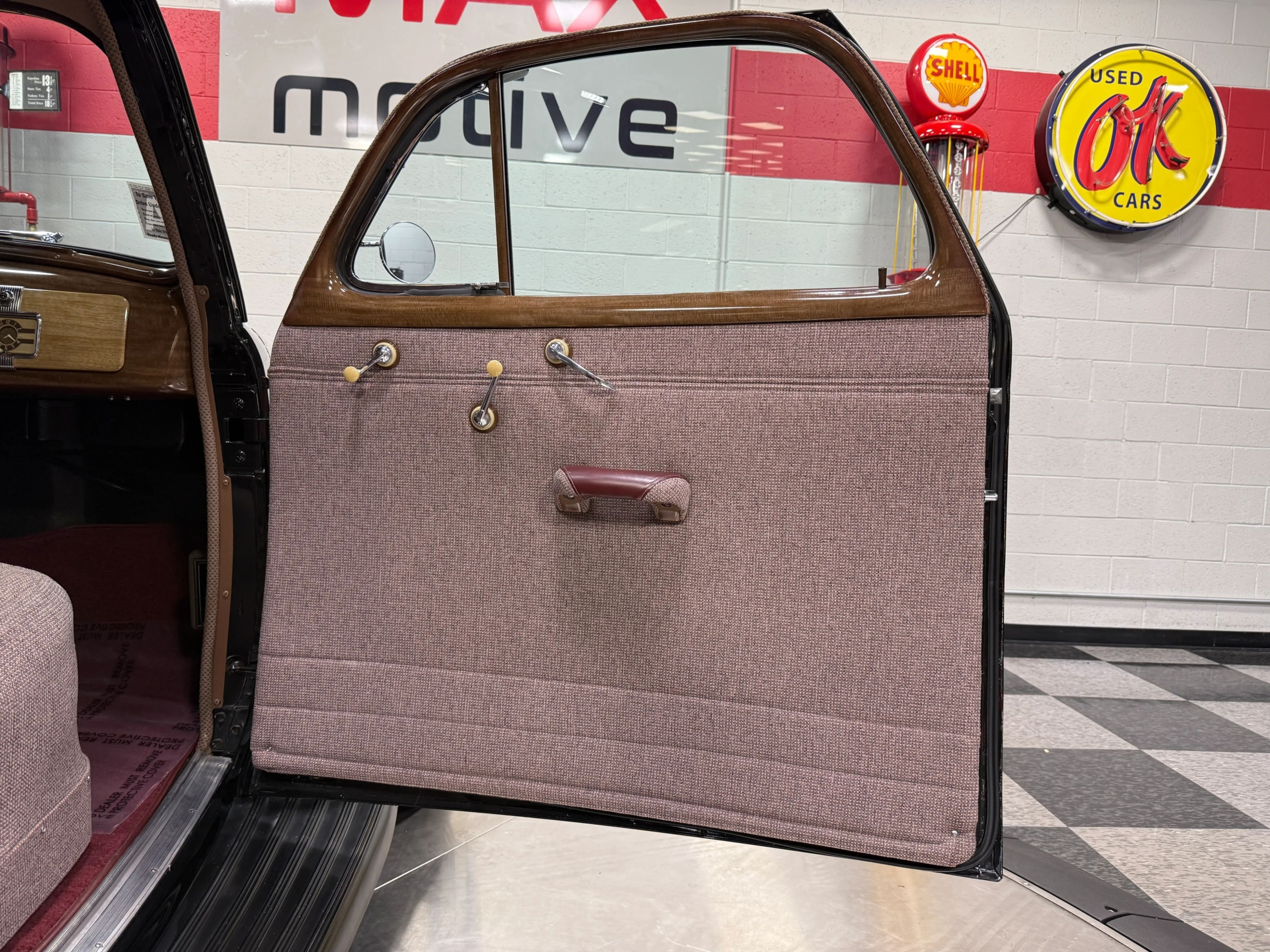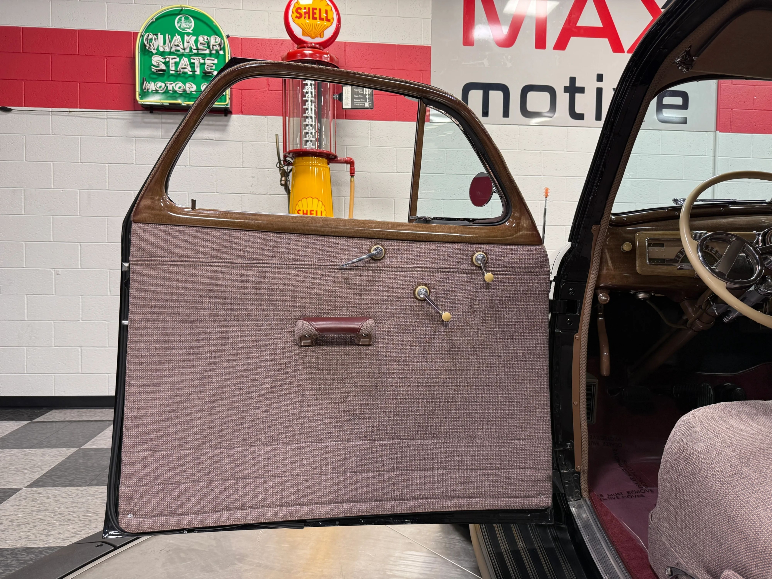 Maxmotive is proud to present this 1940 Chevrolet Master Deluxe Business Coupe. Finished in classic black with a brown/light-burgundy interior, this coupe retains its original Business Coupe identity with no rear seat and a large package storage deck behind the front seating area. Many of these cars have been turned into full street rods, but this example maintains its authentic pre-war appearance and character.