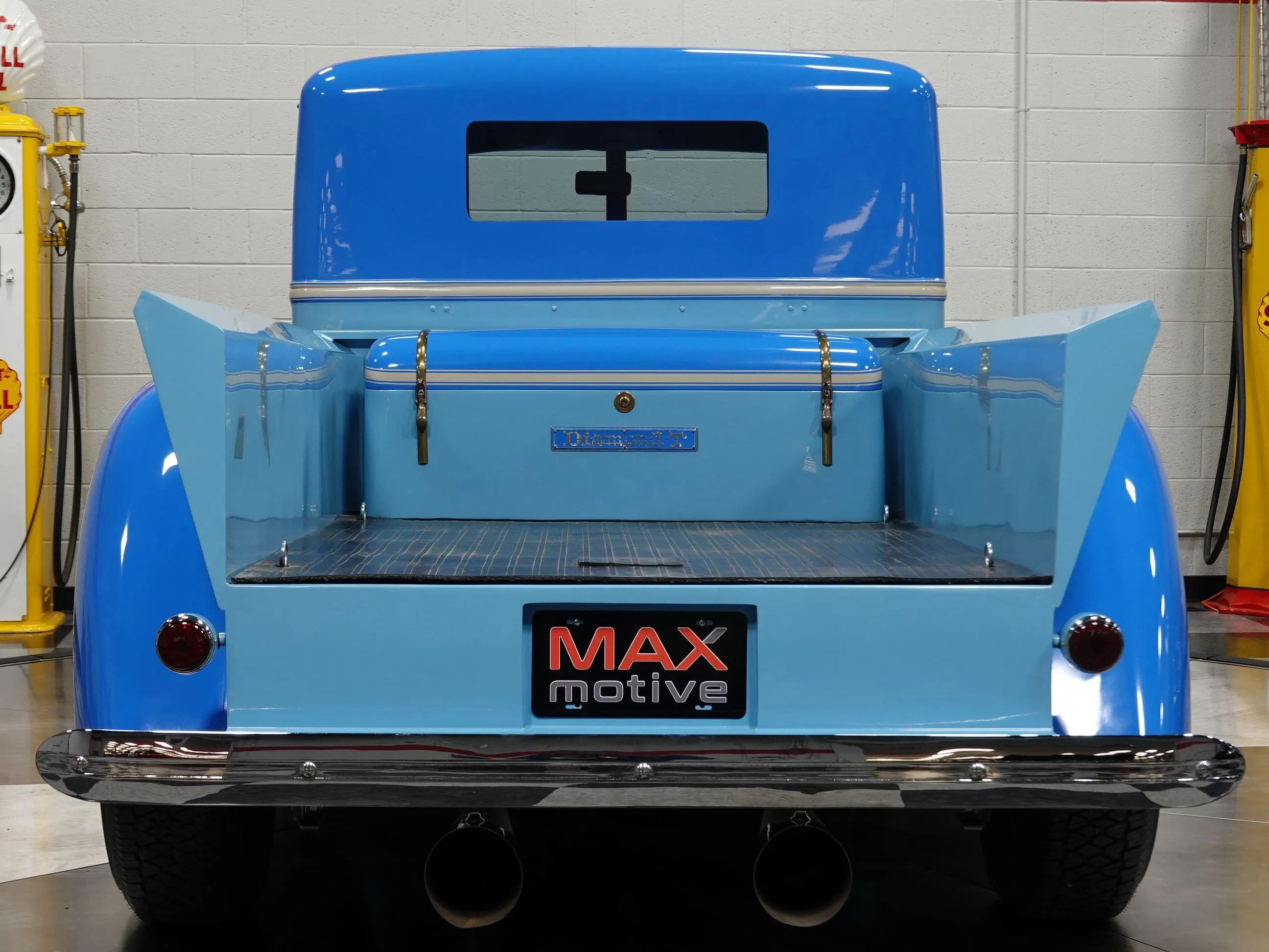 This rare and beautiful 1942 Diamond T Pickup with functional modern updates is now available in the MaxMotive Pittsburgh Showroom. The classic lines of the truck have been carefully preserved and the drivetrain has been designed for durability and driveability. A GM 350ci small block V8 teams with a Turbo 350 automatic transmission and GM 10-bolt rear. Late model leaf springs smooth the ride. The paint is a custom blue giving the truck a vintage hot rod look along with the wide whitewalls, and painted steel wheels with baby Moons and trim rings. A comfortable custom fitted leather bench seat in a coordinating shade of blue provides plenty of comfort along with air conditioning, power steering, tilt column, and an Alpine AM/FM/CD sound system with an auxiliary input. The chassis has been upgraded with late model leaf springs and power front disc brakes. This 1942 Diamond T Pickup cleverly blends the big rig and hot rod worlds into an attractive and driveable custom truck. Please be sure to see the detailed photos at www.maxmotive.com.