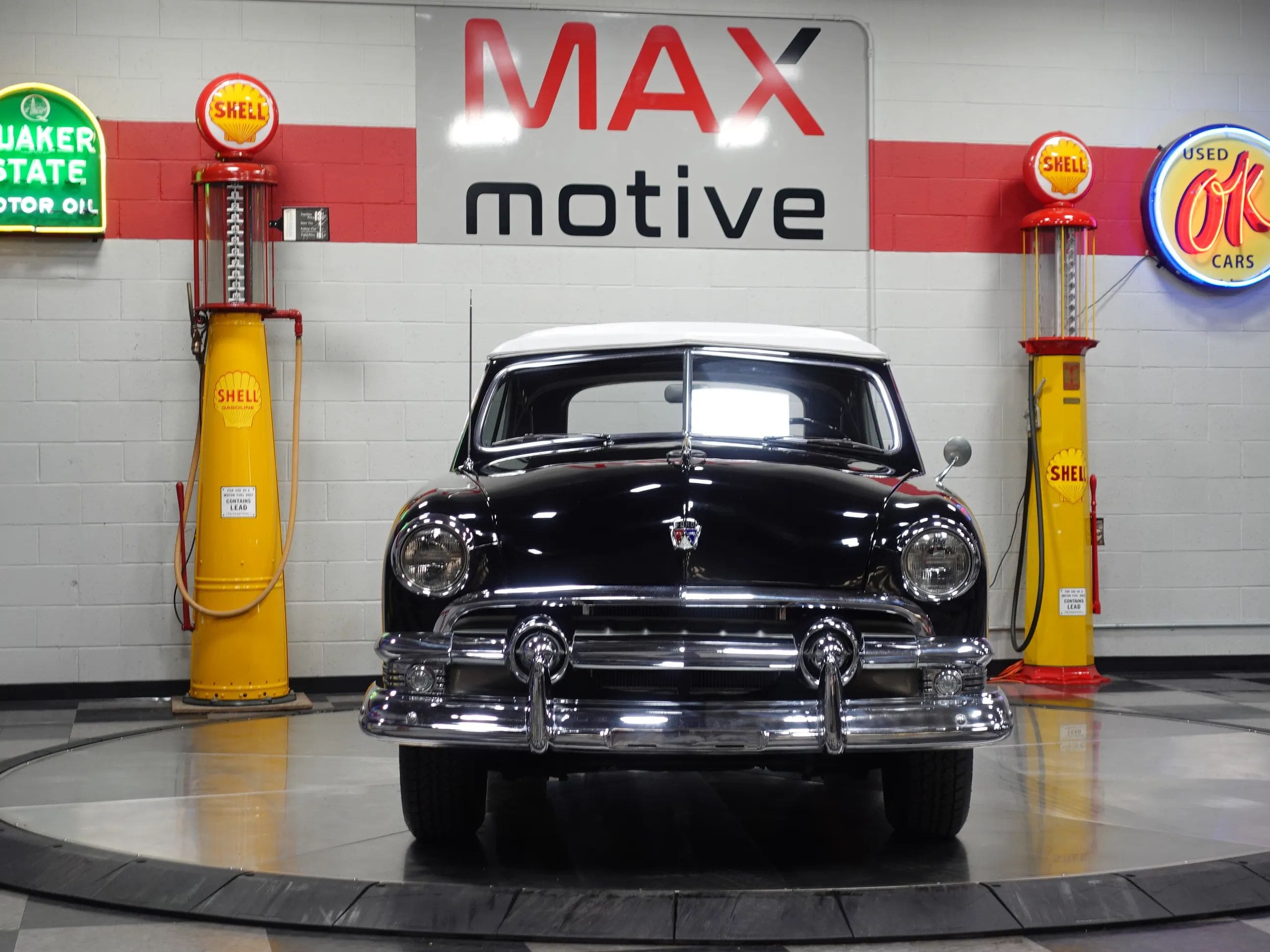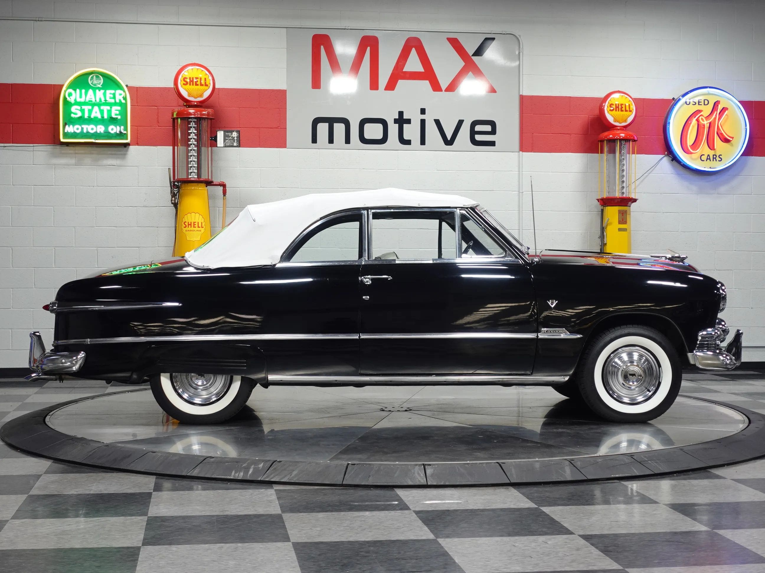 This beautifully preserved 1951 Ford Custom Deluxe Convertible is now available from the MaxMotive Pittsburgh Showroom. It has its original but professionally rebuilt 239ci Flathead V8 engine and 3-speed manual transmission. The car has been driven approximately 2500 miles since. A new aluminum radiator was installed to keep the Flathead cool. The black paint gives the car a regal look with the white top and black and white interior. The car was treated to a repaint in 1972. Considerable effort has been put forth to keep this beauty on the road and running strong. It has all new wiring, new brake cylinders and master cylinder, the fuel tank was professionally cleaned and coated, and all the electrical convertible top components have been replaced. The tires are new Coker radial whitewalls, and theres a spare tire in the trunk along with the jack and a car cover. This handsome 1951 Ford Custom Deluxe Convertible is ready to drive and enjoy, it has the Deluxe trim to further set it apart, and the receipts for the mechanical restoration are included. Please be sure to see the detailed photos at www.maxmotive.com.