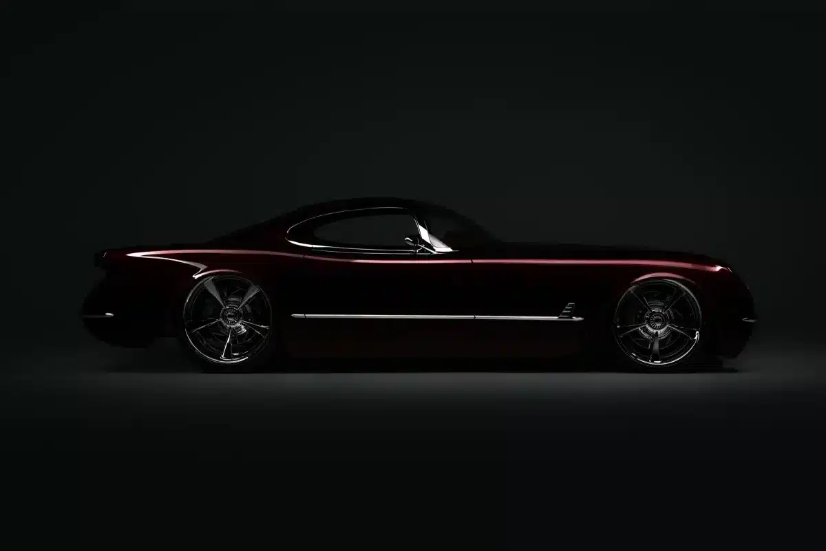 The overall design is inspired by our CF1 production cars and the 1953 GM Motorama Corvair concept car. Although it might resemble our carbon fiber production cars, The Kindig CF1, not a single part had been taken off the shelf from those cars, as well as many of the proportions and shapes like the wheel wells are different as well. We tried to create something completely different. We wanted to do everything we possibly could one-off specifically for this project. The body was fabricated using a buck and was done in three pieces: the top/outer shell hand-formed out of 3003 aluminum, the floor/bottom done in the same way, with a reinforced structure made of thicker 6061 sheet metal that is sandwiched together to create a monocoque/unibody. The only other separate pieces to the body are the doors and the hood. No donor car was used; it was all designed and built from the ground up in-house.