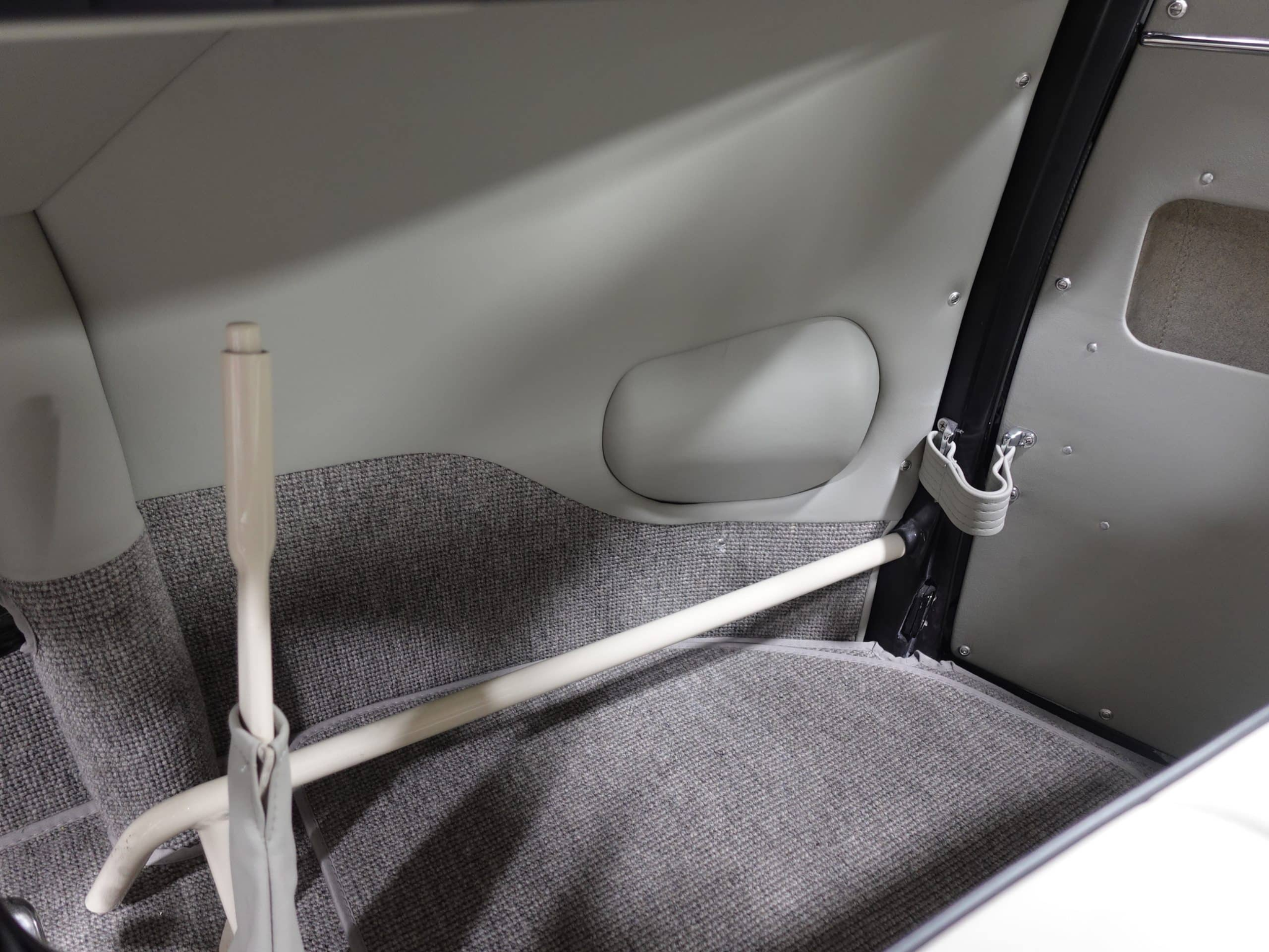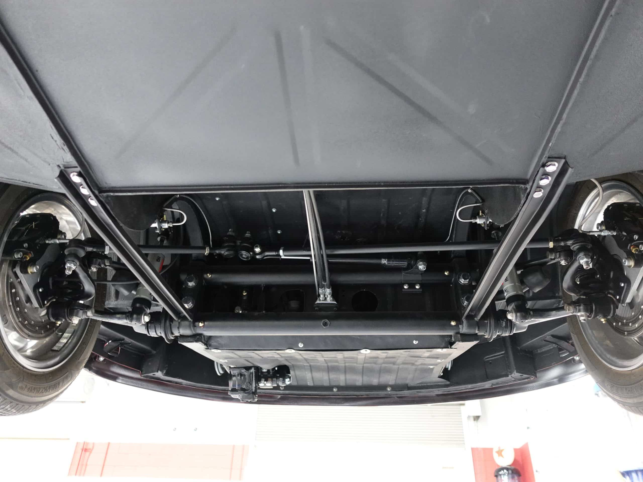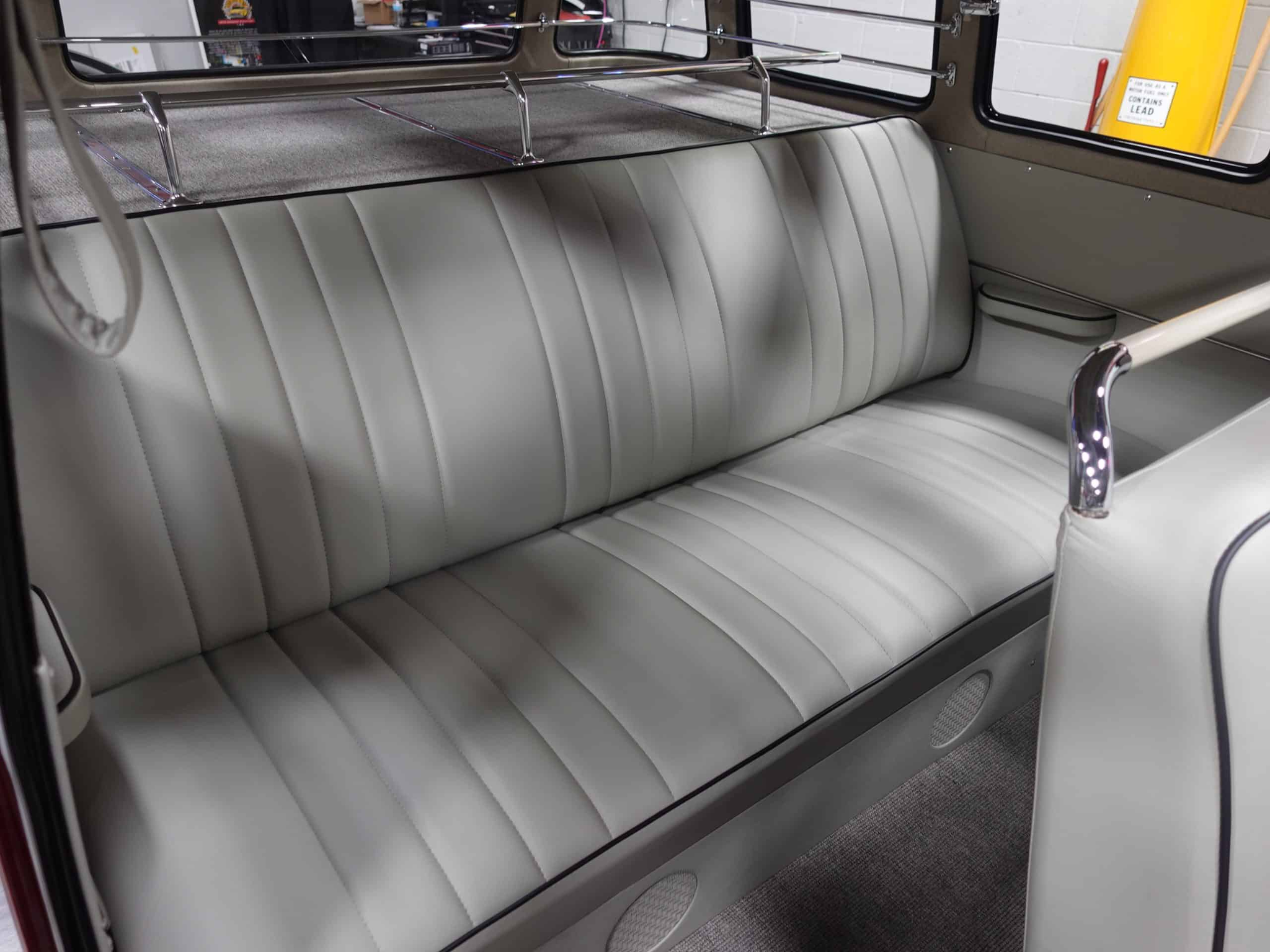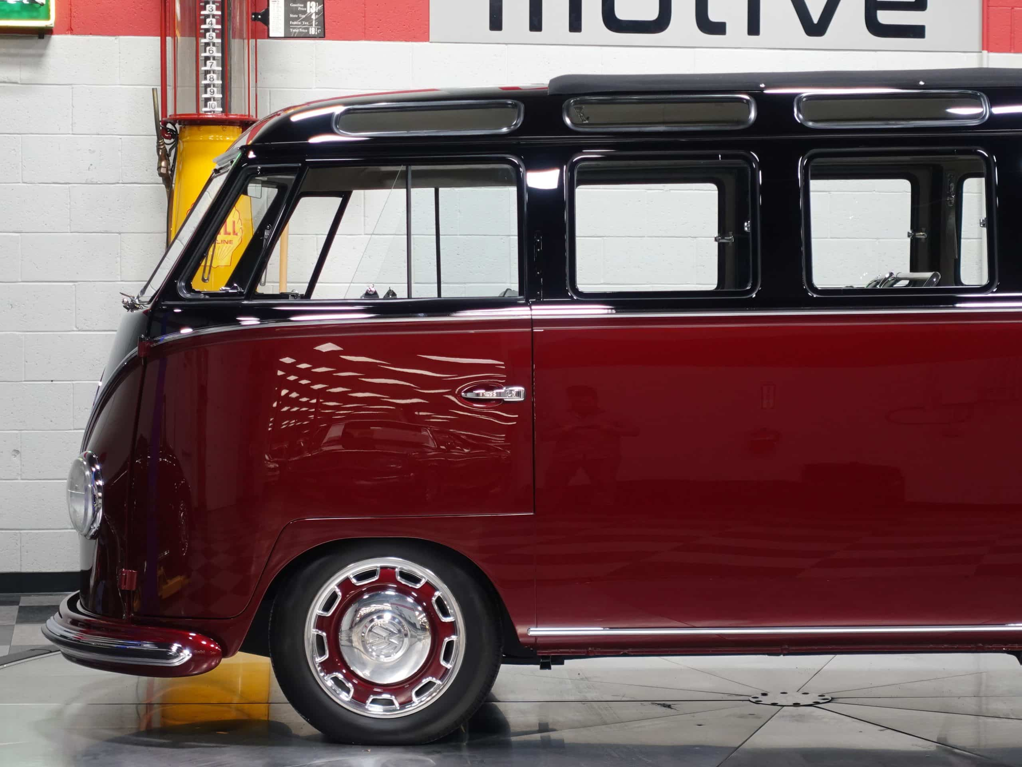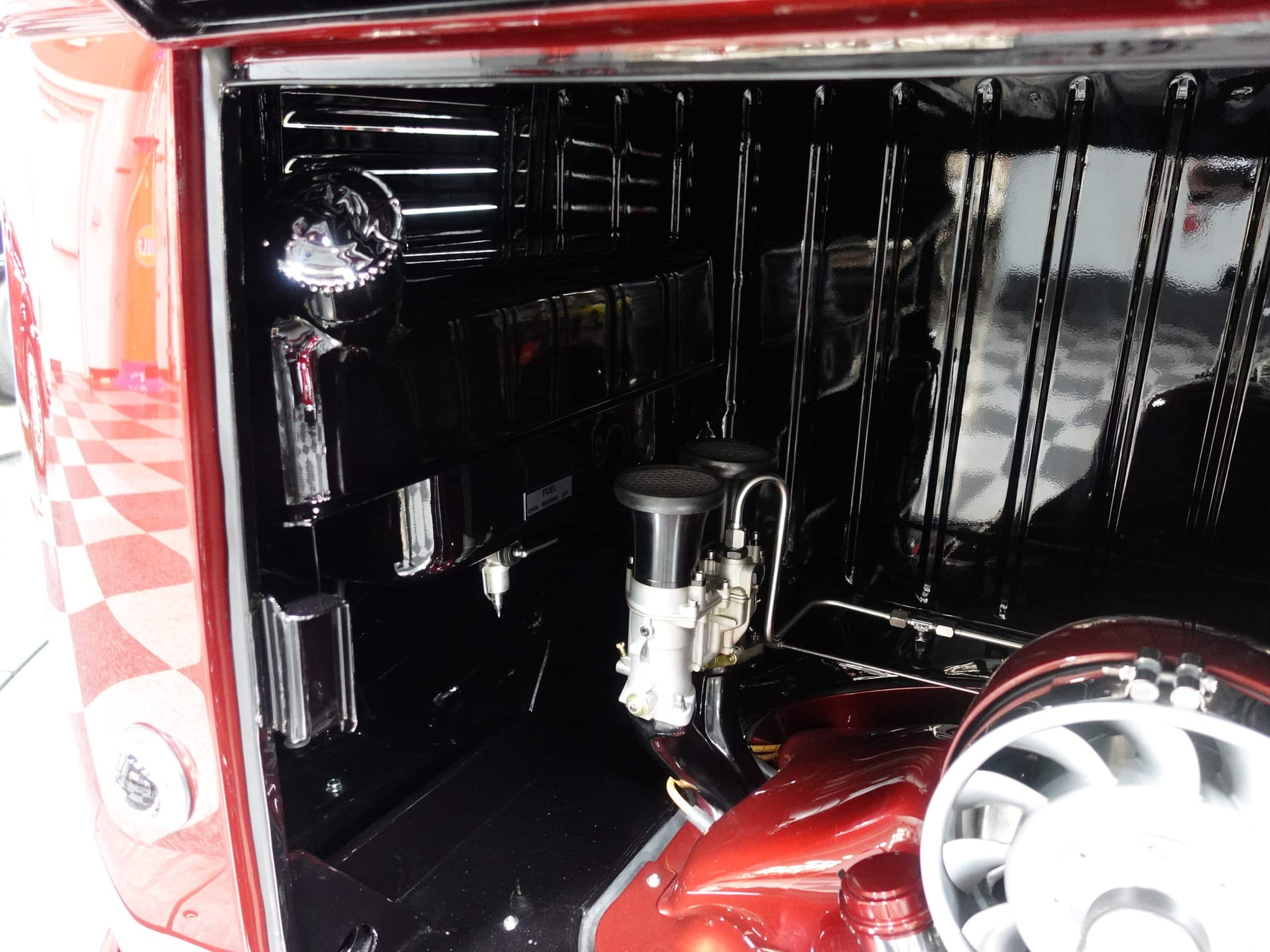 Renowned custom designer and automotive artist Dave Kindig and his team performed a complete custom build to create a one-of-a-kind 1953 Volkswagen Barn Door Deluxe 23-window Bus. The team started with a complete genuine 1953 BarnDoor 23-window VW Bus. The Kindig team started by installing a custom VW engine with twin Weber 48 carbs generating 176 horsepower. Then they installed a 1987 Vanagon automatic transmission for driving ease and to handle the extra power. The sheet metal was stripped, custom metalwork performed, and custom paint applied. The two-tone paint colors are Kindig’s own mixes of Bad Blood Red and Black Hole Black. Solid stock aluminum was hand formed and triple chrome plated to create the trim Soft leather seats in pale gray complement the rich gray German wool carpeting and custom headliner. The chrome Jail Bar luggage containment is a genuine feature of the Barn Door buses. A modern touch is a handsome Dakota digital gauge package. It rides on a lowered suspension with 4-wheel slotted disc brakes and staggered custom Kindig wheels. It was designed as a companion to the Collection’s 1950 VW Hebmuller Cabriolet. Please be sure to see the detailed photos at www.maxmotive.com.