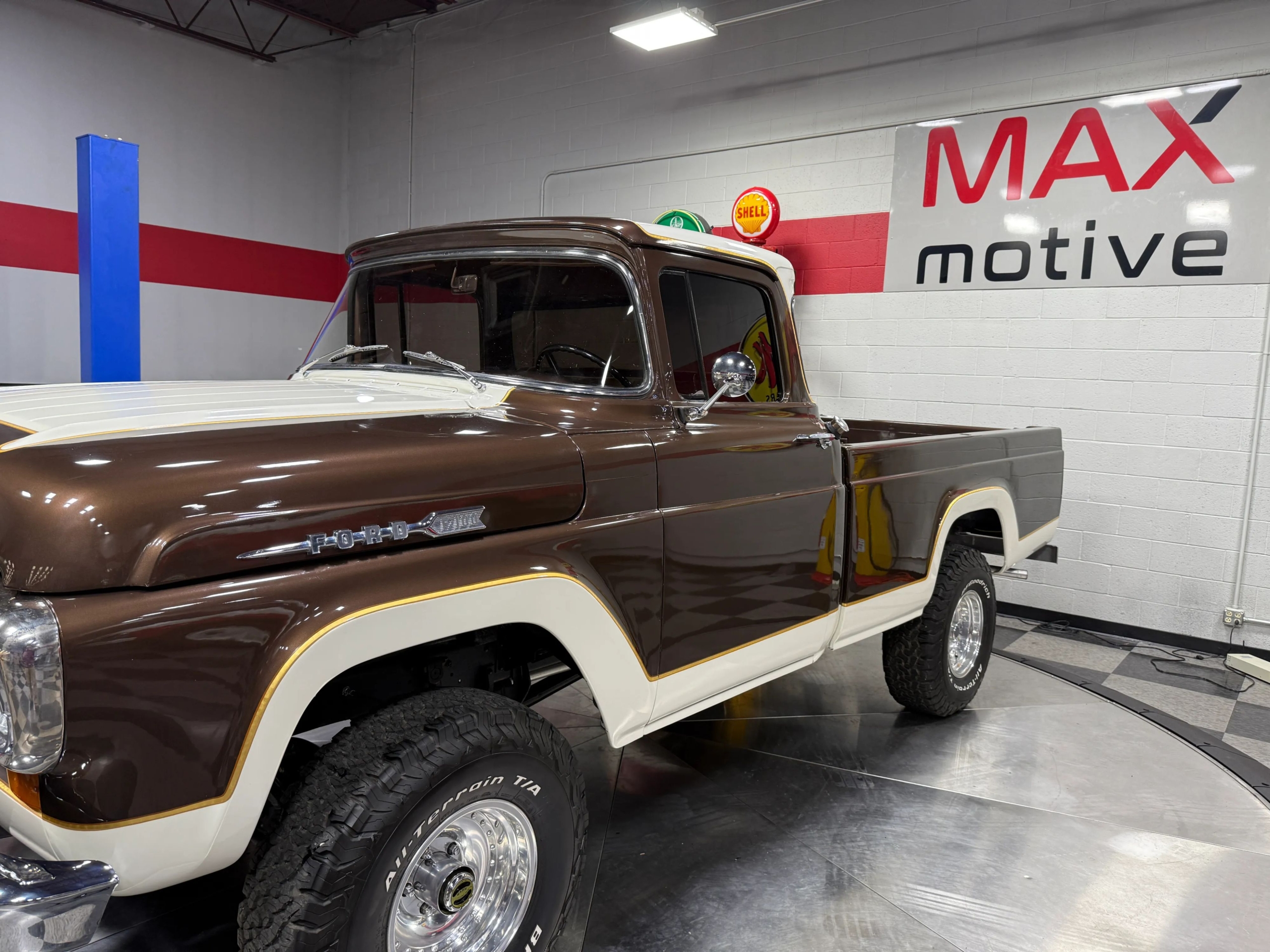 MaxMotive is Proud to Present this restored 1959 Ford F100 is a rare landmark in automotive history, representing the very first year Ford moved 4-wheel drive production in-house rather than relying on outside conversions. Combining mid-century grit with modern driveability, this truck is as capable as it is collectible.