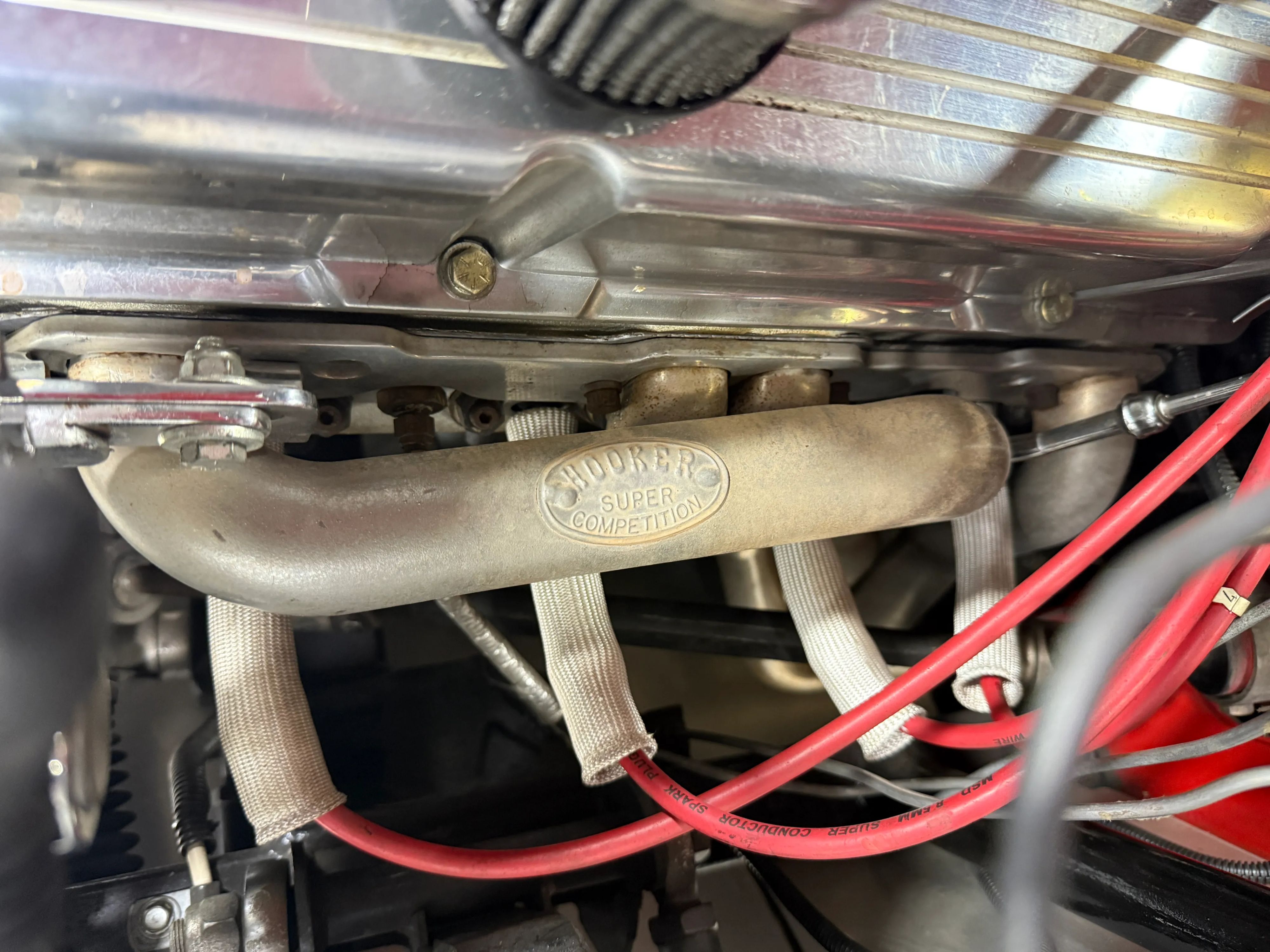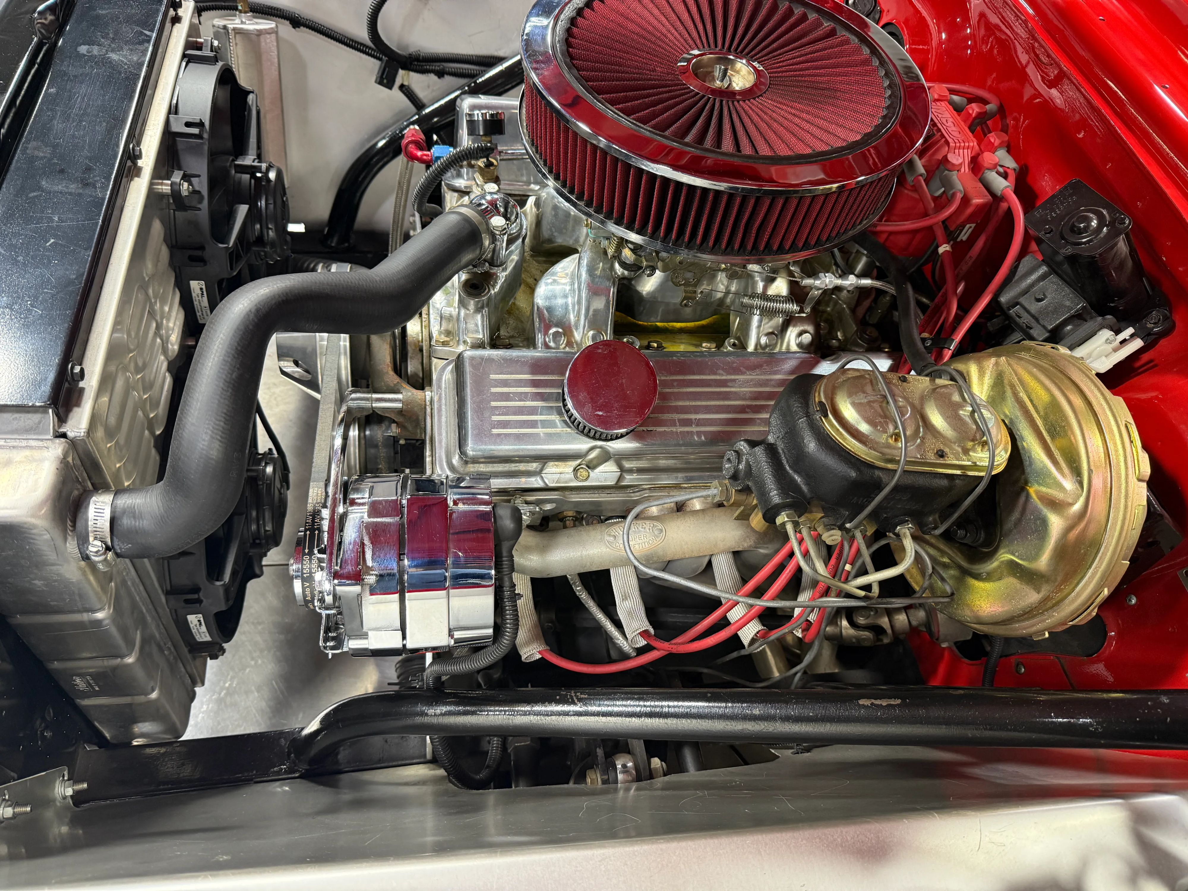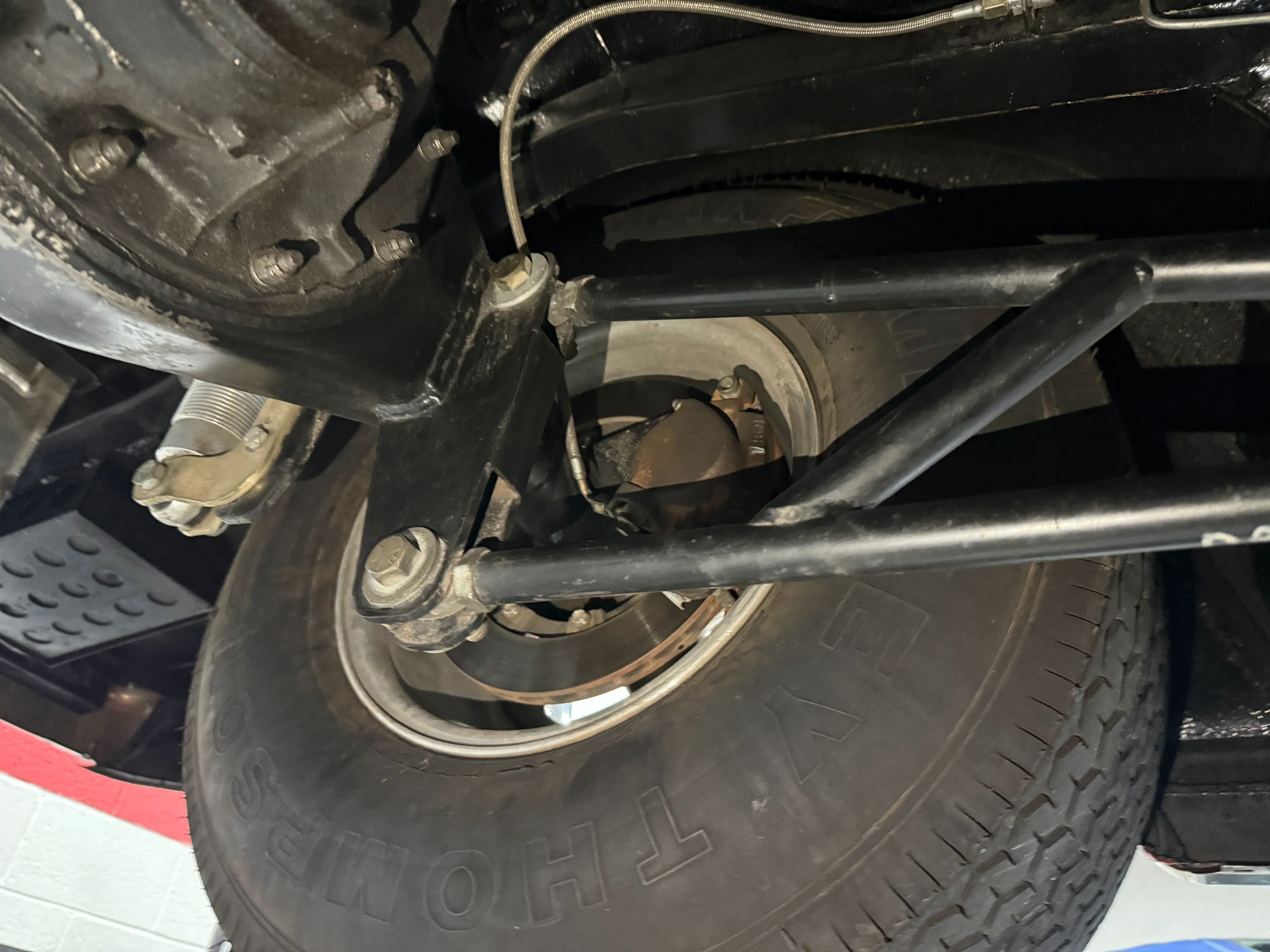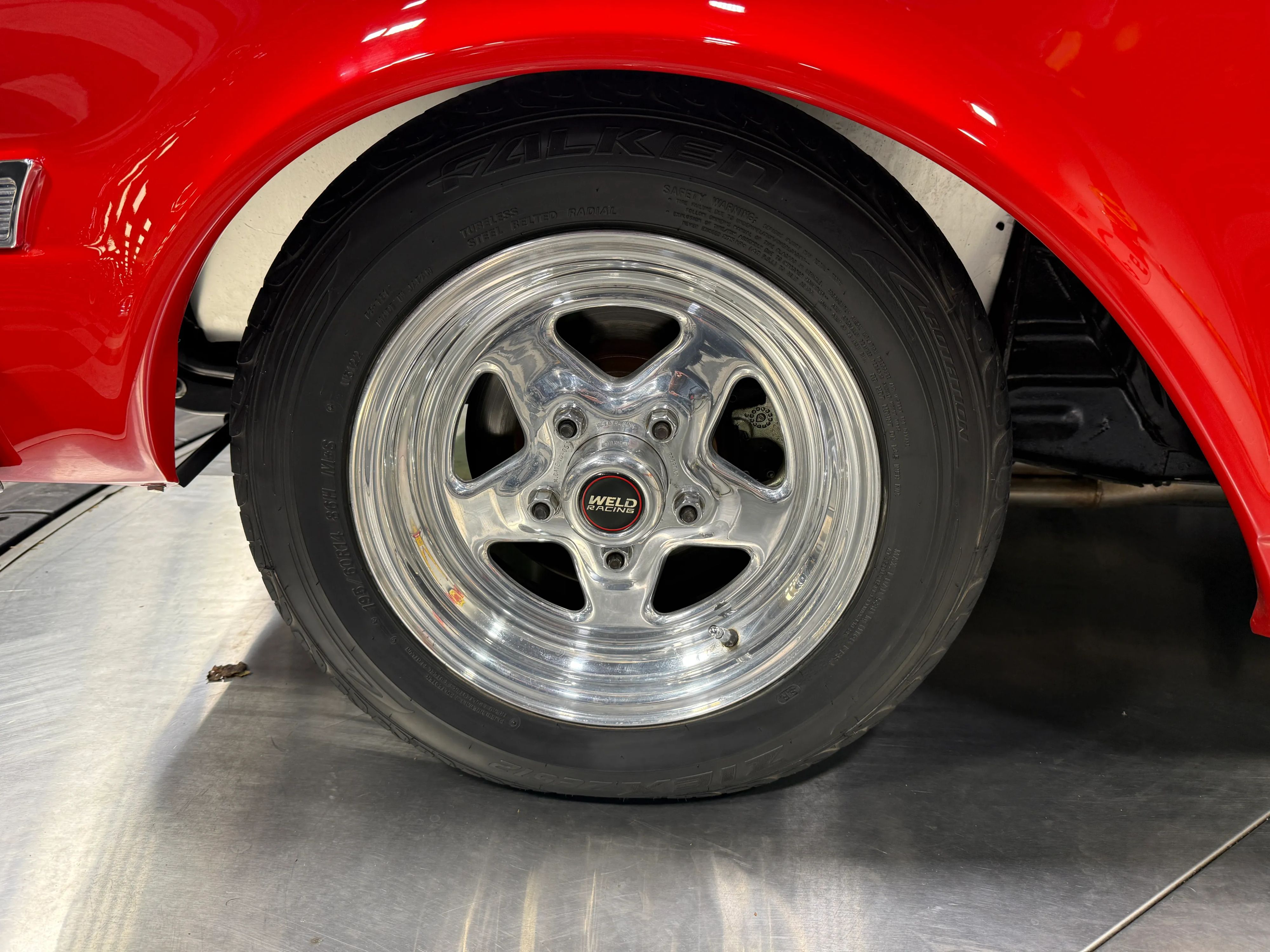 Underneath, a Mustang II front suspension with tubular control arms and coil-overs, paired with a back-half chassis, ladder-bar rear suspension, panhard bar, and rear coil-overs, provides excellent ride quality and traction. The car uses a manual steering rack and four-wheel disc brakes with vacuum assist for confident control.
