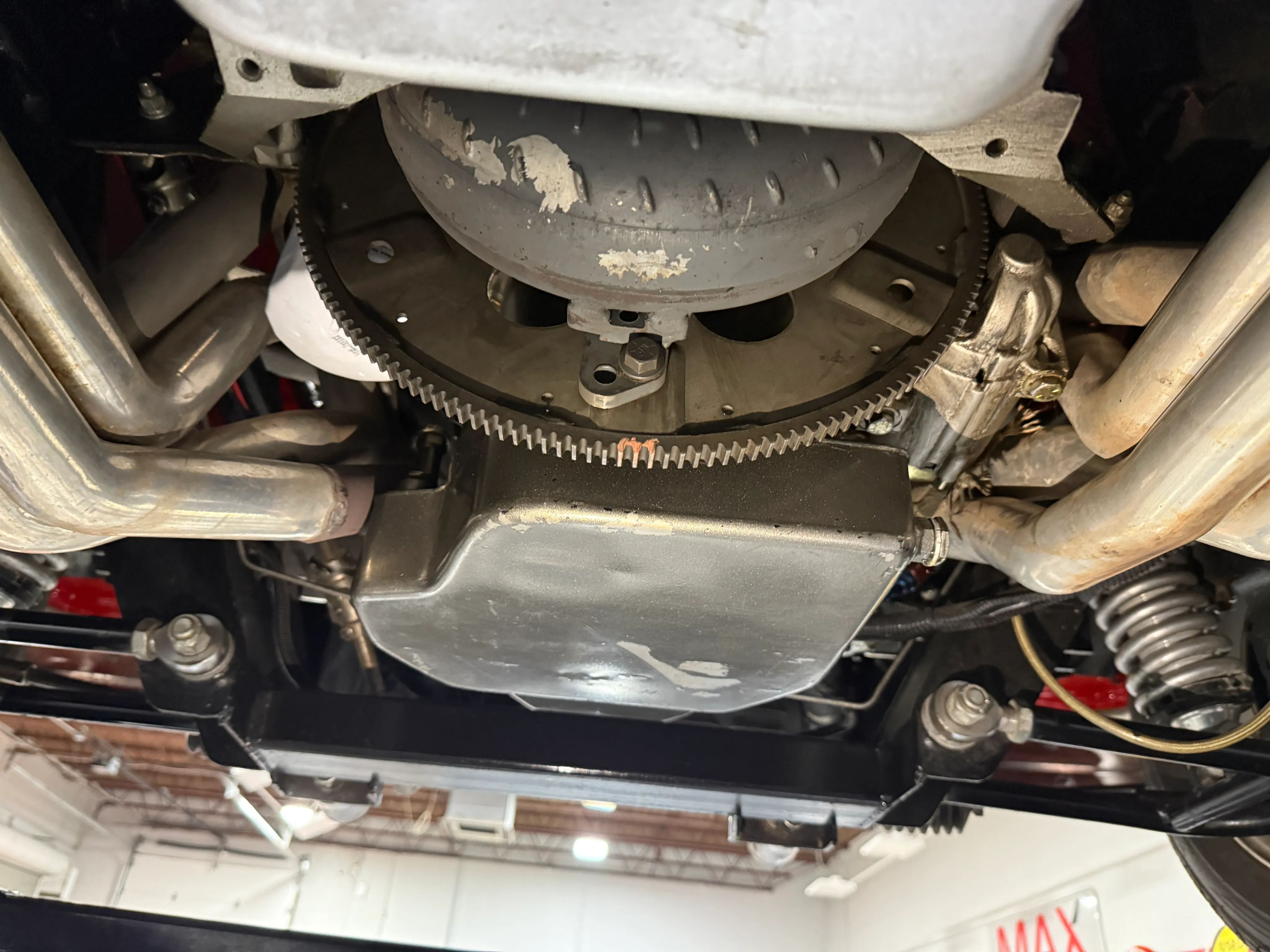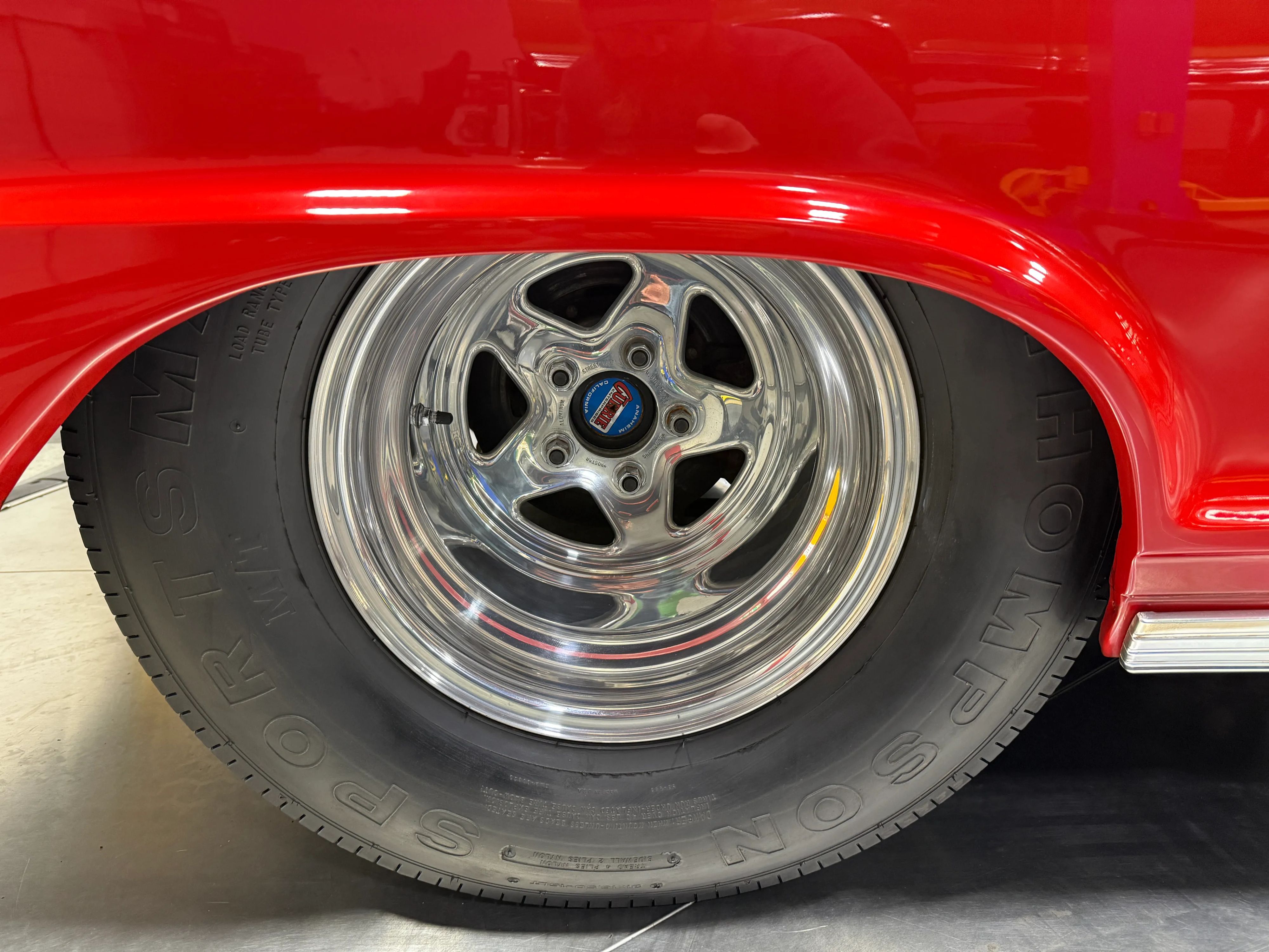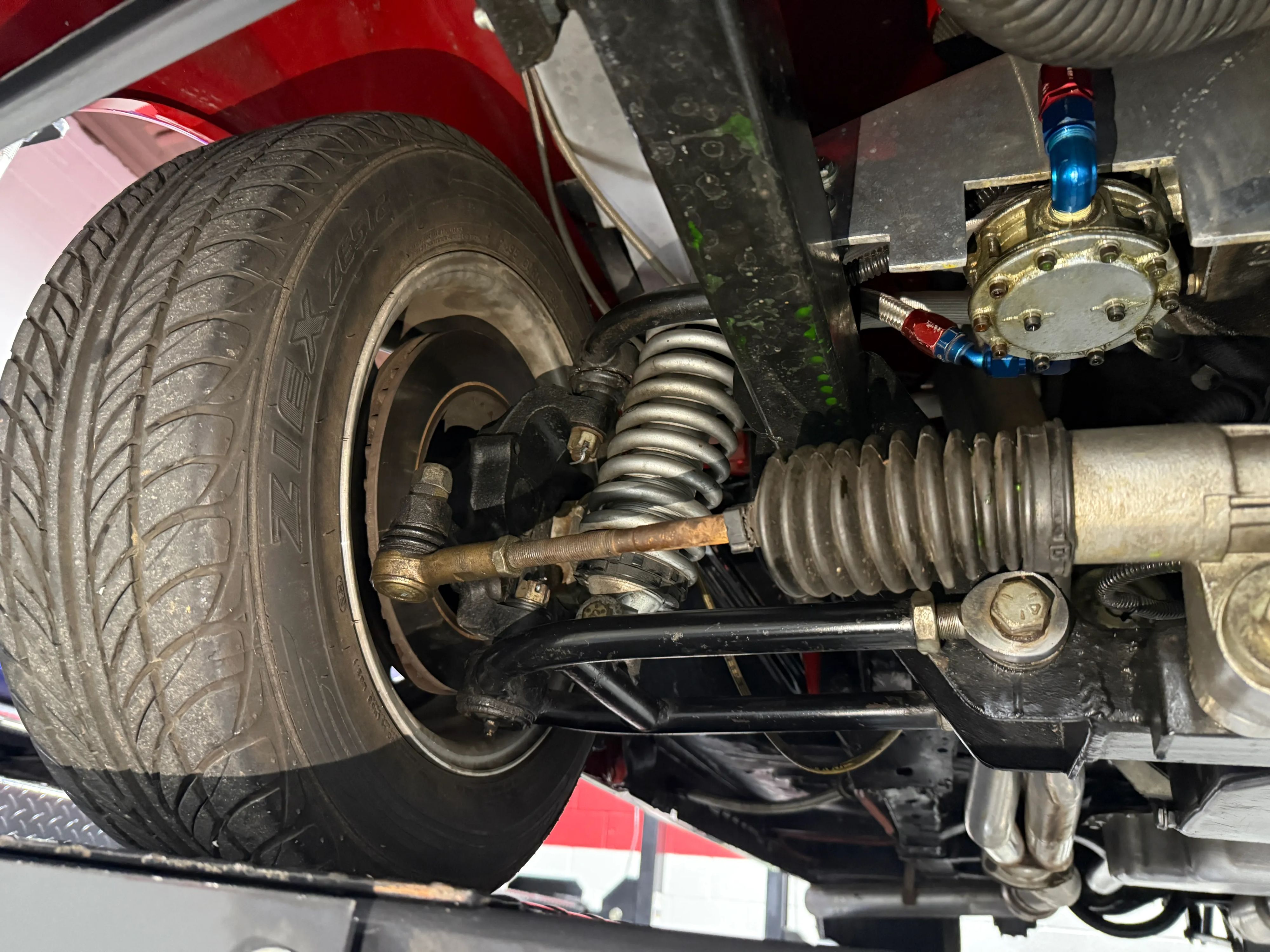 Underneath, a Mustang II front suspension with tubular control arms and coil-overs, paired with a back-half chassis, ladder-bar rear suspension, panhard bar, and rear coil-overs, provides excellent ride quality and traction. The car uses a manual steering rack and four-wheel disc brakes with vacuum assist for confident control.