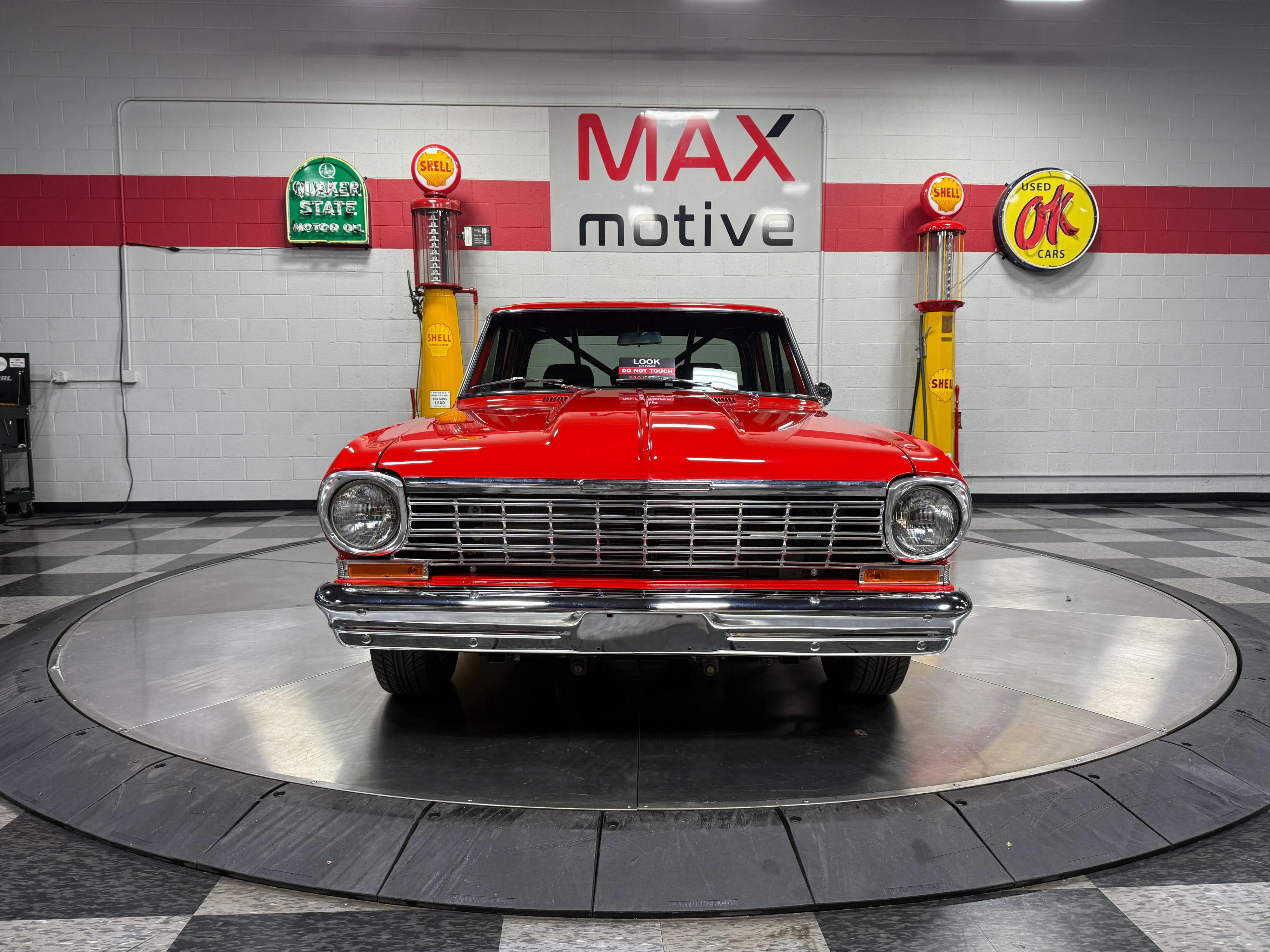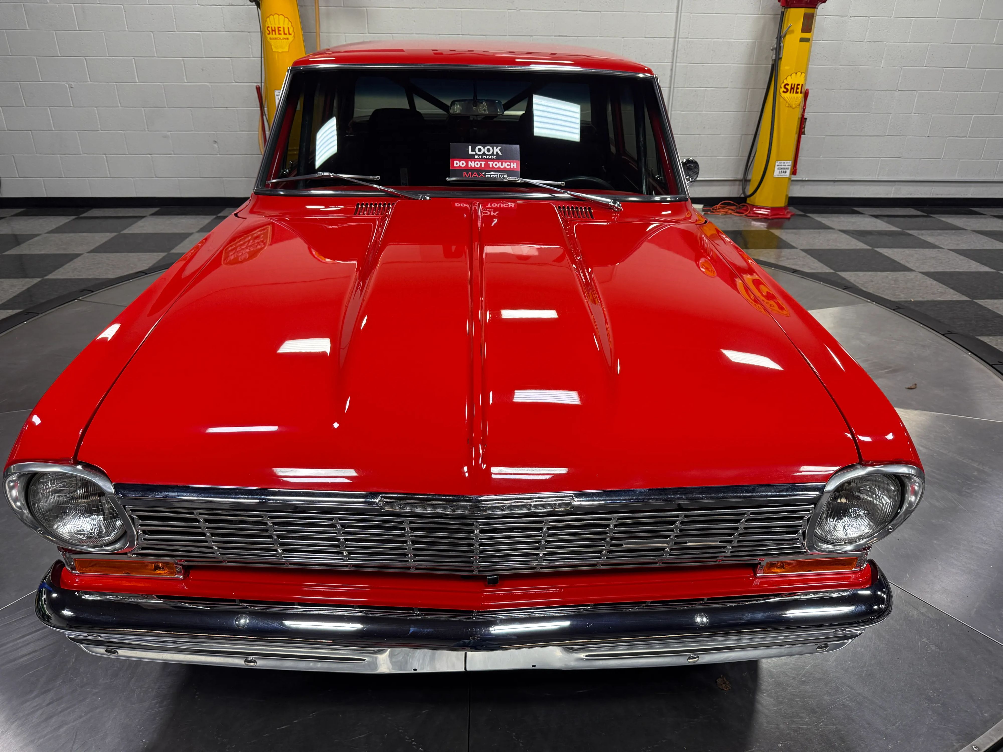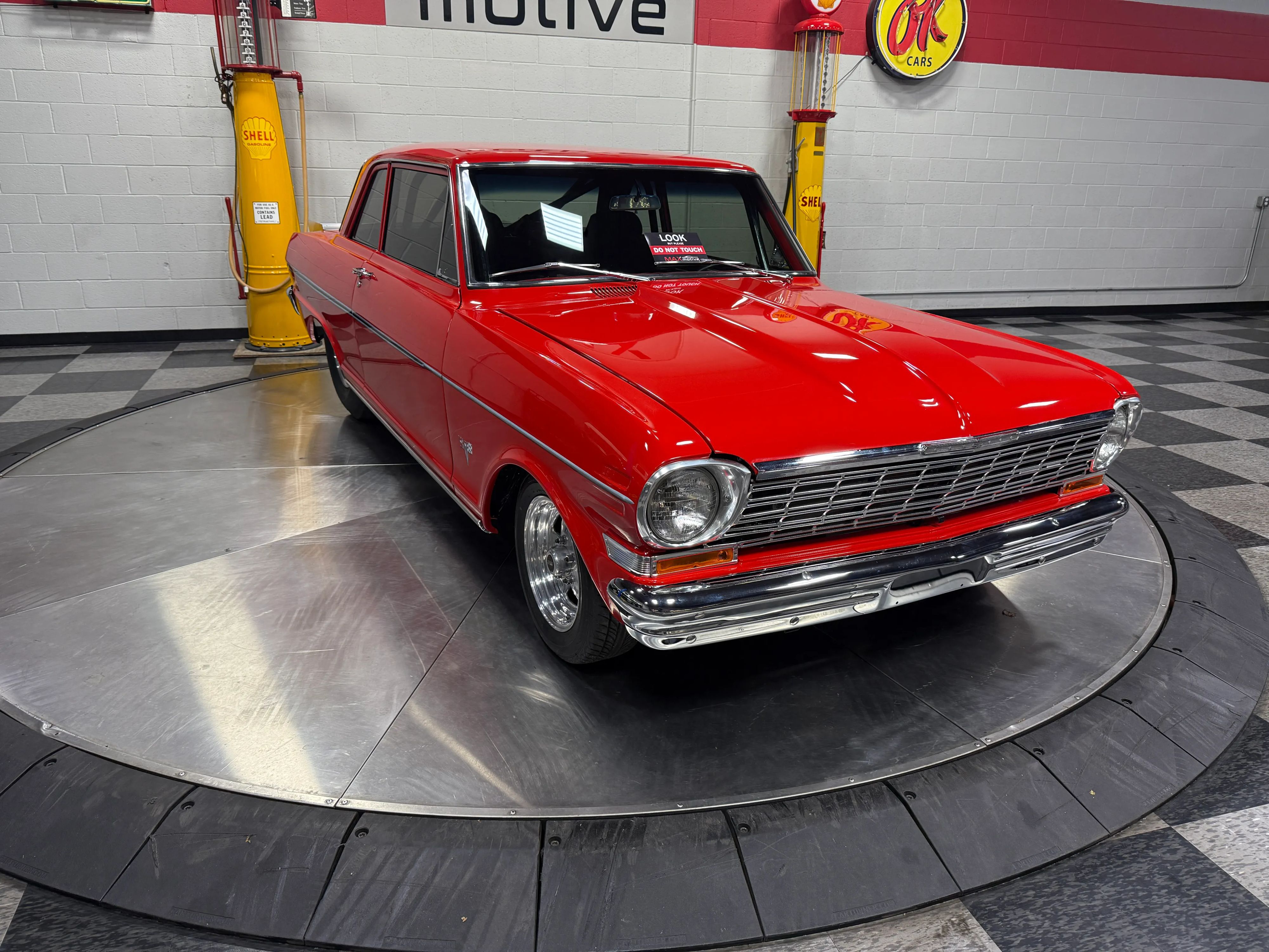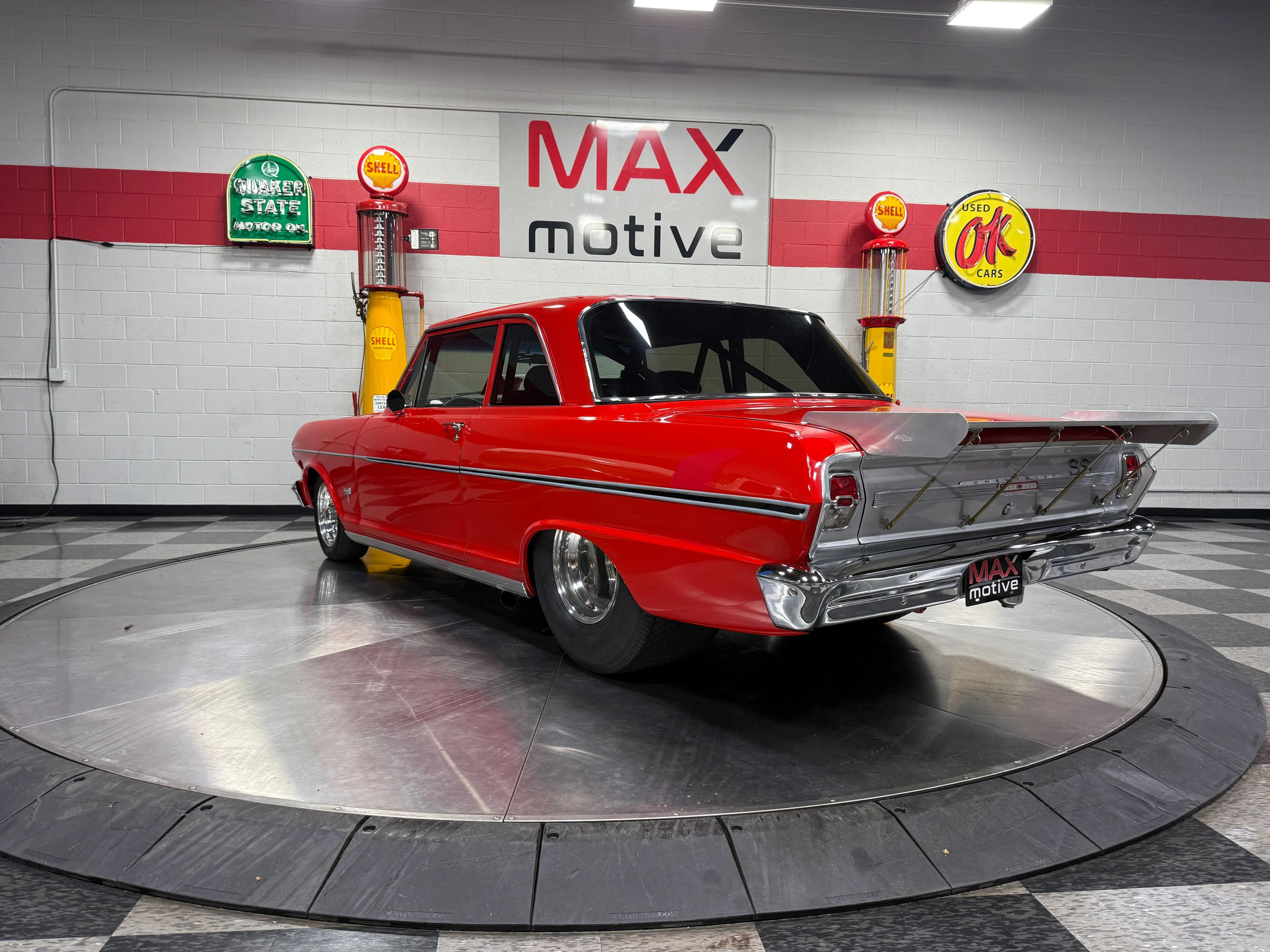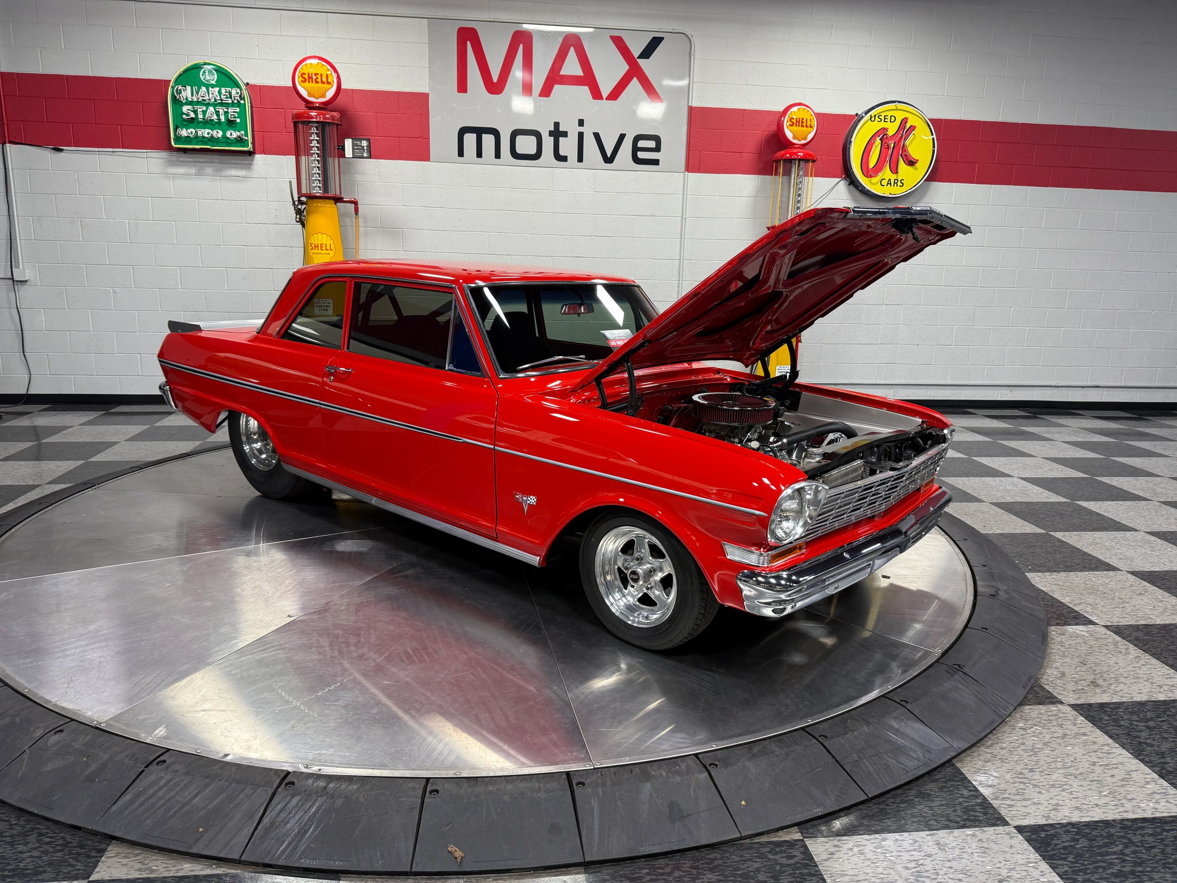 MaxMotive is proud to offer this 1964 Chevrolet Nova Pro Street. Originally a California car, this Nova retains its classic Chevy appeal while incorporating the right performance upgrades for street and show enjoyment. The exterior presents in bright red with airbrushed body side moldings and chrome bumpers and trim. The stance immediately sets the tone, thanks to a tubbed rear, narrowed Currie 9-inch rear, and Weld Racing ProStar wheels wrapped in Mickey Thompson Sportsman tires.