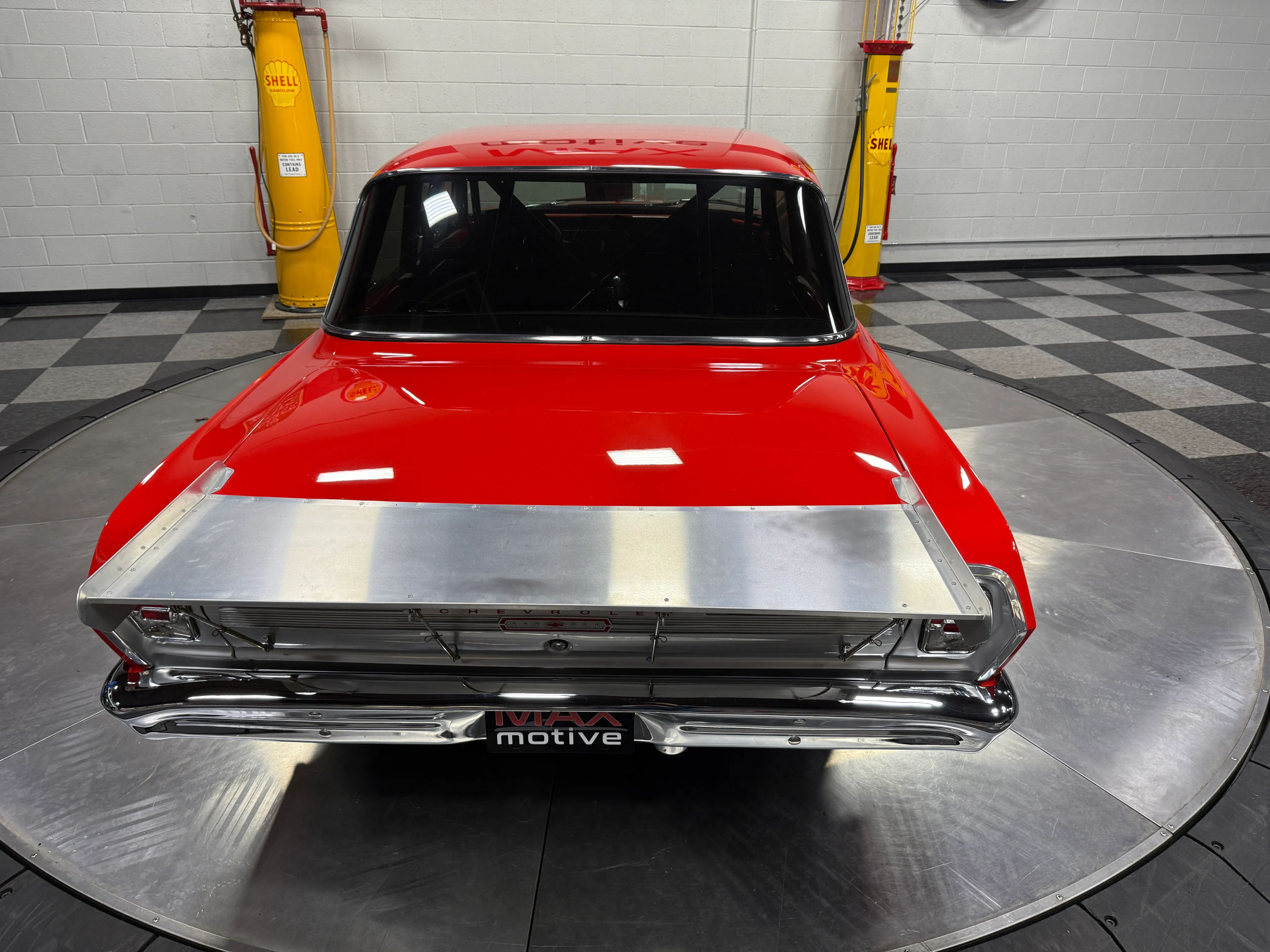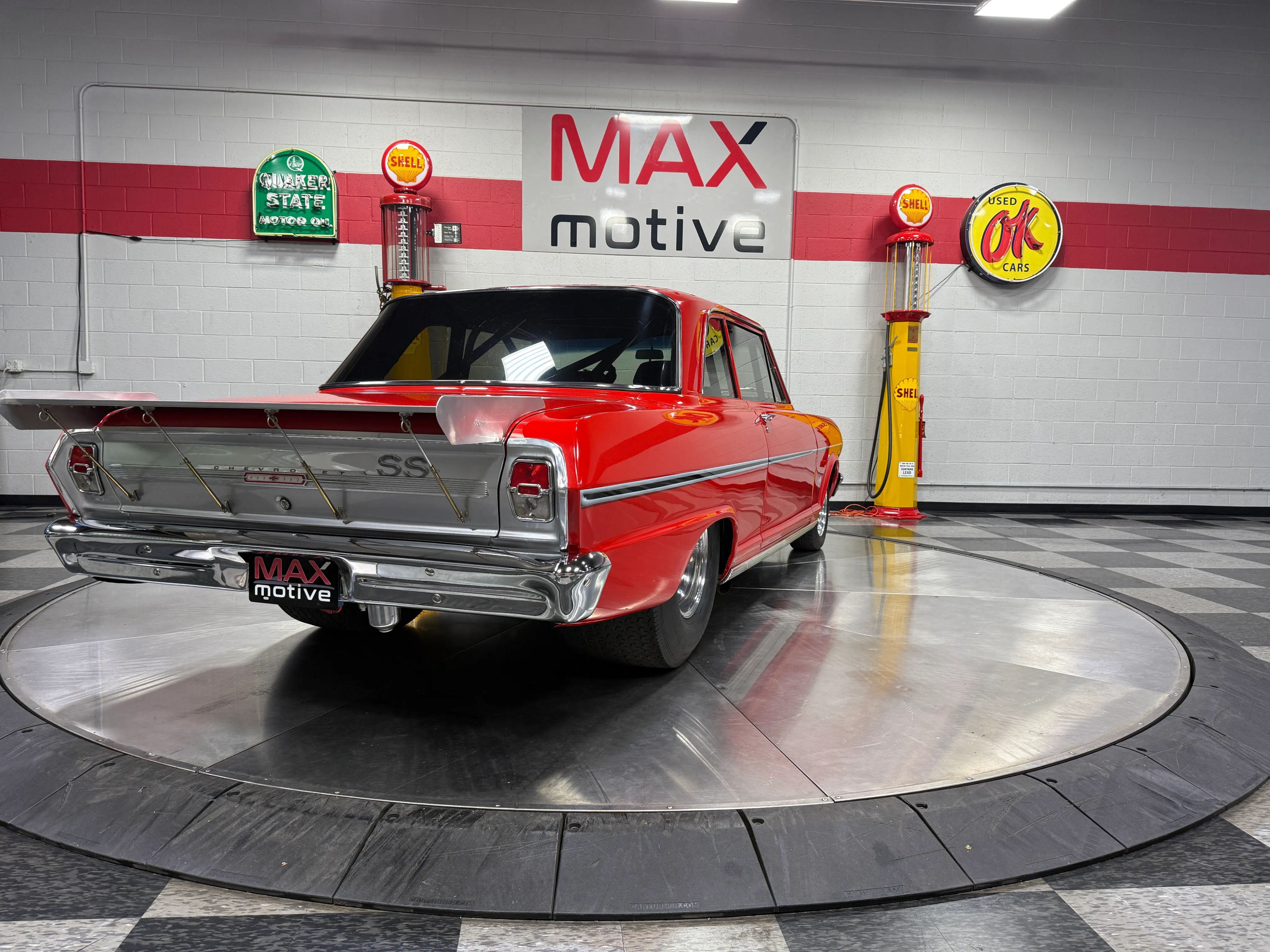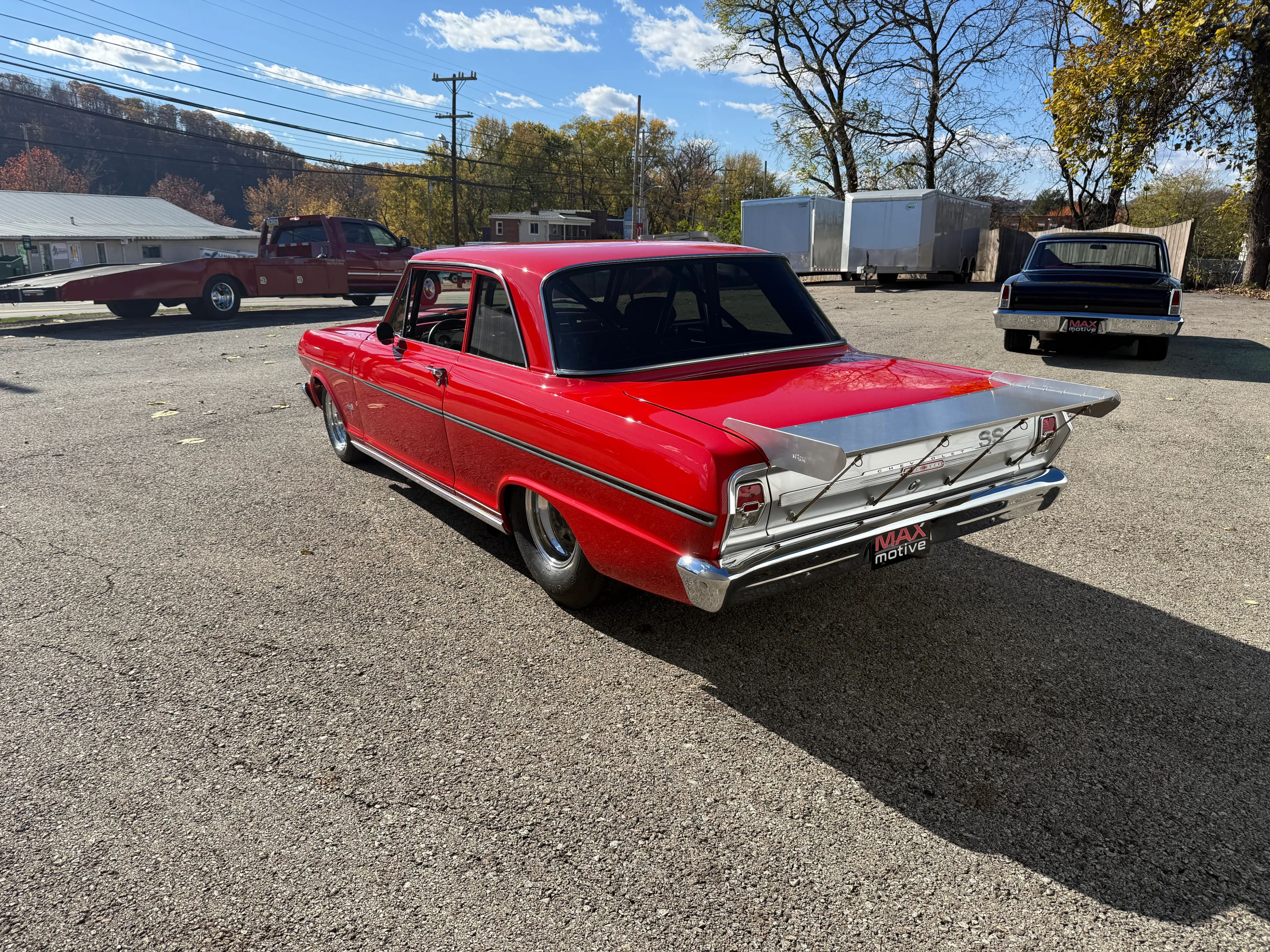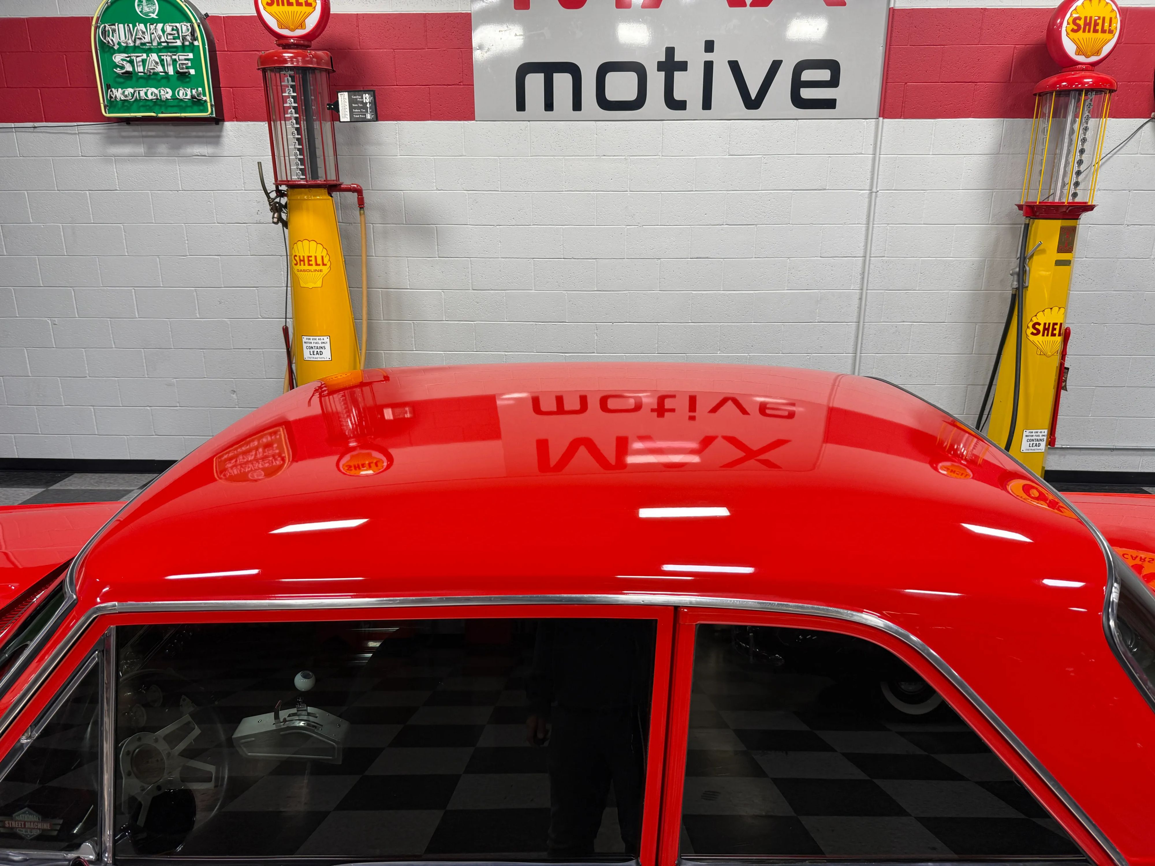 MaxMotive is proud to offer this 1964 Chevrolet Nova Pro Street. Originally a California car, this Nova retains its classic Chevy appeal while incorporating the right performance upgrades for street and show enjoyment. The exterior presents in bright red with airbrushed body side moldings and chrome bumpers and trim. The stance immediately sets the tone, thanks to a tubbed rear, narrowed Currie 9-inch rear, and Weld Racing ProStar wheels wrapped in Mickey Thompson Sportsman tires.