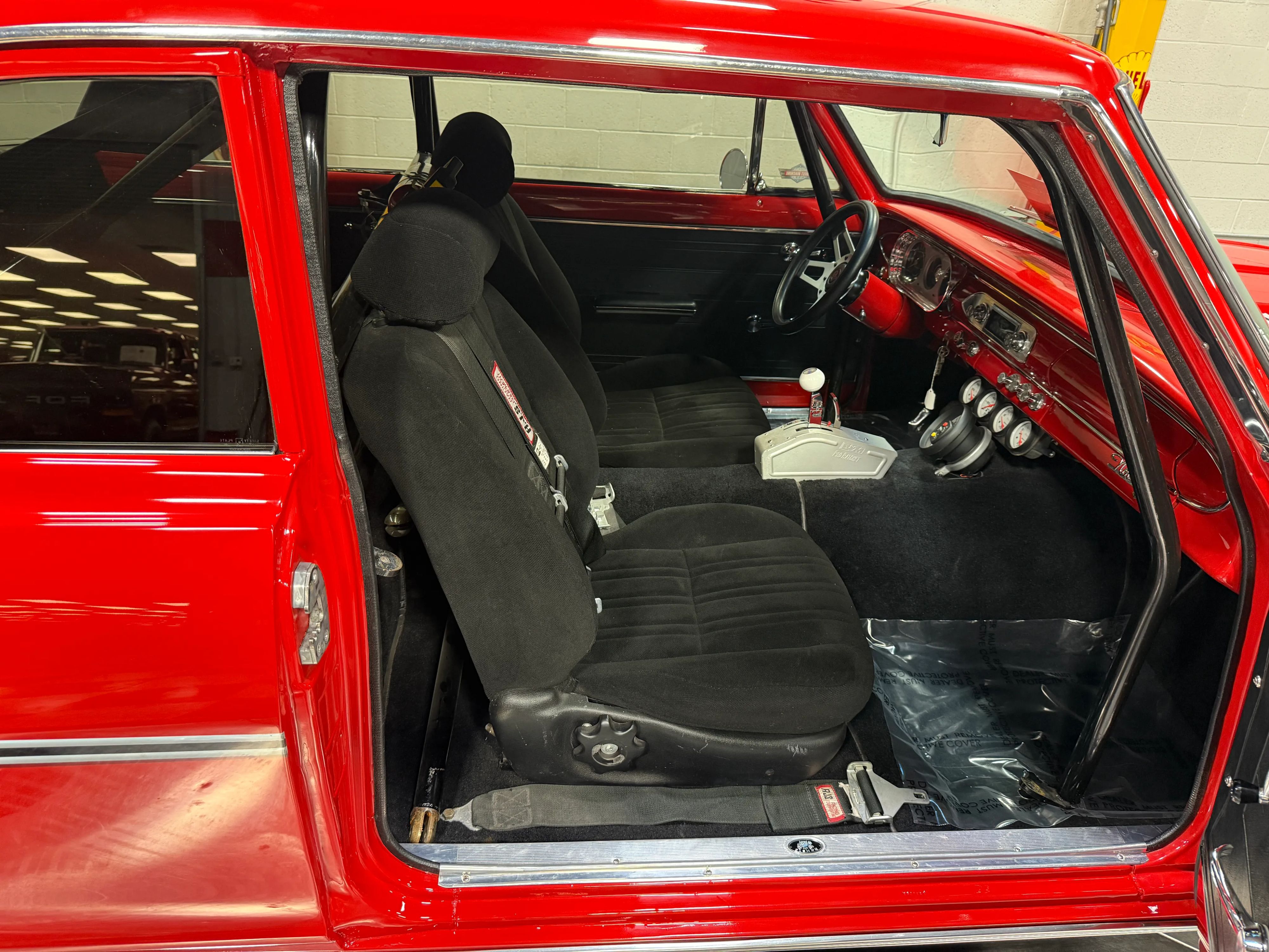 Inside, the Nova features a clean black interior with cloth seats and a red dashboard, highlighted by a B&M Pro Ratchet shifter, Grant GT steering wheel, and a complete set of Autometer Phantom gauges including a 10,000-rpm memory tach. Safety equipment includes a 1½-inch 8-point roll cage with swing-out door bars and RJS 5-point harnesses. The odometer shows 90,987 miles (mileage exempt due to age). This Nova blends vintage Chevy style with a street-friendly Pro Street personality the kind of car you can drive, enjoy, and proudly show anywhere.