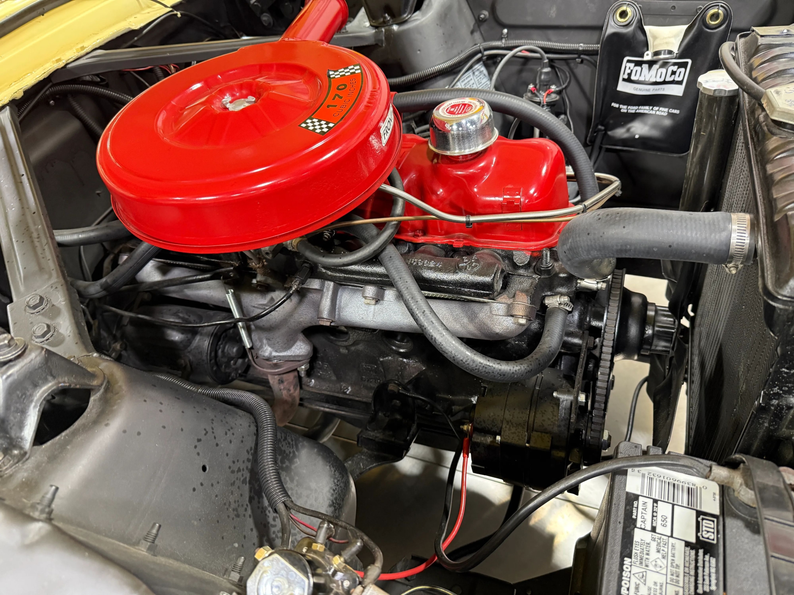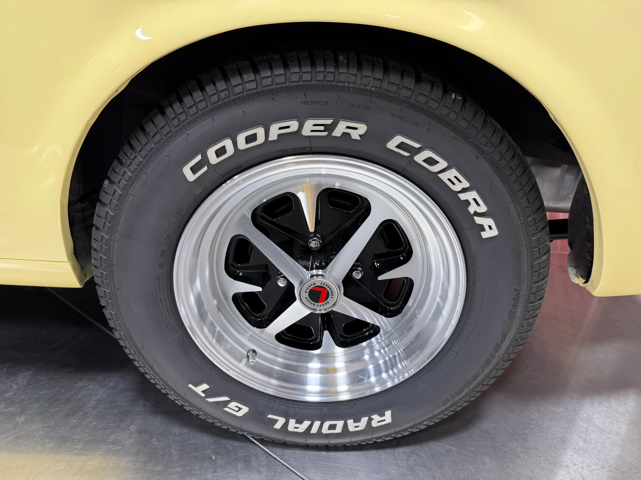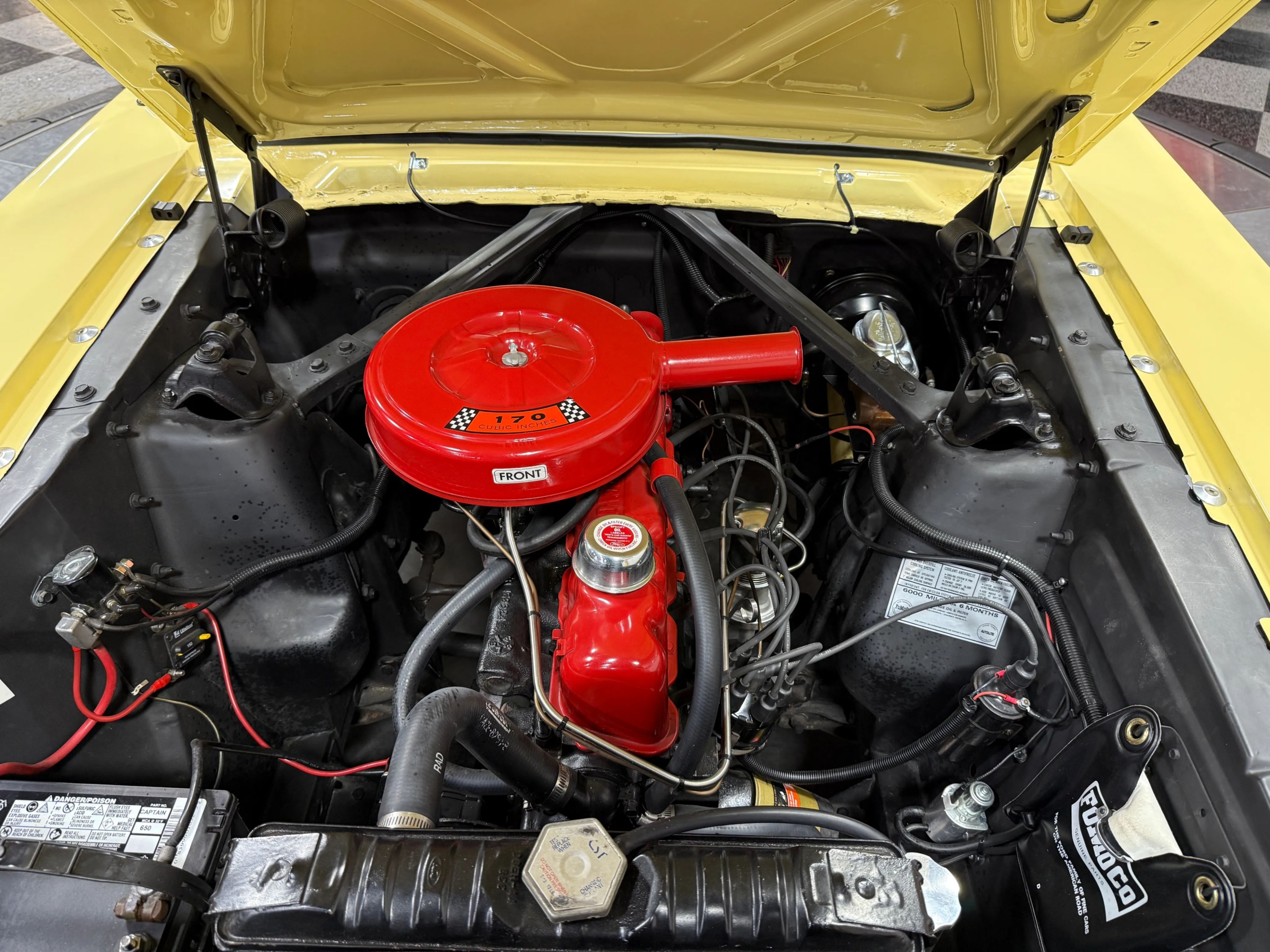 Under the hood sits the reliable 200 CI Inline-6 engine, backed by a 7-inch stock rear end. Stopping power is enhanced with a split master cylinder upgrade for added safety. The car rides on stylish Scott Drake Legendary 15-inch wheels, wrapped in Cooper Cobra P215/65R15 tires for a confident, period-appropriate stance.