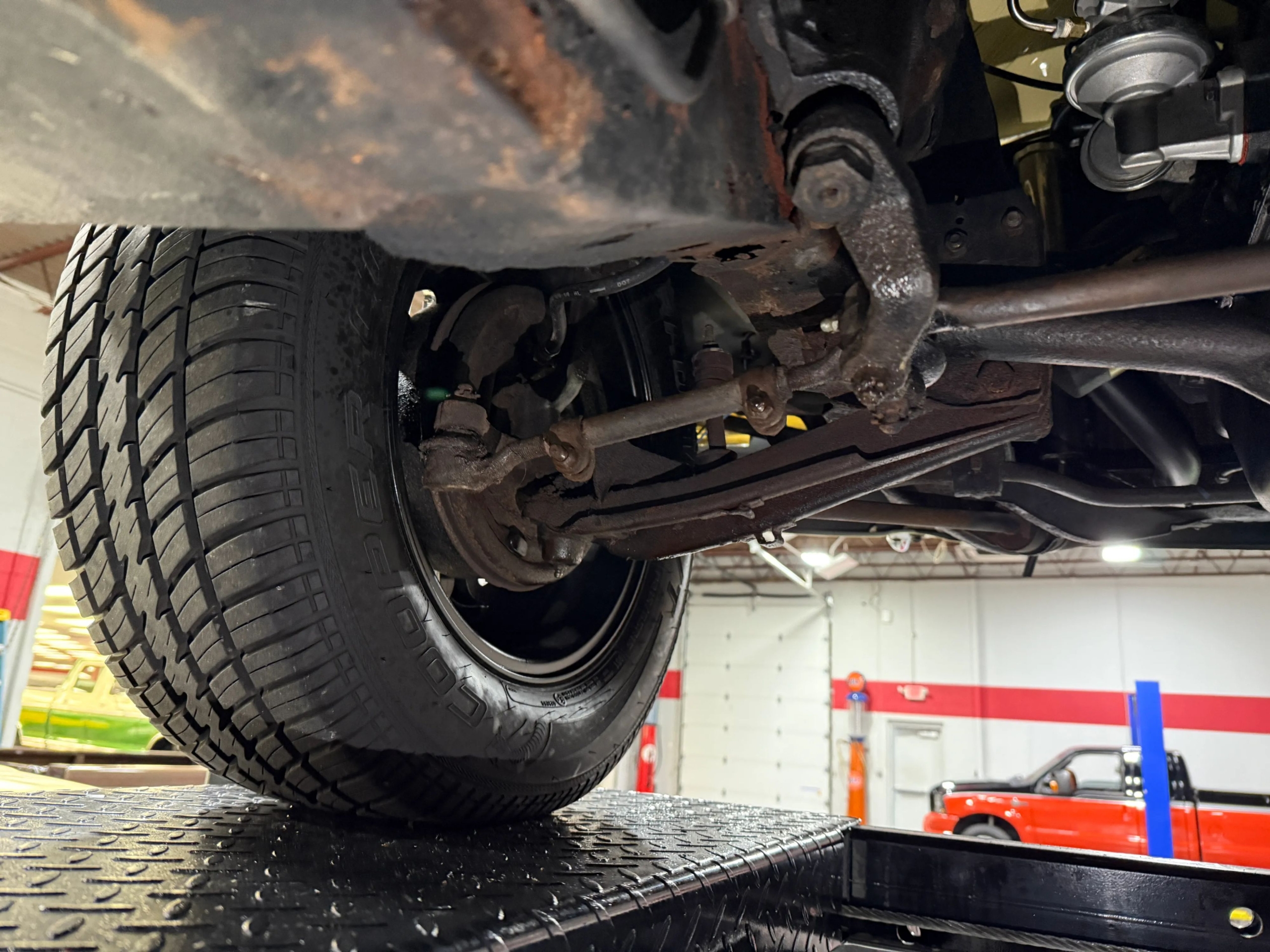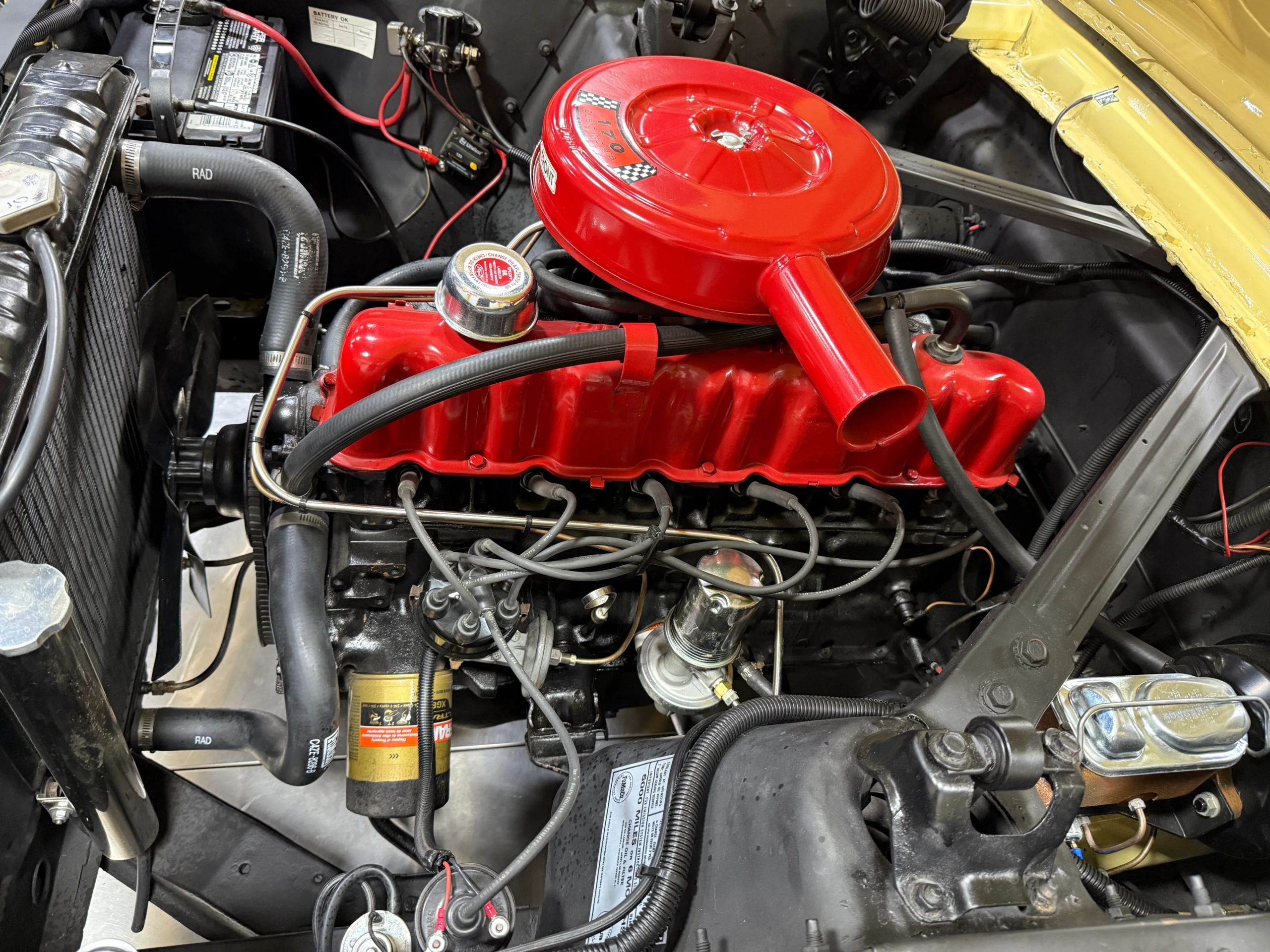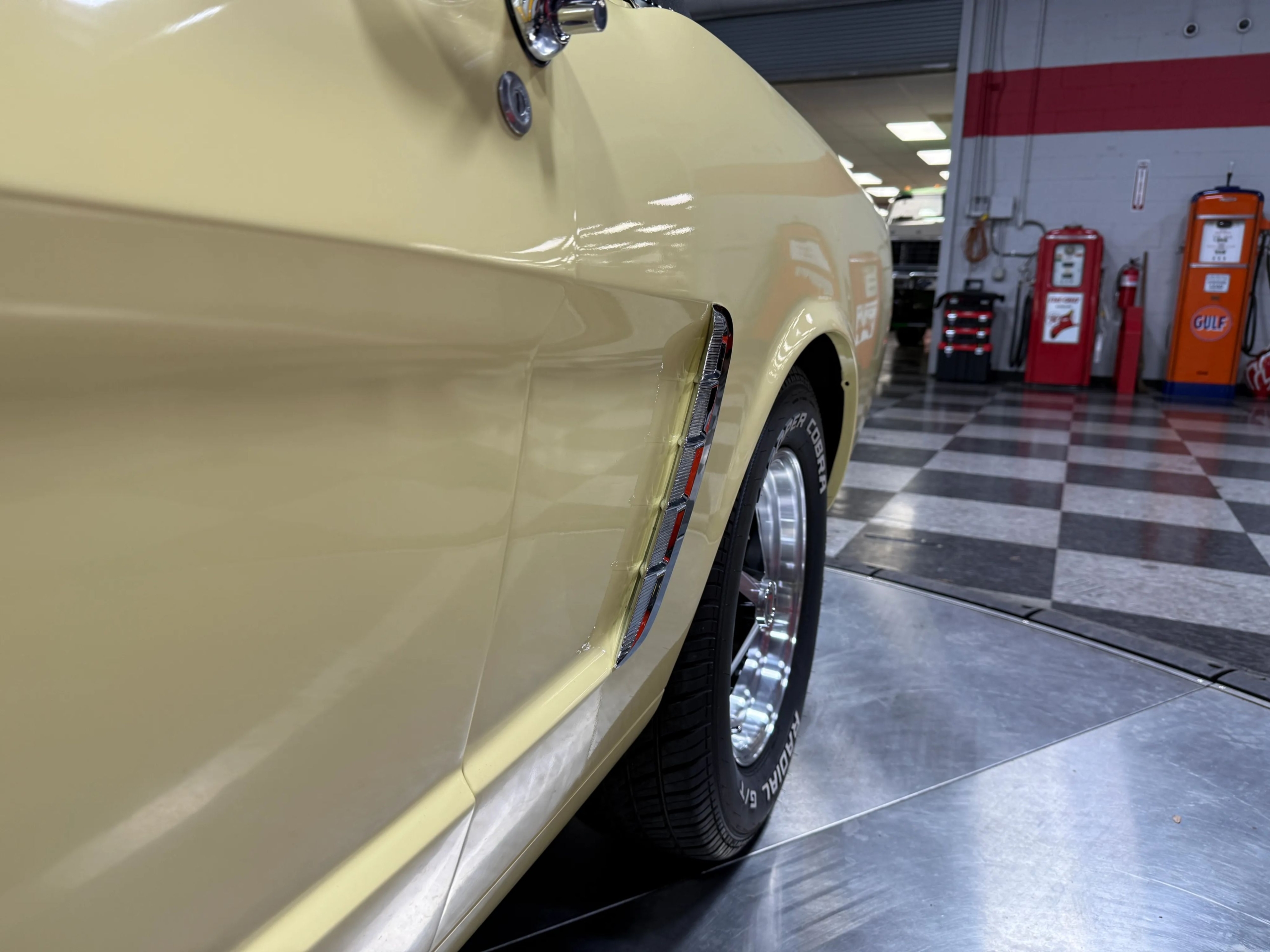 Under the hood sits the reliable 200 CI Inline-6 engine, backed by a 7-inch stock rear end. Stopping power is enhanced with a split master cylinder upgrade for added safety. The car rides on stylish Scott Drake Legendary 15-inch wheels, wrapped in Cooper Cobra P215/65R15 tires for a confident, period-appropriate stance.