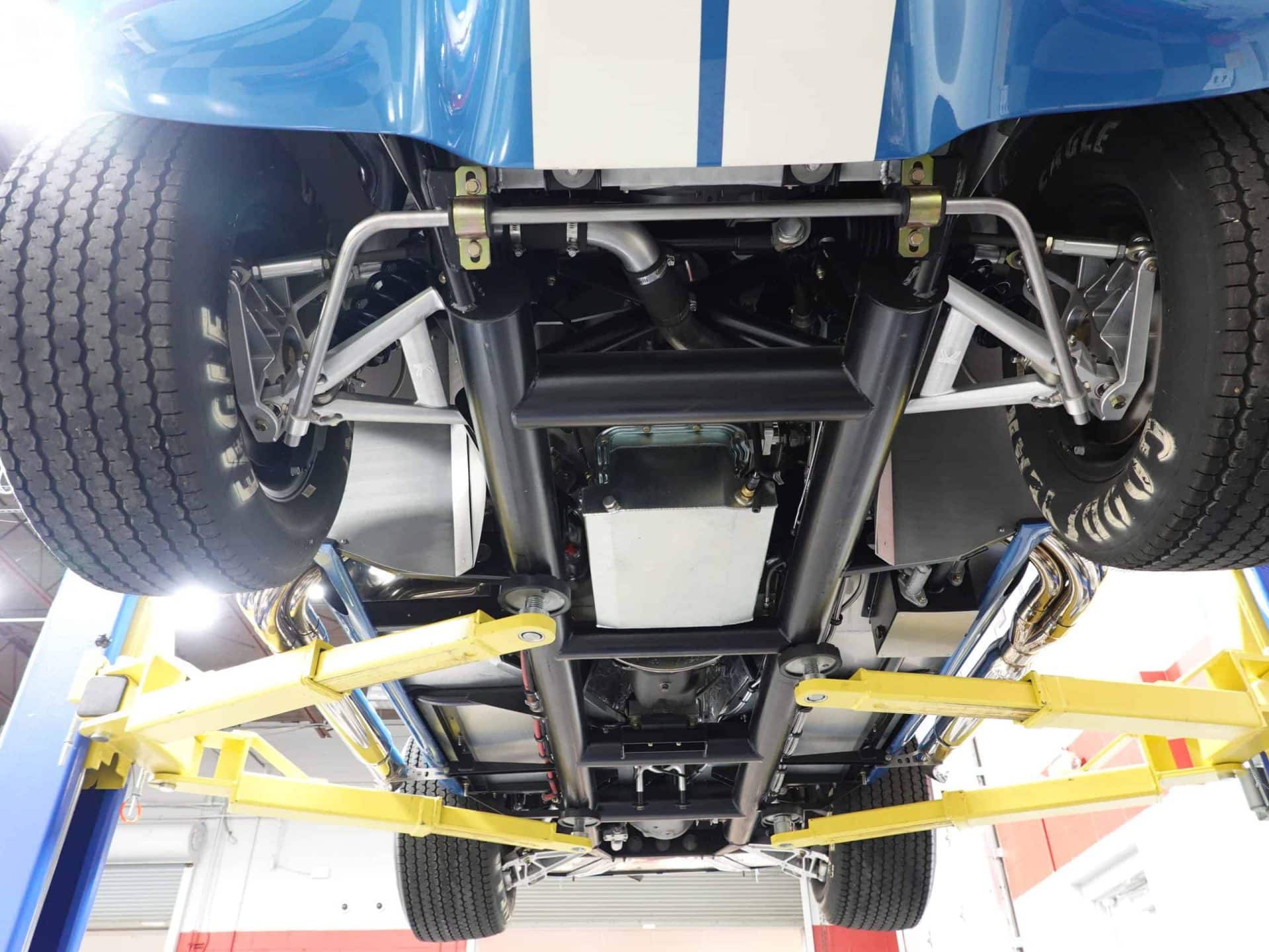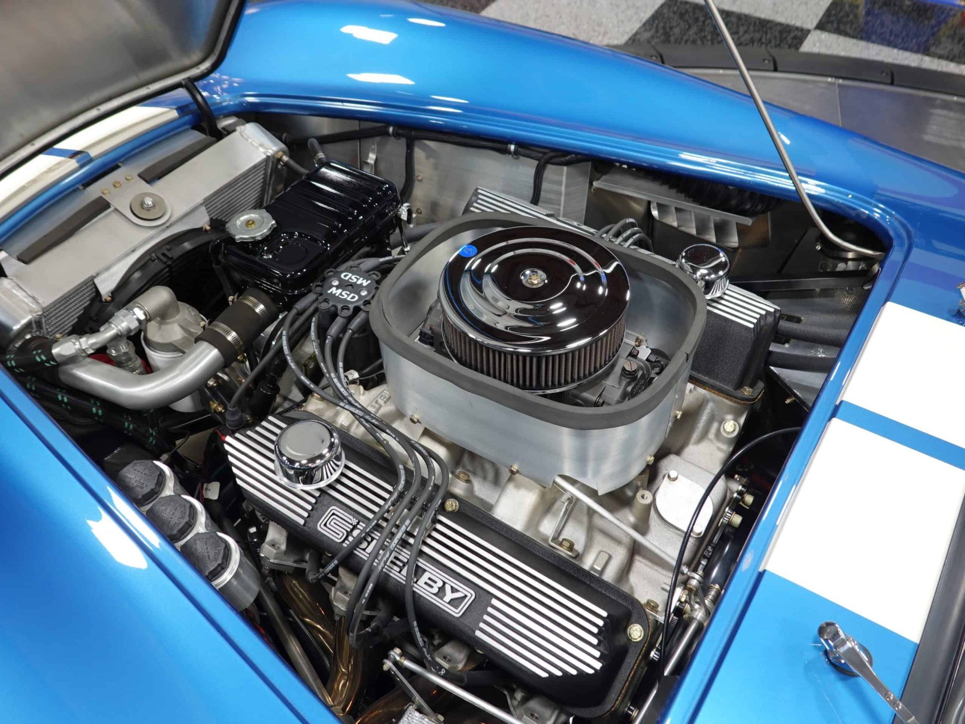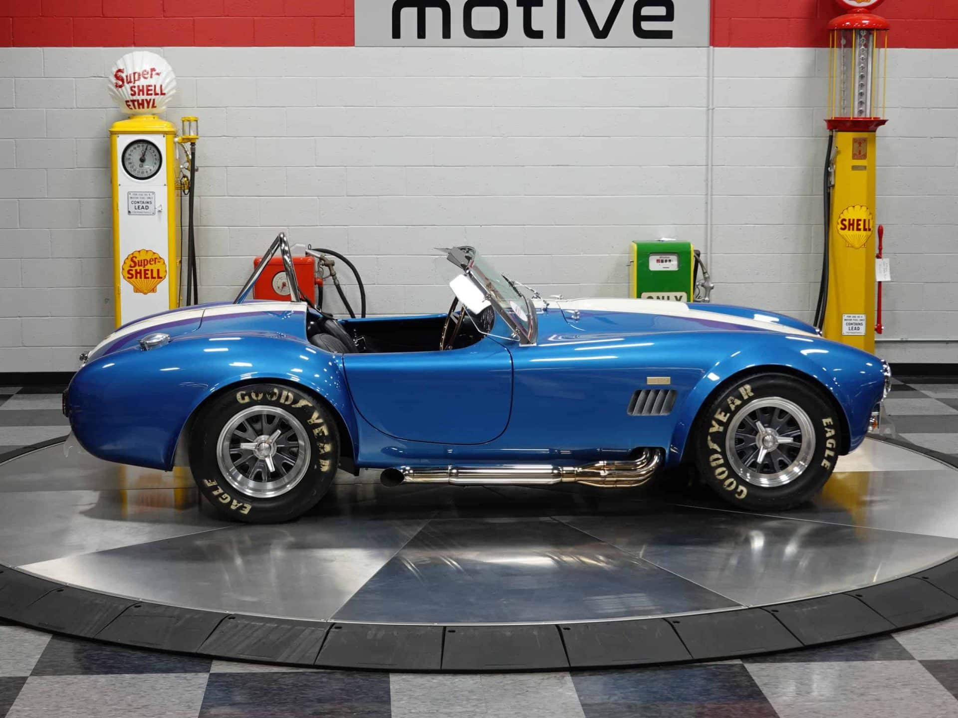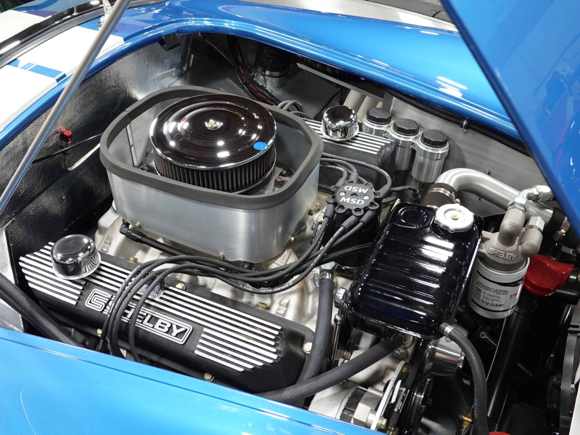 The Shelby Cobra is one of the world’s most famous and recognizable sports cars. Like Carroll Shelby himself, the car is a true icon in the world of high performance. It spawned other great nameplates like the Shelby GT500, Torino Cobra, and the 428 Cobra Jet engine. This CSX4000 Series 427 S/C from Shelby Automobiles Inc. is everything the 1965 models were, and more. The authenticity is documented by Shelby CSX numbers and a manufacturer’s statement of origin (MSO) from Shelby Automobiles. Improvements include a stronger steel frame and better alloys used in the components, plus better cooling and additional heat shielding to make the car safer and more driveable without losing any of its original character. This 1965 Shelby Cobra SC is one of fifty 50th Anniversary Editions. It’s one of 29 with an aluminum body, and one of only three that were painted. The stripes harken back to Carroll Shelby’s history at LeMans. The aluminum block 427 is the product of the combined efforts of Shelby Motor Company and Roush-Yates. With it comes a complete dyno sheet documenting the brutal output of the engine at near 600 horsepower. There’s also a build book showing you exactly how the car was built and how it’s equipped, fascinating and enjoyable reading for sure. But there’s nothing that compares with getting in the seat behind all those gauges with Carroll Shelby’s signature and firing it up. The ultra-high-performance intent is clear. Big Stroud safety harnesses, a fire suppression system, 10½ inch Goodyear Eagles, Halibrand-style wheels with knock-off spinners, and chrome roll bar are obvious clues. Then when you hear this beast run, you’ll know. The storied history and pedigree of the Shelby Cobra is unmatched. And the power to weight ratio on this car takes you to performance levels approached by few other cars in the world. With just 60 test-only miles on it, we at MAXmotive are absolutely thrilled to offer you this spectacular new 50th Anniversary Edition 1965 Shelby Cobra CSX4000 Roadster.