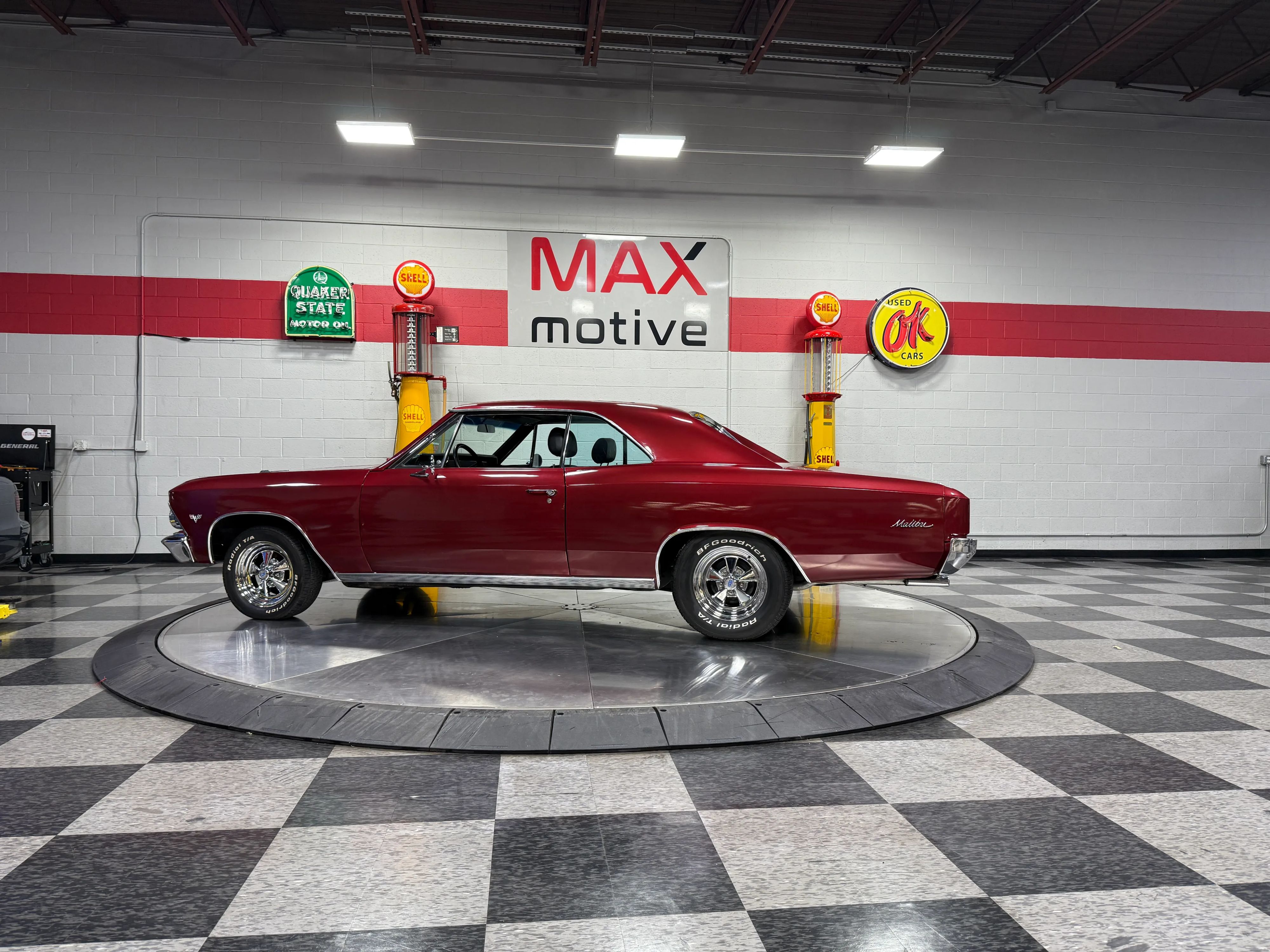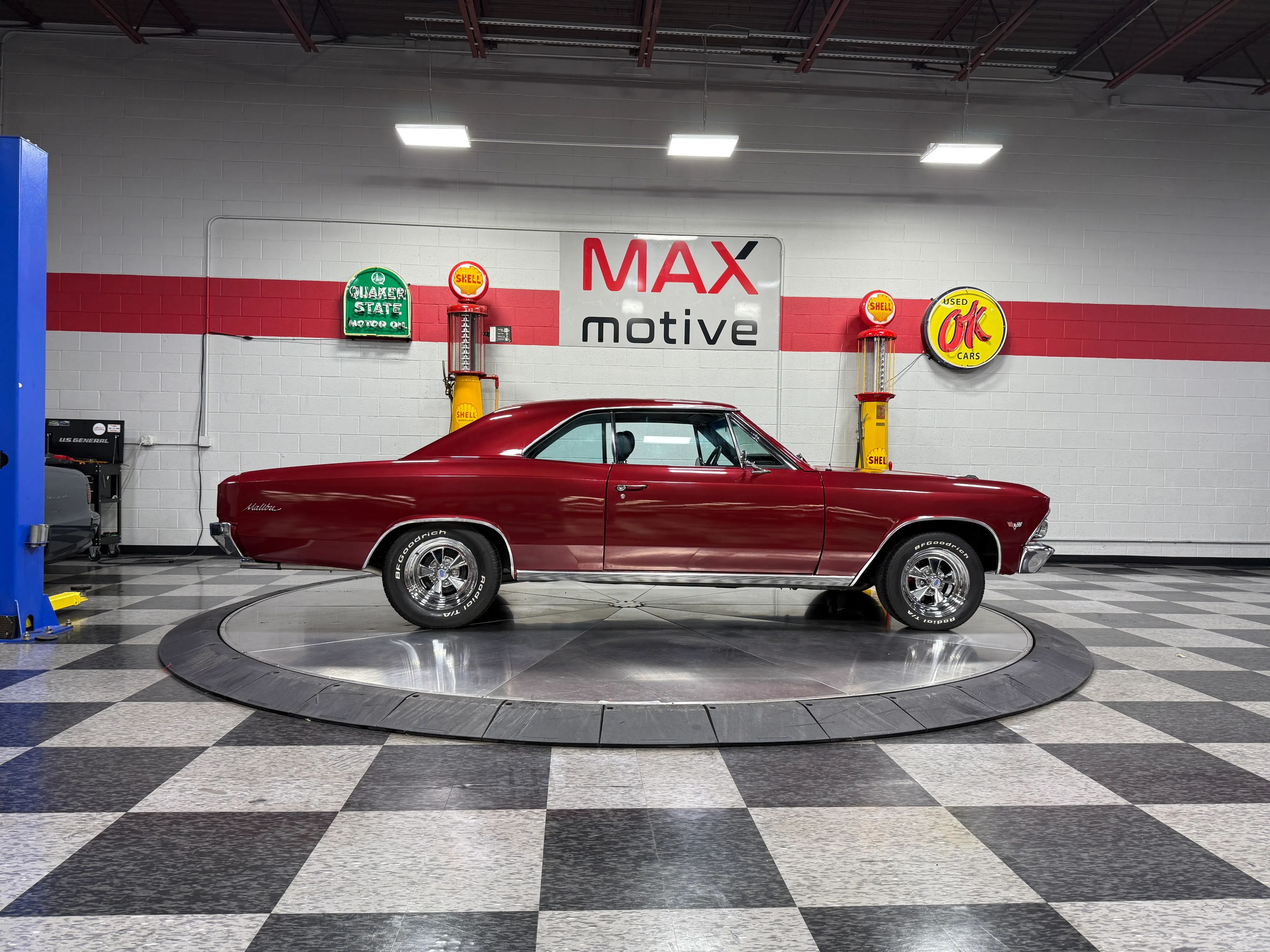 Riding on rally wheels, this Malibu delivers the perfect balance of classic looks and upgraded drivability. A clean, well-sorted example ready for cruise nights or weekend drives, this 66 Malibu turns heads wherever it goes