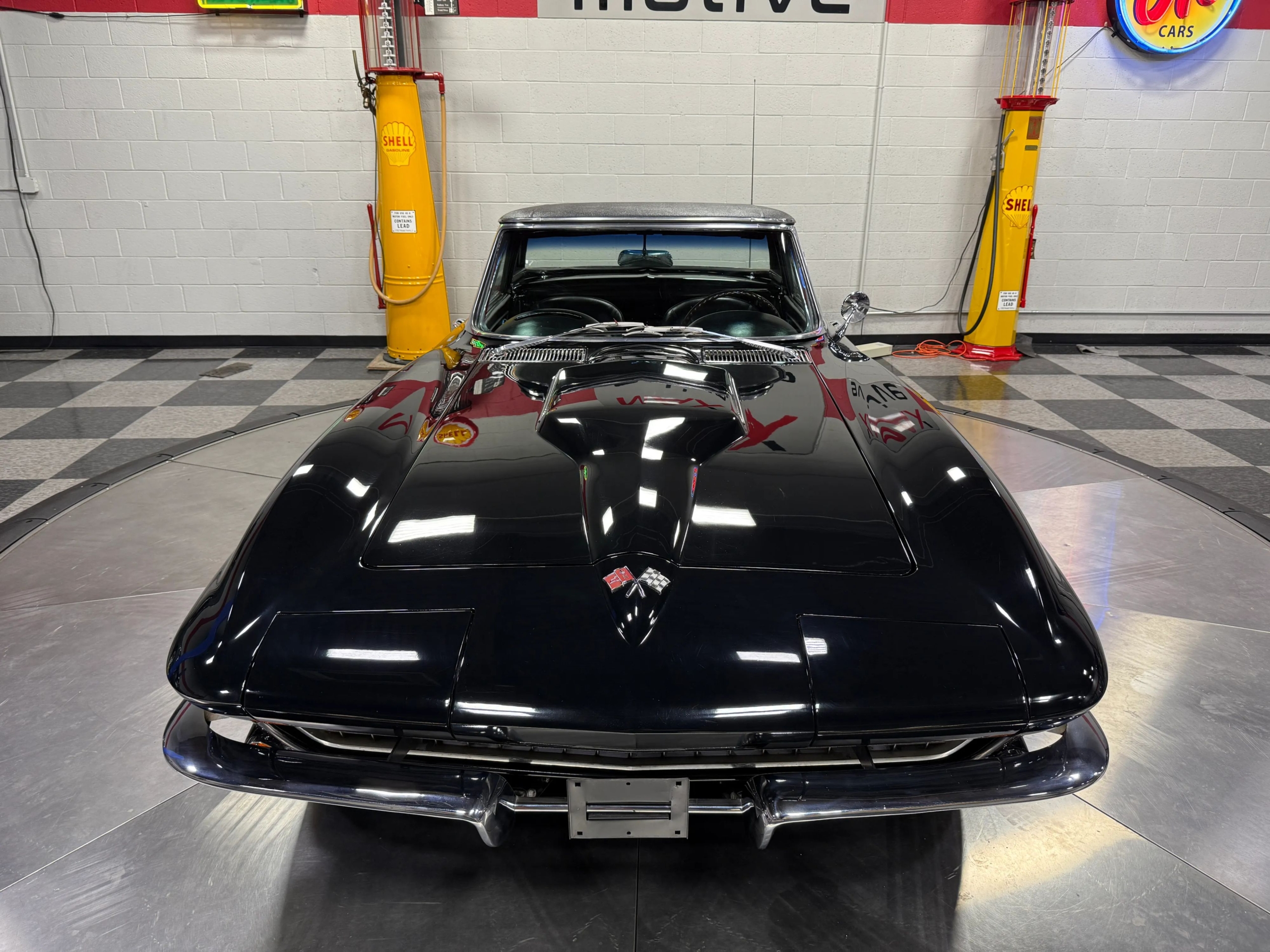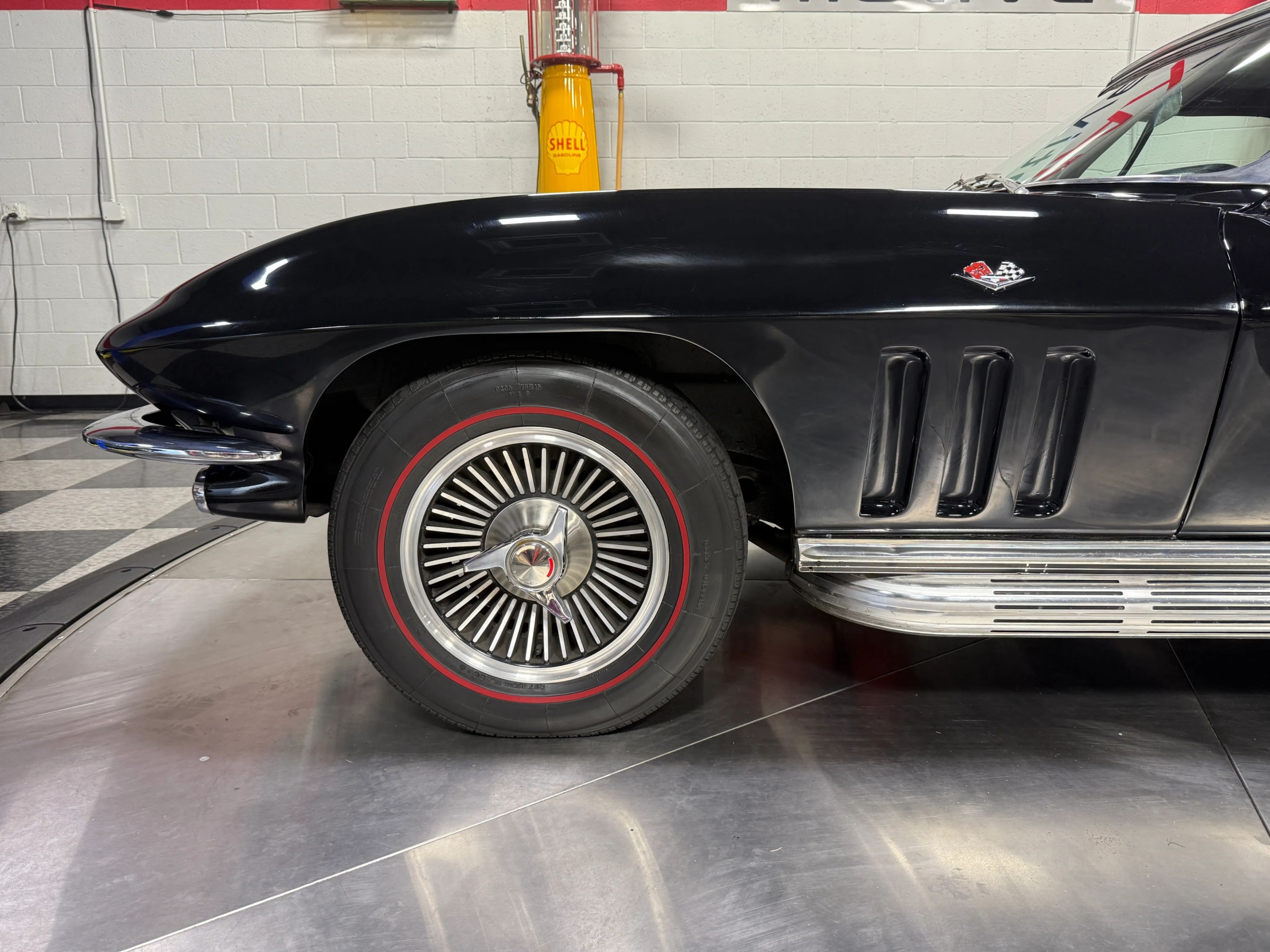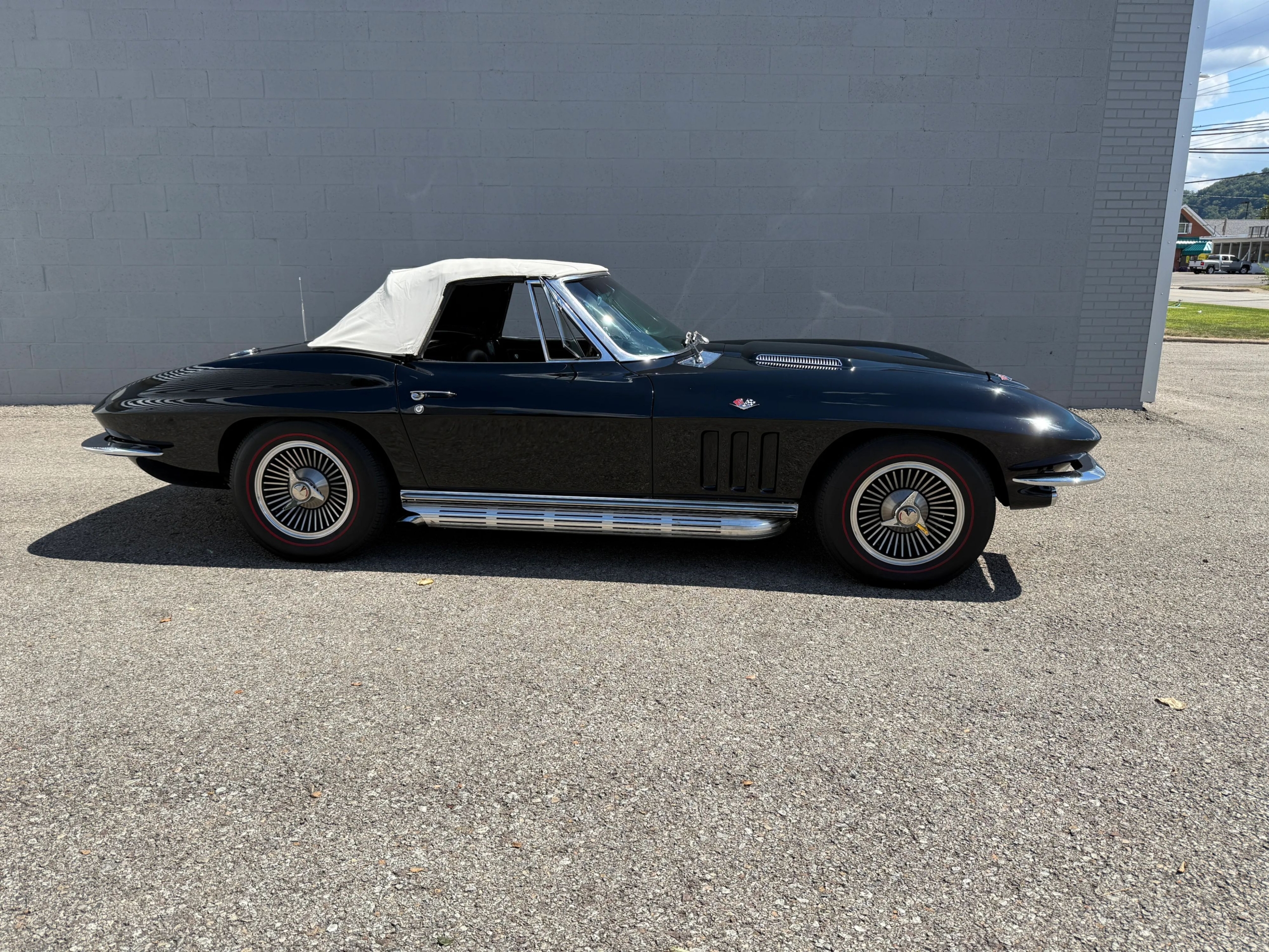 Maxmotive is pleased to offer this gorgeous 1966 Corvette C2 for sale. This Corvette has a 327 V-8 producing 350 horsepower engine. Although this is a non numbers matching engine block, the block numbers are shown in the photos. The small block proudly sports an Edelbrock carburetor. The engine is paired to a Muncie 4 speed manual transmission, with a new clutch installed recently. Exterior looks on this black beauty are accented by a big block hood, beautifully offset by iconic Corvette side pipes. 15 Kelsey Hayes wheels matched to Coker classic tires set up the stance of the Corvette. Two tops are included with this stunner, a black hard top, and a white soft top with a plastic back window. Power steering and power disc brakes make driving this piece of Americana a breeze. It is noted the clock, fuel gauge, and power antenna are non operational. For more pictures and information, check out our website www.maxmotive.com
