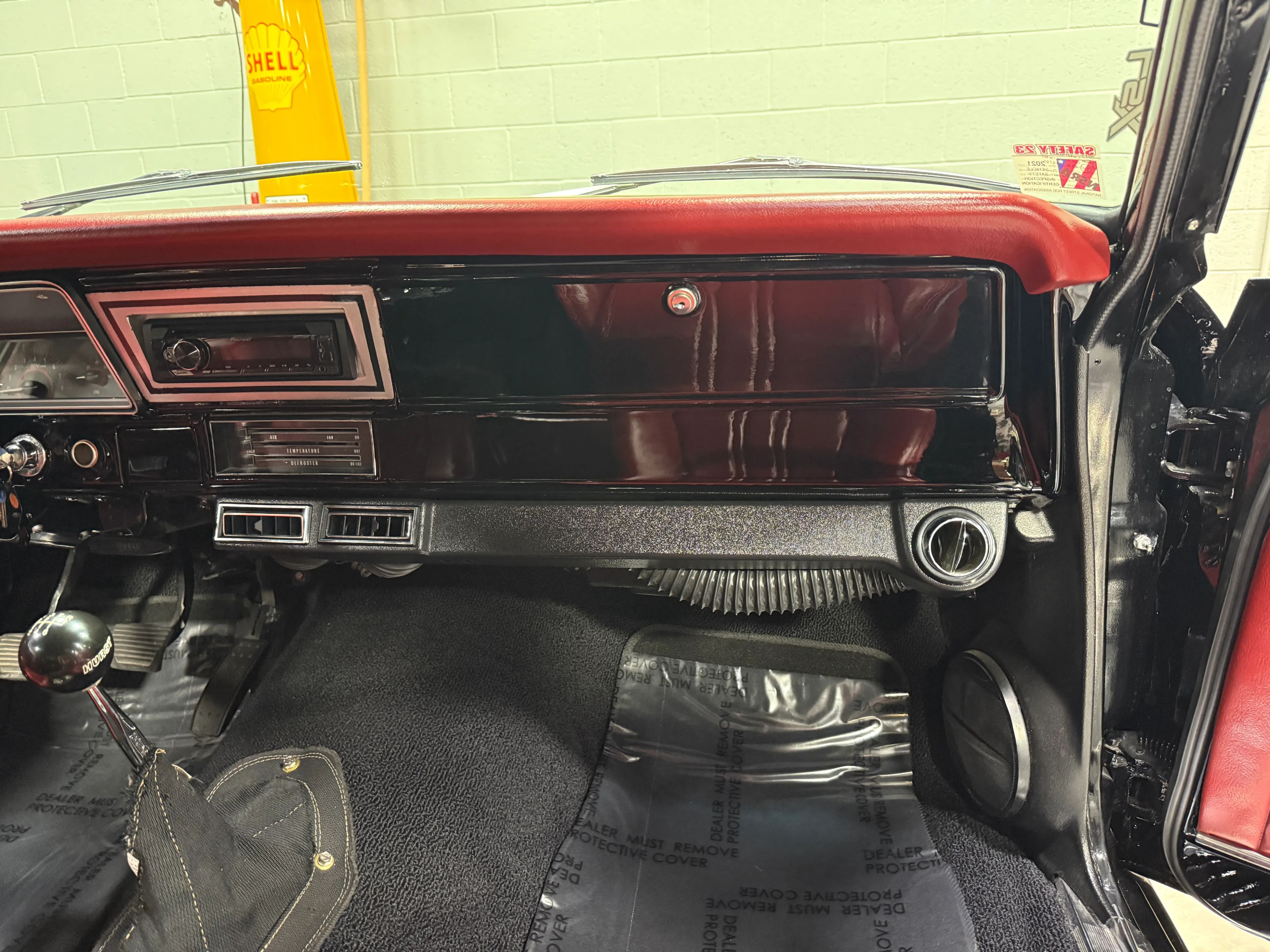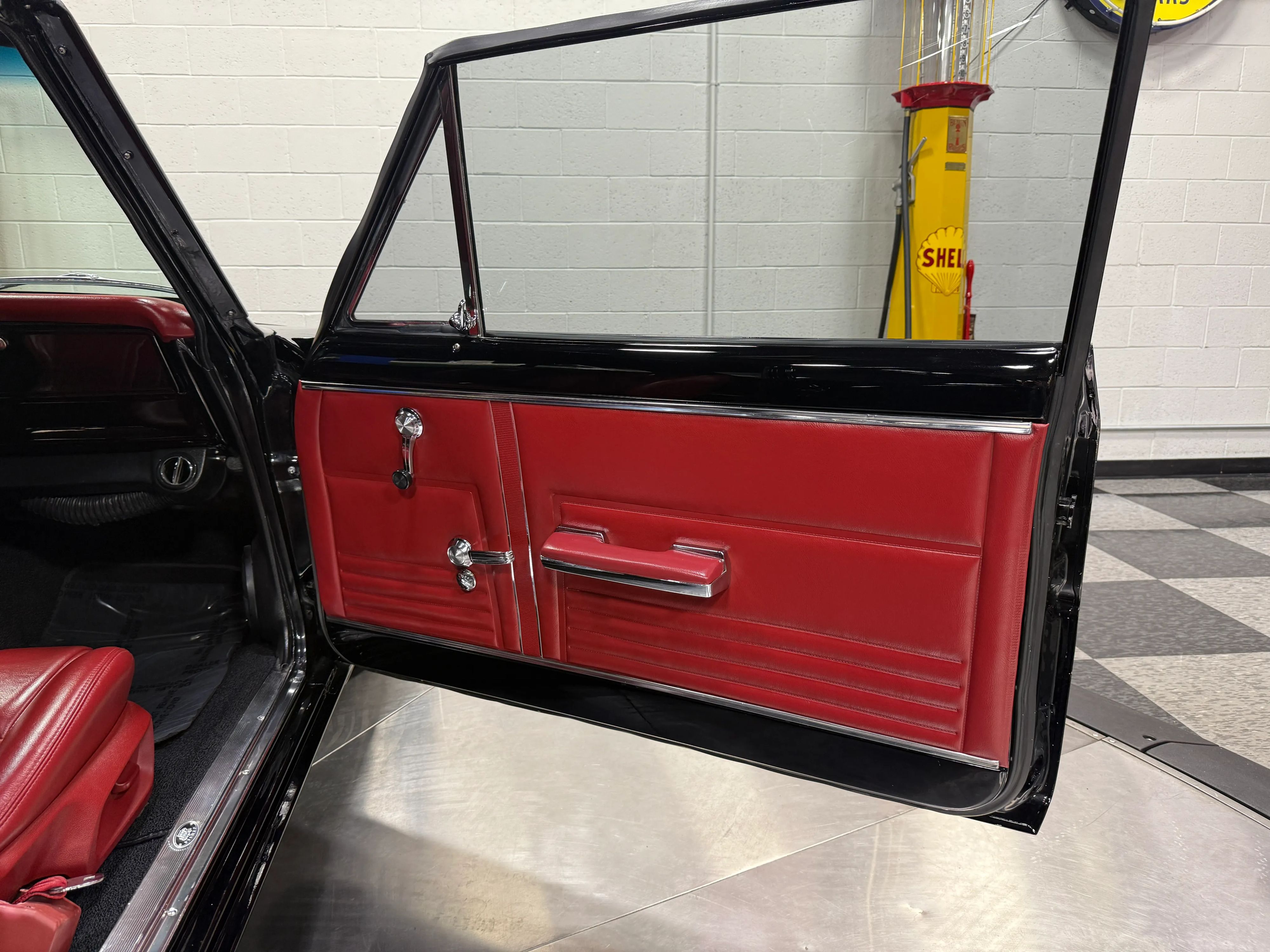 Inside, the Nova features deep red leather seating with power front buckets, black carpet and headliner, matching red door panels, billet steering wheel, and a Dakota Digital VHX gauge cluster. Factory-style HVAC controls manage the heat and A/C, while a Pioneer head unit and Kicker speakers round out the modern amenities.