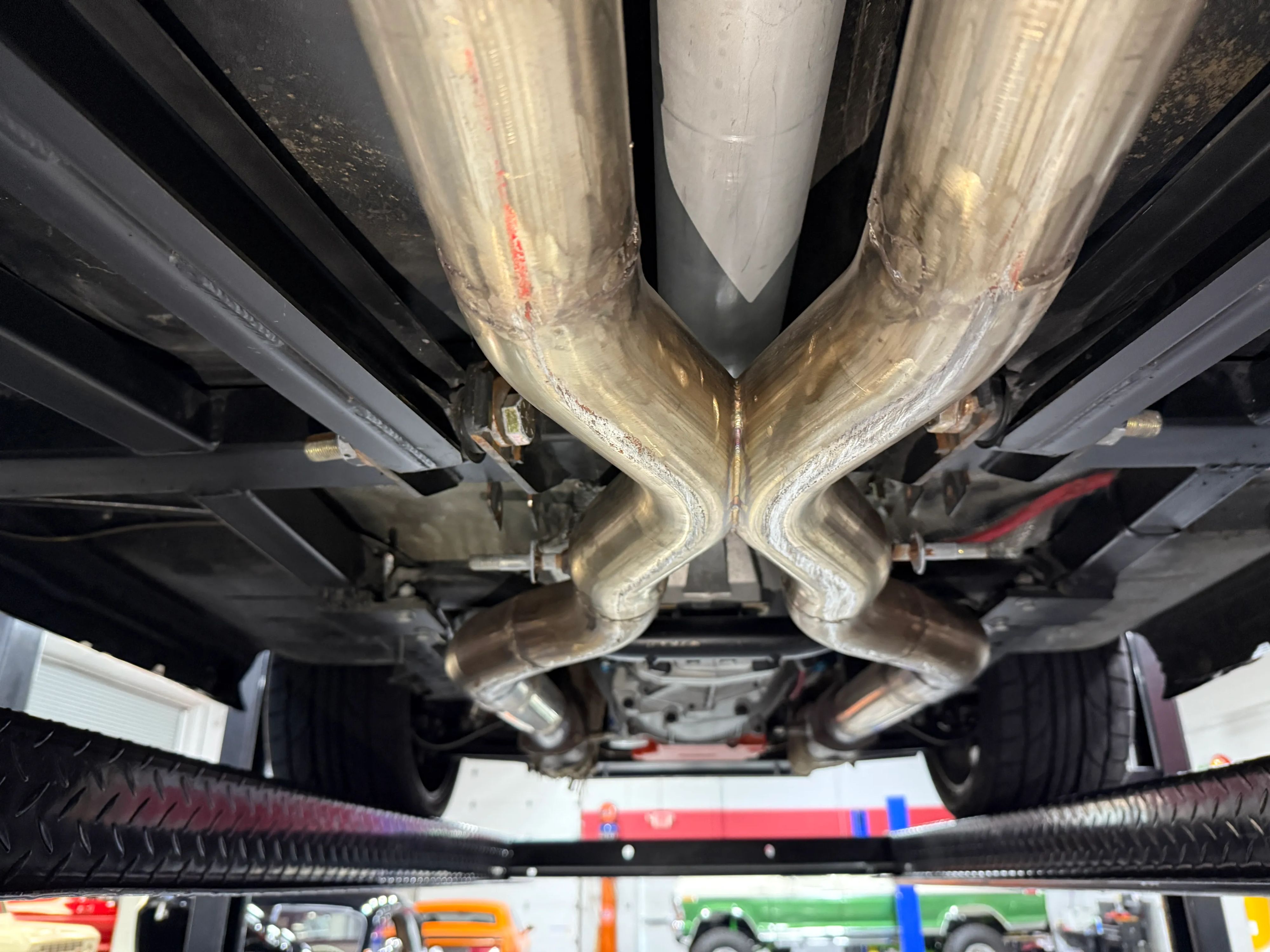Under the hood is a professionally built supercharged GM LSA V8, tuned for reliability and street performance and paired with a 6-speed manual transmission and twin-disc clutch. The engine bay features a custom cold-air intake integrated into the inner fender, aluminum cooling system, and clean accessory detailing delivering modern performance with show-quality presentation. The combination is dyno-verified at 584 rear-wheel horsepower and 561 lb-ft of rear-wheel torque, offering exhilarating acceleration with refined drivability.