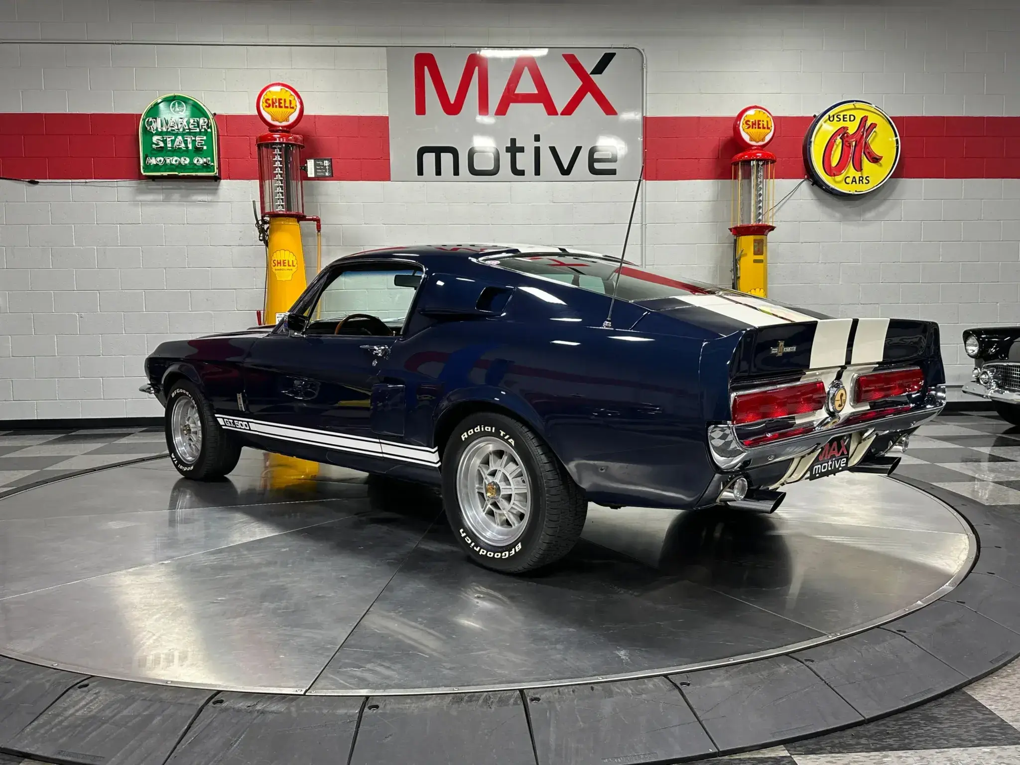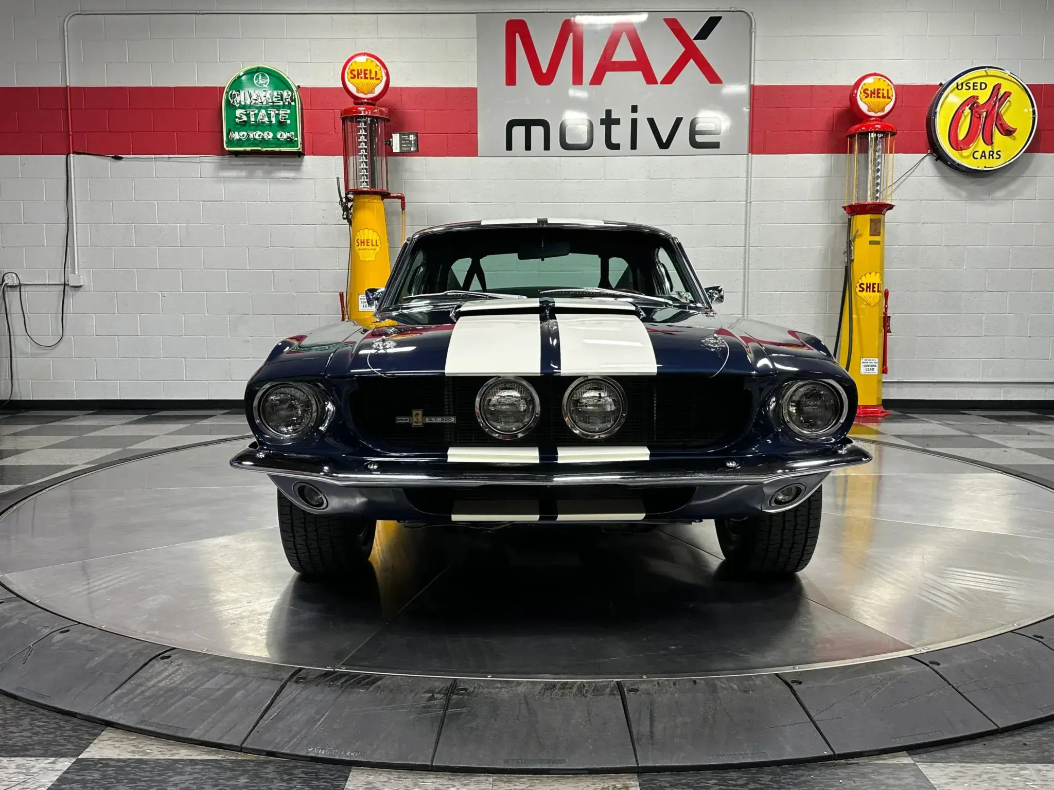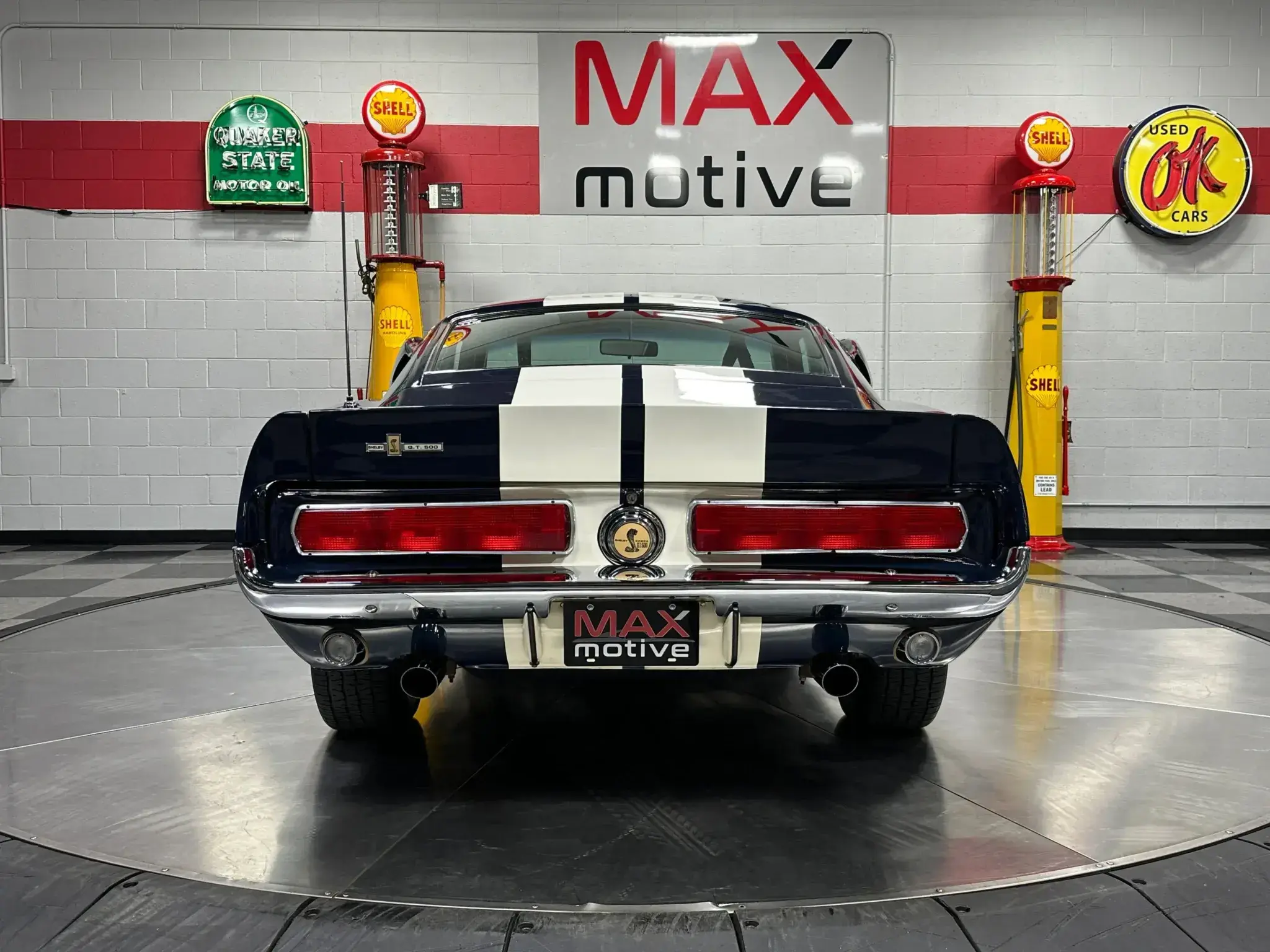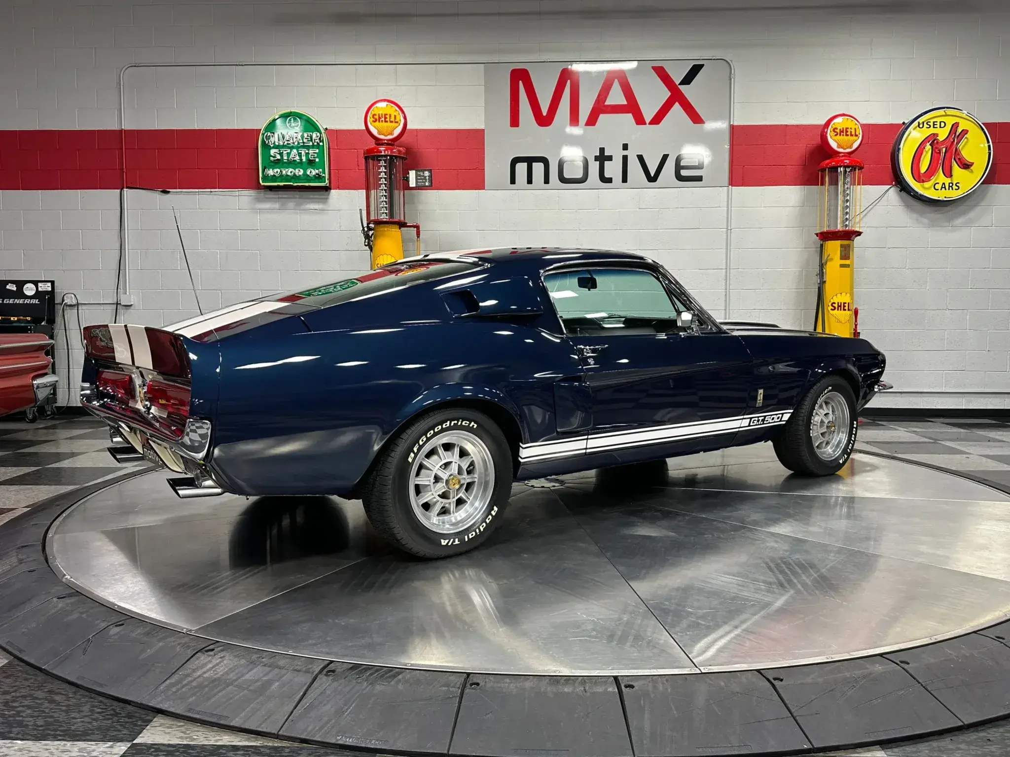 MaxMotive is proud to present this outstanding early production 1967 Shelby GT500 Fastback. The correct and highly esteemed 428ci Police Interceptor V8 engine was rebuilt, blueprinted, and dyno tested by Evanuik Performance. Helpful data like cam specs, plus cylinder head, valve train, block, crank and oil system specs are provided as well. On top are two 650cfm Holleys and it is dressed with the coveted finned aluminum Cobra LeMans valve covers and Cobra dual carb air cleaner. The entire car was lovingly restored over a 3-year period and completed in 1991. The engine rebuild was done in 2010 and the car has been driven about 3755 miles since. The top tier drivetrain features the rugged C6 automatic transmission and legendary 9-inch Ford rear axle. Restoration photos are included. As an early production model, it sports the distinctive inboard hi-beams, and along with the Nightmist Blue exterior paint, white LeMans stripes, and distinctive Kelsey-Hays Mag Star 10-spoke aluminum wheels, the car simply exudes Shelby-ness, and it is just gorgeous! In fact, the signature of Carroll Shelby himself is proudly displayed on the passenger sun visor. Once inside, you will also find a 140mph speedometer, 8000rpm tack, Shelby/SW auxiliary gauges, and even a fully functional analog clock It comes with build and service receipts documenting the quality of the work and care that has been lavished on this special car. Please look over the photos and details at maxmotive.com.This car also comes with an Elite Marti Report and a Mag report that verifies the credentials of this amazing car!