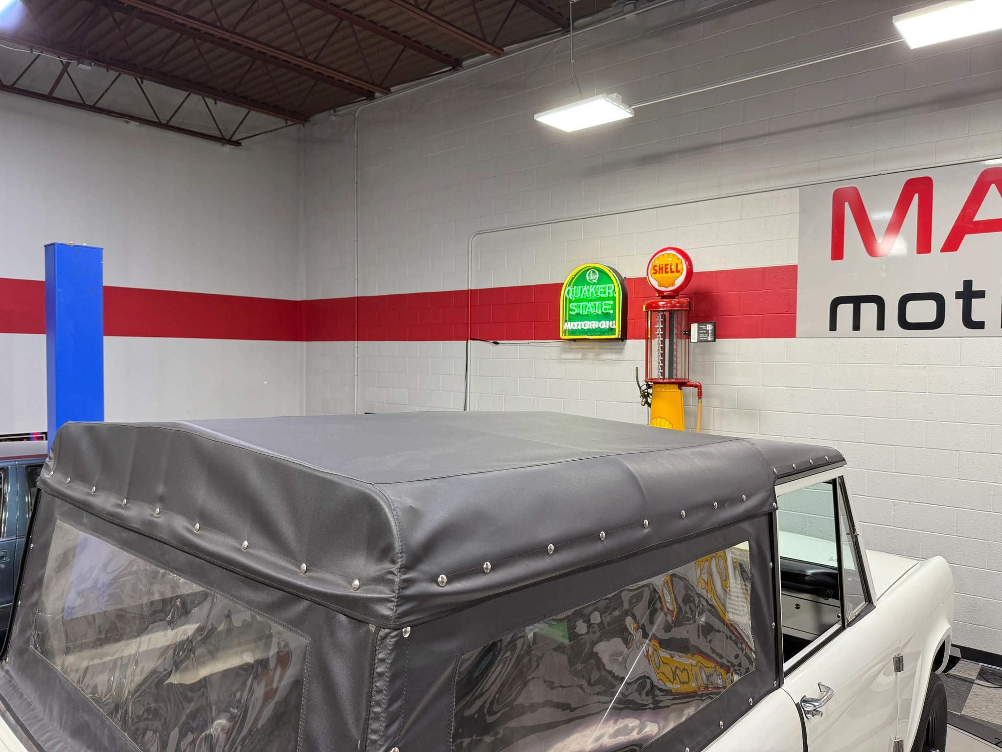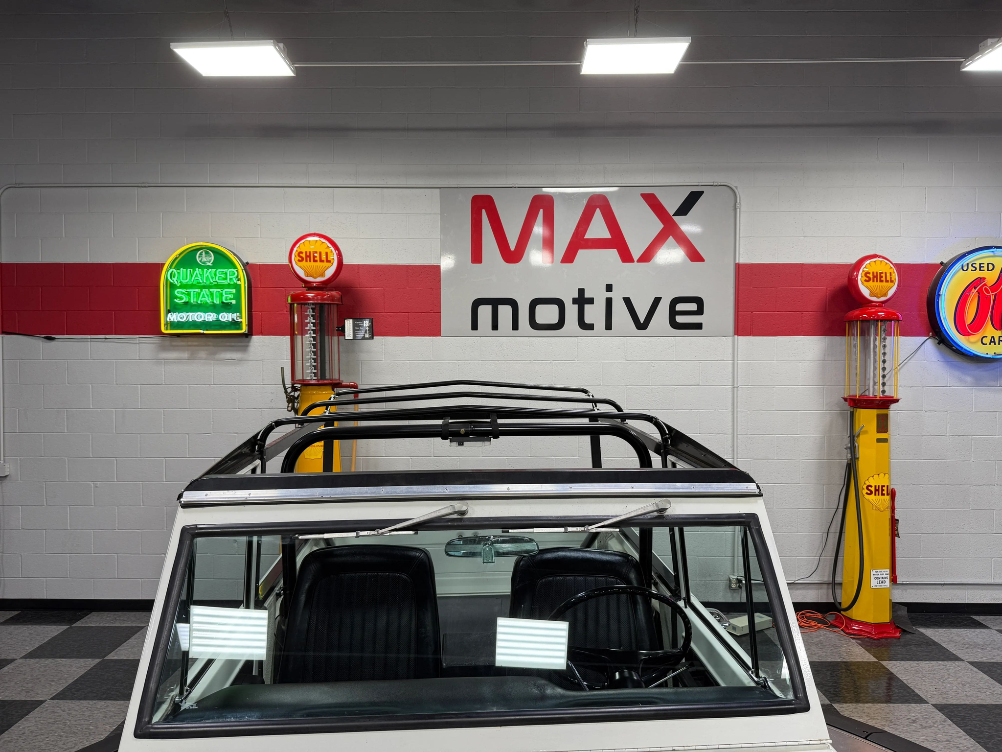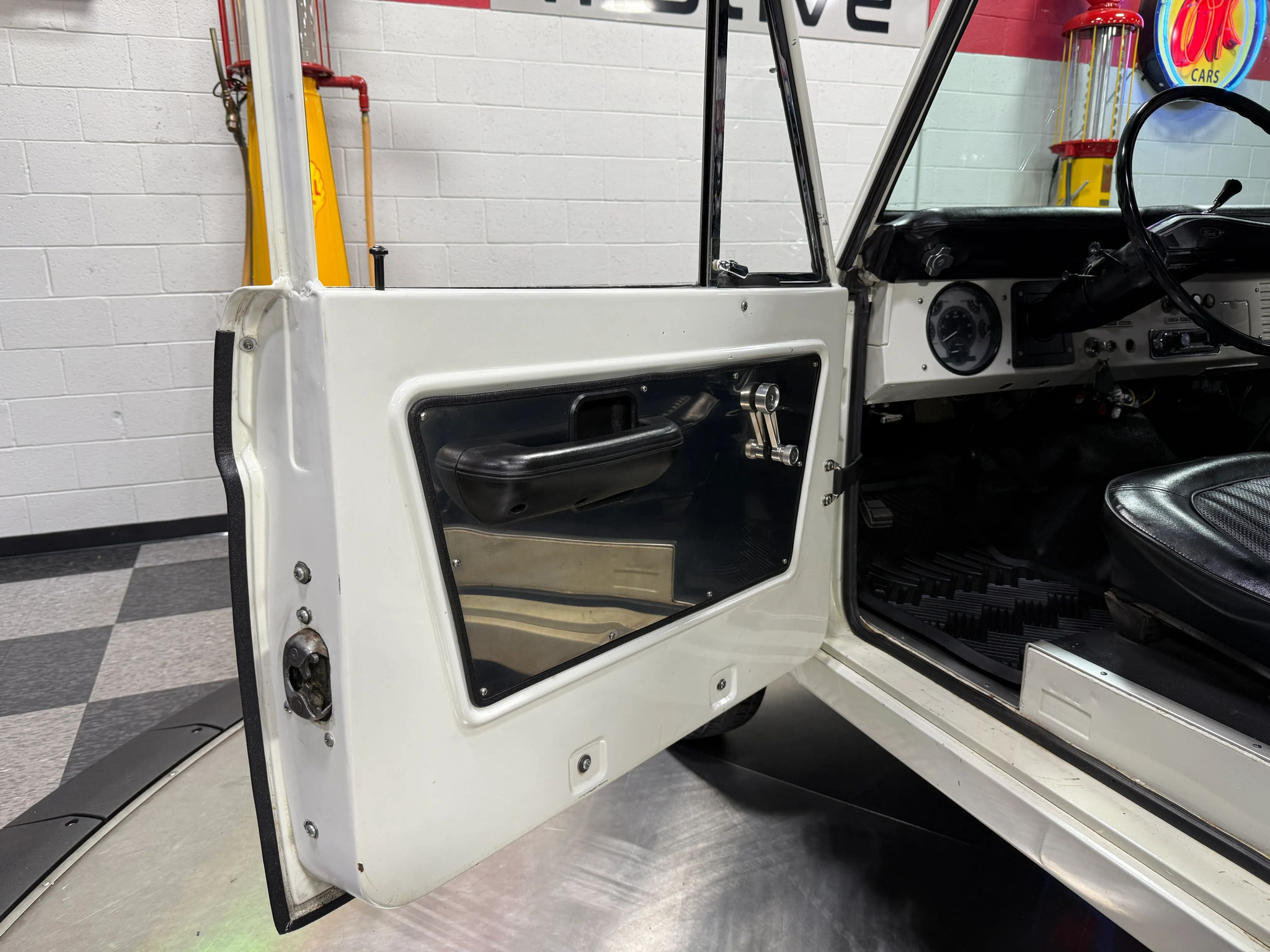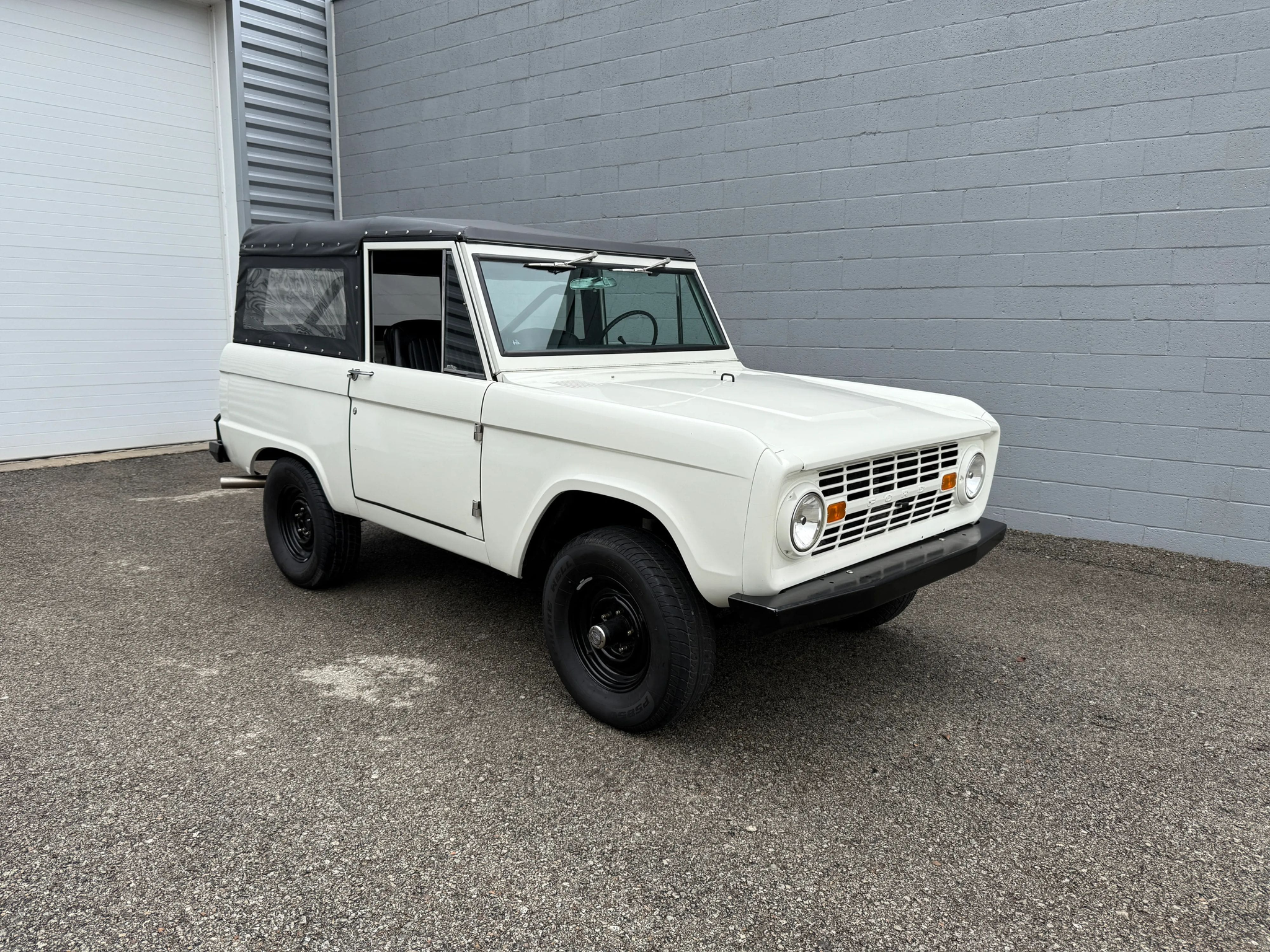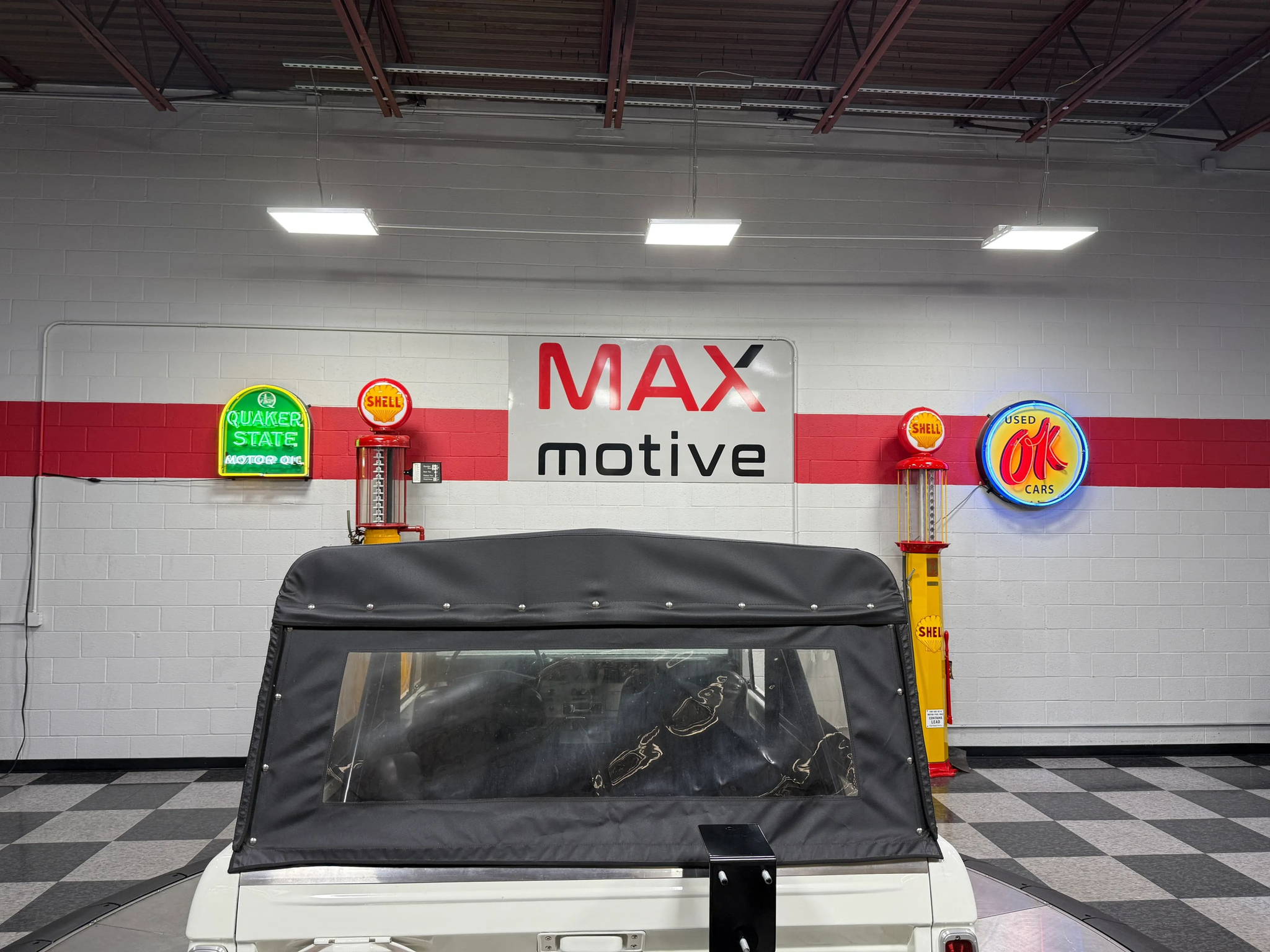 Maxmotive is pleased to offer this stunning, rugged, ready to turn heads 1968 Bronco. This Bronco has received a nice boost in horsepower from the Foxbody 5.0 V-8 engine that was swapped in from a 1989 Mustang. The top end of the engine was gone over prior to install, and shorty headers were added to ensure optimal performance and sound. Speaking of engine sound, the engine proudly rumbles through a Magnaflow muffler. Under the hood, an upgraded aluminum radiator makes sure that 5.0 engine stays nice and cool. The soft top is new, within the last 18 months. The inside rear wheel wells were texture sprayed in matching white paint. Heavy duty aftermarket bumpers front and rear, with a matching heavy duty fifth wheel spare in the back of the Bronco. New and updated front wiper motor system, Retrosound aftermarket radio, and aftermarket speakers make sure driving the Bronco is just as enjoyable as staring at the Bronco. The front driveshaft is not installed currently, so the Bronco is currently set up as a two wheel drive Bronco. For more pictures and information, please visit our website www.maxmotive.com