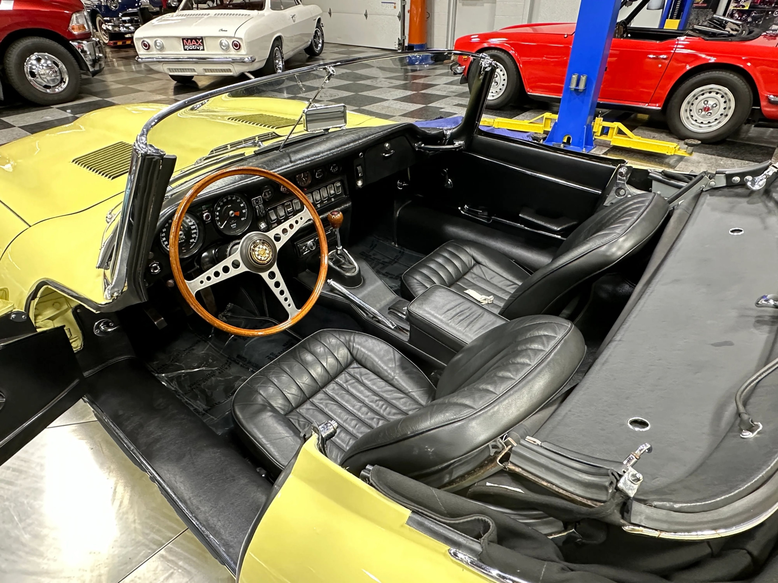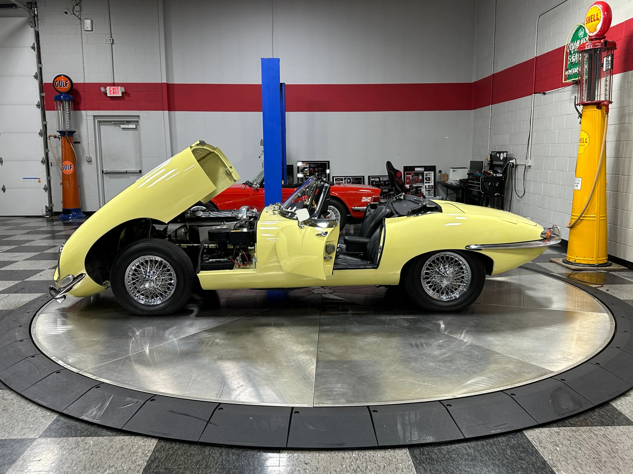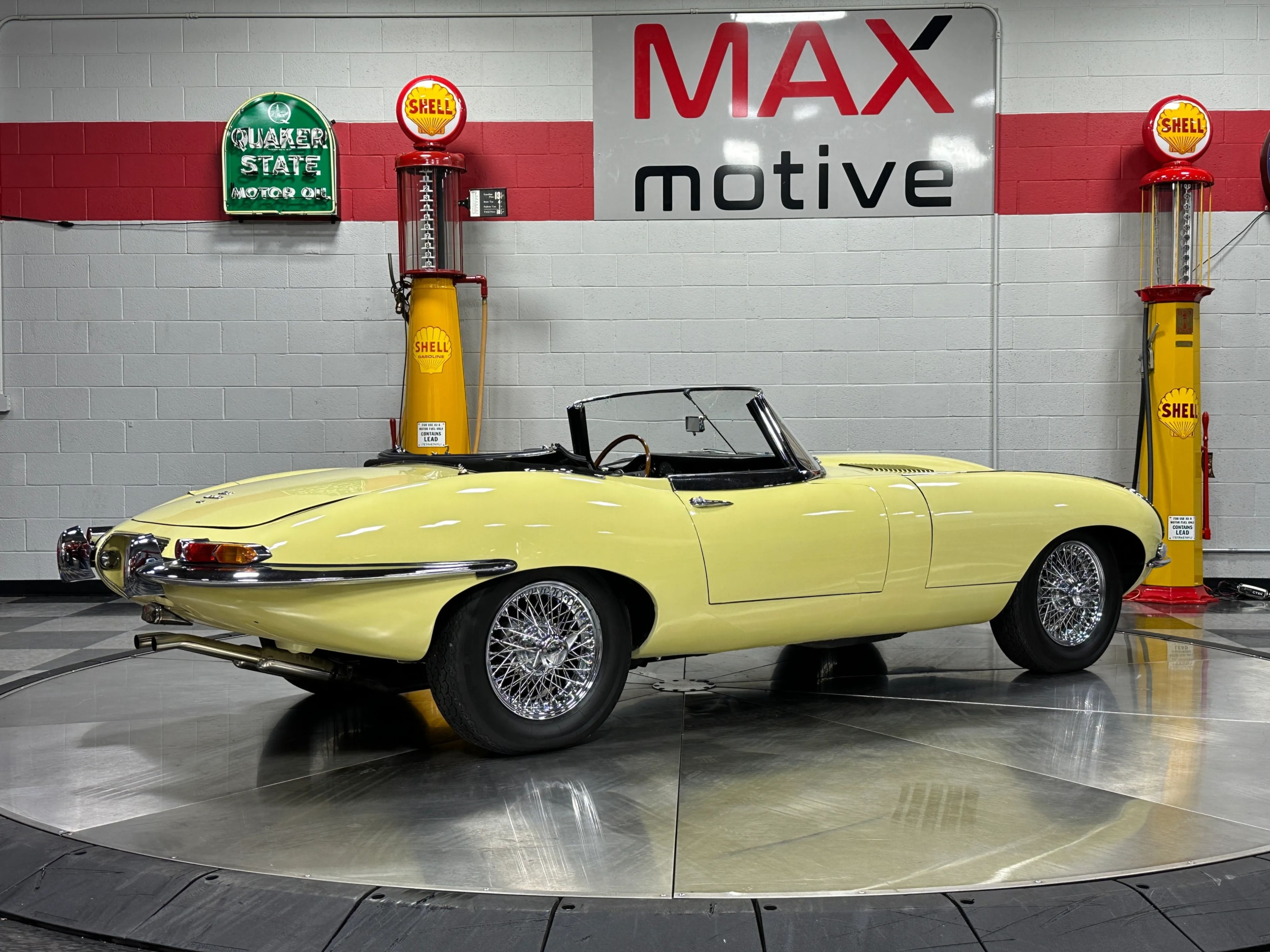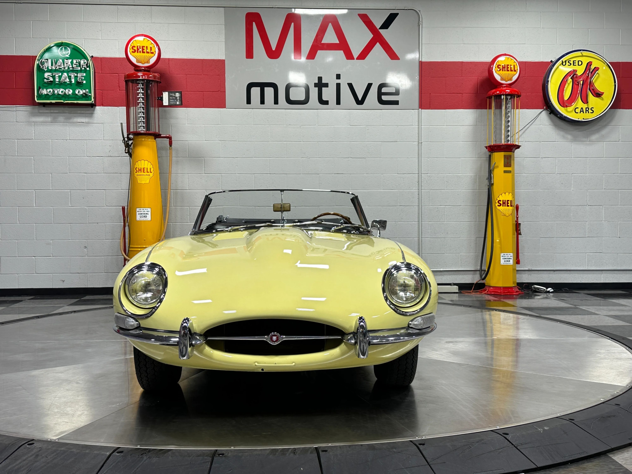 MaxMotive is pleased to offer this stunning 1968 Jaguar E-Type Roadster. Even Enzo Ferrari was said to have called it one of the most beautiful cars in the world. This sparkling example sports its original 4.2L XK engine, four-speed manual transmission, and the Pale Primrose paint. A folder with service receipts verifies that the car has received the attention it deserves.