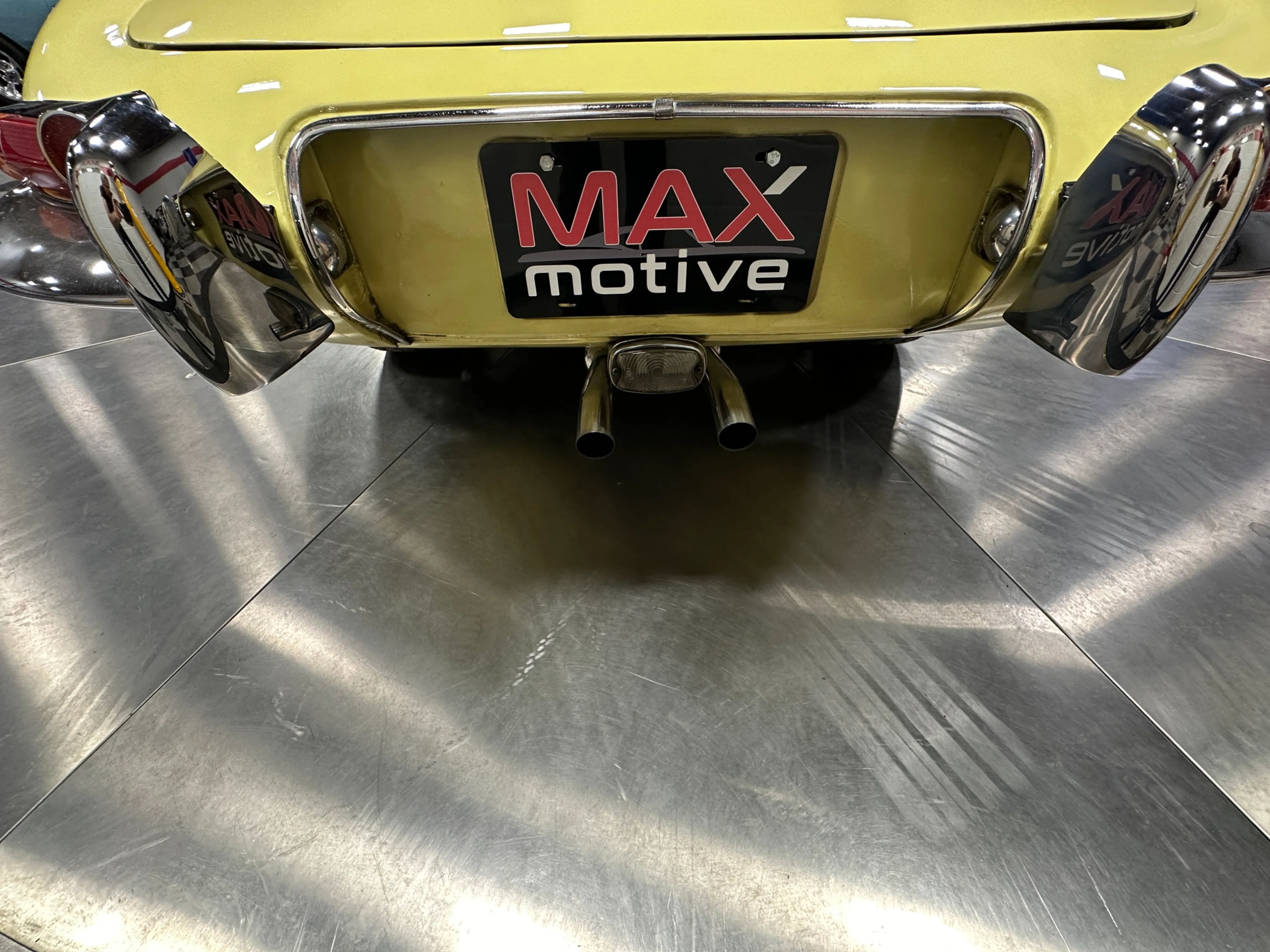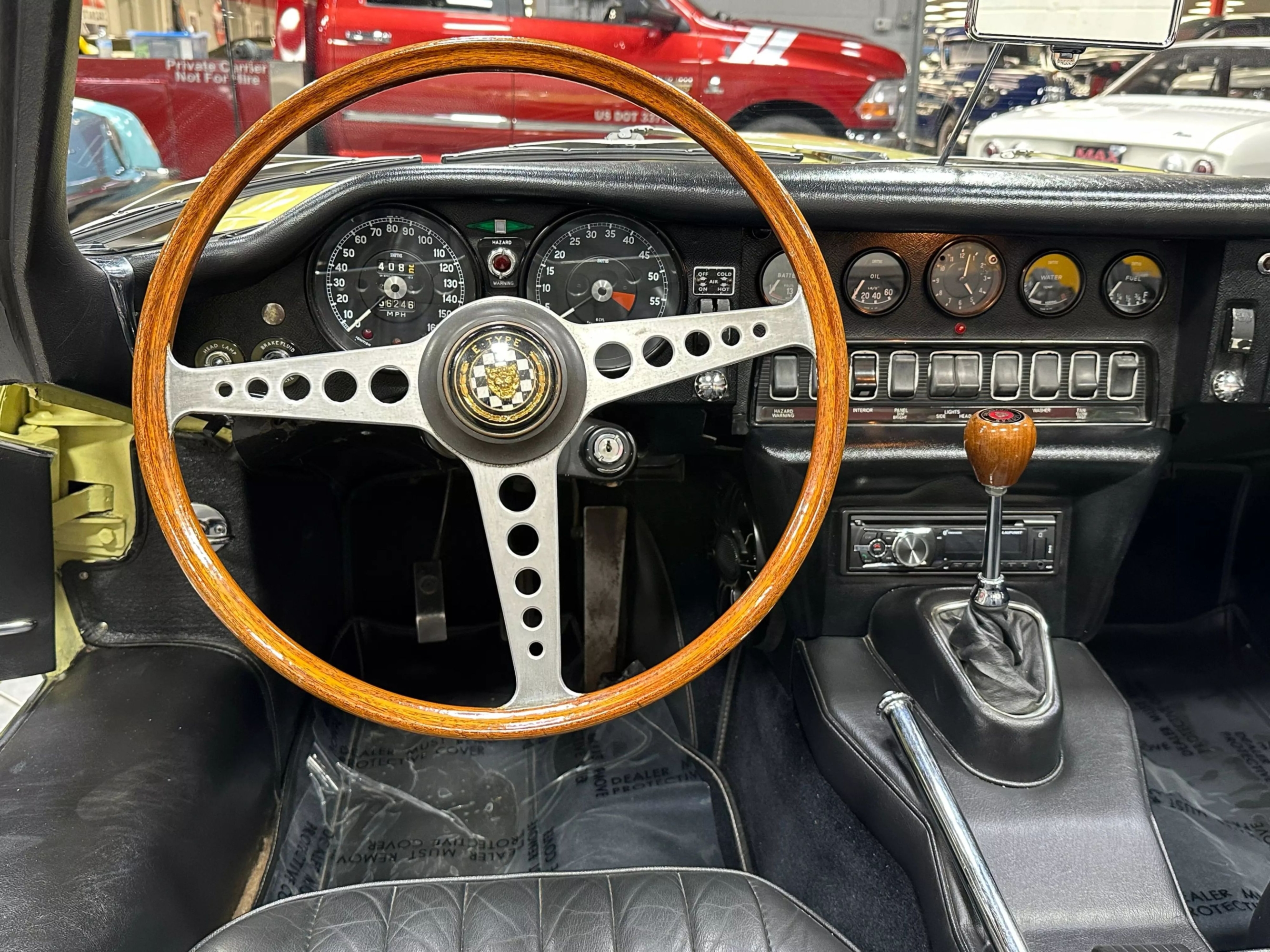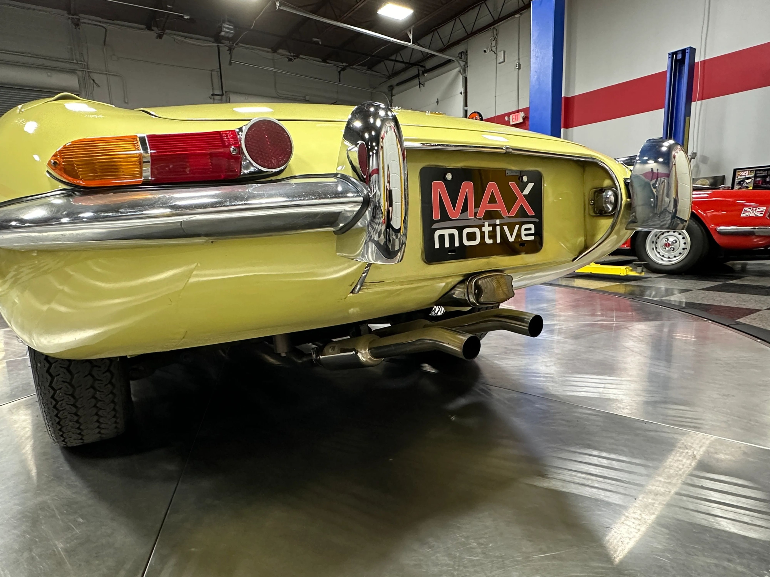 Those famous chrome spoke wheels with spinners are in exceptional shape, and theres even a spare in the trunk. It rides on Vredestein Sprint Classic tires, which provide just the right look with modern ride and handling characteristics. A Blaupunkt stereo with Bluetooth is neatly installed as well. One of the true iconic designs in the classic car world, this 1968 Jaguar E-Type is poised to prowl. Please be sure to see the detailed photos at www.maxmotive.com.