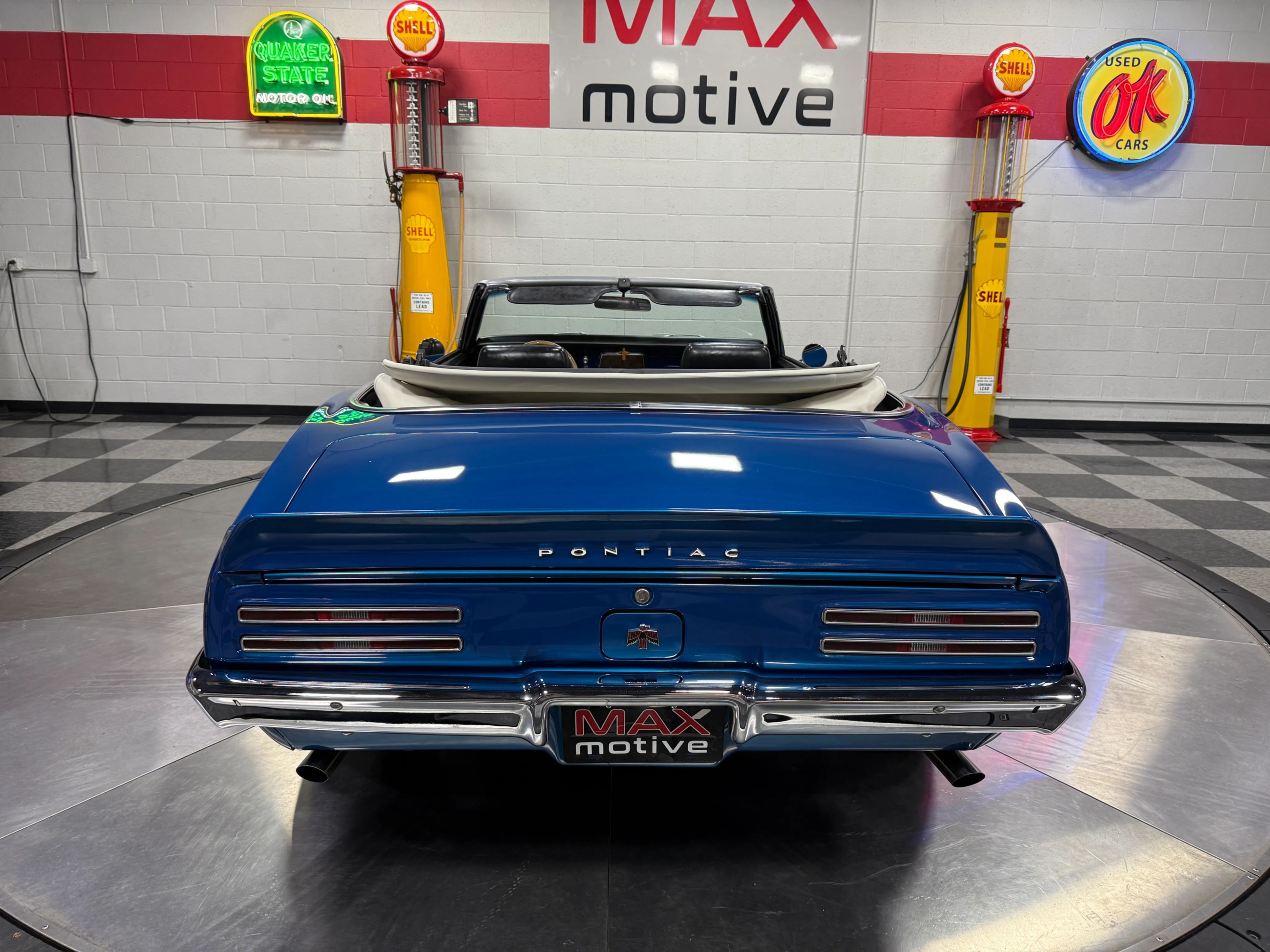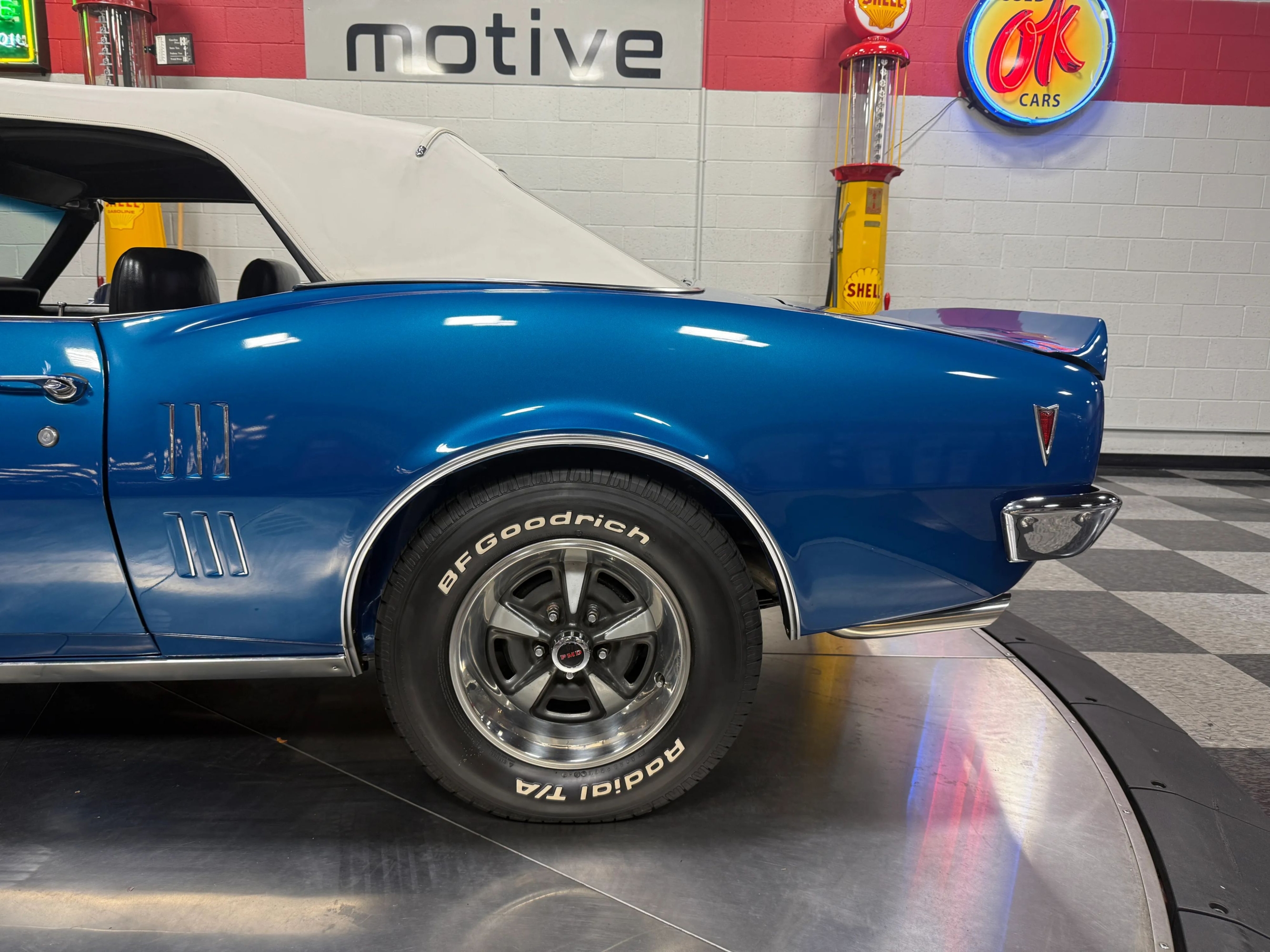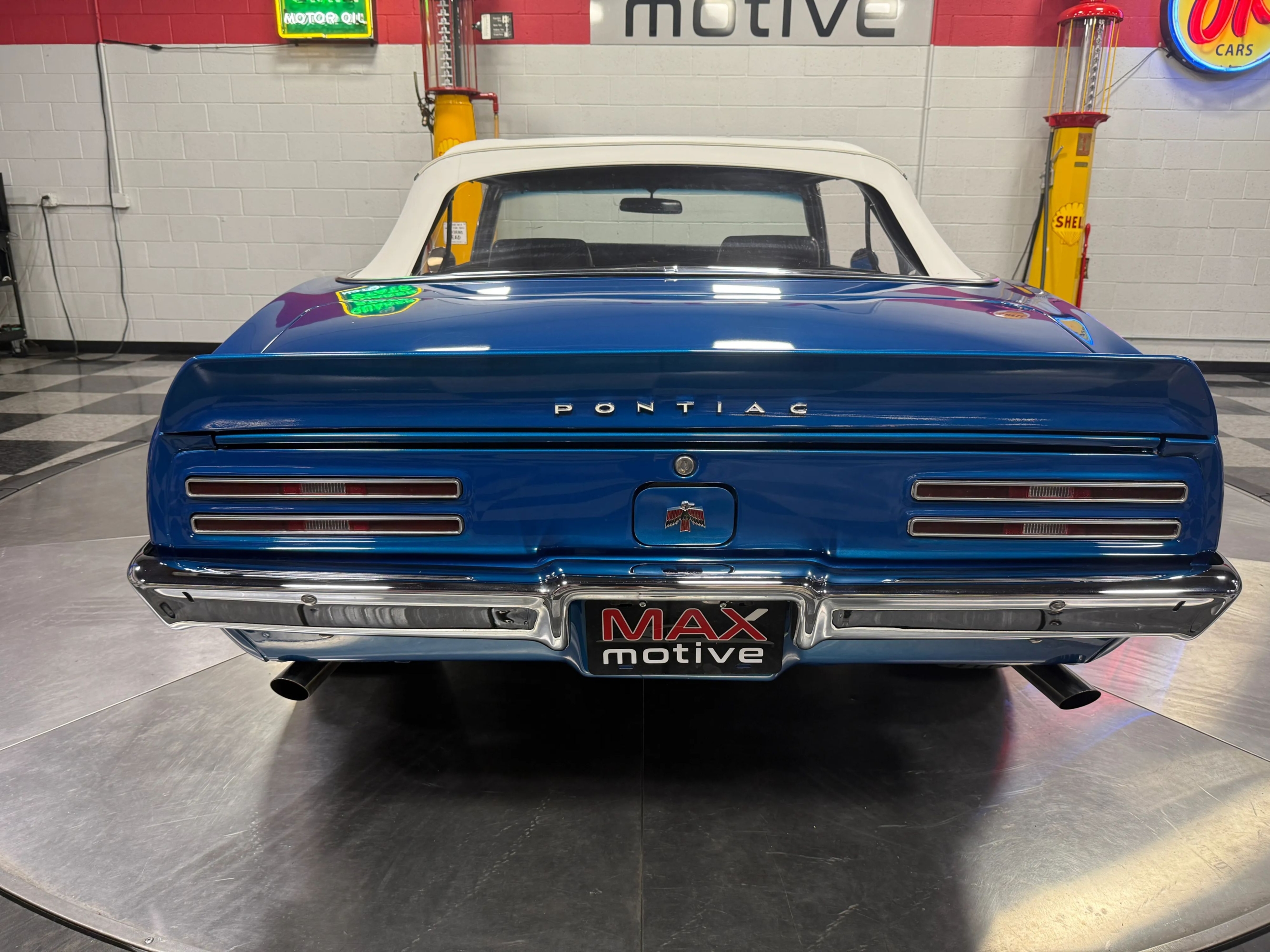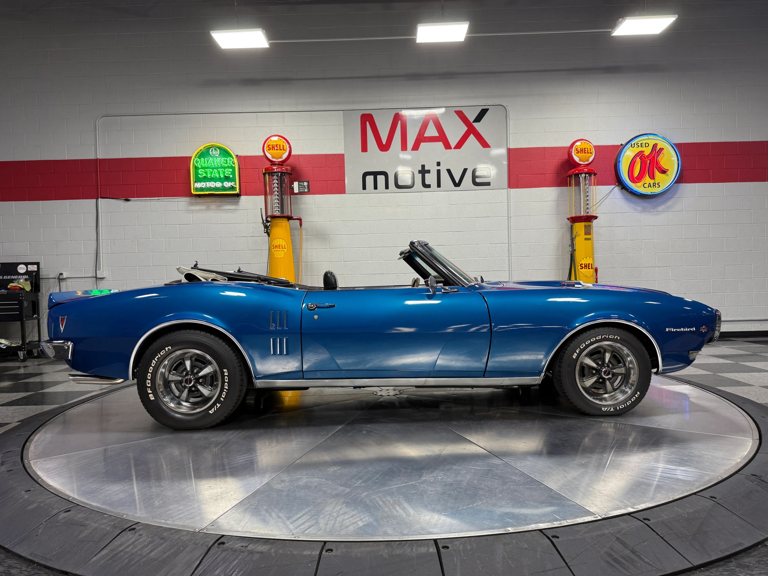 Maxmotive is proud to offer this stunning 1968 Firebird convertible. The current owner has been the caretaker of this classic since 2011. The Firebird has been impeccably cared for, with all sorts of documentation to back up the work. The documentation and receipts on this Firebird are immense, please contact us and we will be happy to share them with you. The body was stripped down, convertible top removed, and once the body work was completed, the Firebird was sprayed a stunning Aqua Blue Metallic. There was a new convertible top added at the same time of the paint and body work. The engine and transmission were removed, rebuilt, and completed in 2024. The original engine block (per the owner) was bored over .30. New pistons were paired to a 400 cam. The engine was painted while out as well. The turbo 350 automatic transmission was rebuilt as well at the same time. New long tube headers flow through the Pypes aftermarket mufflers. The underside is just as stunning as the top side. The underside was body worked and painted the same Aqua Blue Metallic as the top side. A new convertible top pump and lines were also added in 2024 at the same time. Aftermarket speakers and radio head unit complete the interior. This lovingly cared for, and beautifully restored Firebird is ready for its next chapter in life. The wiper motor can be inconsistent, and does not always work. Car was never driven in rain. Come in and test drive this beauty, all of the work has been done for you already! Any other pictures, or more info please visit our website www.maxmotive.com