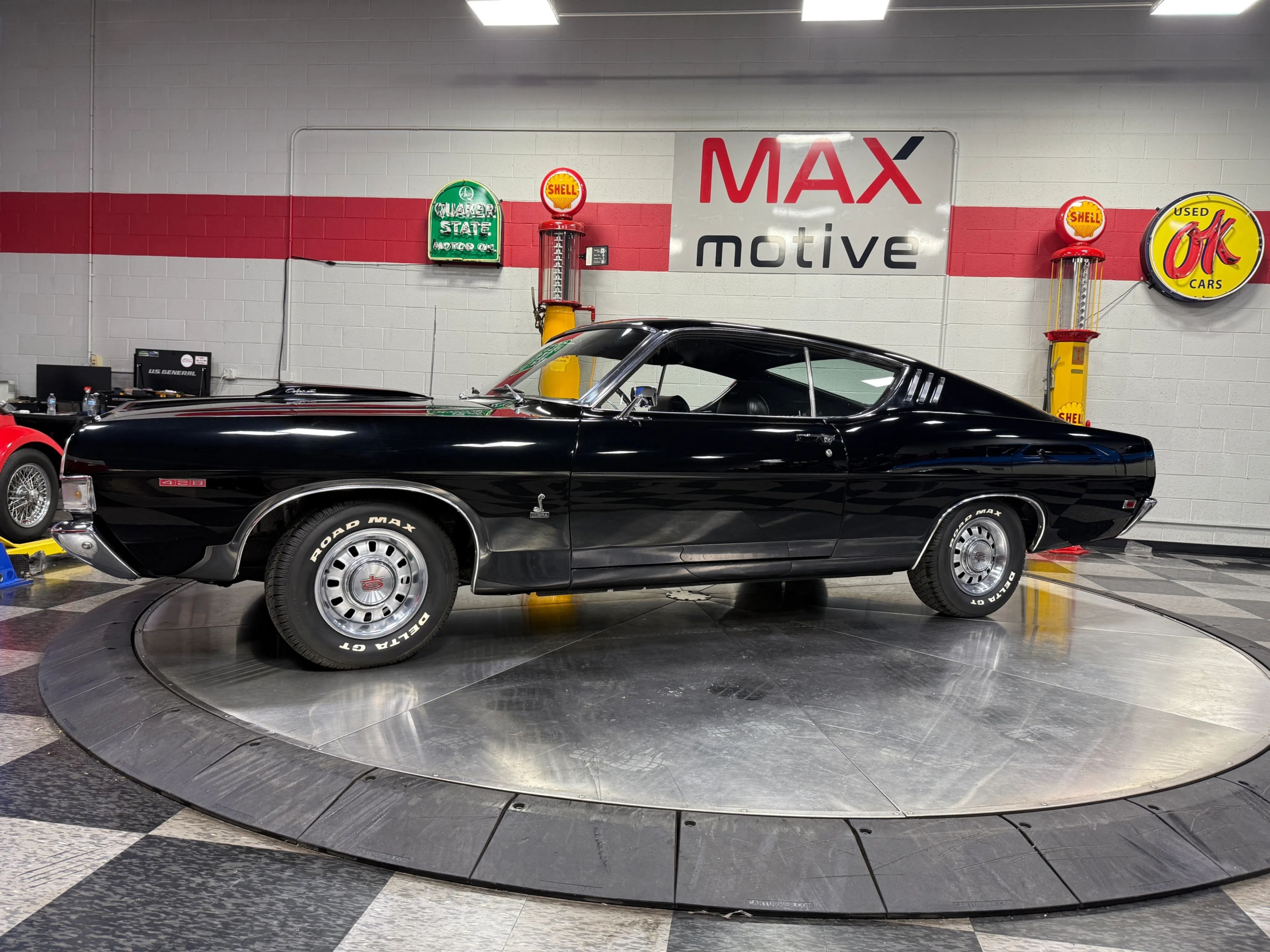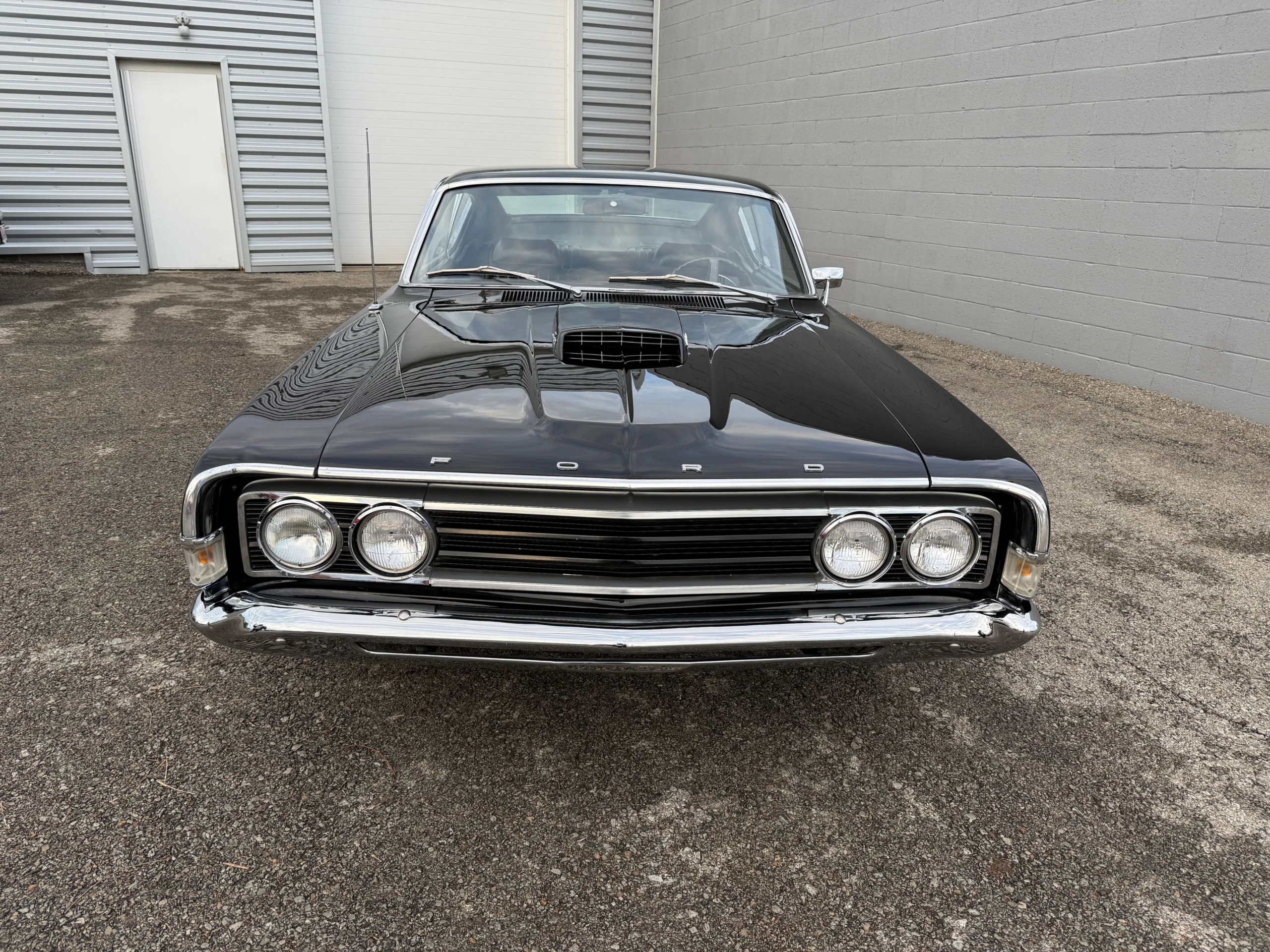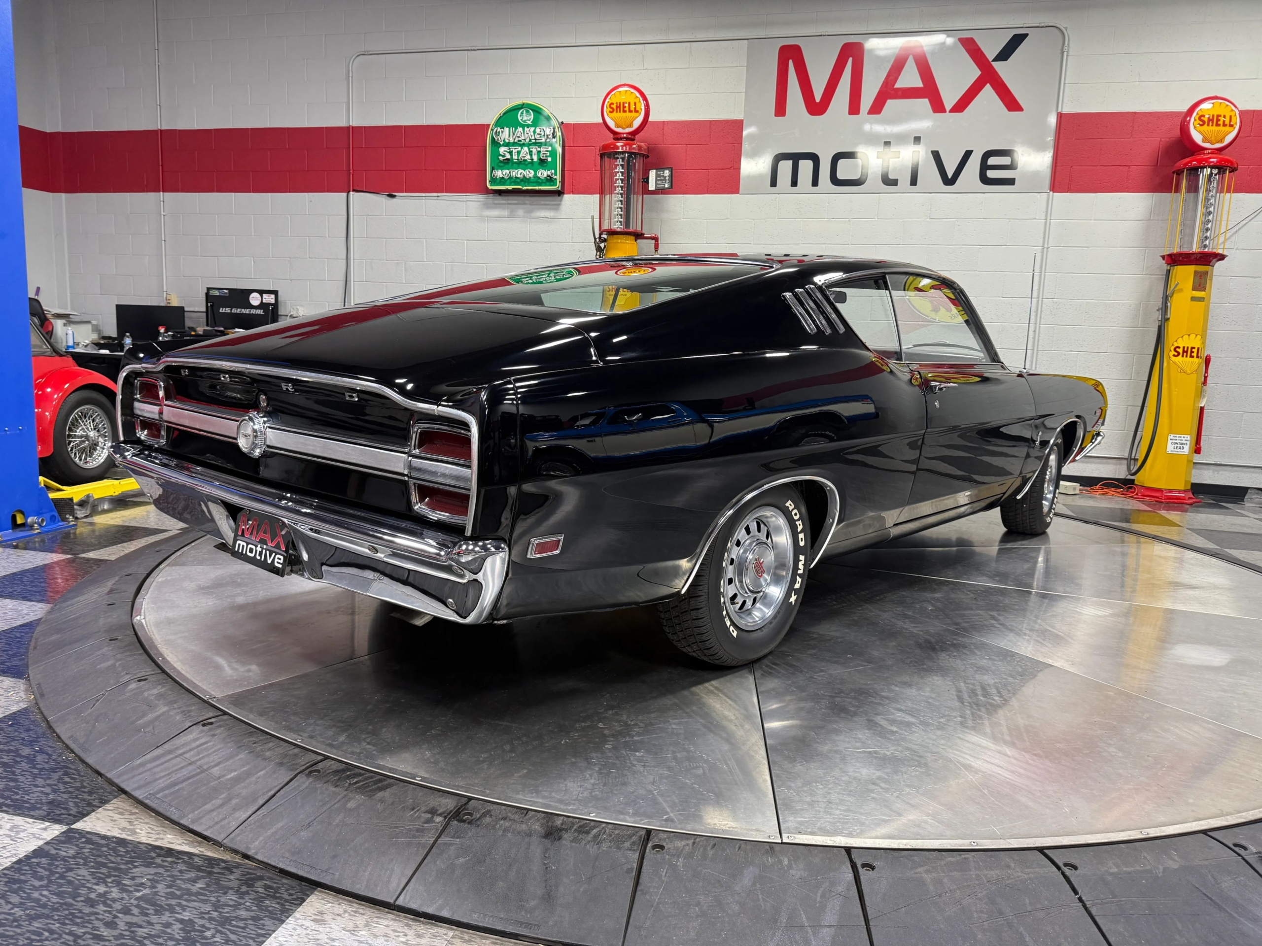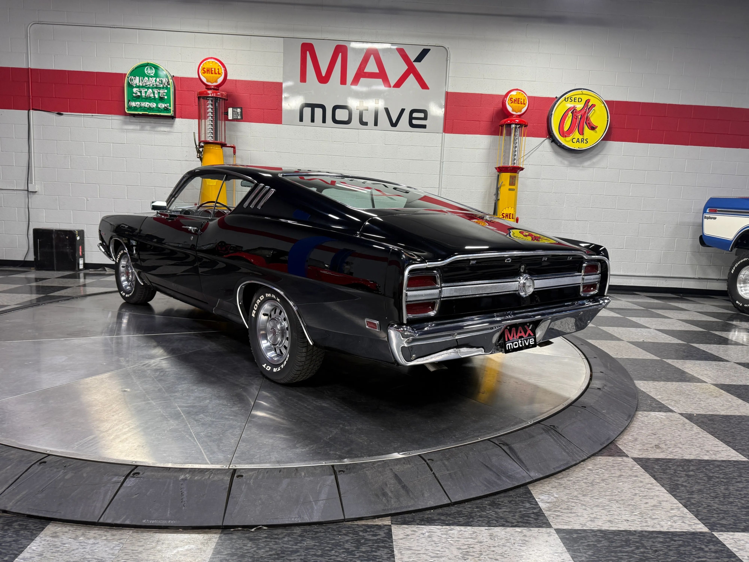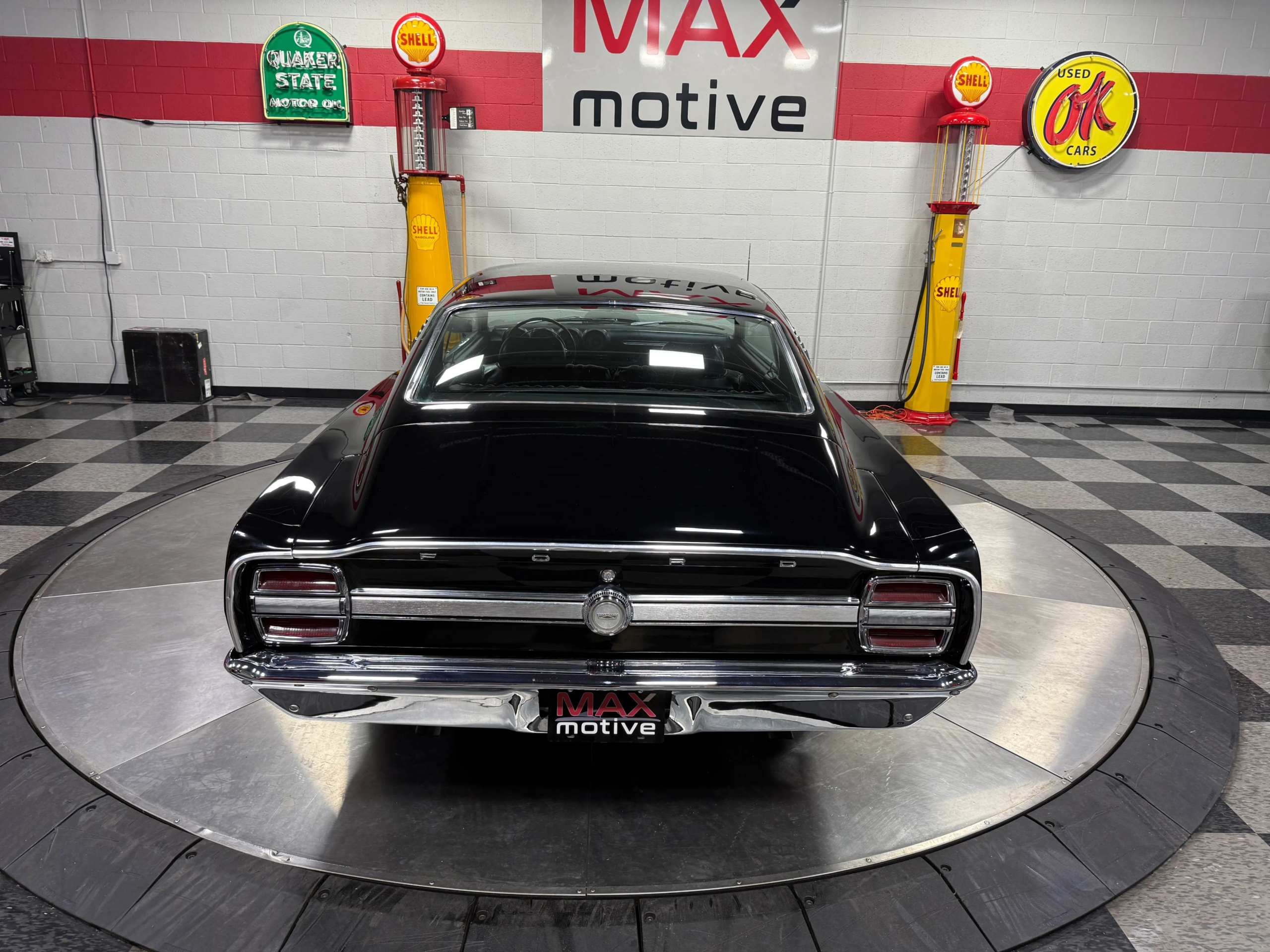 This 1969 Ford Torino Cobra Jet Torino is a formidable example of Detroits ‘Total Performance’ era, blending a sophisticated ‘sleeper’ aesthetic with world-class muscle. Documented by a Marti Report that serves as its factory birth certificate, this Torino maintains its historical integrity while benefiting from a recent, high-quality cosmetic restoration. Under the hood sits the car’s crown jewel: the numbers-matching 428 CI V8 Q-Code engine. Formidably equipped with a Holley 4-barrel carburetor, this legendary powerplant is paired with a 4-speed close-ratio manual transmission, offering a tactile and high-engagement driving experience. Power is sent to the pavement via a 3.25 conventional rear-axle, a versatile gear set that provides a perfect balance between aggressive off-the-line acceleration and comfortable highway cruising. Finished in deep Black Jade, the exterior highlights the Torinos sleek fastback lines, creating a subtle yet menacing presence on the road. The car sits correctly on 14 GT Wheels, completing its period-perfect stance. Inside, the Black interior remains true to its performance roots, offering a no-nonsense, driver-focused cockpit that looks and feels as fresh as it did in 1969.