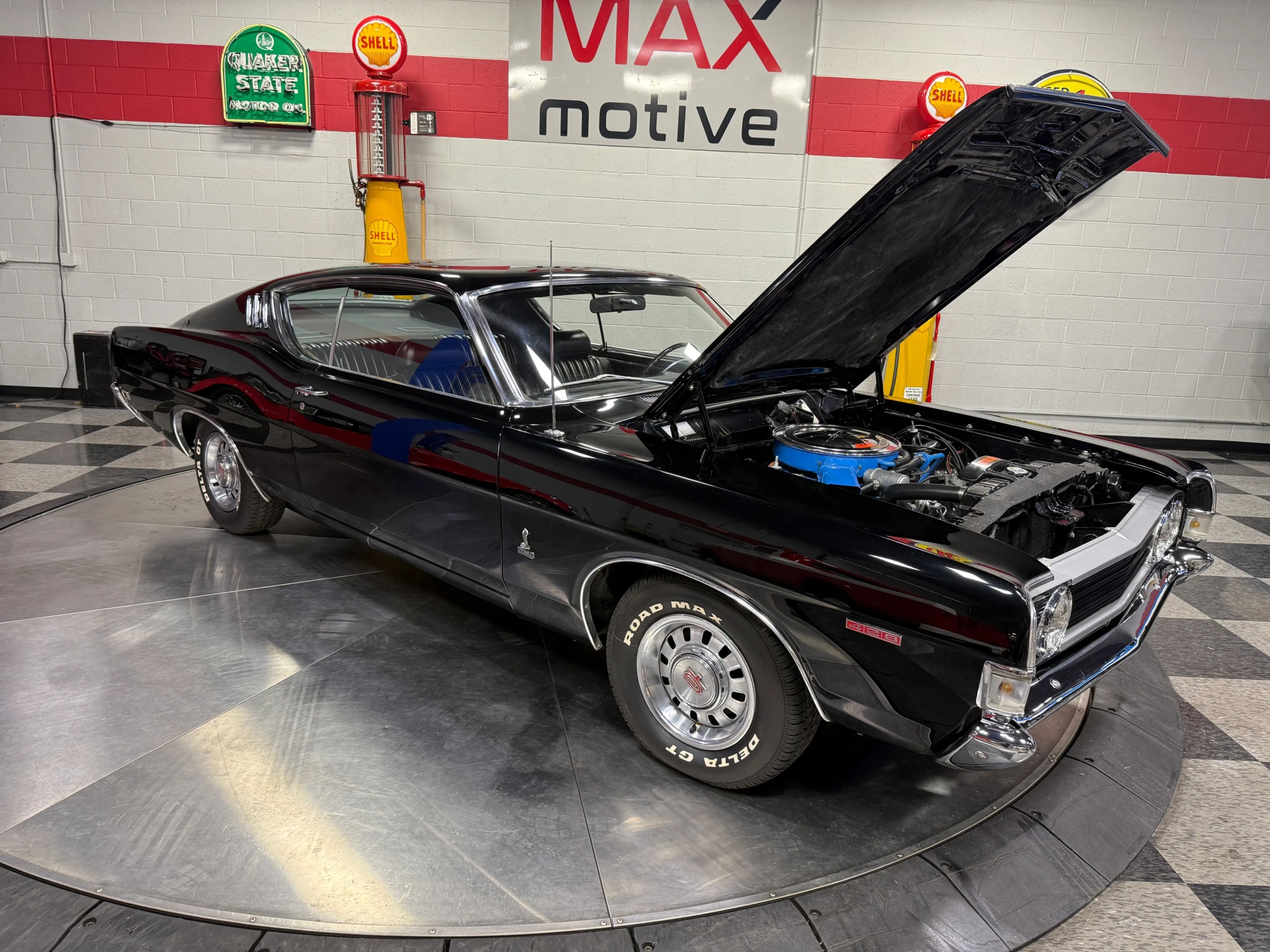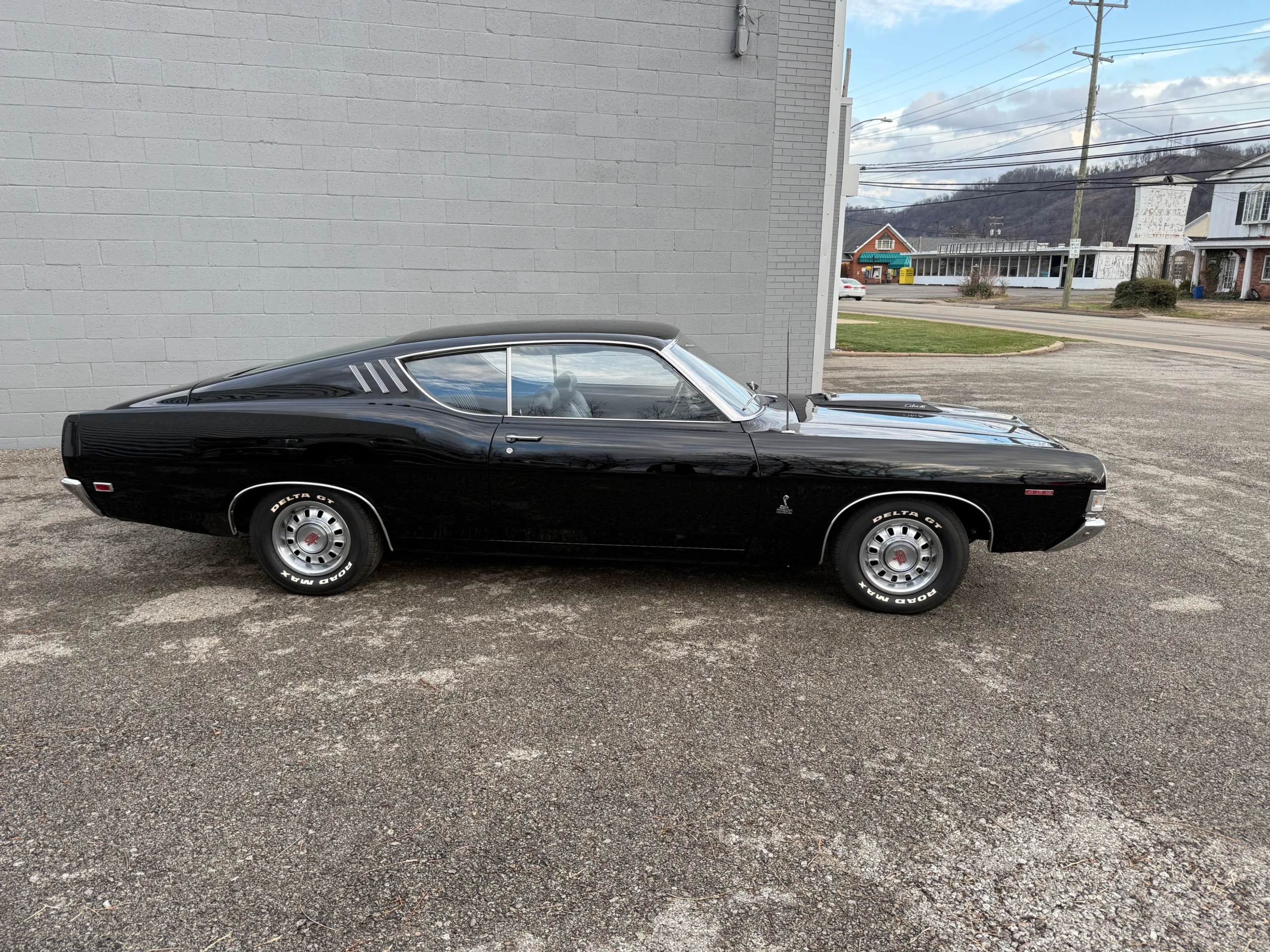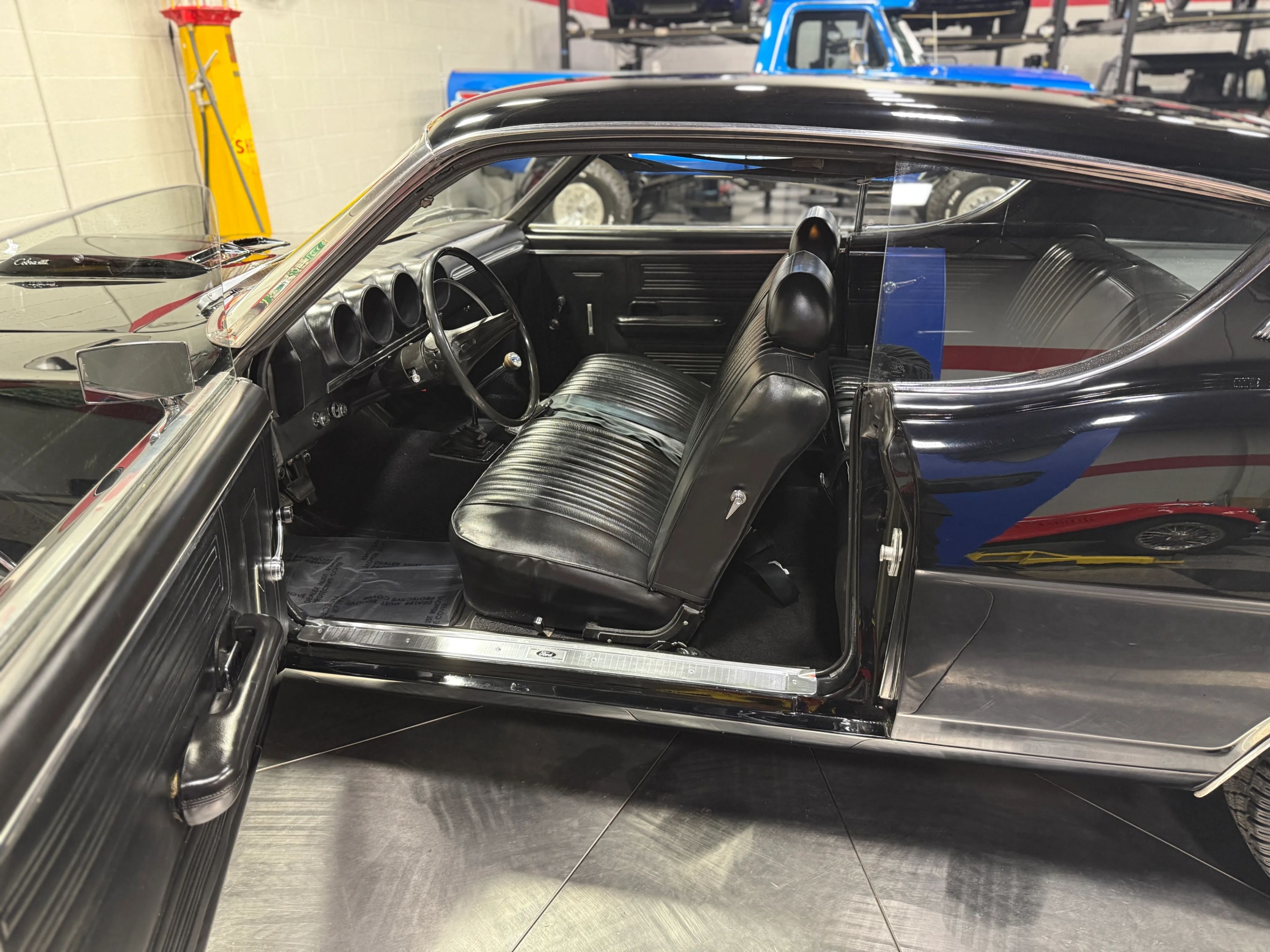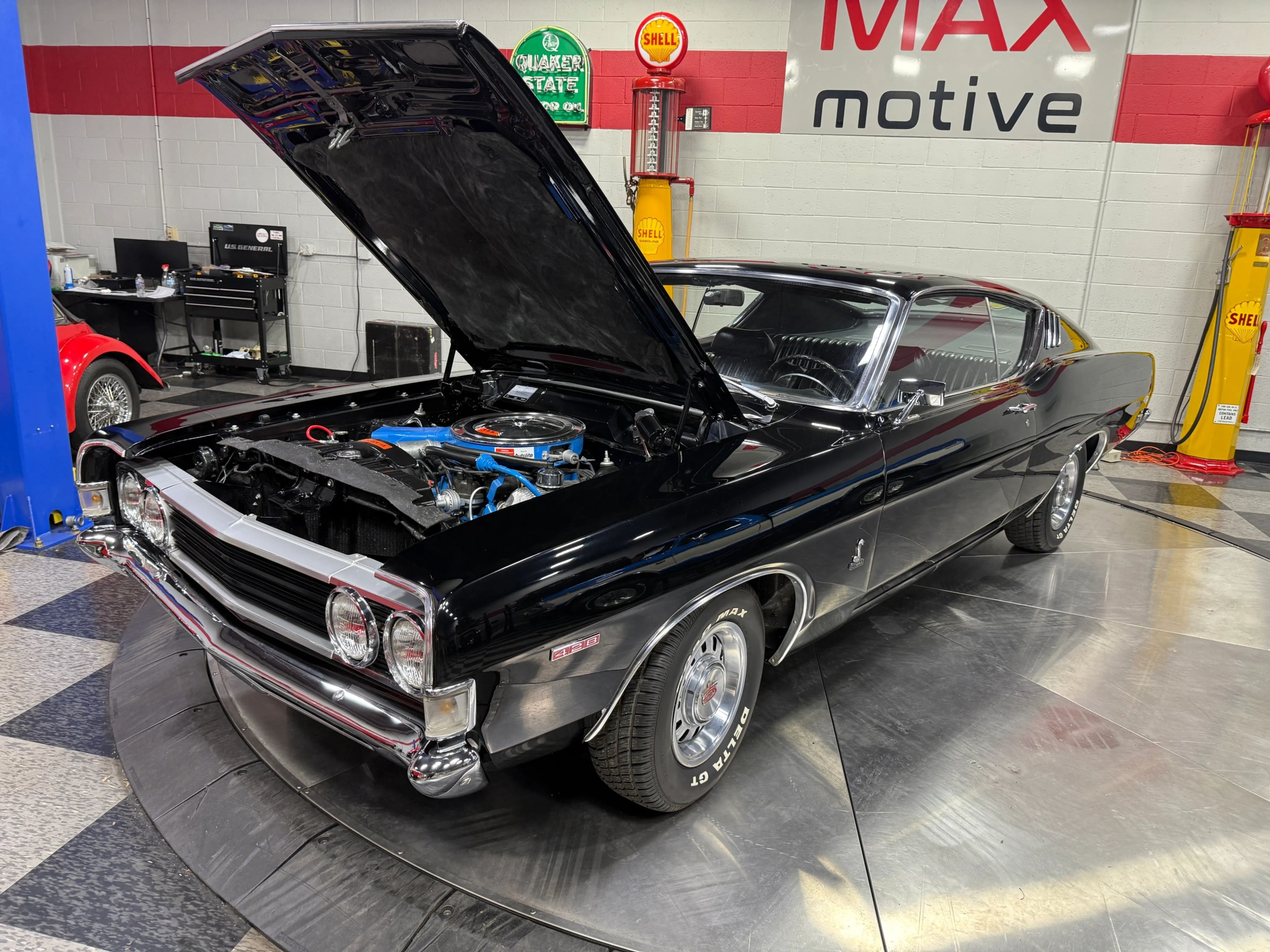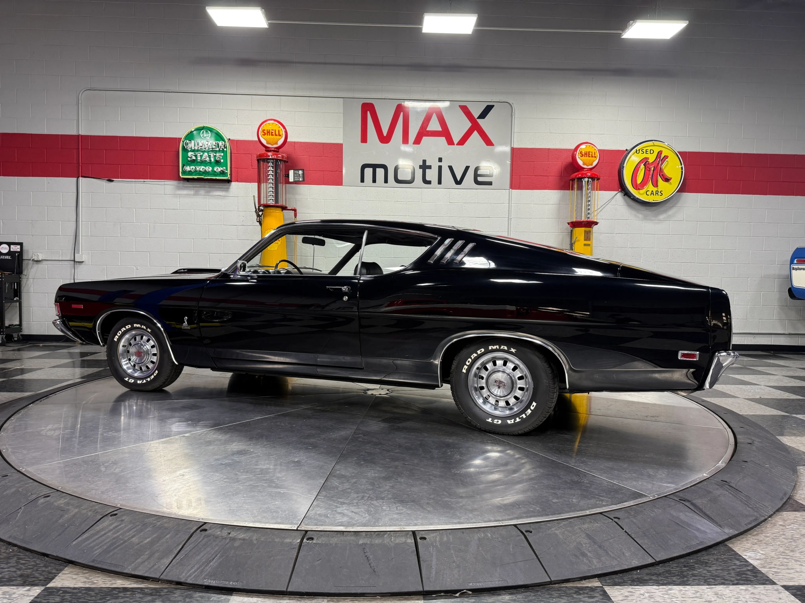 This 1969 Ford Torino Cobra Jet Torino is a formidable example of Detroits ‘Total Performance’ era, blending a sophisticated ‘sleeper’ aesthetic with world-class muscle. Documented by a Marti Report that serves as its factory birth certificate, this Torino maintains its historical integrity while benefiting from a recent, high-quality cosmetic restoration. Under the hood sits the car’s crown jewel: the numbers-matching 428 CI V8 Q-Code engine. Formidably equipped with a Holley 4-barrel carburetor, this legendary powerplant is paired with a 4-speed close-ratio manual transmission, offering a tactile and high-engagement driving experience. Power is sent to the pavement via a 3.25 conventional rear-axle, a versatile gear set that provides a perfect balance between aggressive off-the-line acceleration and comfortable highway cruising. Finished in deep Black Jade, the exterior highlights the Torinos sleek fastback lines, creating a subtle yet menacing presence on the road. The car sits correctly on 14 GT Wheels, completing its period-perfect stance. Inside, the Black interior remains true to its performance roots, offering a no-nonsense, driver-focused cockpit that looks and feels as fresh as it did in 1969.