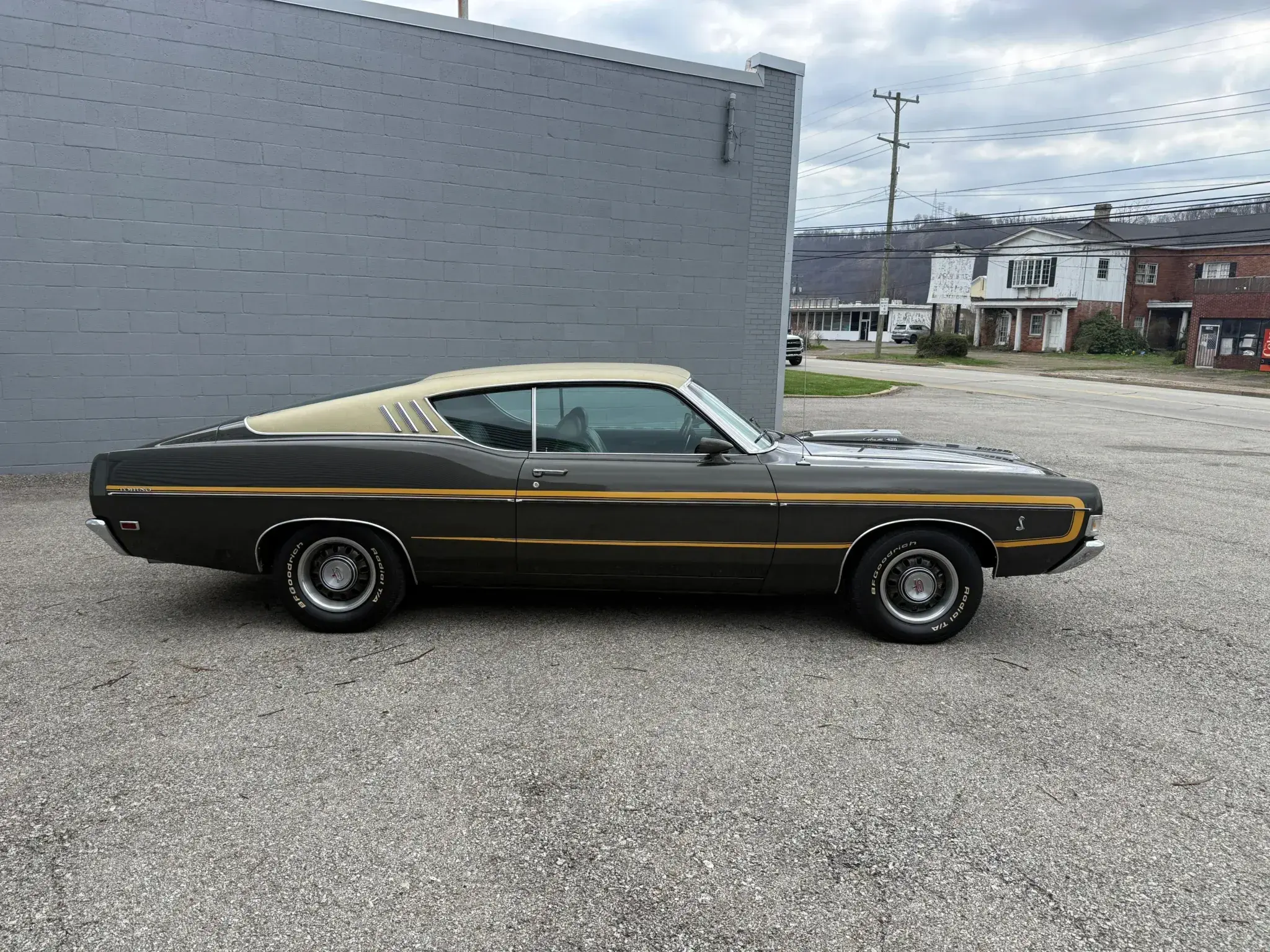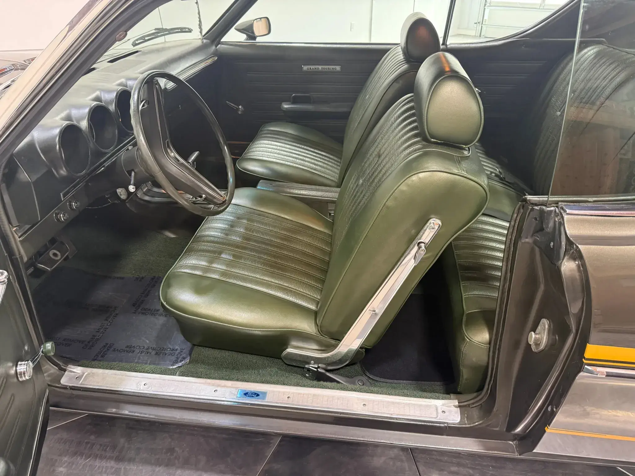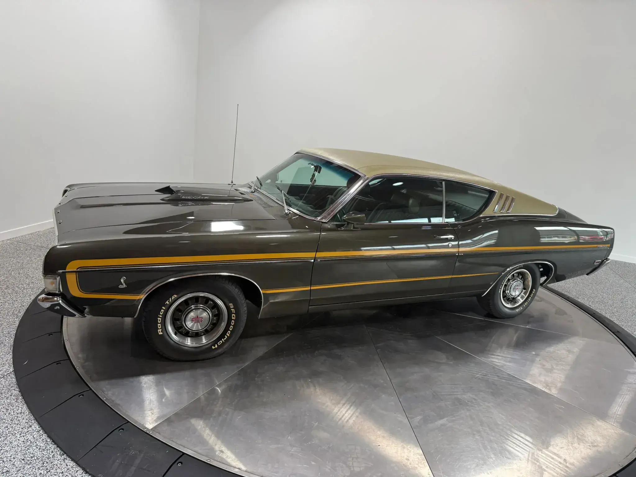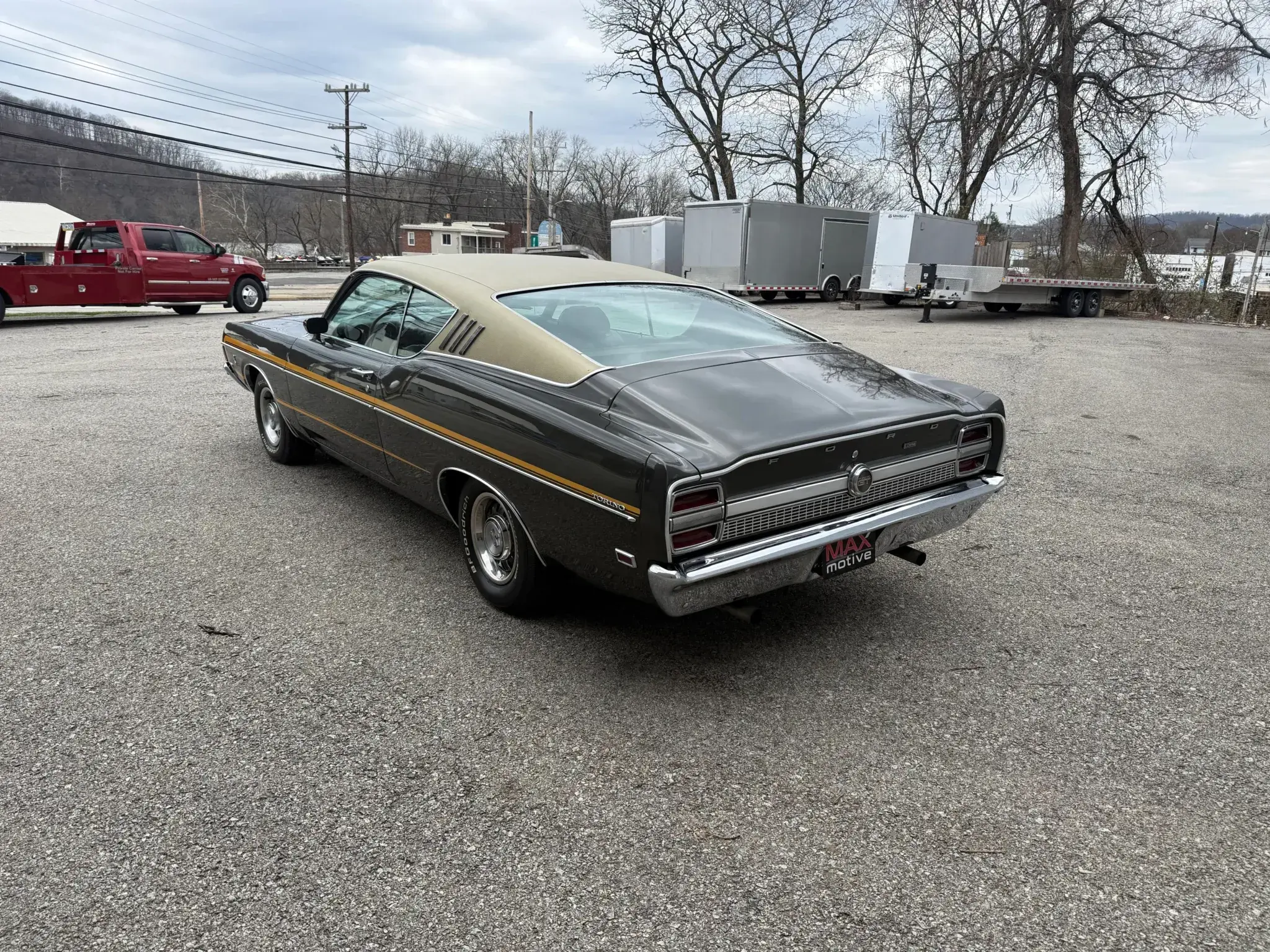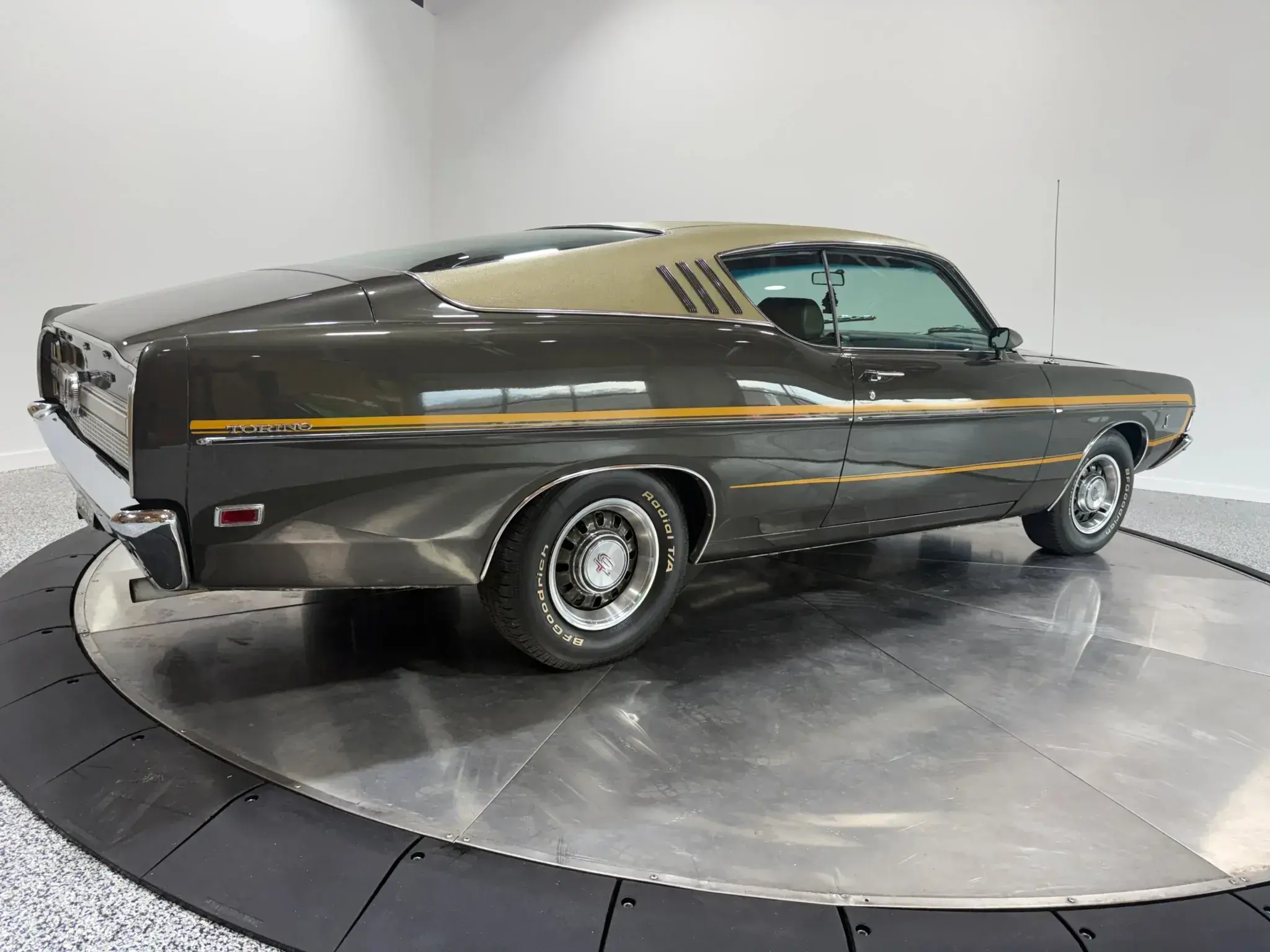 Max Motive is proud to present this 1969 Cobra Jet Torino. Finished in Jade black paint with gold stripes and a matching vinyl hard top this car cuts quite an appearance! Powered by the 428 R Code Ram air V8 engine, the build also features a Holley 600 CFM carburetor, aluminum intake, and a Ford C6 automatic transmission that delivers power to a 9-inch Posi read end.This classic muscle car is rounded out with 14-inch OEM wheels with Torino GT hubcaps wrapped in BFGoodrich Radial tires. The interior sports a unique green vinyl finish that is in great condition. Authenticated by an included Marti Report, this high performance classic is also equipped with power front disc brakes delivering confident stopping power whenever it is needed. This car is a time capsule to the American muscle car era ready for its next home!