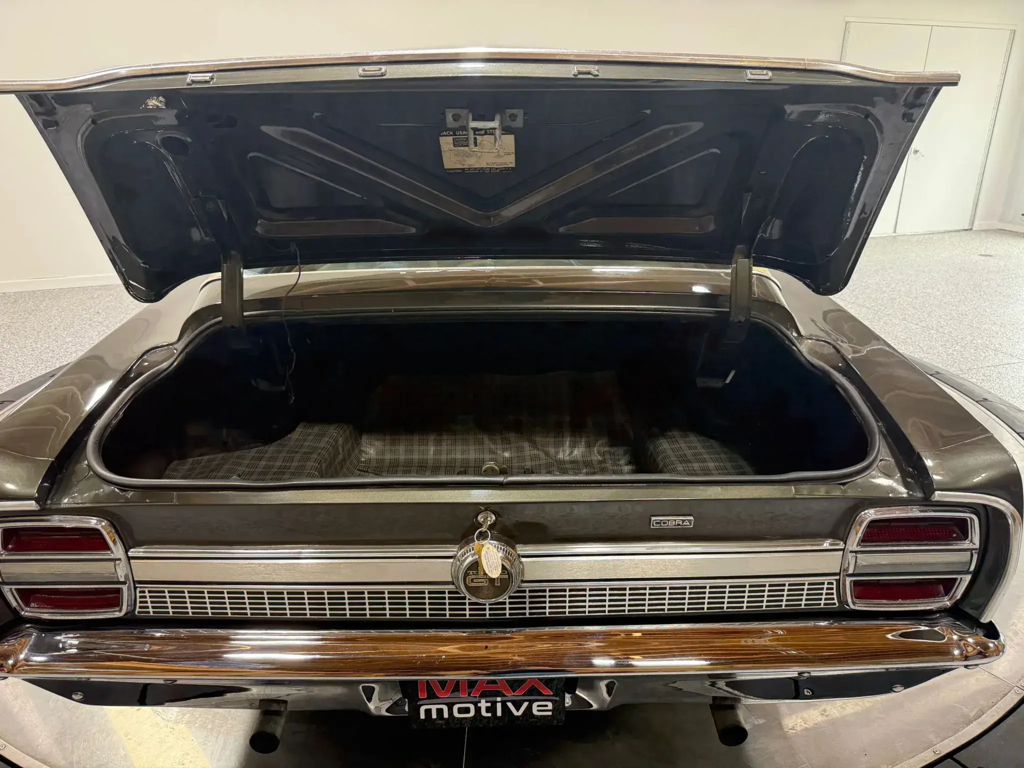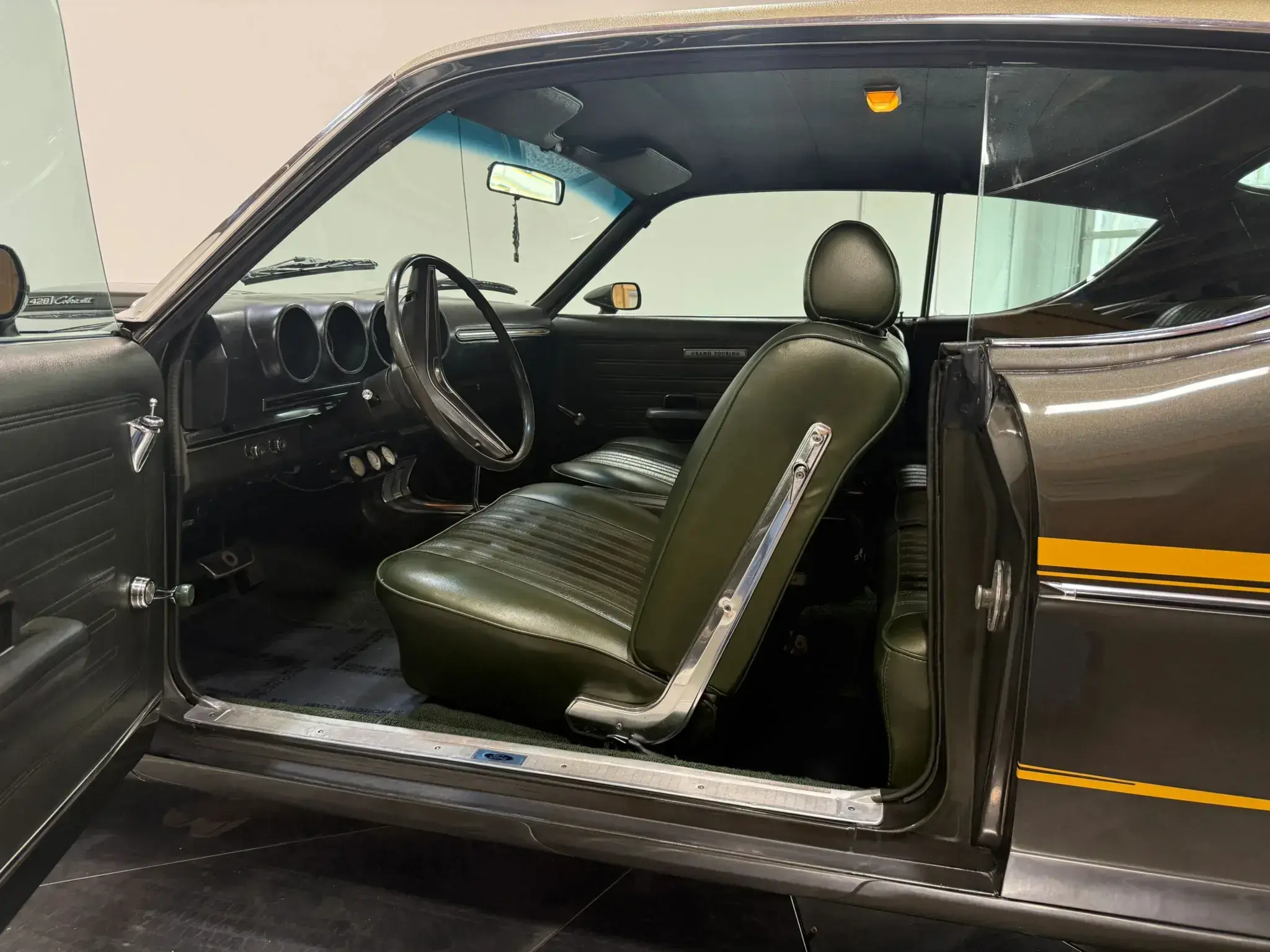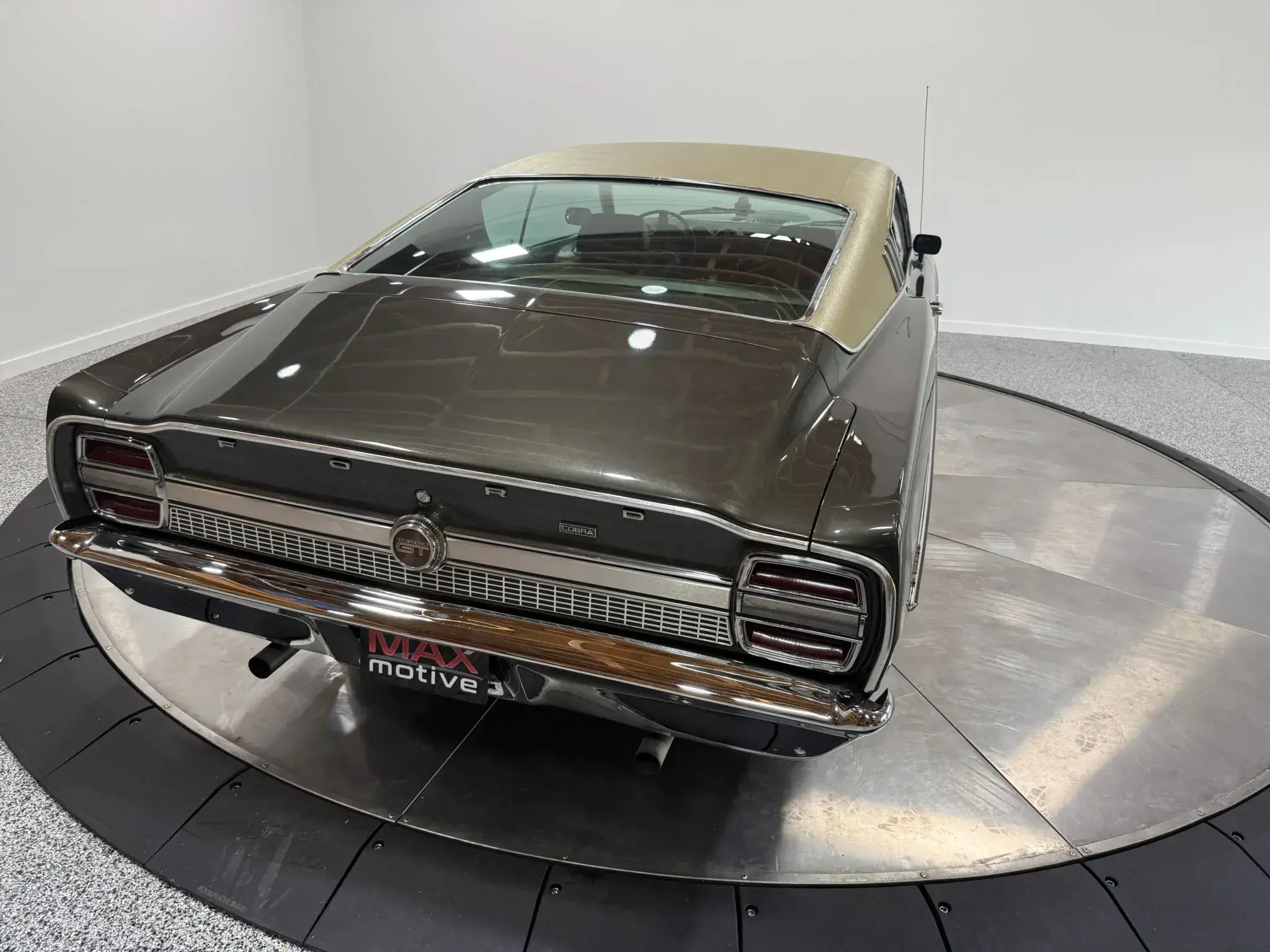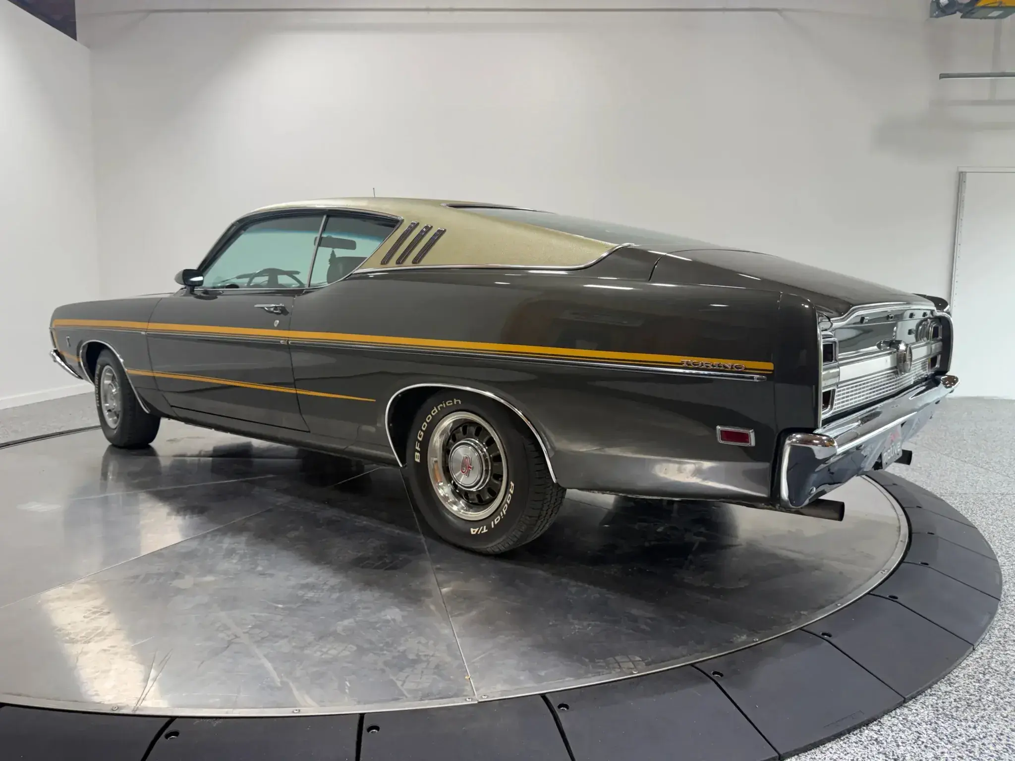 Max Motive is proud to present this 1969 Cobra Jet Torino. Finished in Jade black paint with gold stripes and a matching vinyl hard top this car cuts quite an appearance! Powered by the 428 R Code Ram air V8 engine, the build also features a Holley 600 CFM carburetor, aluminum intake, and a Ford C6 automatic transmission that delivers power to a 9-inch Posi read end.This classic muscle car is rounded out with 14-inch OEM wheels with Torino GT hubcaps wrapped in BFGoodrich Radial tires. The interior sports a unique green vinyl finish that is in great condition. Authenticated by an included Marti Report, this high performance classic is also equipped with power front disc brakes delivering confident stopping power whenever it is needed. This car is a time capsule to the American muscle car era ready for its next home!