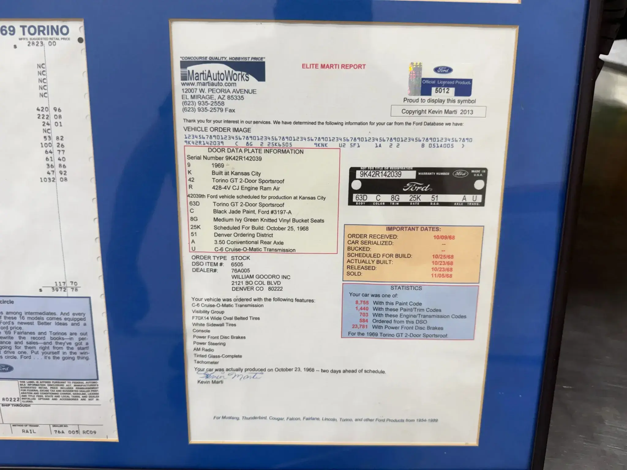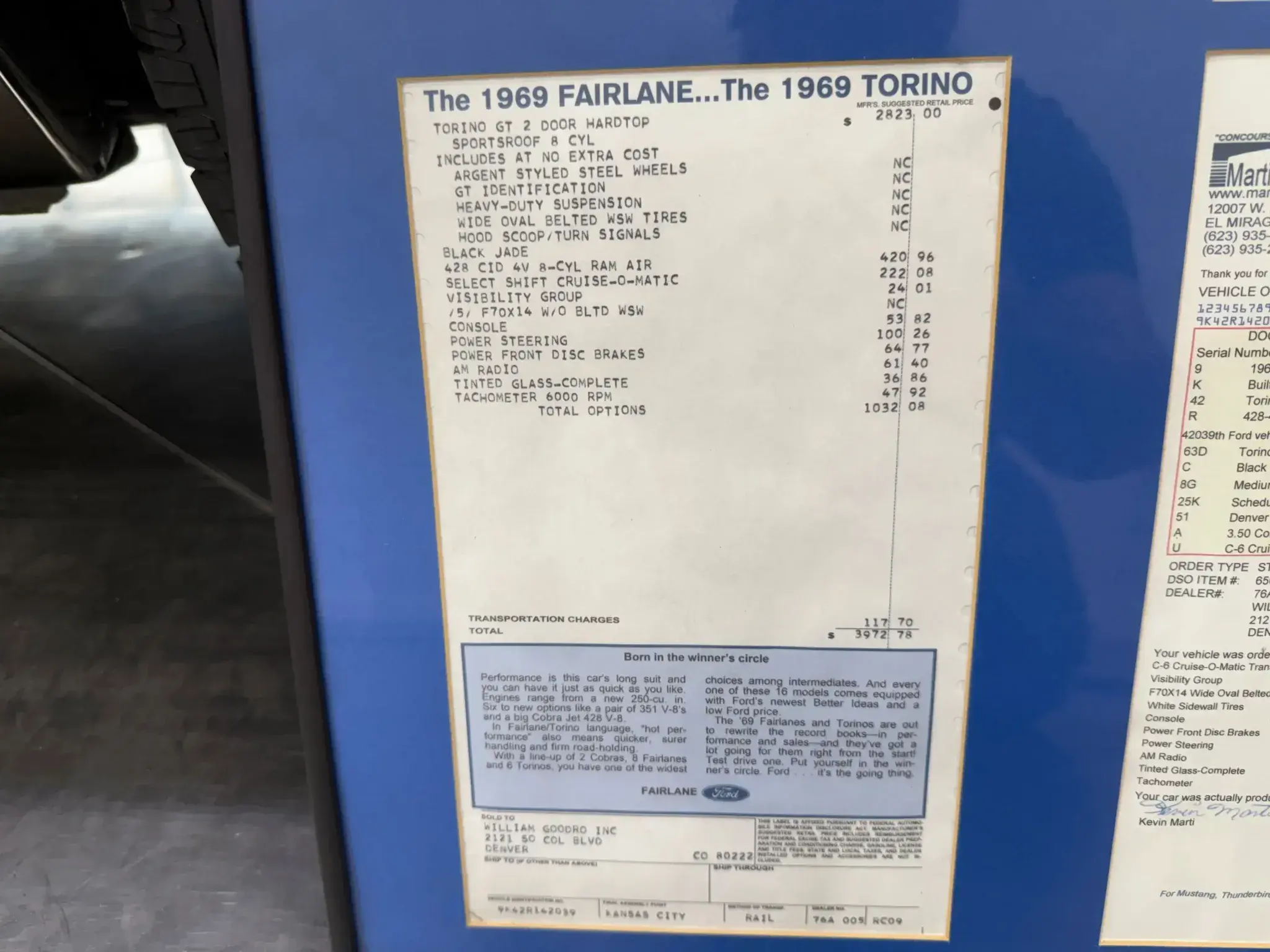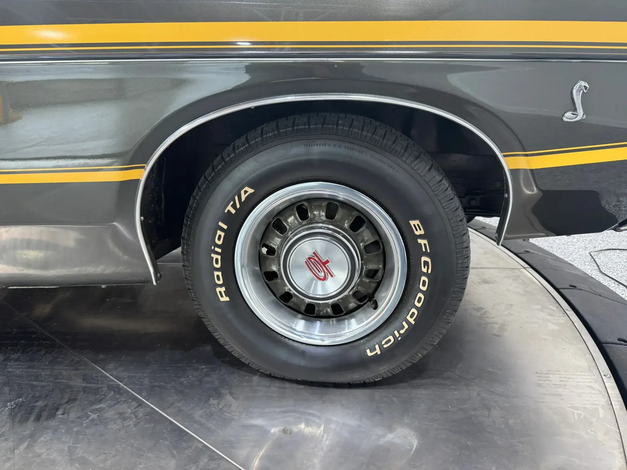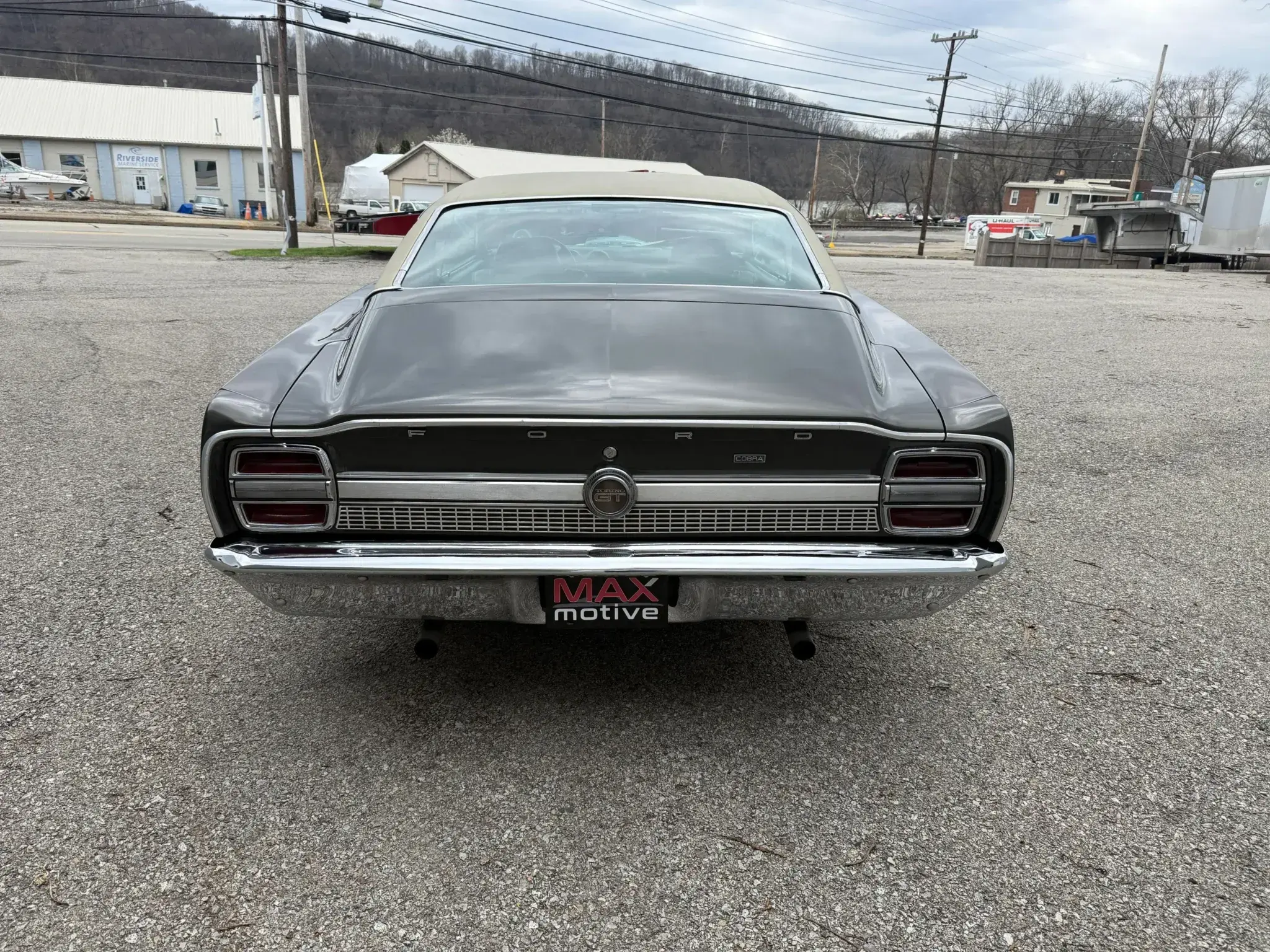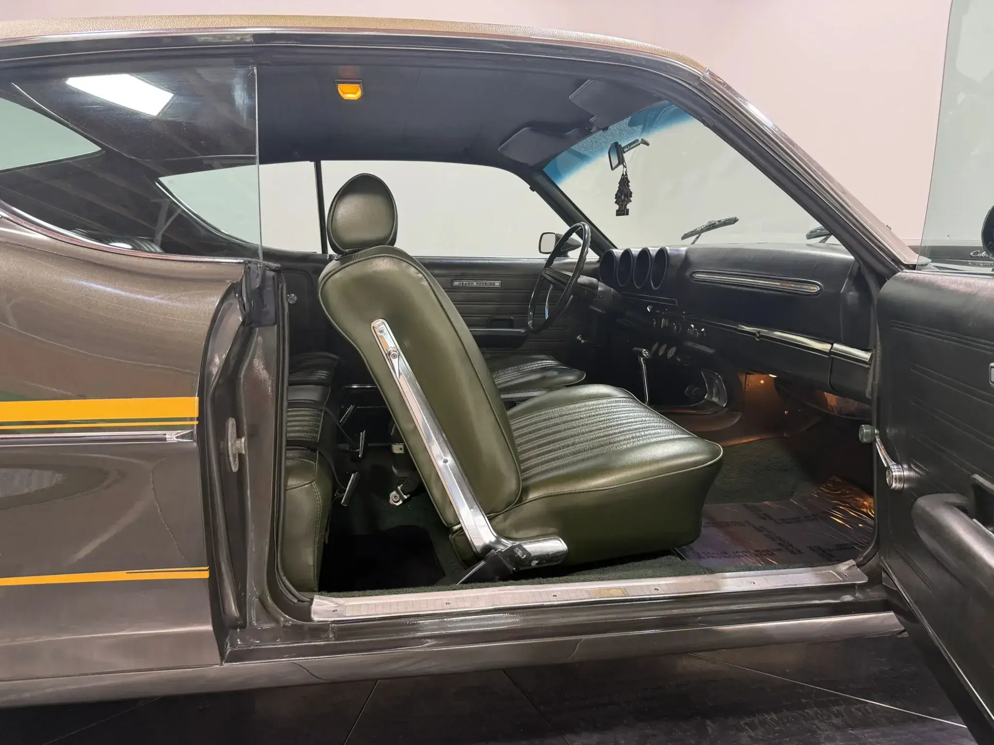Max Motive is proud to present this 1969 Cobra Jet Torino. Finished in Jade black paint with gold stripes and a matching vinyl hard top this car cuts quite an appearance! Powered by the 428 R Code Ram air V8 engine, the build also features a Holley 600 CFM carburetor, aluminum intake, and a Ford C6 automatic transmission that delivers power to a 9-inch Posi read end.This classic muscle car is rounded out with 14-inch OEM wheels with Torino GT hubcaps wrapped in BFGoodrich Radial tires. The interior sports a unique green vinyl finish that is in great condition. Authenticated by an included Marti Report, this high performance classic is also equipped with power front disc brakes delivering confident stopping power whenever it is needed. This car is a time capsule to the American muscle car era ready for its next home!