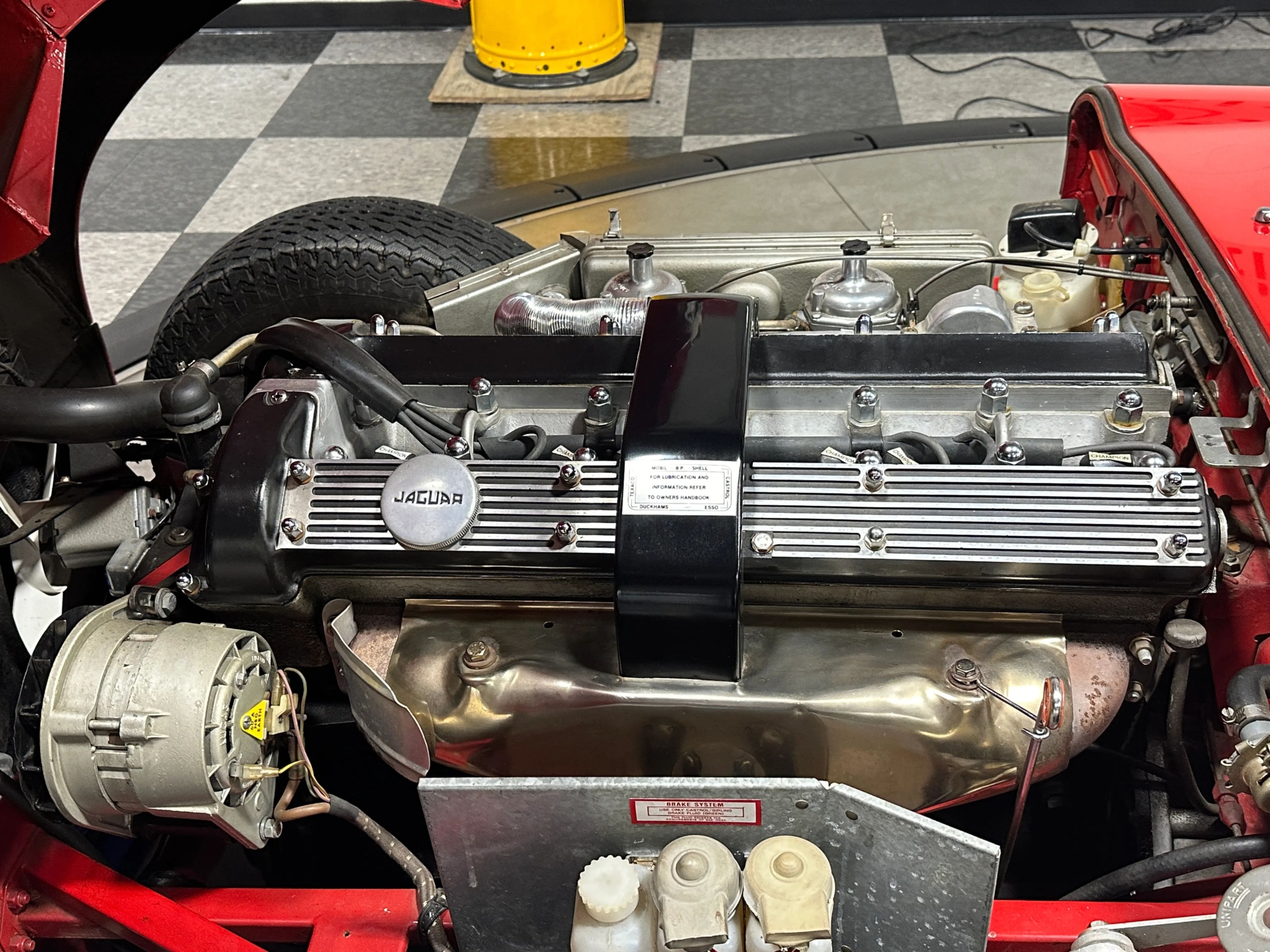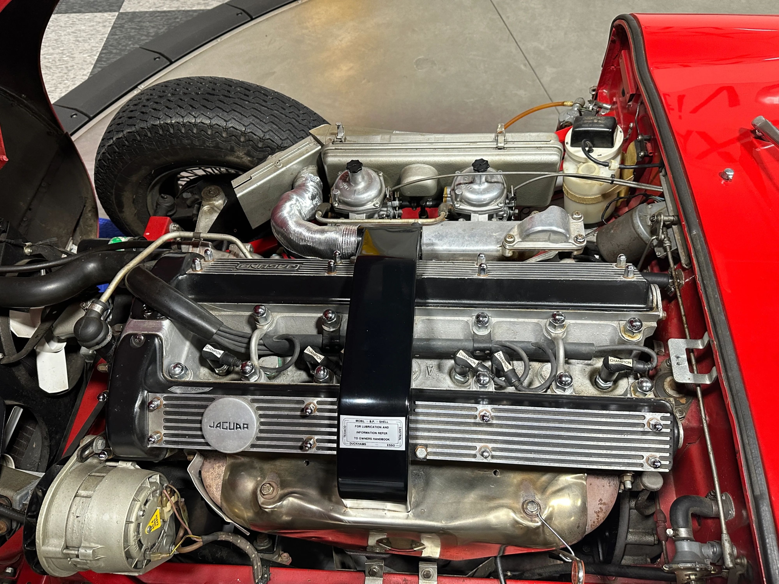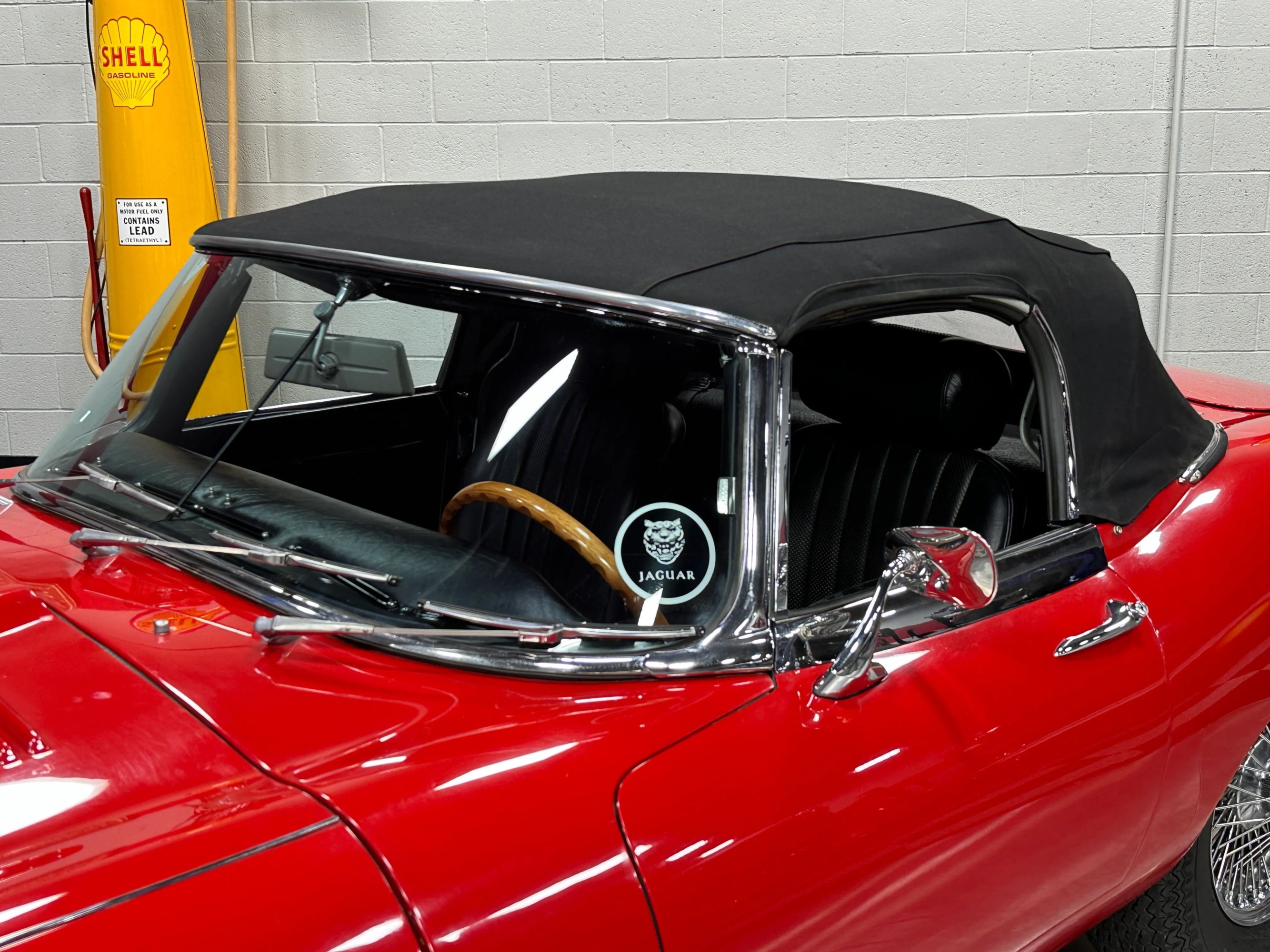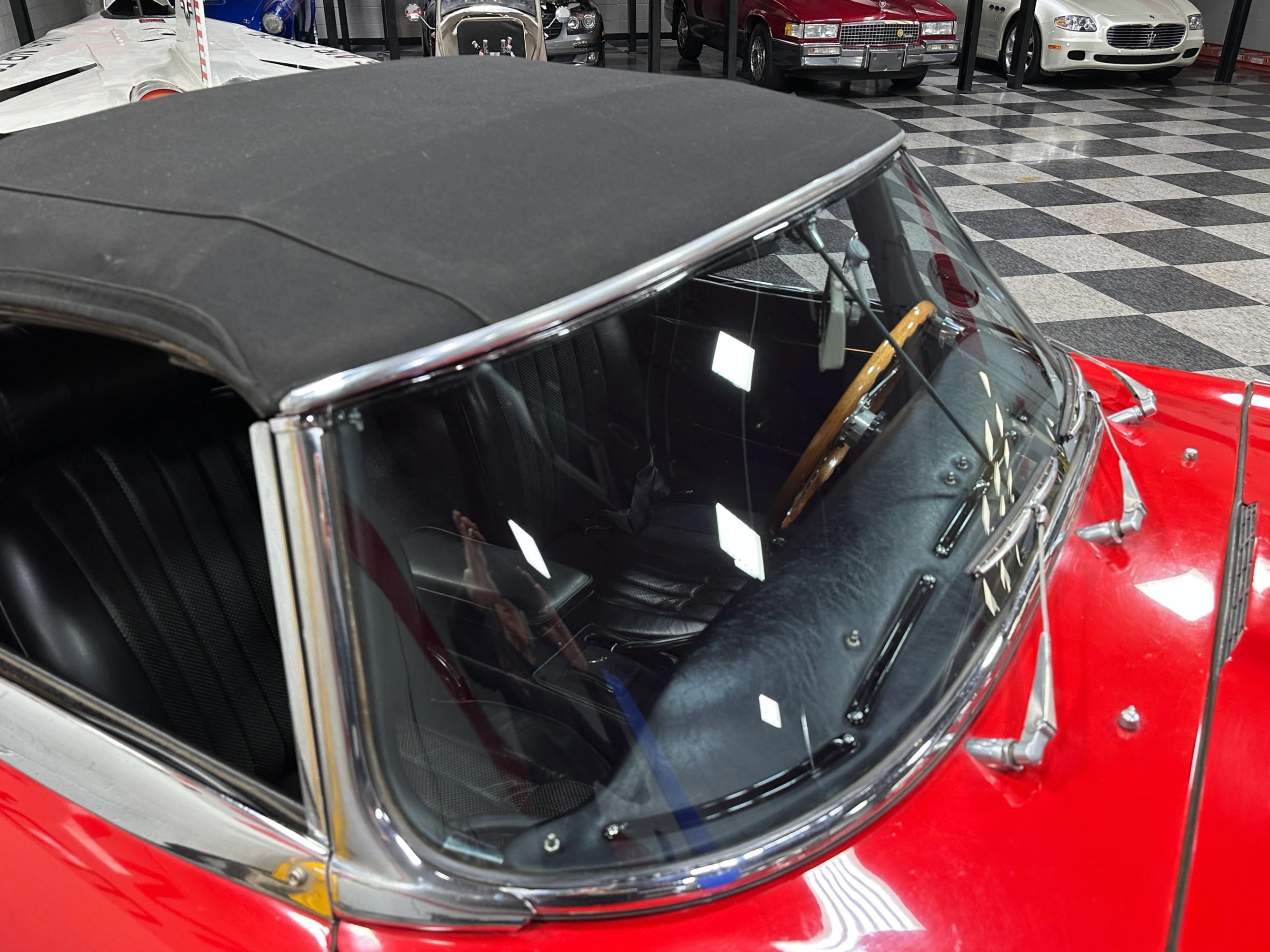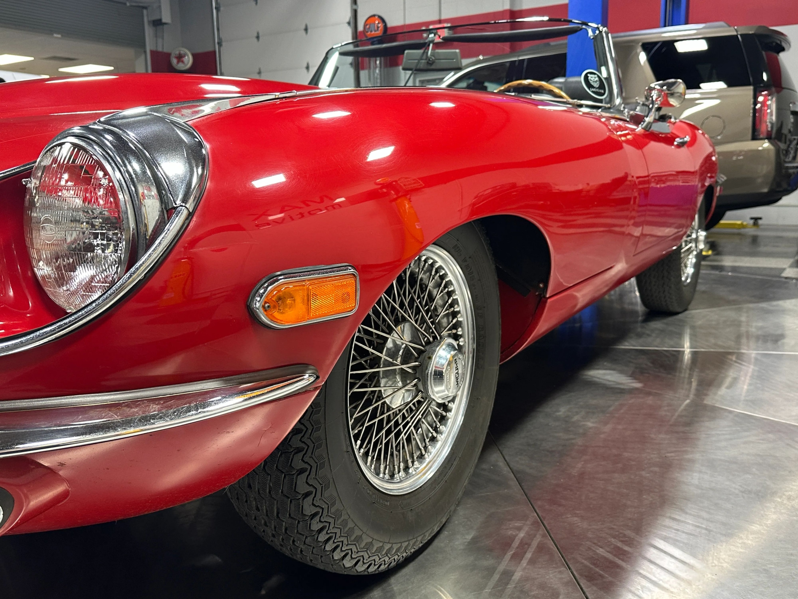 MaxMotive presents this handsome 1970 Jaguar E-Type Series II Convertible. It has been with the same family since 2004 and the odometer shows 32709 miles. The car was treated to a thorough restoration comprehensive photos included in which the color was changed to a vibrant Signal Red, contrasting nicely with the beautiful Jaguar chrome wire wheels mounting V-rated Dunlop SP Sport radial tires. Beneath the bonnet is the familiar 4.2L straight-line 6-cylinder engine with dual Stromberg carburetors. Its paired with the manually shifted 4-speed gearbox. It has a black soft top, while black upholstered leather seats provide comfort and support. A full complement of clearly legible gauges and a wood-rimmed steering wheel round out the interior. Other distinguishing features include the famous tilt front end and the well-engineered independent rear suspension with inboard disc brakes. Along with the car comes a thick binder with restoration photos, a tool kit, extra paint, and a car cover. This 1970 Jaguar E-Type Series II Convertible is complete and available for your collection. Please be sure to see the detailed photos at www.maxmotive.com.