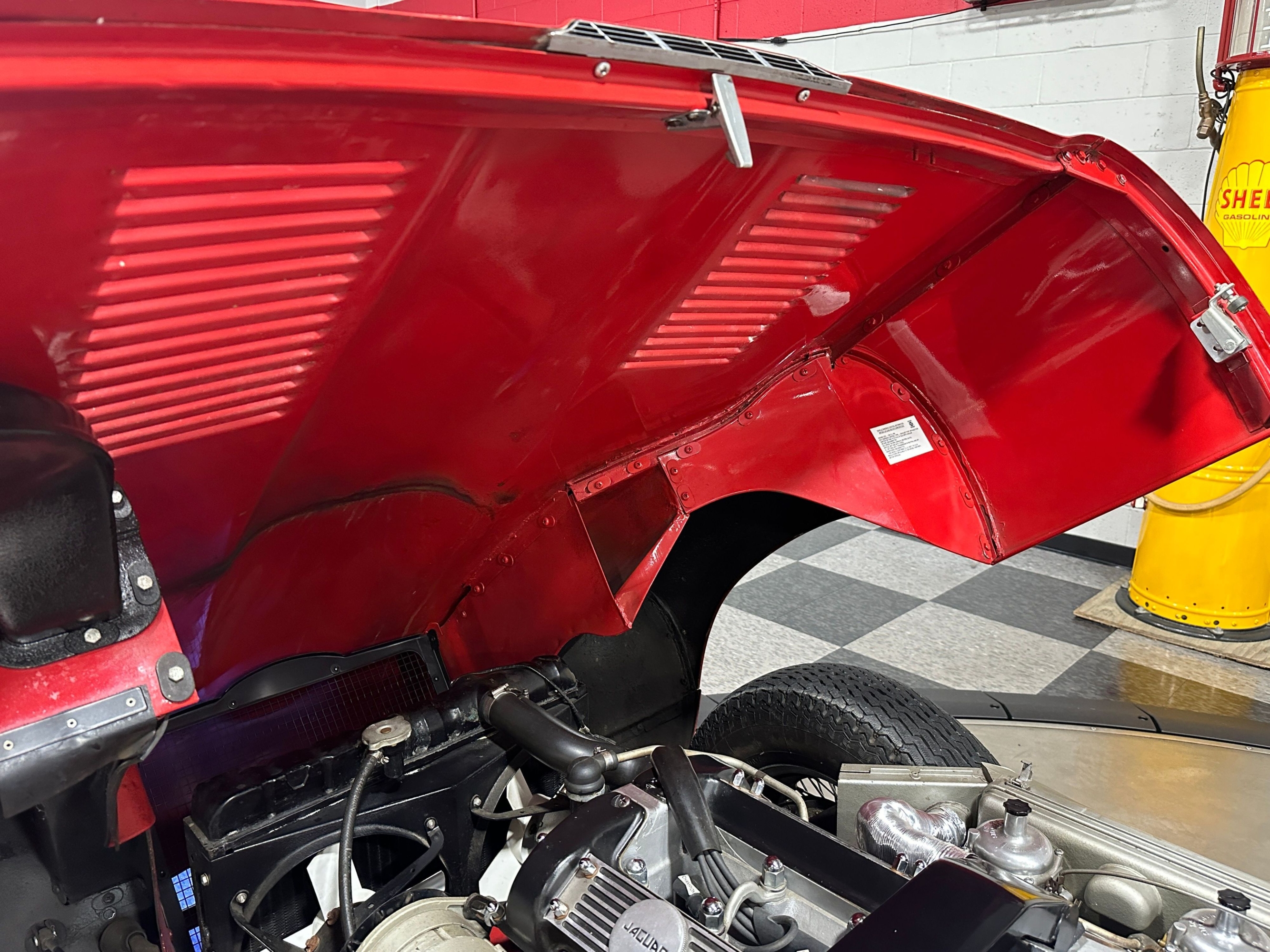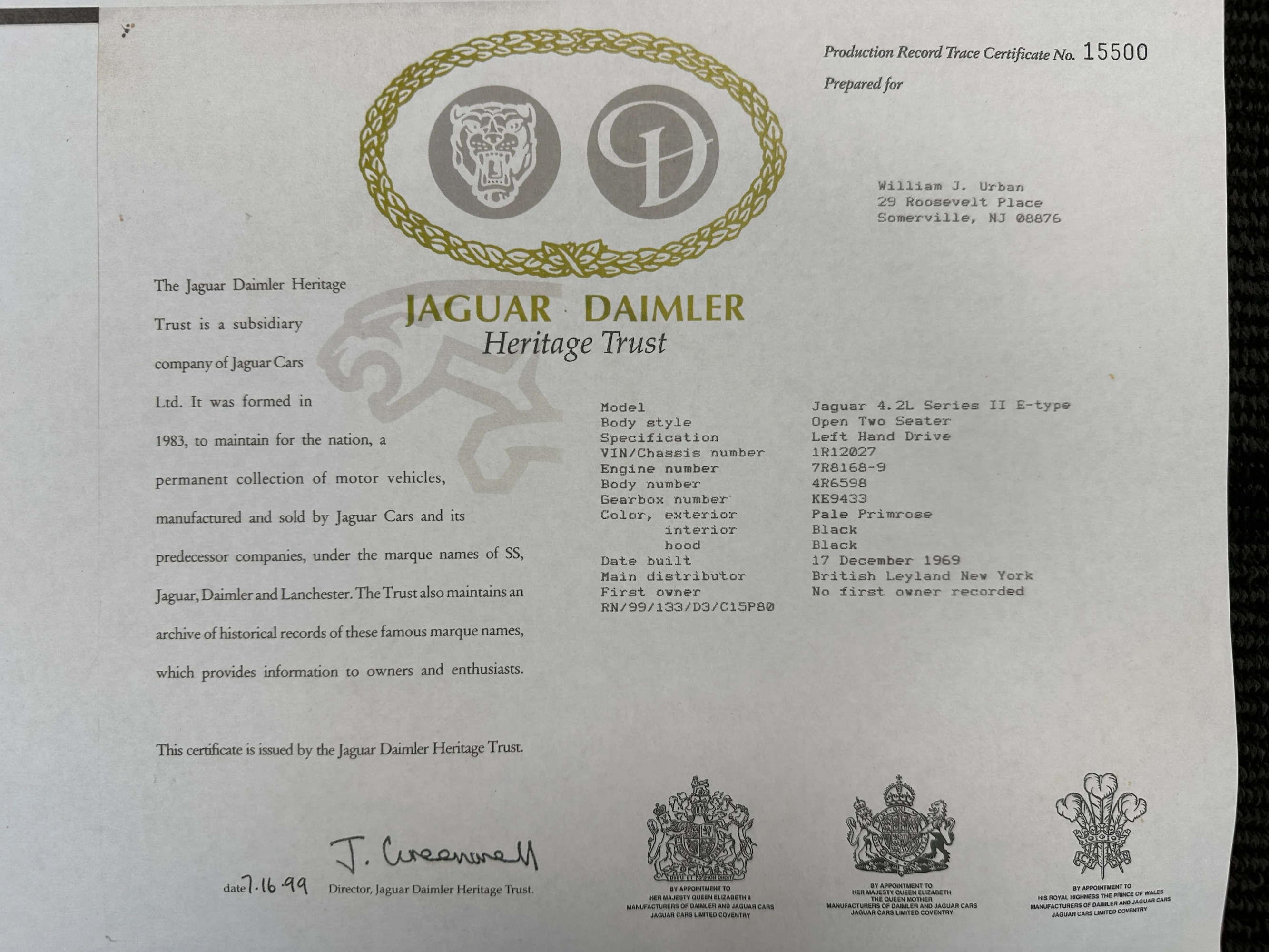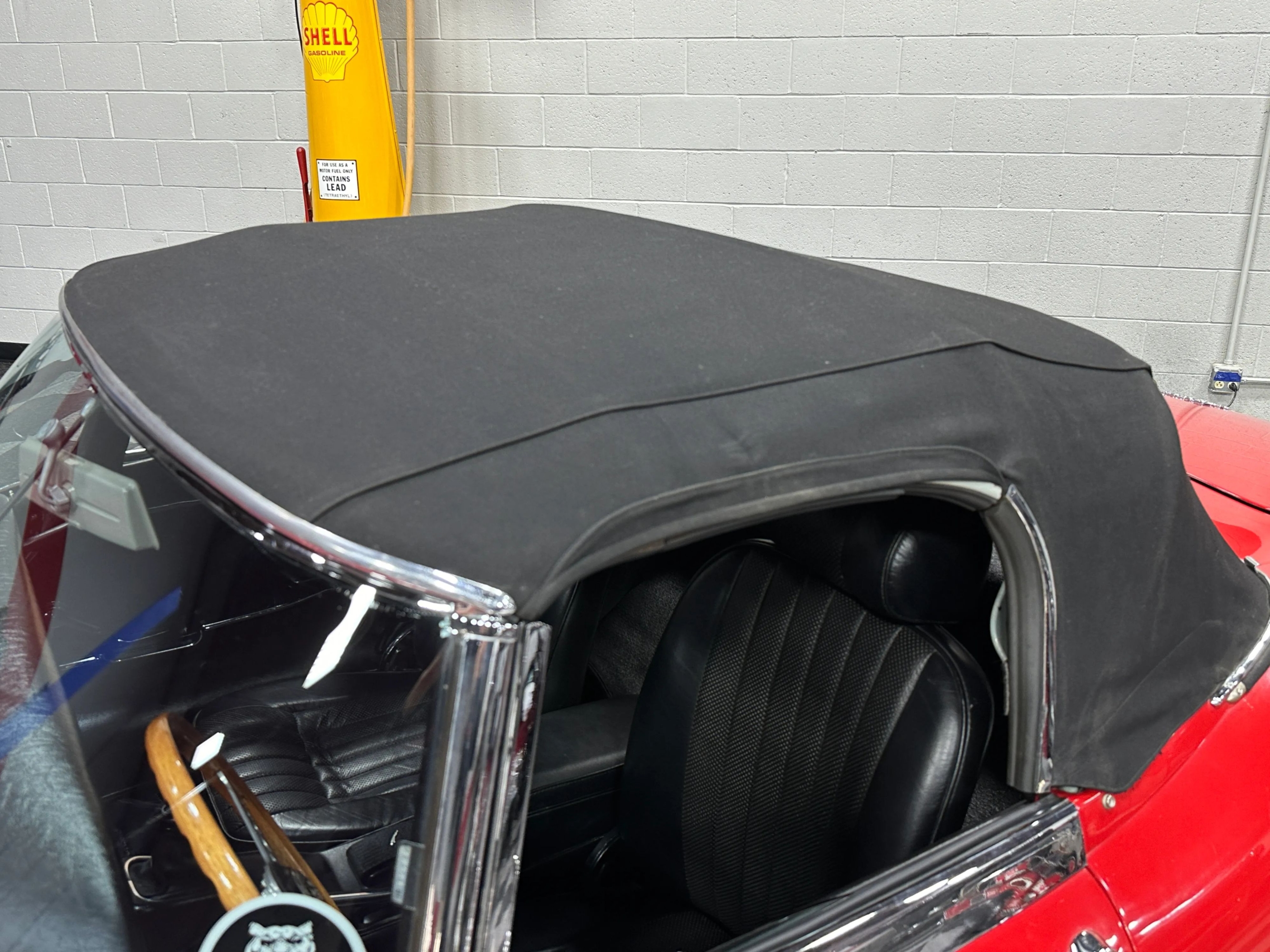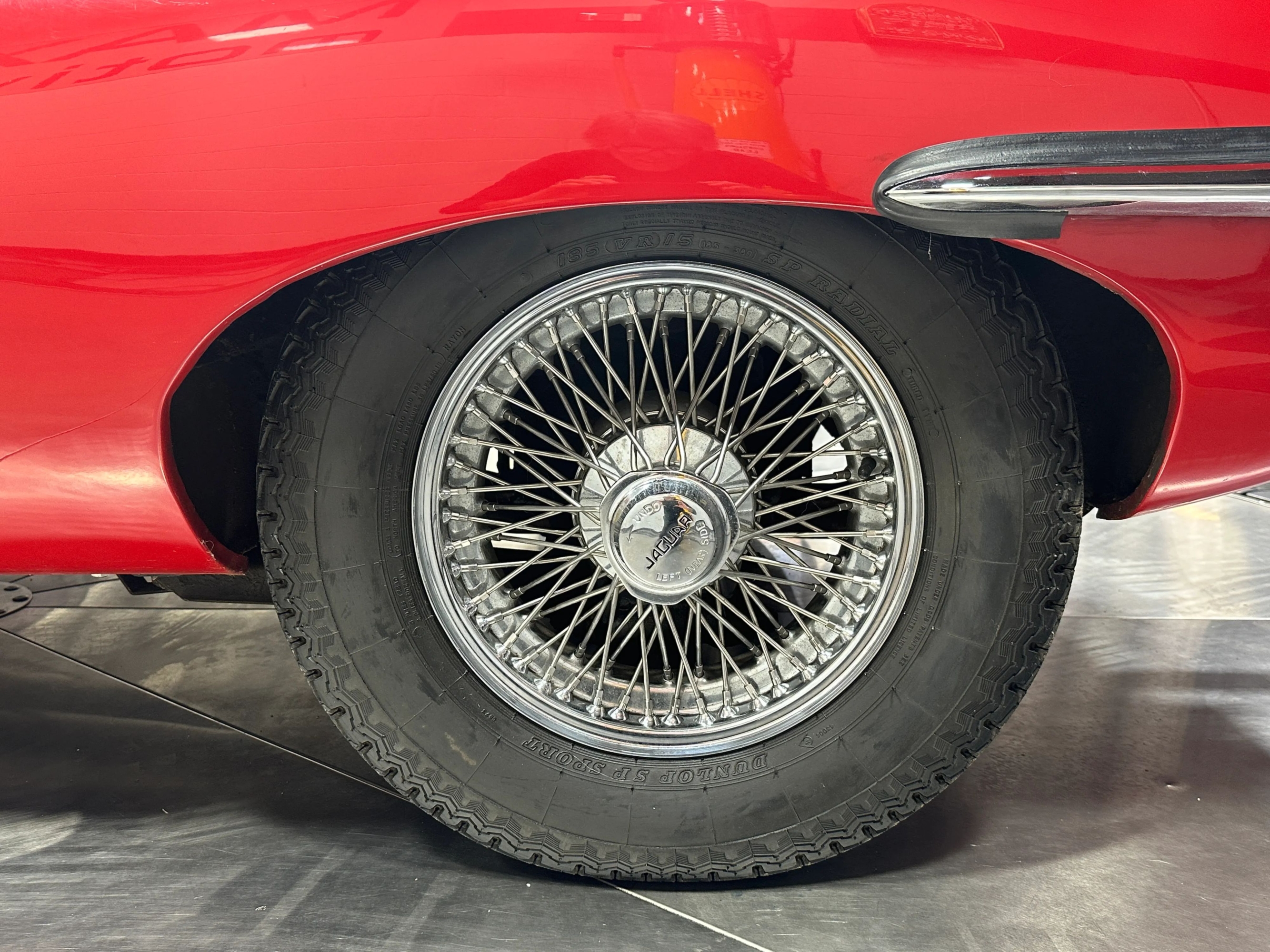 MaxMotive presents this handsome 1970 Jaguar E-Type Series II Convertible. It has been with the same family since 2004 and the odometer shows 32709 miles. The car was treated to a thorough restoration comprehensive photos included in which the color was changed to a vibrant Signal Red, contrasting nicely with the beautiful Jaguar chrome wire wheels mounting V-rated Dunlop SP Sport radial tires. Beneath the bonnet is the familiar 4.2L straight-line 6-cylinder engine with dual Stromberg carburetors. Its paired with the manually shifted 4-speed gearbox. It has a black soft top, while black upholstered leather seats provide comfort and support. A full complement of clearly legible gauges and a wood-rimmed steering wheel round out the interior. Other distinguishing features include the famous tilt front end and the well-engineered independent rear suspension with inboard disc brakes. Along with the car comes a thick binder with restoration photos, a tool kit, extra paint, and a car cover. This 1970 Jaguar E-Type Series II Convertible is complete and available for your collection. Please be sure to see the detailed photos at www.maxmotive.com.