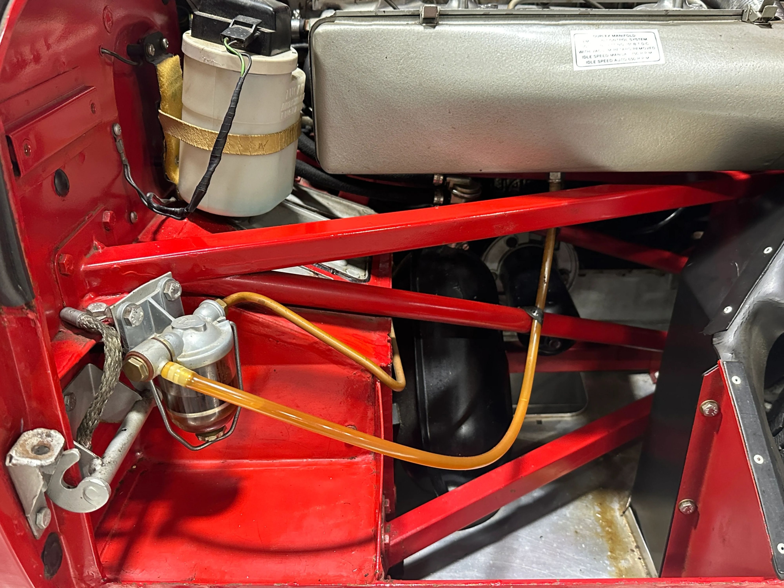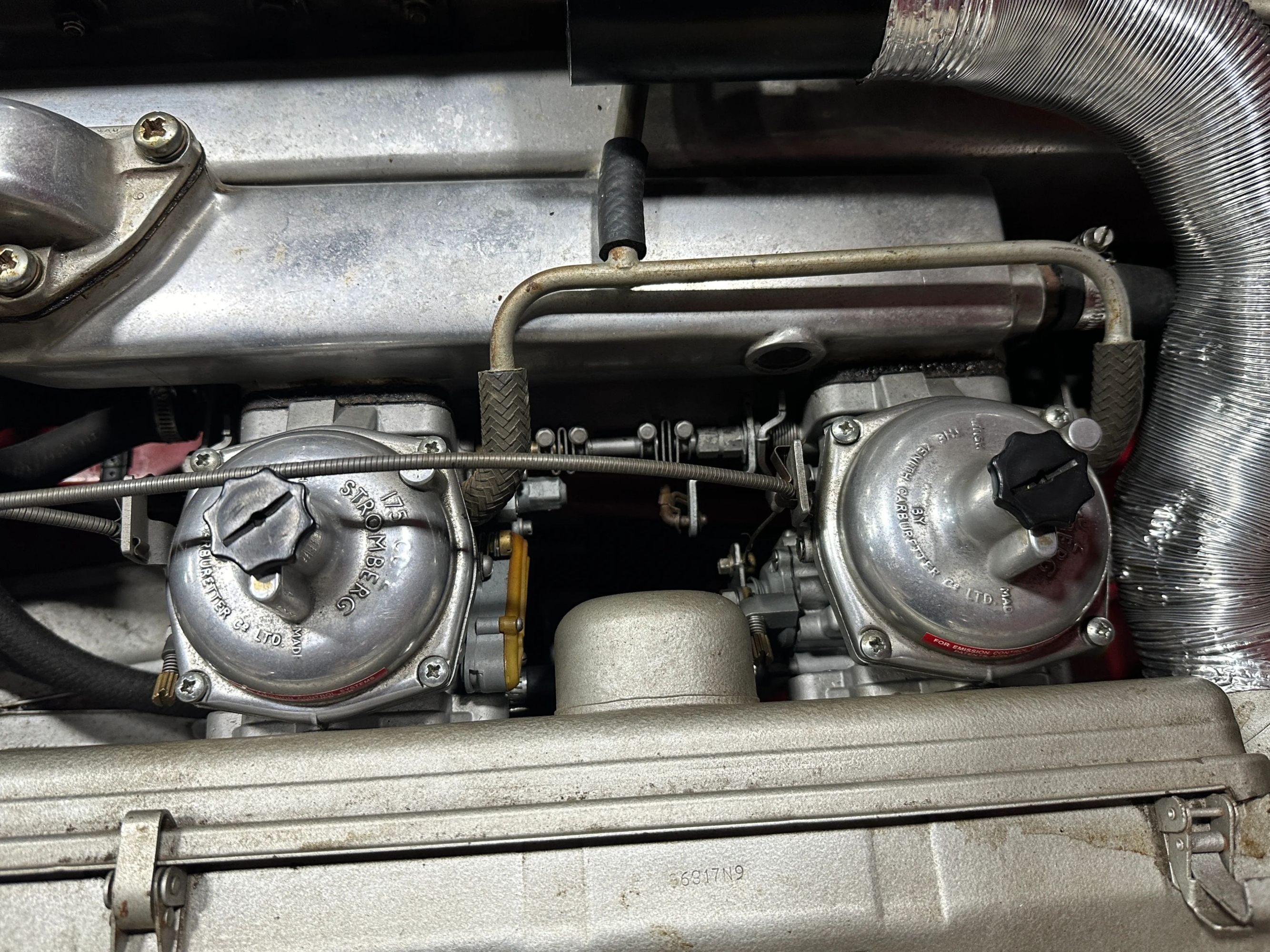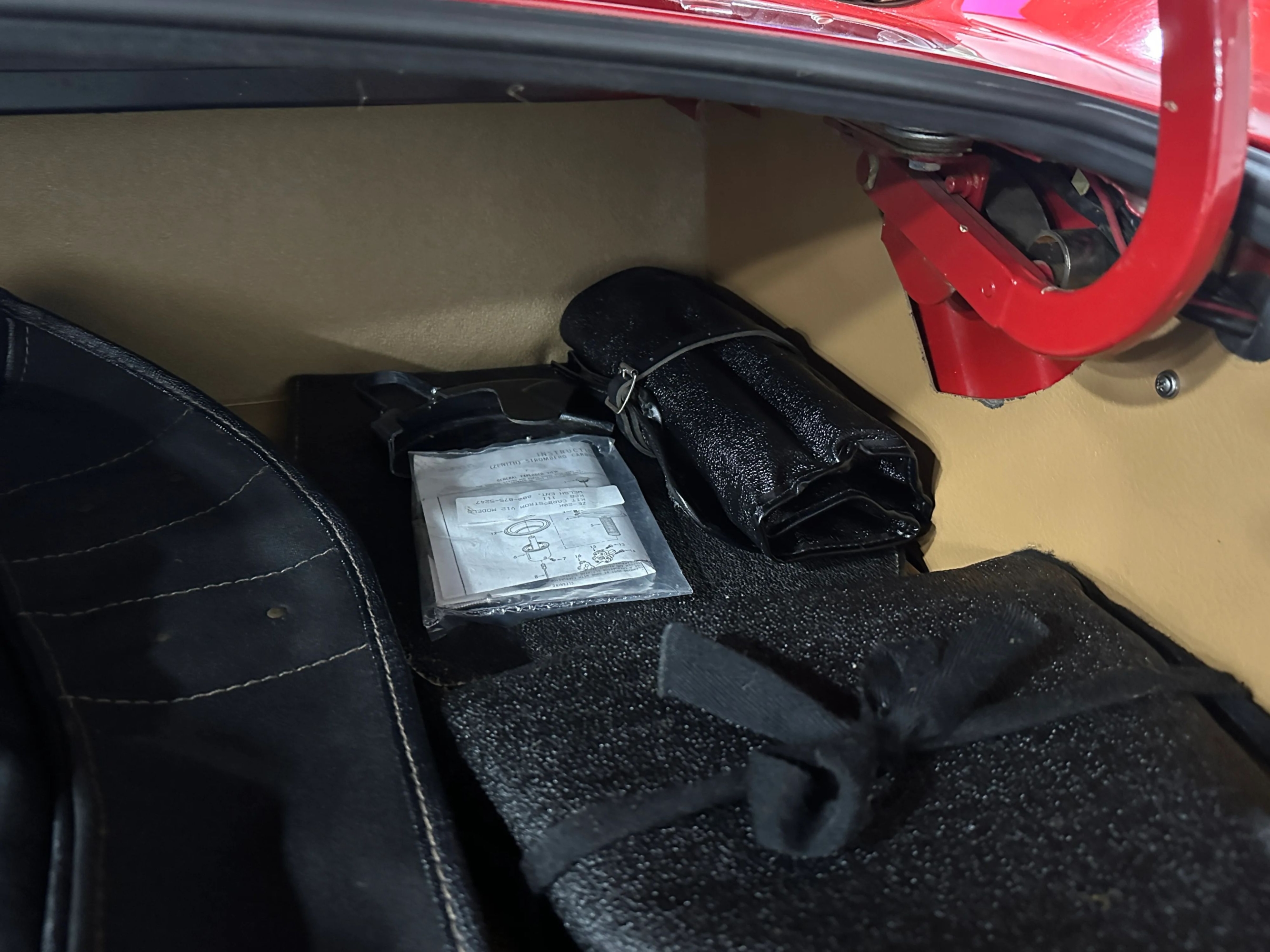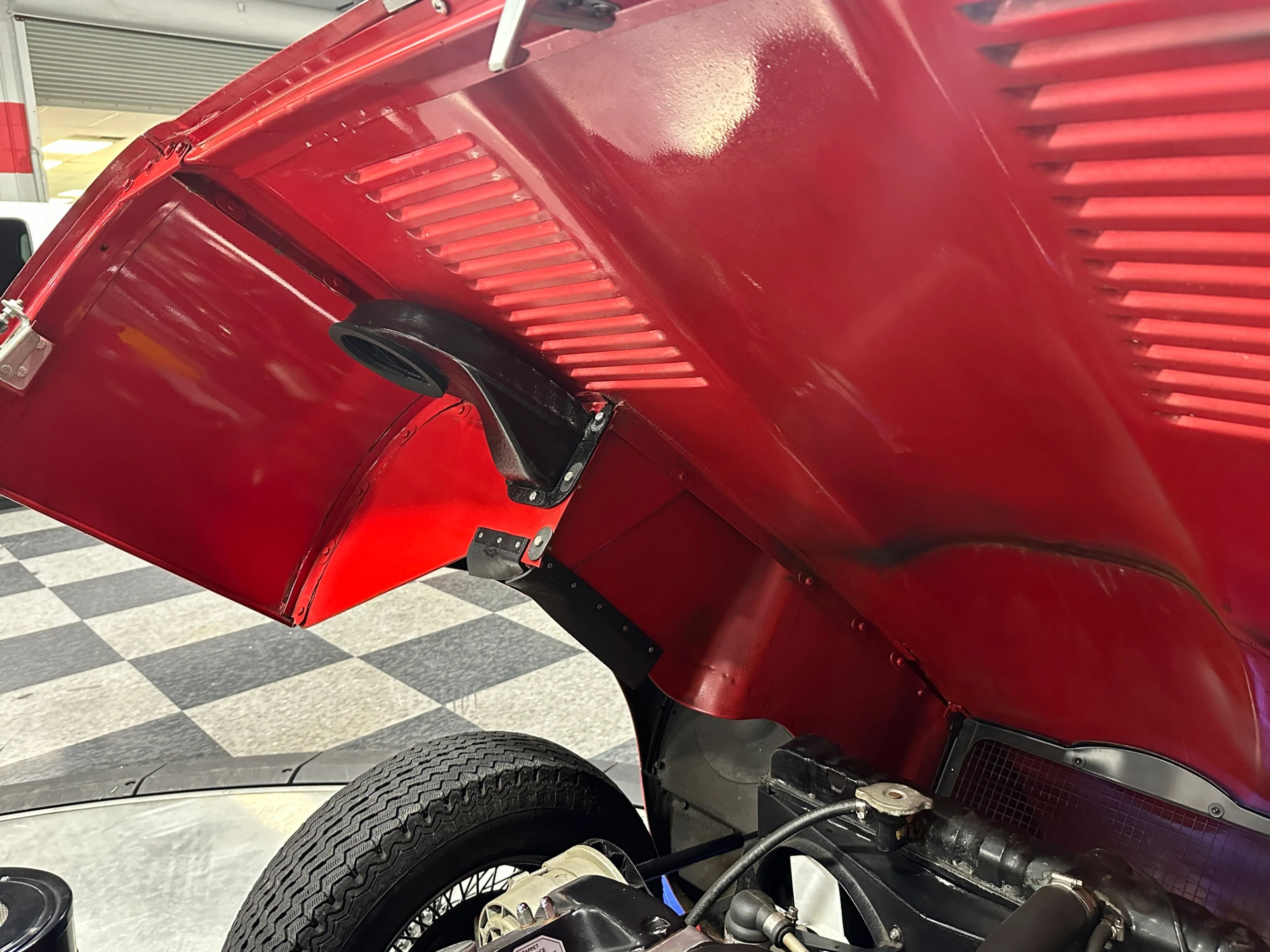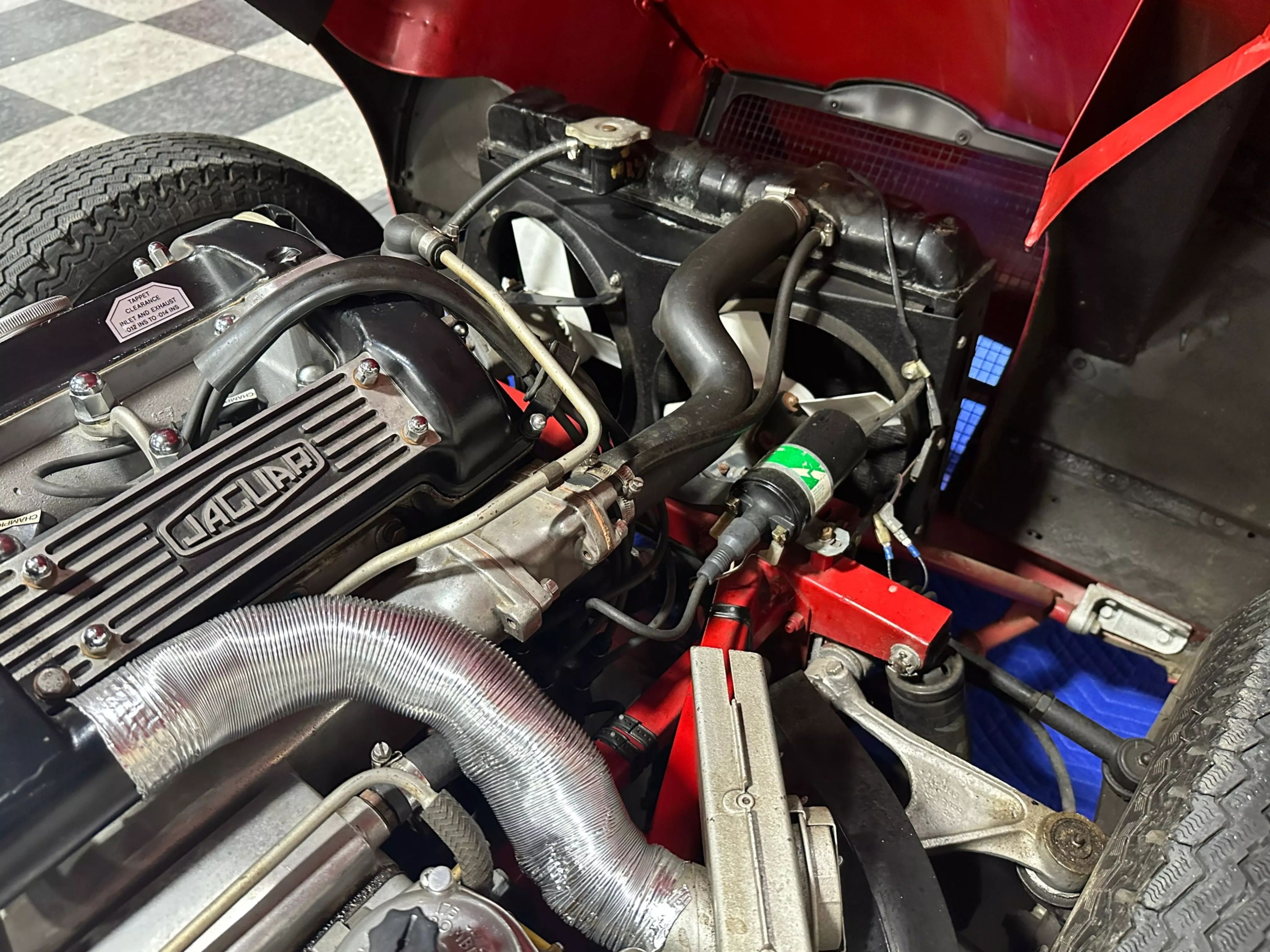 MaxMotive presents this handsome 1970 Jaguar E-Type Series II Convertible. It has been with the same family since 2004 and the odometer shows 32709 miles. The car was treated to a thorough restoration comprehensive photos included in which the color was changed to a vibrant Signal Red, contrasting nicely with the beautiful Jaguar chrome wire wheels mounting V-rated Dunlop SP Sport radial tires. Beneath the bonnet is the familiar 4.2L straight-line 6-cylinder engine with dual Stromberg carburetors. Its paired with the manually shifted 4-speed gearbox. It has a black soft top, while black upholstered leather seats provide comfort and support. A full complement of clearly legible gauges and a wood-rimmed steering wheel round out the interior. Other distinguishing features include the famous tilt front end and the well-engineered independent rear suspension with inboard disc brakes. Along with the car comes a thick binder with restoration photos, a tool kit, extra paint, and a car cover. This 1970 Jaguar E-Type Series II Convertible is complete and available for your collection. Please be sure to see the detailed photos at www.maxmotive.com.