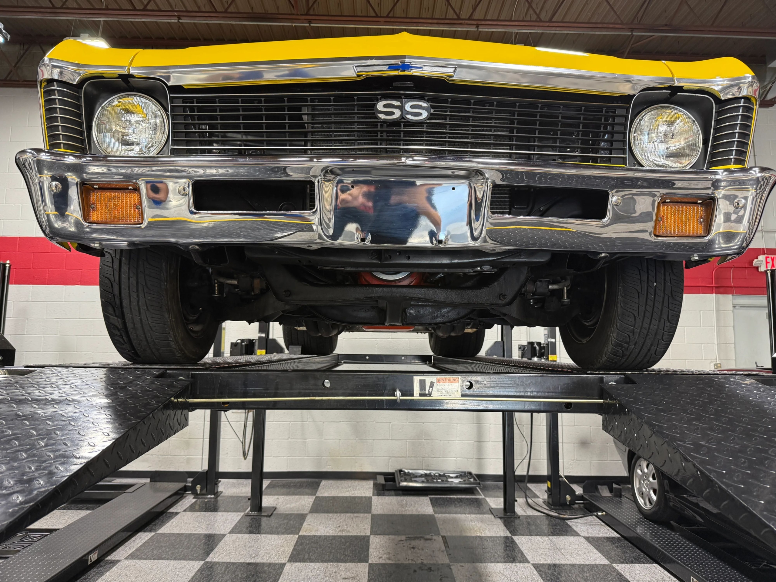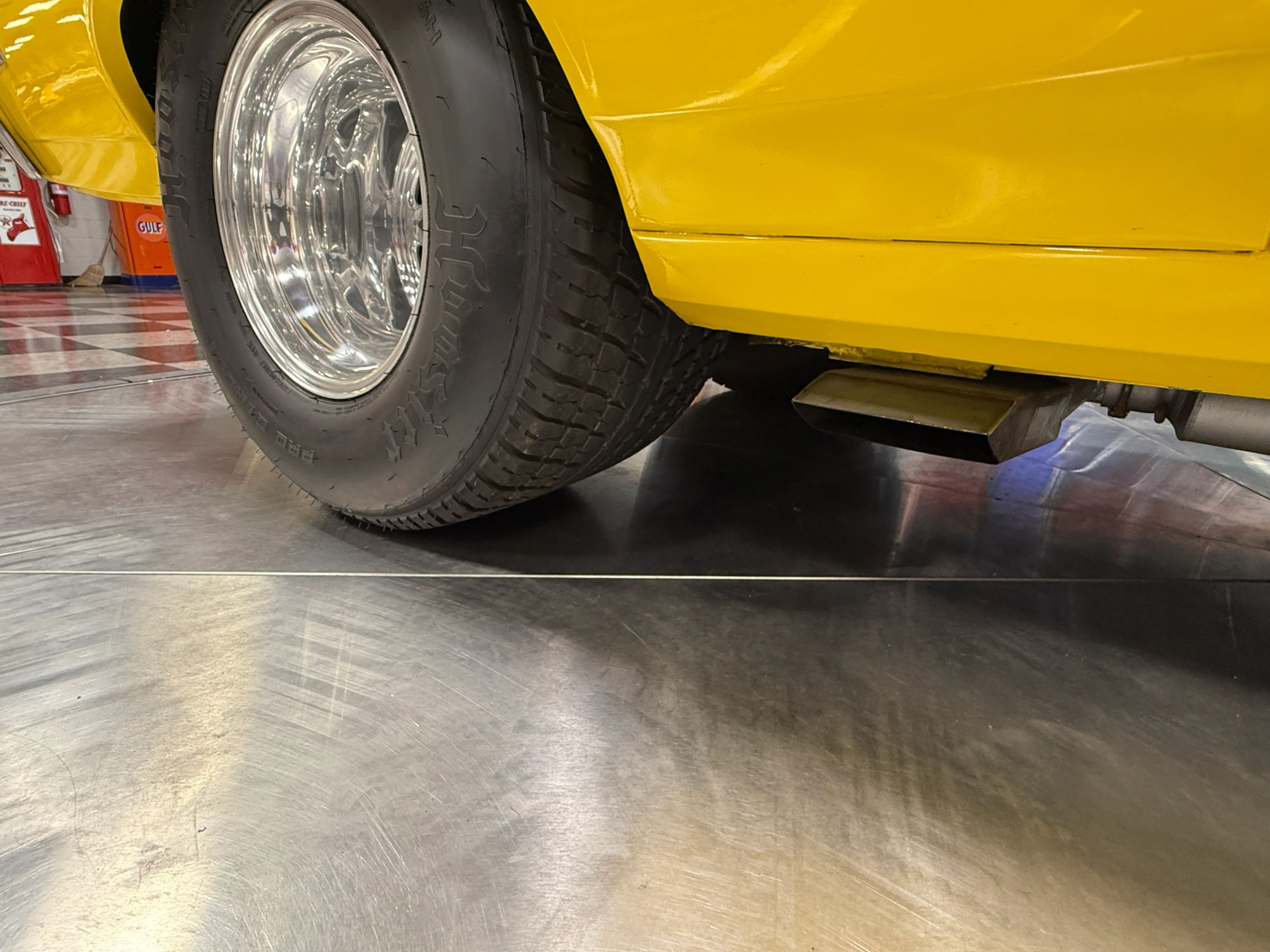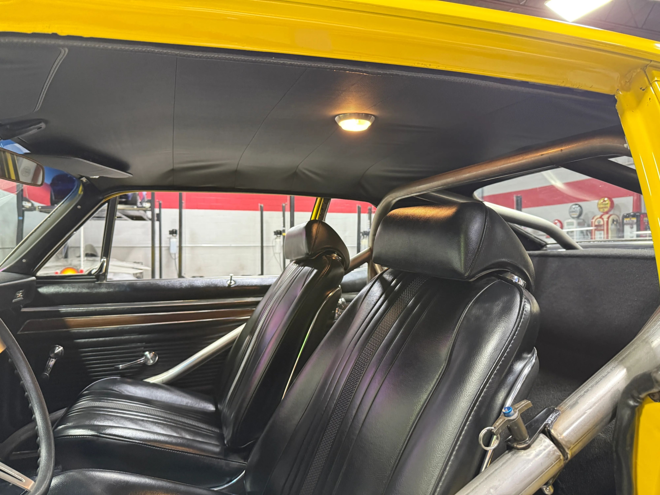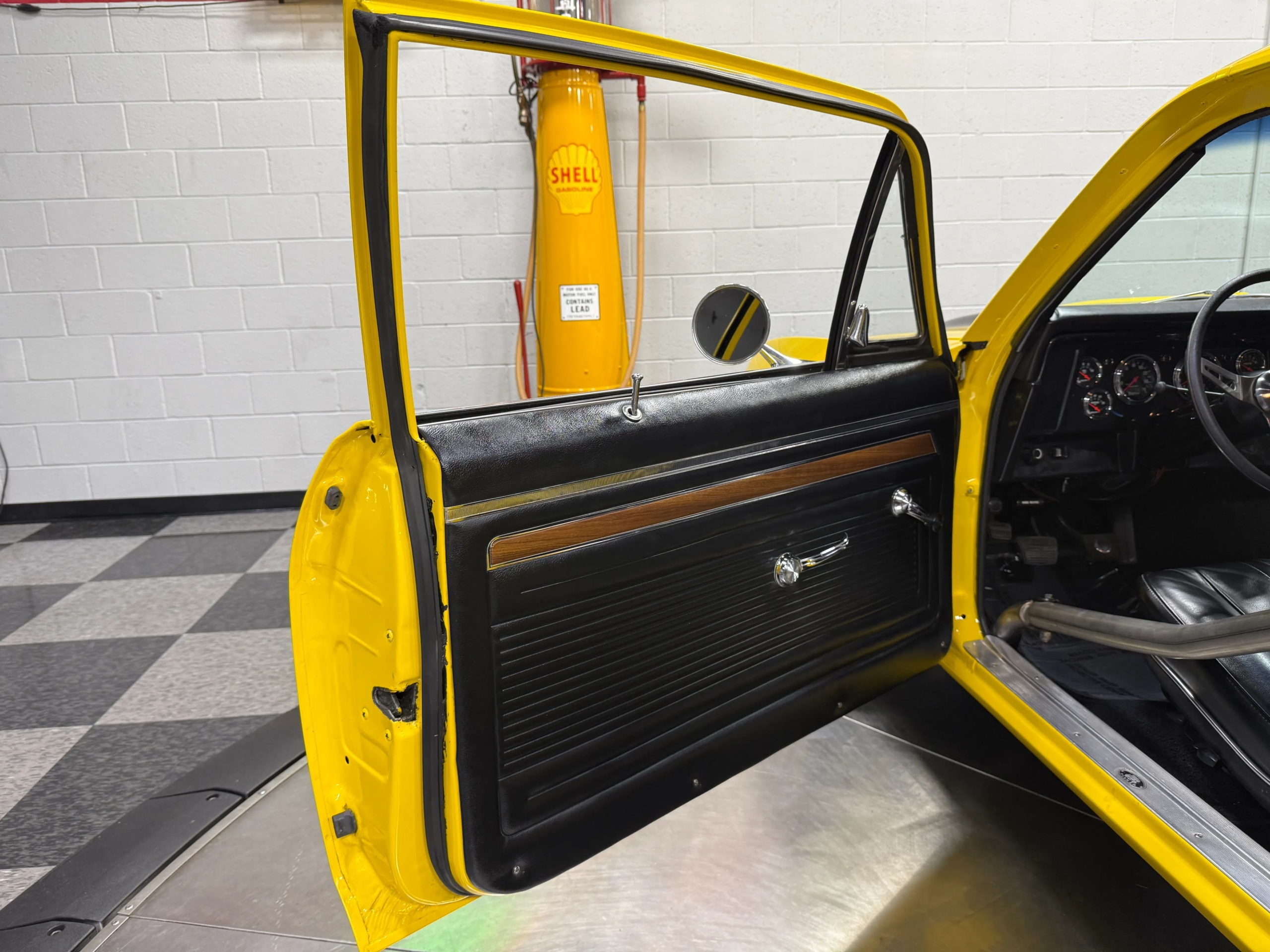 The exterior makes an immediate impression with its bright yellow paint accented by bold black stripes, a look that captures the Novas aggressive personality. Function meets form with a chromoly 6-point roll bar featuring a drivers side swing-out for easier access, a custom 3-inch Flowmaster exhaust neatly tucked under the body with side exits ahead of the rear wheels, and a set of classic Weld wheels that nail the Pro Street stance. Inside, the car is clean and purposeful, with fresh interior components and a full set of Auto Meter gauges keeping the driver connected to the big blocks vital signs.
