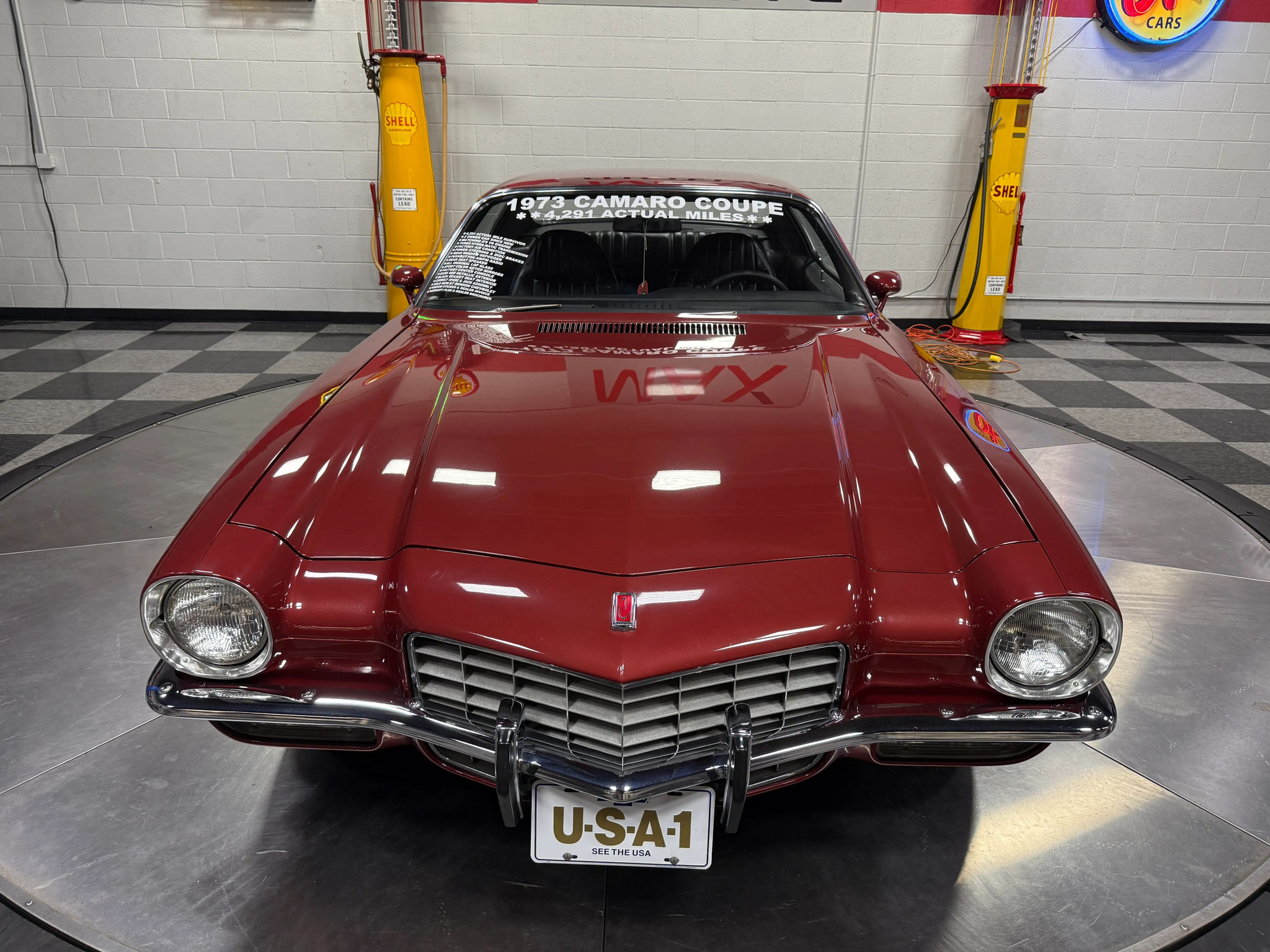 Maxmotive is excited to offer this amazingly low mileage 1973 Camaro for sale. This Camaro only has 4,400 miles on it since it rolled off the factory in 1973. Two owners have lovingly cared for and preserved this Camaro since 1973. Maxmotive is looking forward to finding this incredible time capsule’s next owner. Under the hood you will find a numbers matching 307ci V-8 engine paired to a TH-350 three speed automatic transmission. The Camaro came nicely equipped from the factory with power steering, front disc brakes, and factory air conditioning. Inside the cabin, you will find dual front bucket seats and a center console. The Camaros interior also had other optional upgrades for 1973, such as an AM/FM radio with the rear speaker option. Original window sticker, original factory invoice, original owners manual, and other dealer paperwork are accompanied by a few cool old pictures of the Camaro from back in the day as well. Truly an incredible piece of American that has been so lovingly and well preserved, this Camaro is ready for its next home. For more information on this 1973 Camaro please visit our website at www.maxmotive.com