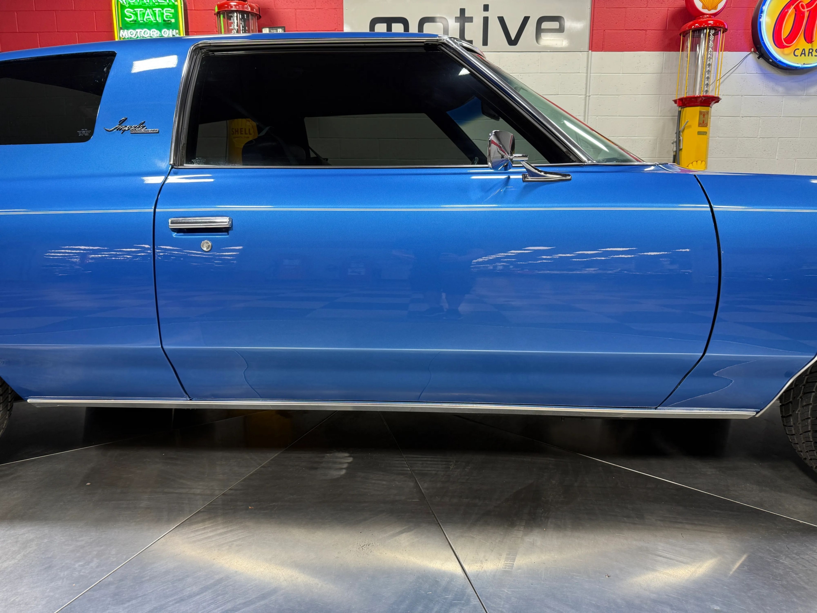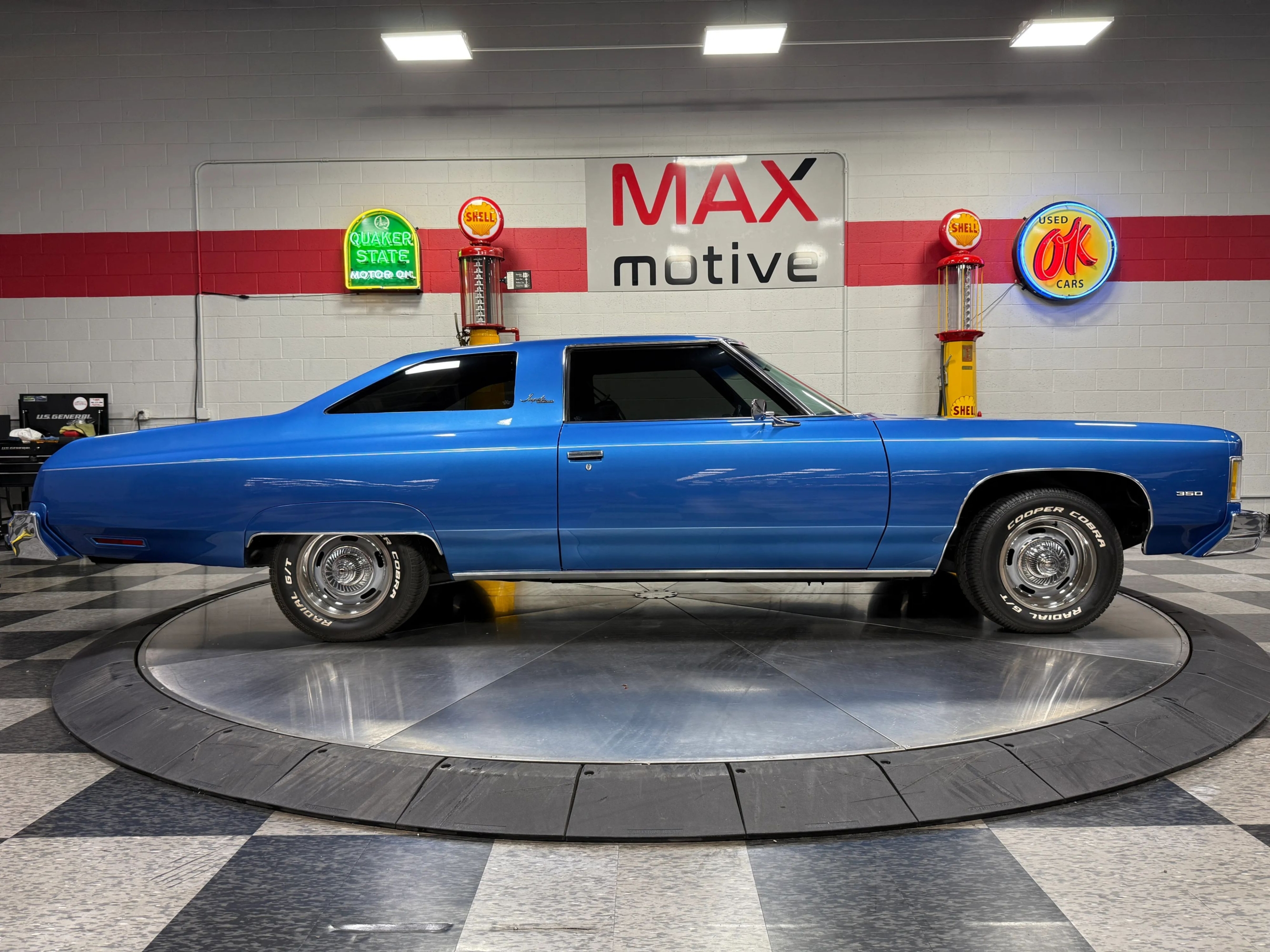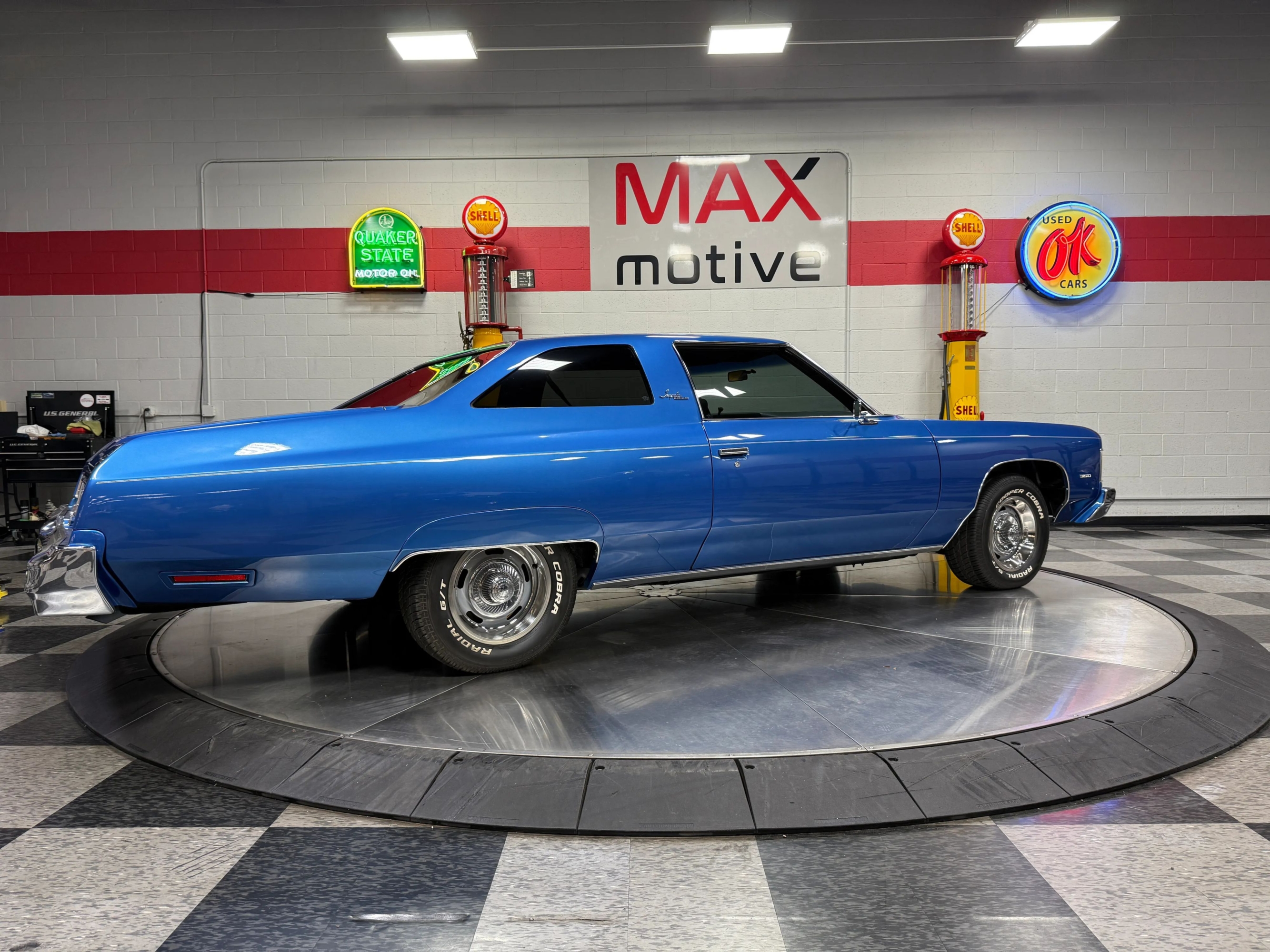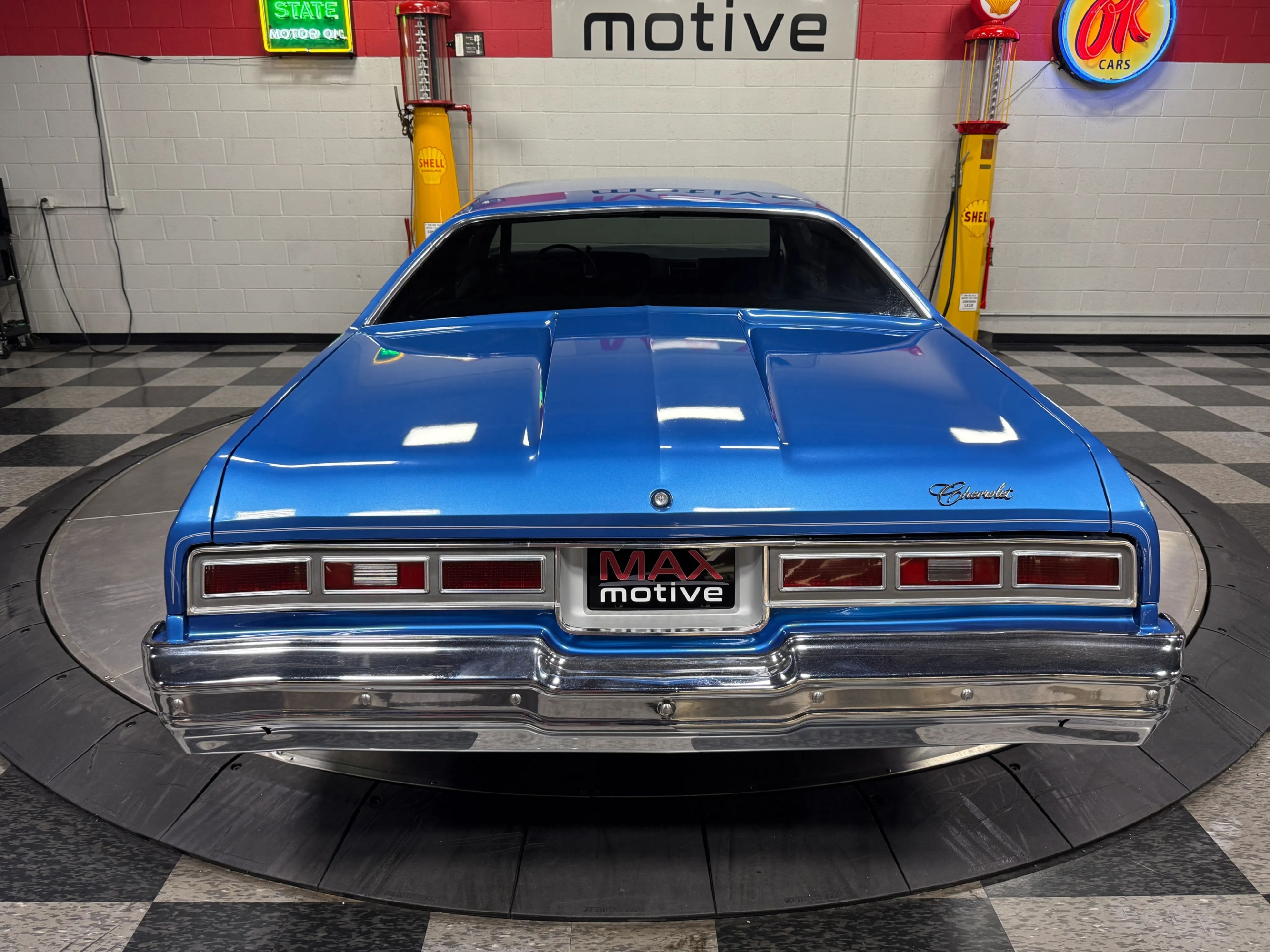 Maxmotive is proud to present this beautiful 1974 Impala Colonial 2 door hardtop. This very clean Impala boasts a strong running 350 cubic inch V-8 under the hood, paired to a 3 speed Hydramatic automatic transmission. To keep the engine flowing and breathing, a Flowmaster muffler was added, and of course who doesnt love the nice growl of a Flowmaster. The Impala was treated to a beautiful repaint in 2023. Once the body work was finished, the Impala was sprayed in a stunning blue paint. The color is essentially the same color the car rolled off the assembly line some 50 years ago. The paint shows magnificently, and really helps this Impala look the part. Tinted windows nicely offset the beautiful new blue paint. Some extra parts that are in the trunk and will be included are the original hub caps, owners manual, window sticker, and original radio. The air conditioning parts are there, but the air conditioning is not currently working. Super clean Impala, come in and test drive this long legged stunner! For more pictures and information please check out our website www.maxmotive.com
