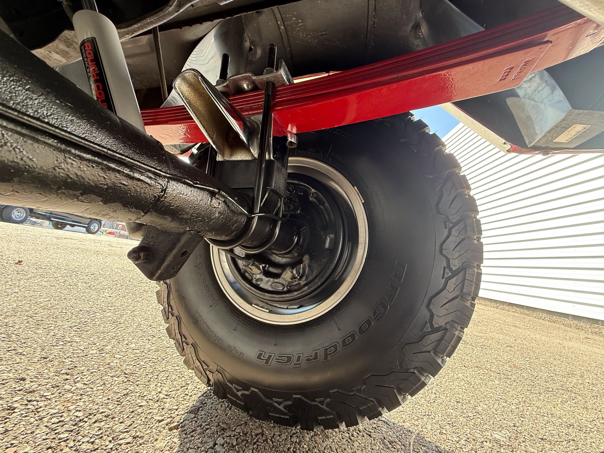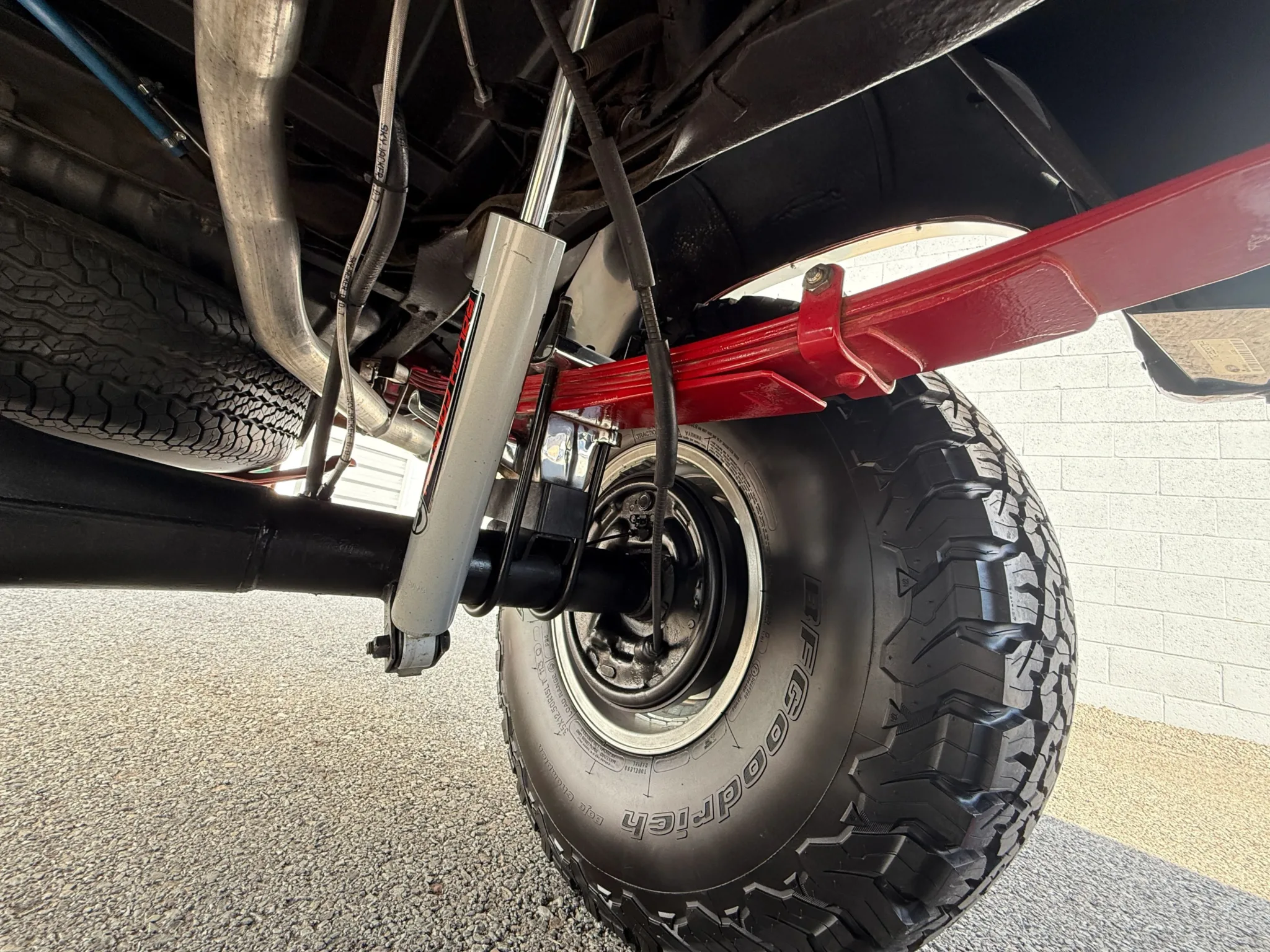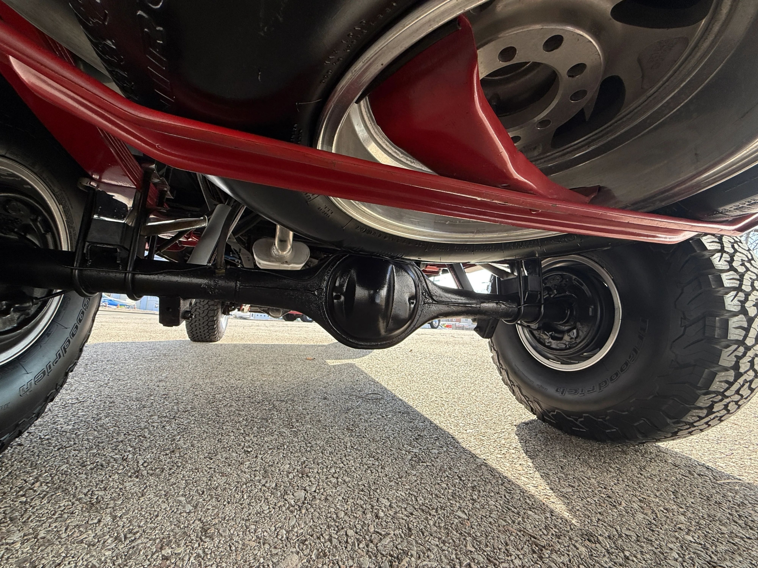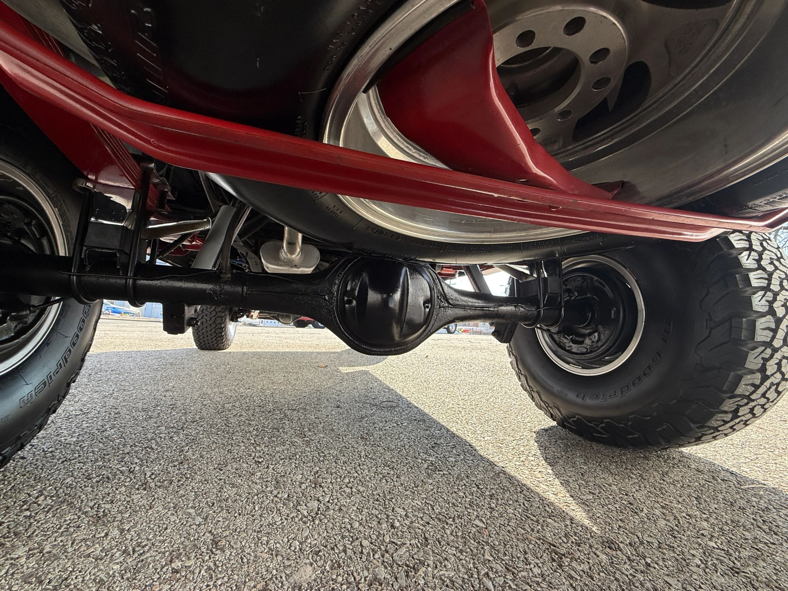 This 1977 Ford F-150 is a masterfully executed restoration that blends classic 4×4 ruggedness with modern heavy-duty power, featuring a 7.3L Godzilla V8 engine paired with a 10-speed automatic transmission. Towering on a 6-inch lift and 35-inch BFG all-terrain tires, the trucks aggressive stance is complemented by high-end details like chrome suspension components, custom aluminum wheels, and manual locking hubs for true four-wheel-drive capability. The cabin is equally impressive, offering a refined driving experience with custom leather bench seat, a Blackwood steering wheel, Dakota Digital gauges, and factory air conditioning. With modern disc brakes and power steering to manage its massive torque, this pickup is a high-performance showpiece built for both the street and the trail.