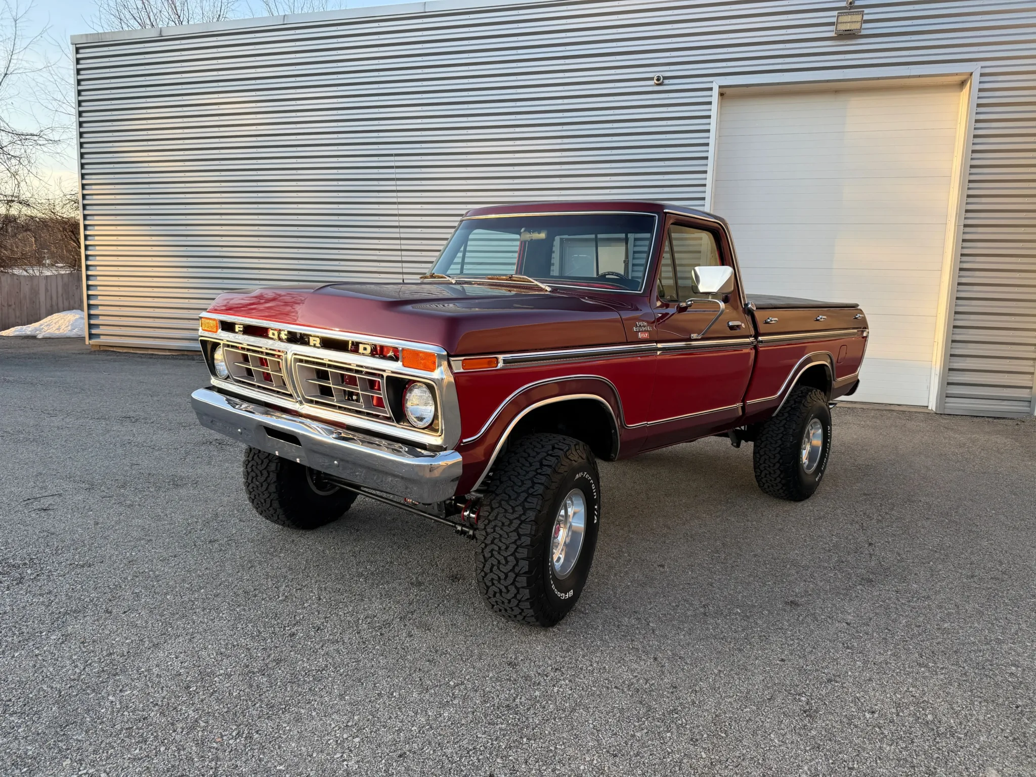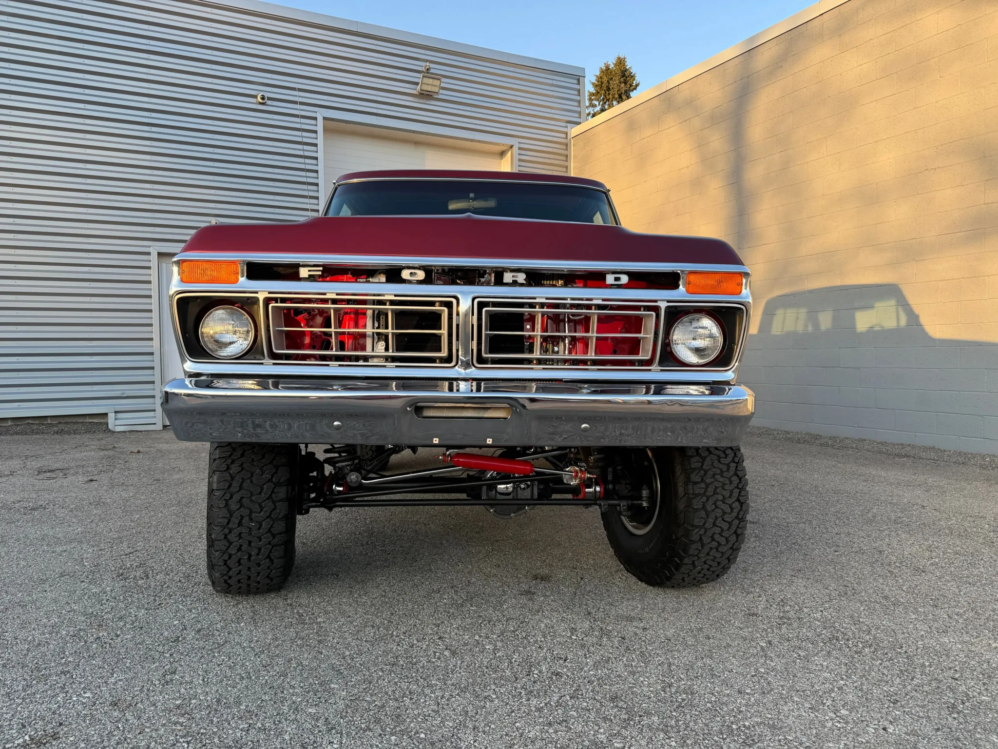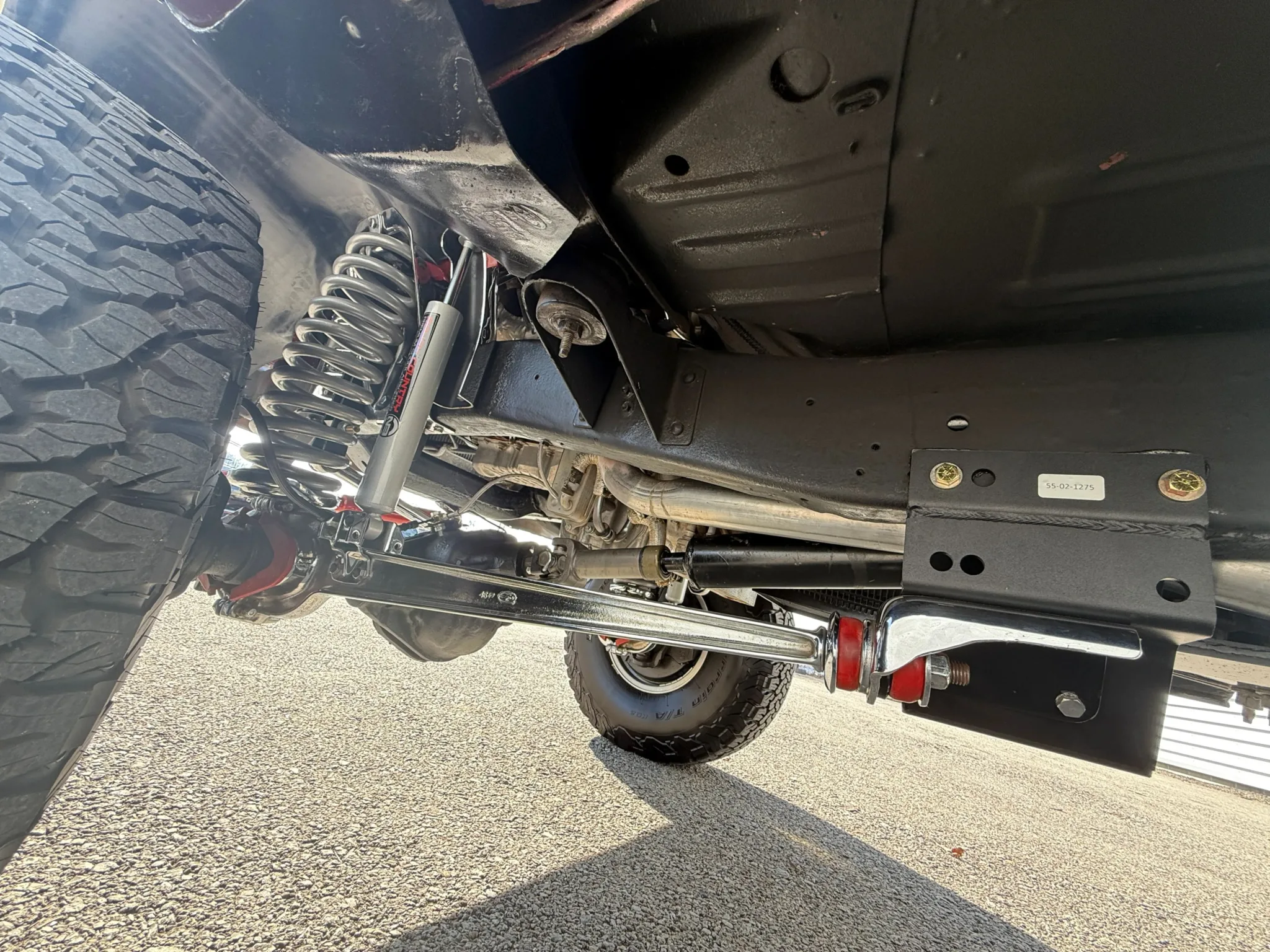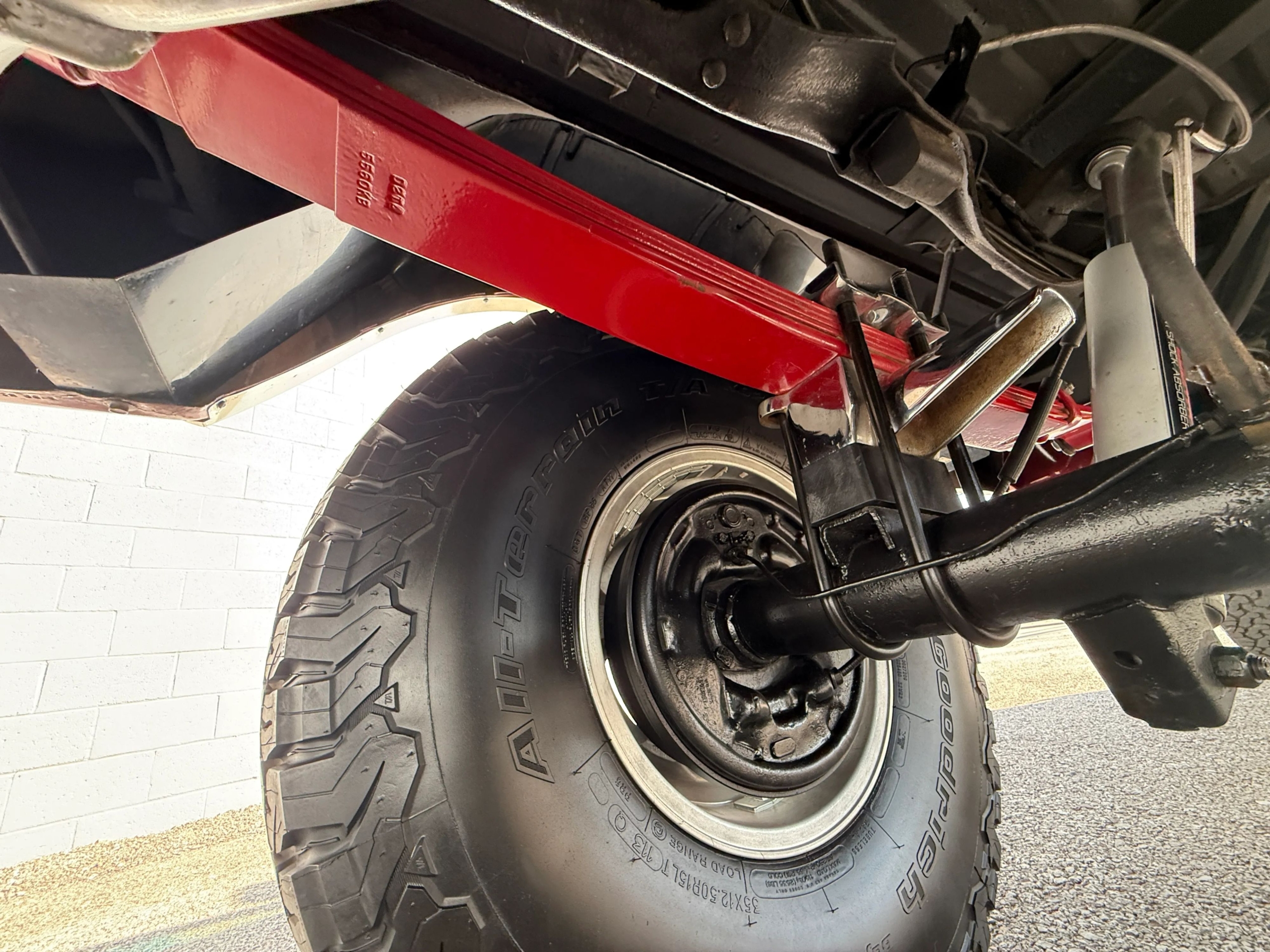 This 1977 Ford F-150 is a masterfully executed restoration that blends classic 4×4 ruggedness with modern heavy-duty power, featuring a 7.3L Godzilla V8 engine paired with a 10-speed automatic transmission. Towering on a 6-inch lift and 35-inch BFG all-terrain tires, the trucks aggressive stance is complemented by high-end details like chrome suspension components, custom aluminum wheels, and manual locking hubs for true four-wheel-drive capability. The cabin is equally impressive, offering a refined driving experience with custom leather bench seat, a Blackwood steering wheel, Dakota Digital gauges, and factory air conditioning. With modern disc brakes and power steering to manage its massive torque, this pickup is a high-performance showpiece built for both the street and the trail.