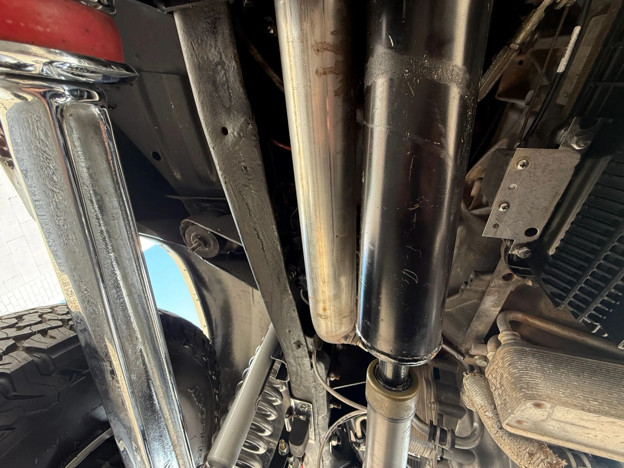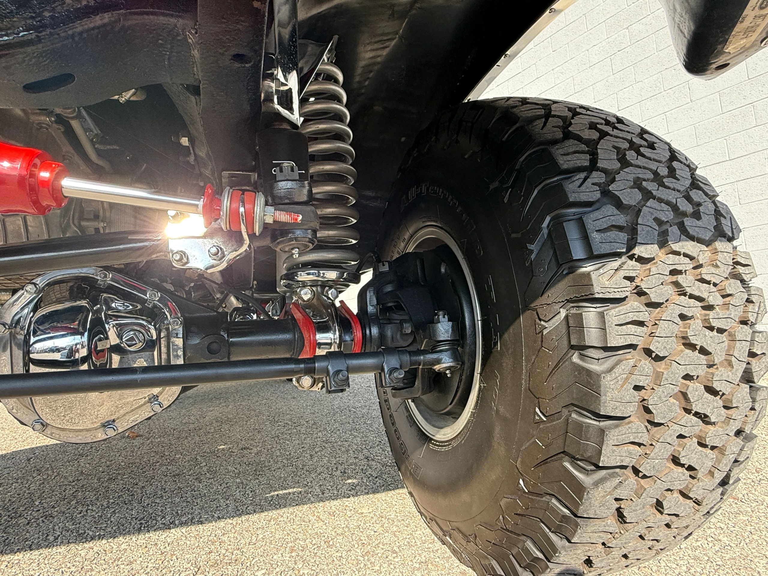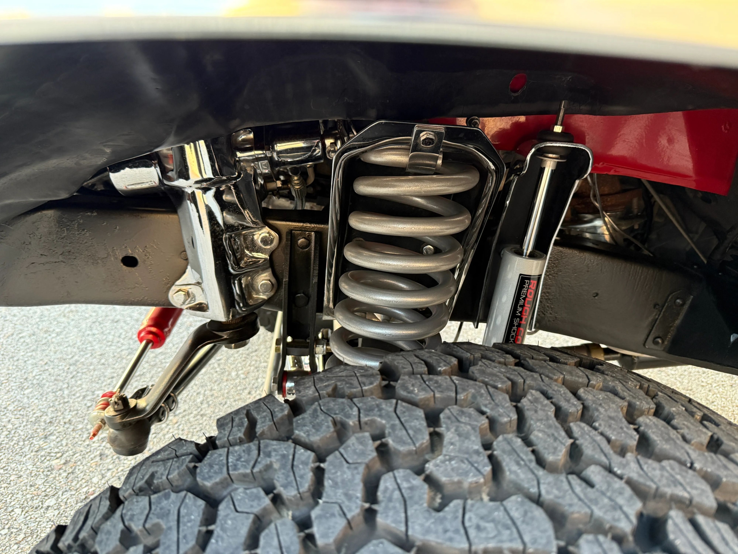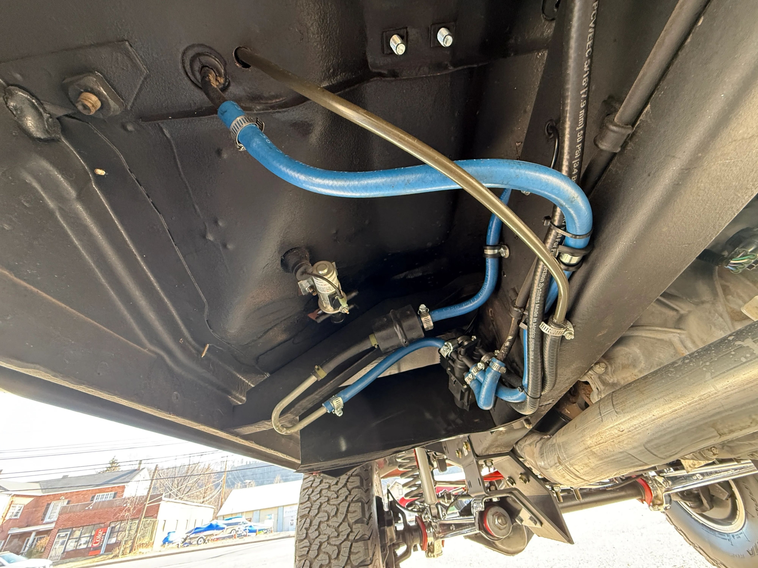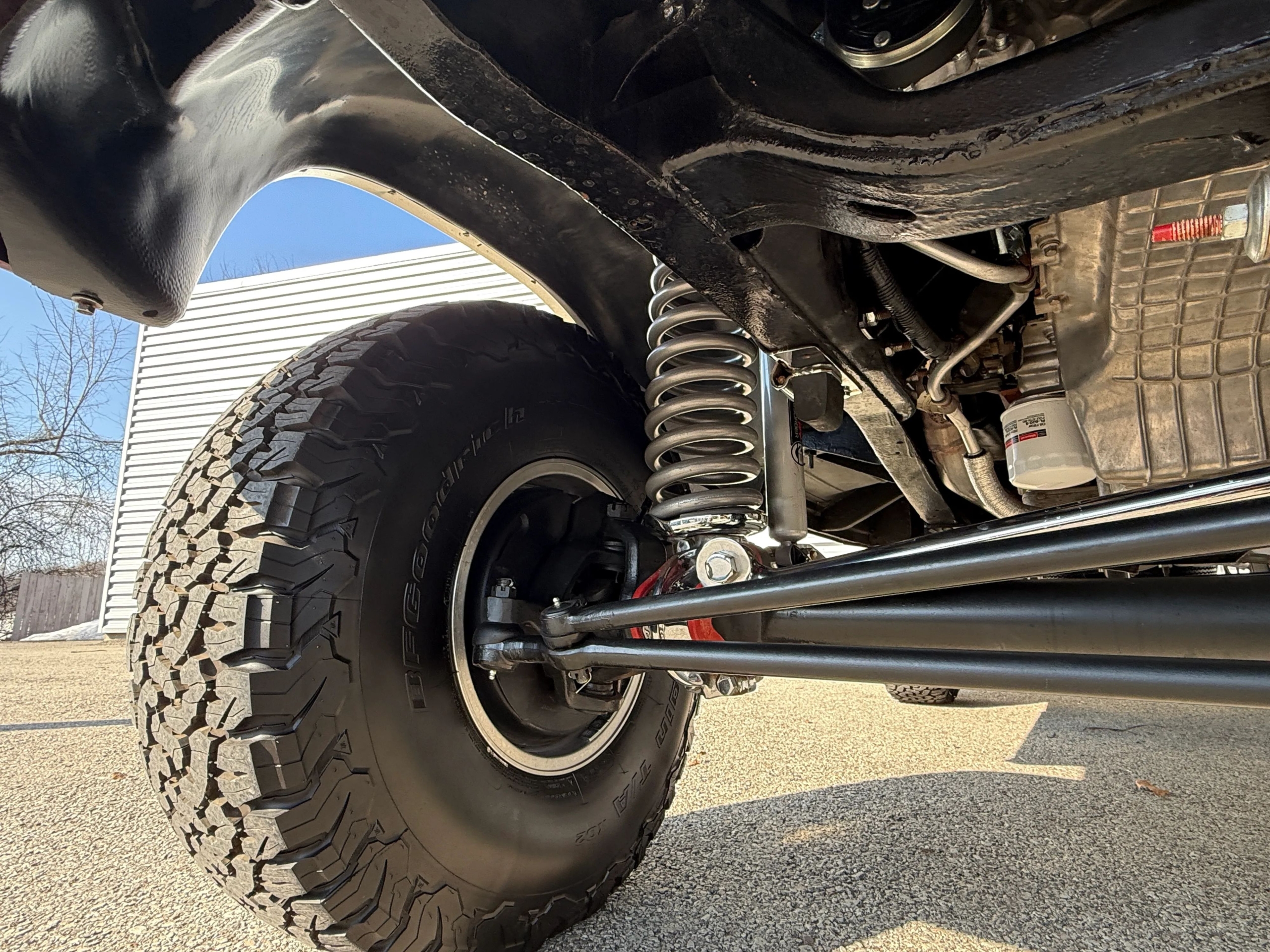 This 1977 Ford F-150 is a masterfully executed restoration that blends classic 4×4 ruggedness with modern heavy-duty power, featuring a 7.3L Godzilla V8 engine paired with a 10-speed automatic transmission. Towering on a 6-inch lift and 35-inch BFG all-terrain tires, the trucks aggressive stance is complemented by high-end details like chrome suspension components, custom aluminum wheels, and manual locking hubs for true four-wheel-drive capability. The cabin is equally impressive, offering a refined driving experience with custom leather bench seat, a Blackwood steering wheel, Dakota Digital gauges, and factory air conditioning. With modern disc brakes and power steering to manage its massive torque, this pickup is a high-performance showpiece built for both the street and the trail.