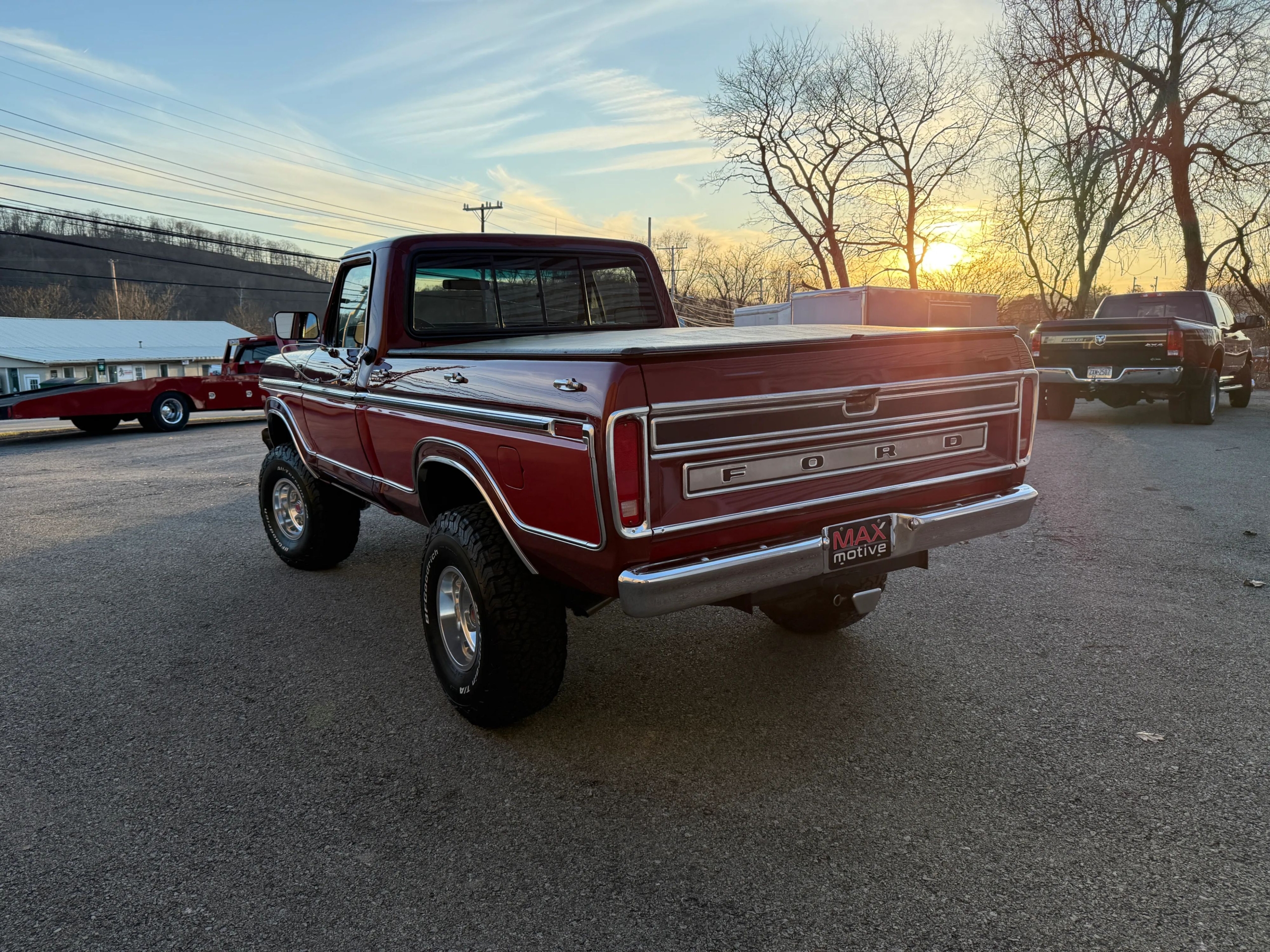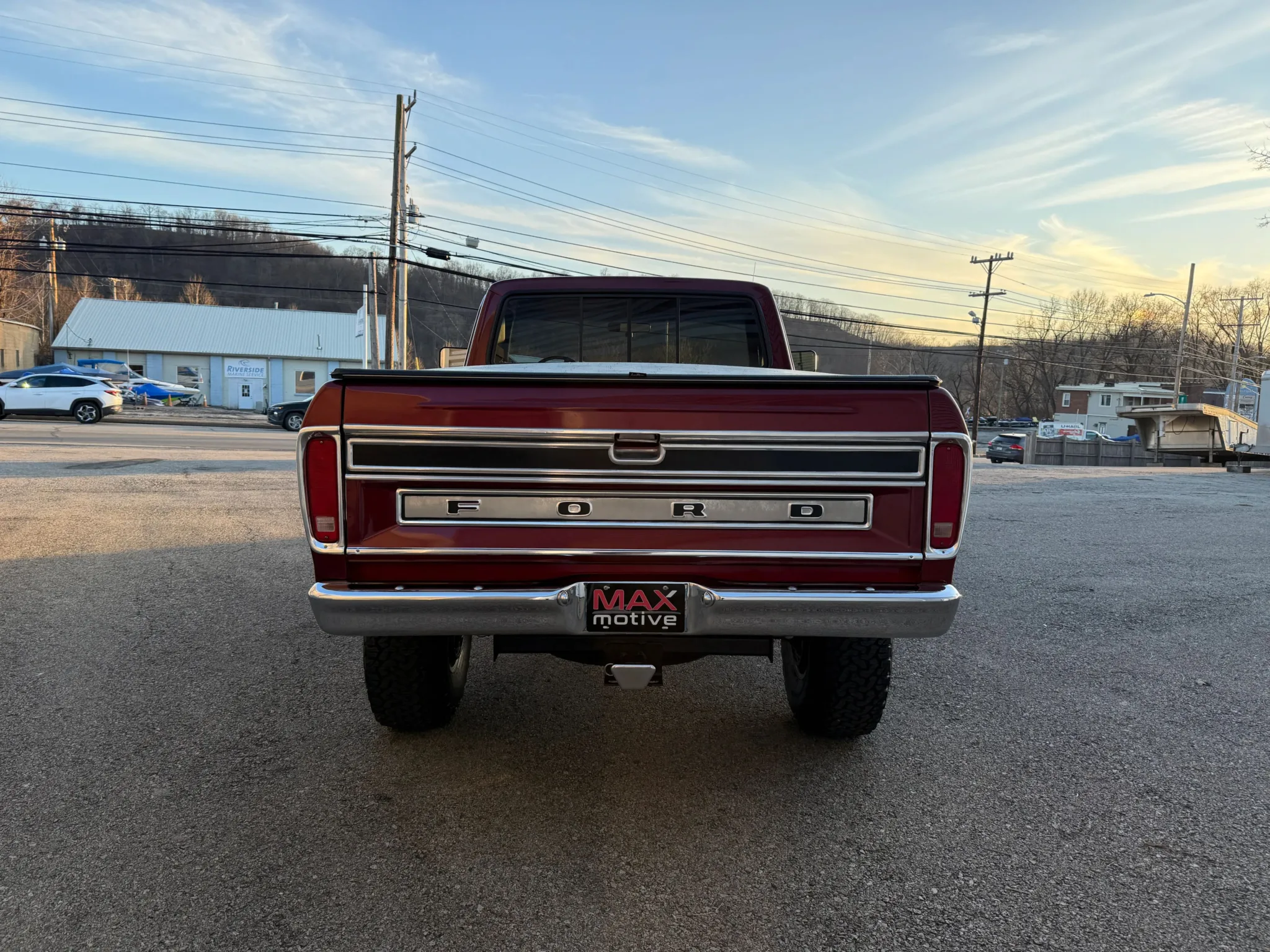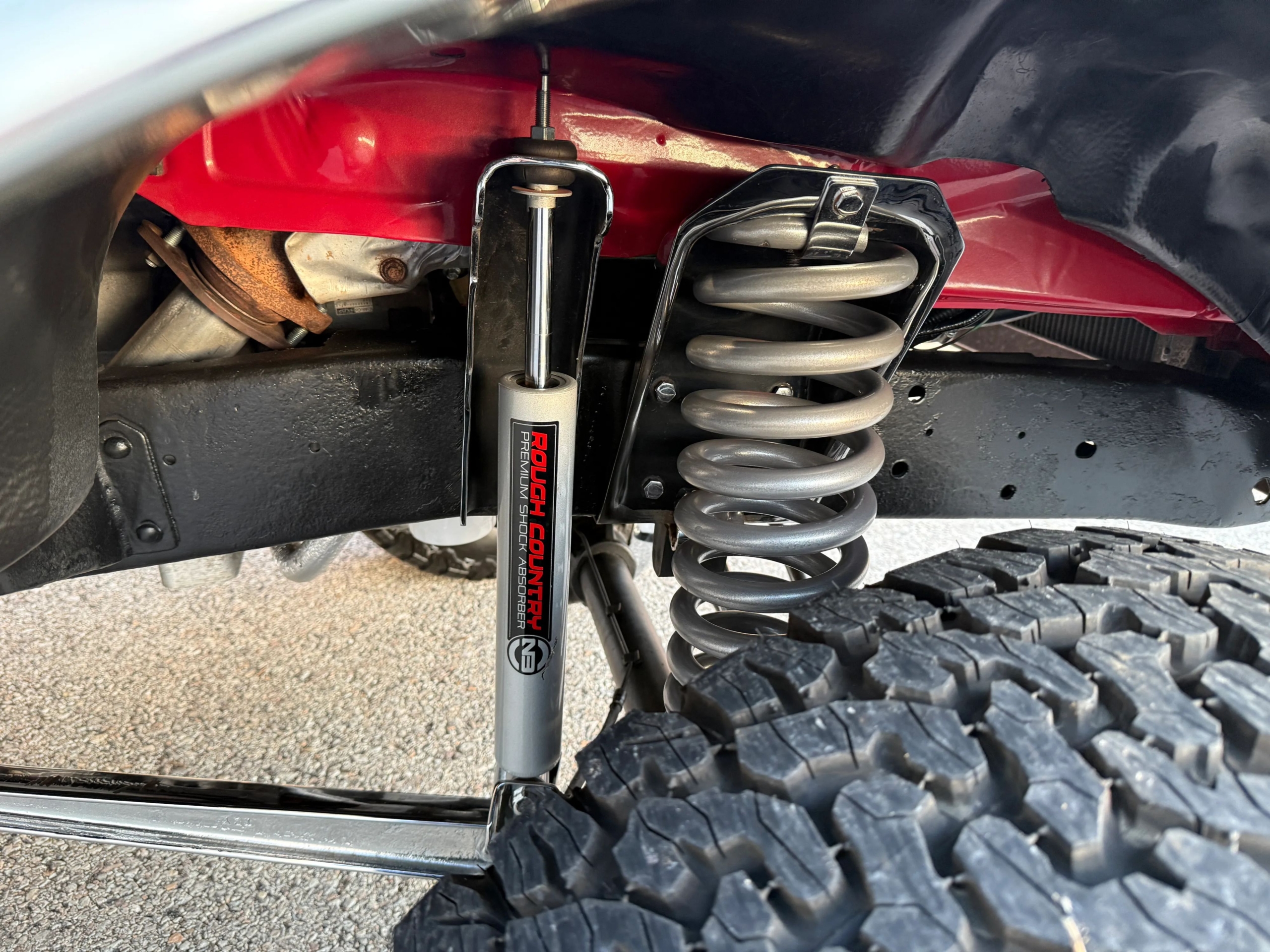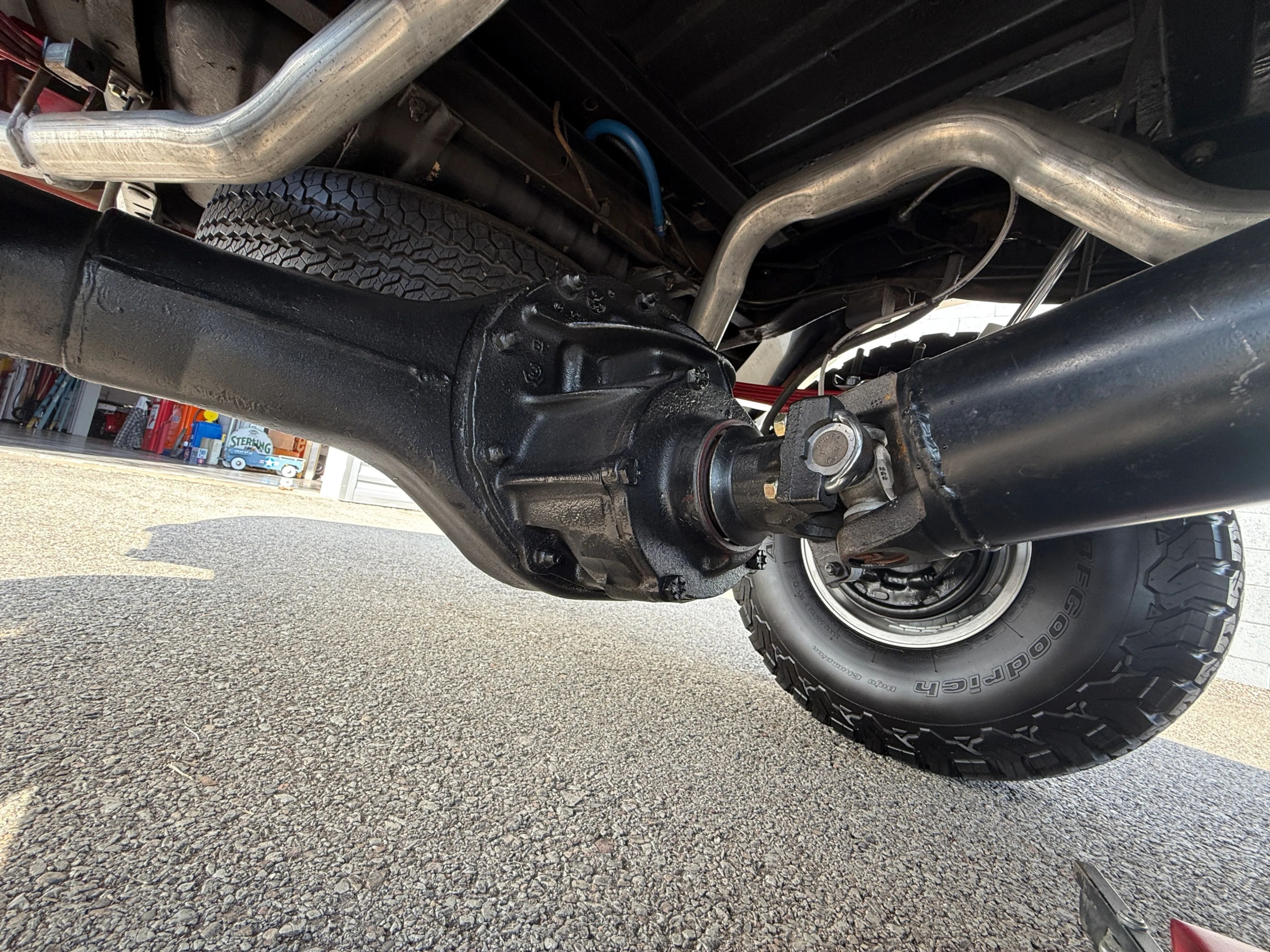 This 1977 Ford F-150 is a masterfully executed restoration that blends classic 4×4 ruggedness with modern heavy-duty power, featuring a 7.3L Godzilla V8 engine paired with a 10-speed automatic transmission. Towering on a 6-inch lift and 35-inch BFG all-terrain tires, the trucks aggressive stance is complemented by high-end details like chrome suspension components, custom aluminum wheels, and manual locking hubs for true four-wheel-drive capability. The cabin is equally impressive, offering a refined driving experience with custom leather bench seat, a Blackwood steering wheel, Dakota Digital gauges, and factory air conditioning. With modern disc brakes and power steering to manage its massive torque, this pickup is a high-performance showpiece built for both the street and the trail.