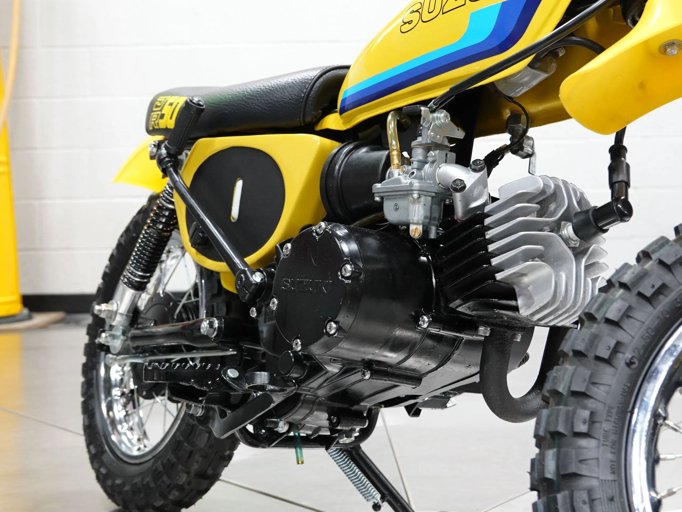 This beautiful 1978 Suzuki JR50 has been lovingly restored using OEM components, and its now available from the MAXmotive Pittsburgh Showroom. The bright Phlolina Yellow paint and chrome wheels really shine. Black accents include the seat, grips, and the engine itself. The correct blue graphics provide contrast and a performance look. The engine is an air-cooled 49cc two-stroke combined with a single speed automatic transmission that makes operating the bike simple and fun. New knobby tires work great on turf or trail. The JR50 was the smallest Suzuki model made up to 1978, and its just right for a variety of fun uses. Sold on Bill of Sale. See detailed photos at www.maxmotive.com.