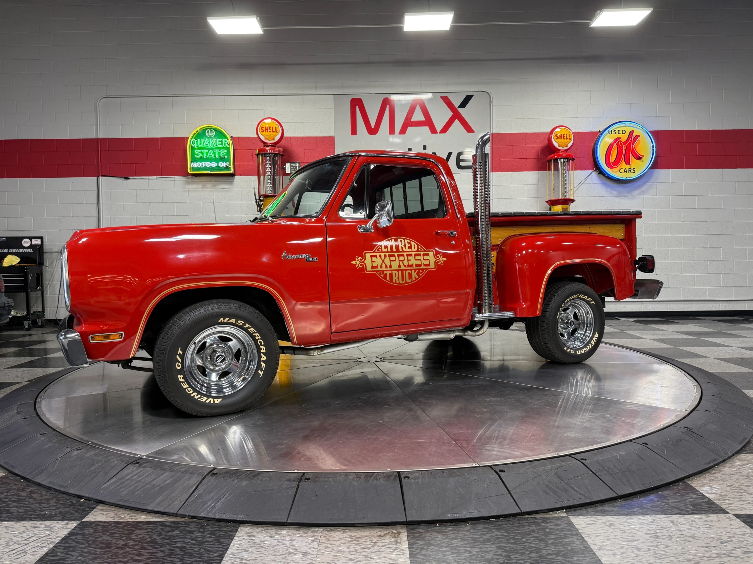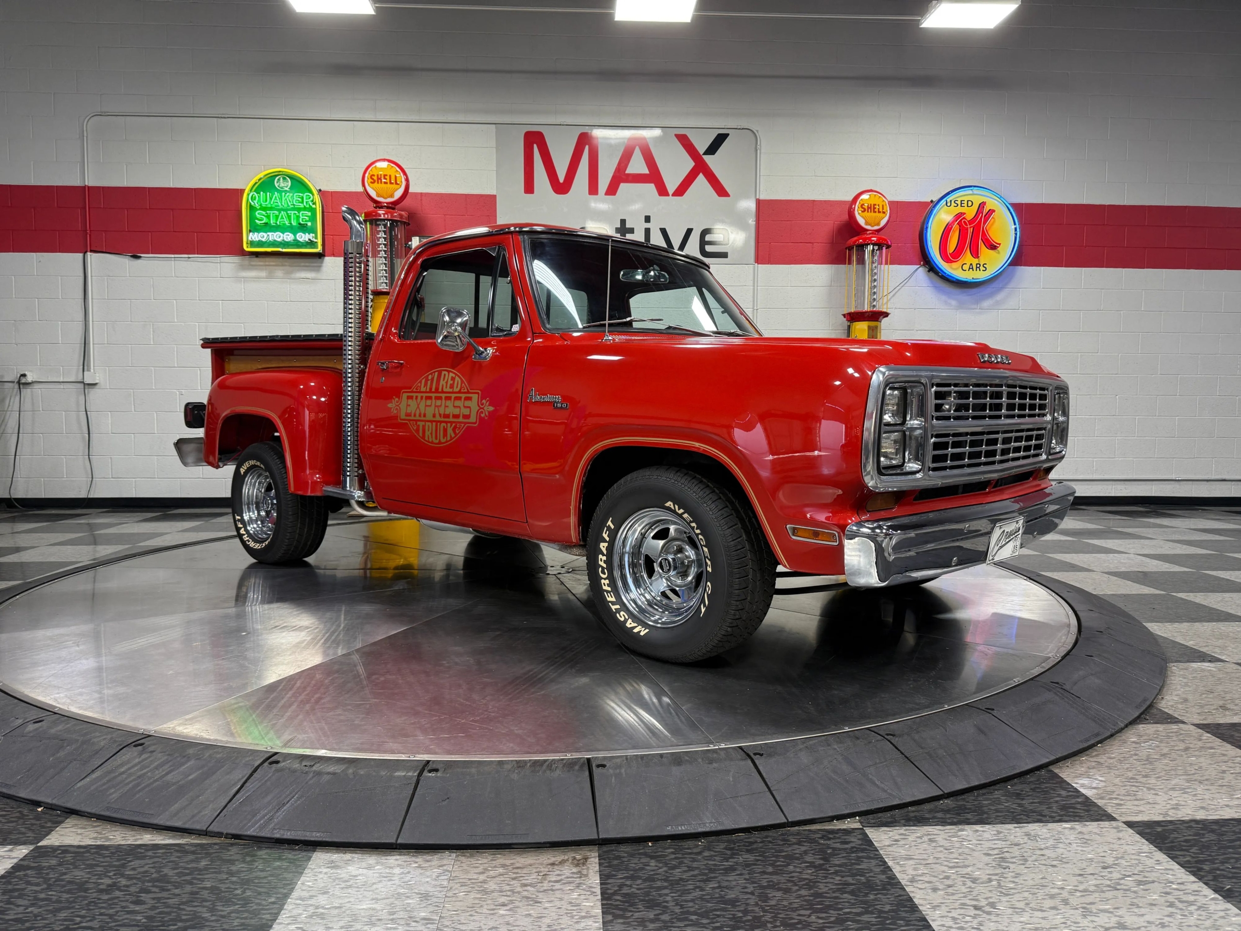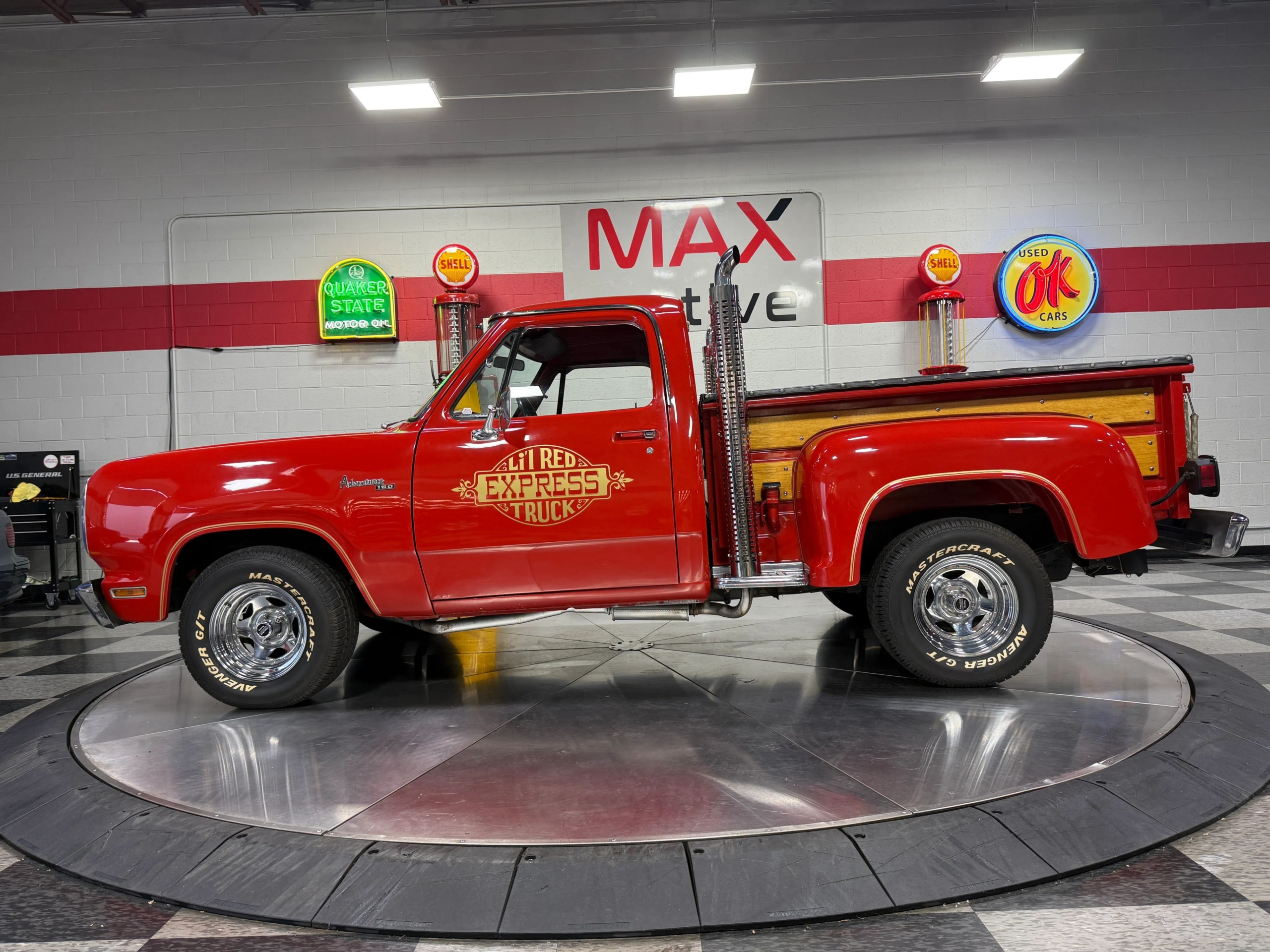 Maxmotive is proud to offer this rare, limited edition run 1979 Dodge D150 Lil Red Express truck. These awesome trucks were manufactured for two years, 1978 and 1979. This 1979 version is one of 5,118 made in 1979. In 1979 there were some appearance upgrades compared to the 1978 models. This 1979 Lil Red Express has the flat hood and dual square headlights versus the 1978 models. The D150 is powered by a 5.9L 360 V-8 engine, paired to a 727 3 speed automatic transmission. The exterior of the truck is distinctly set off by the gold lettering, wood paneling on the bed side and tail gate, and the iconic vertical exhaust stacks. Chrome front and rear bumpers match the side stack exhaust. The inside cabin has the 85 MPH speedometer that debuted in 1979. A red bench seat, paired to red door panels completes the trucks beautifully appointed age appropriate interior. A class three trailer hitch means, this truck is not only a showstopper, but ready to tow that trailer for you as well. For more pictures and information please visit our website at www.maxmotive.com