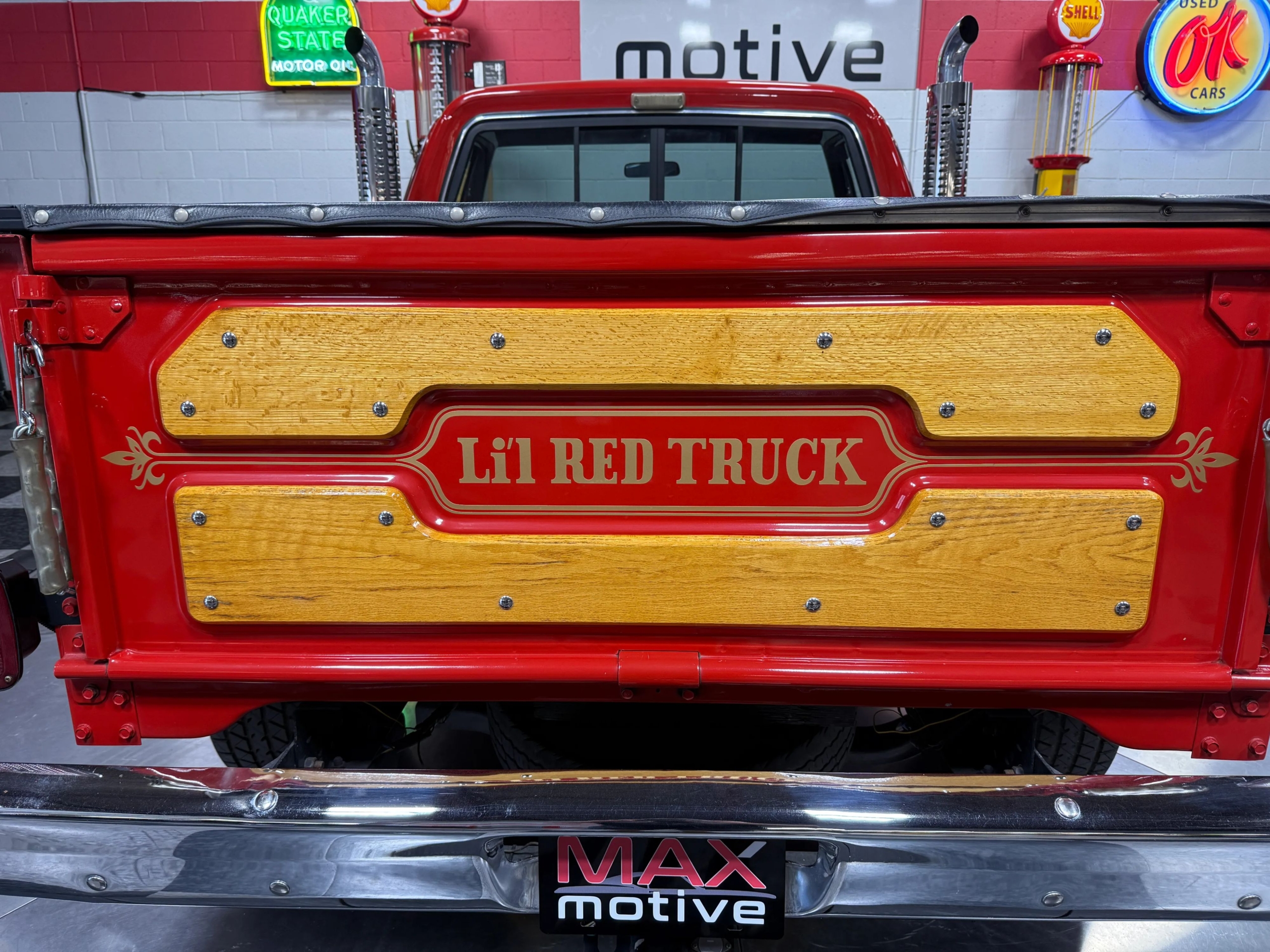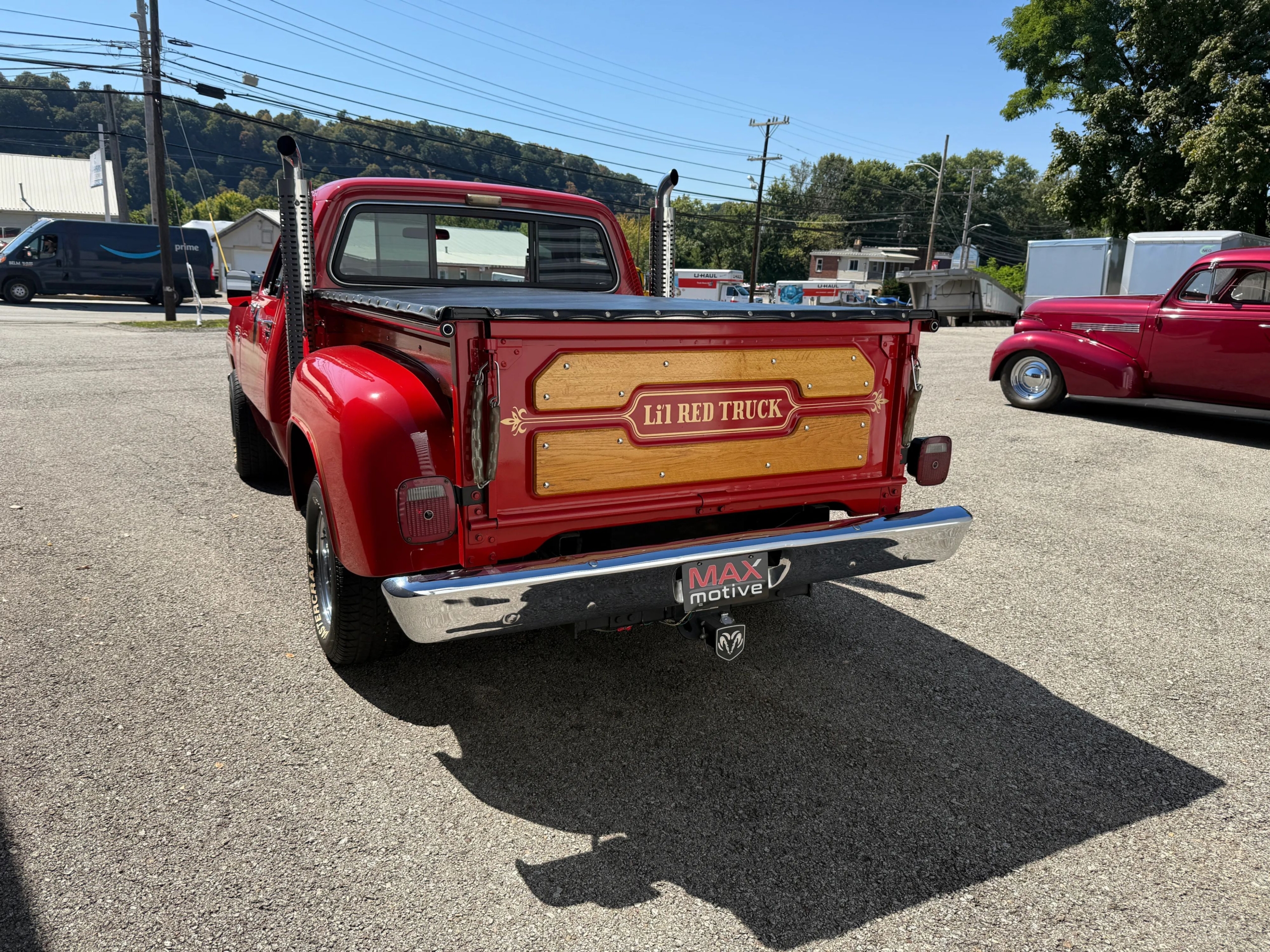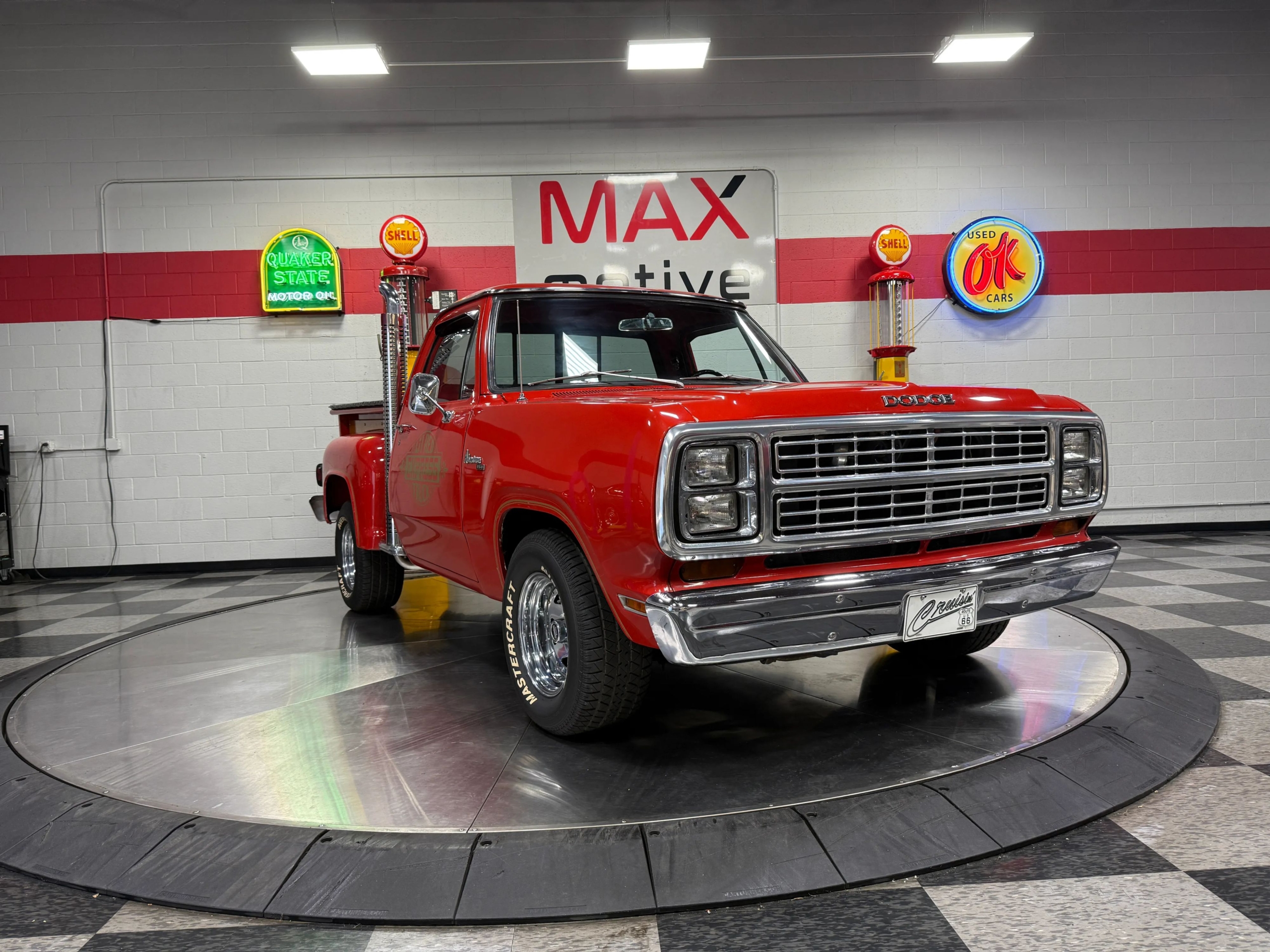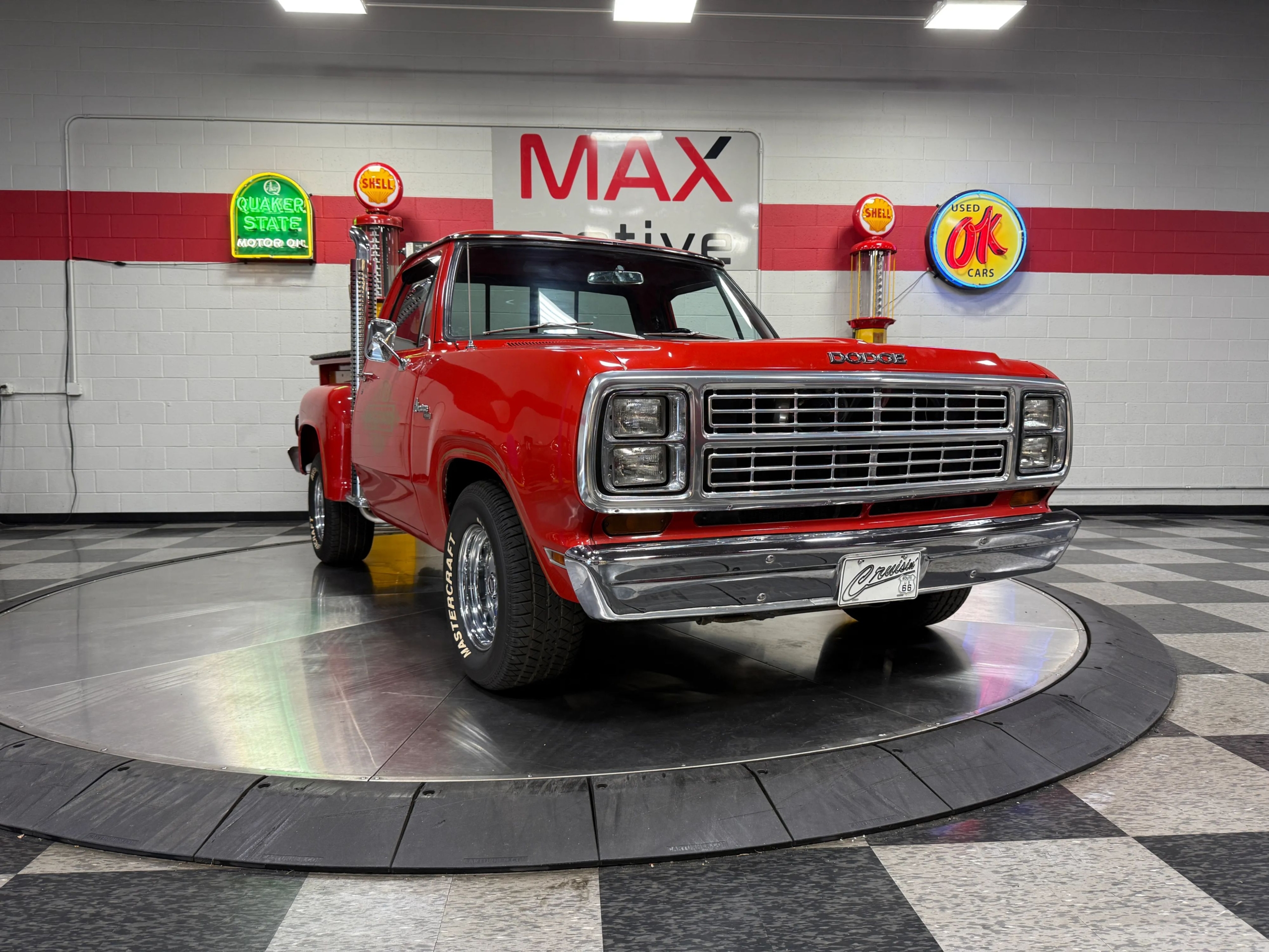 Maxmotive is proud to offer this rare, limited edition run 1979 Dodge D150 Lil Red Express truck. These awesome trucks were manufactured for two years, 1978 and 1979. This 1979 version is one of 5,118 made in 1979. In 1979 there were some appearance upgrades compared to the 1978 models. This 1979 Lil Red Express has the flat hood and dual square headlights versus the 1978 models. The D150 is powered by a 5.9L 360 V-8 engine, paired to a 727 3 speed automatic transmission. The exterior of the truck is distinctly set off by the gold lettering, wood paneling on the bed side and tail gate, and the iconic vertical exhaust stacks. Chrome front and rear bumpers match the side stack exhaust. The inside cabin has the 85 MPH speedometer that debuted in 1979. A red bench seat, paired to red door panels completes the trucks beautifully appointed age appropriate interior. A class three trailer hitch means, this truck is not only a showstopper, but ready to tow that trailer for you as well. For more pictures and information please visit our website at www.maxmotive.com