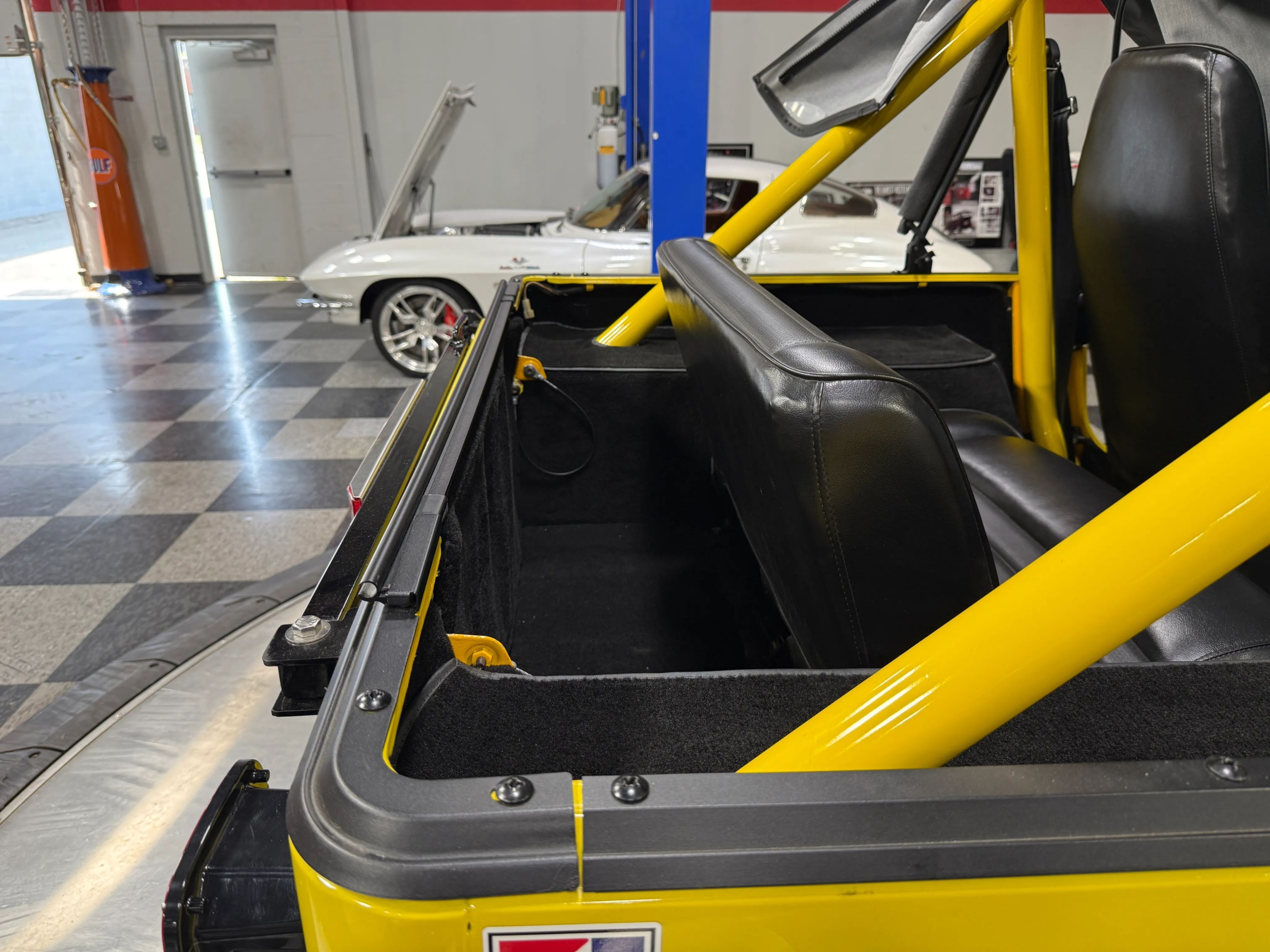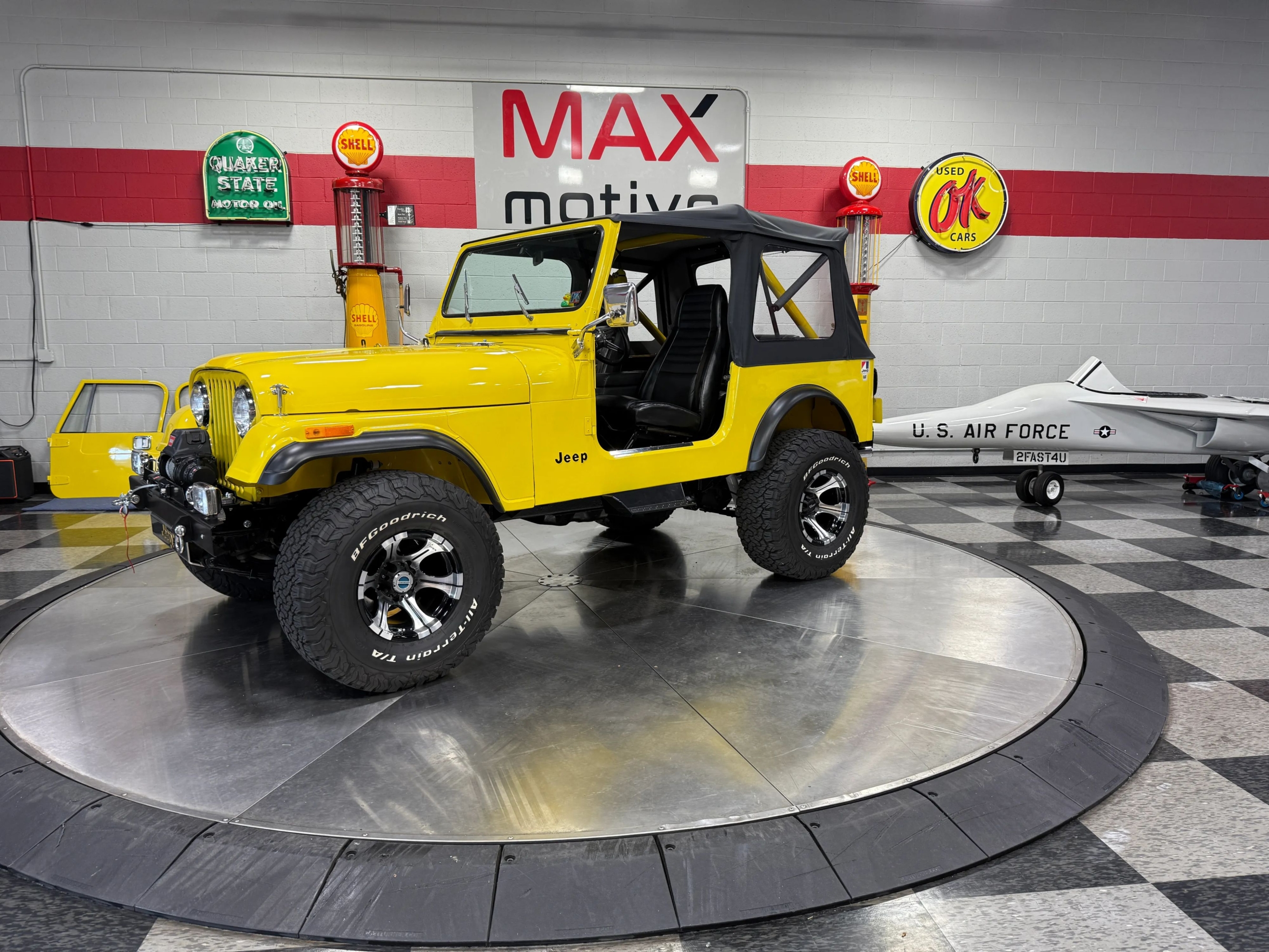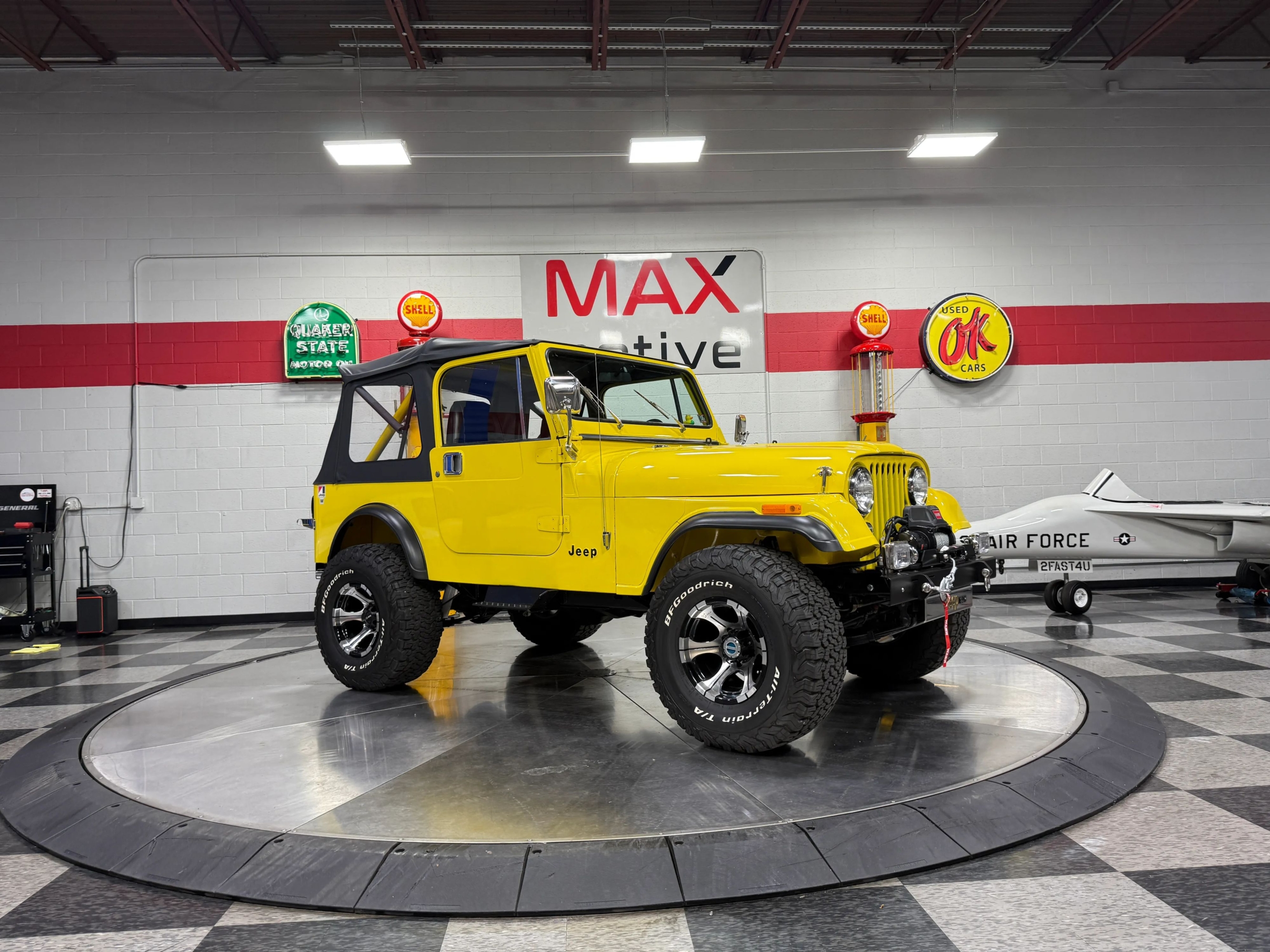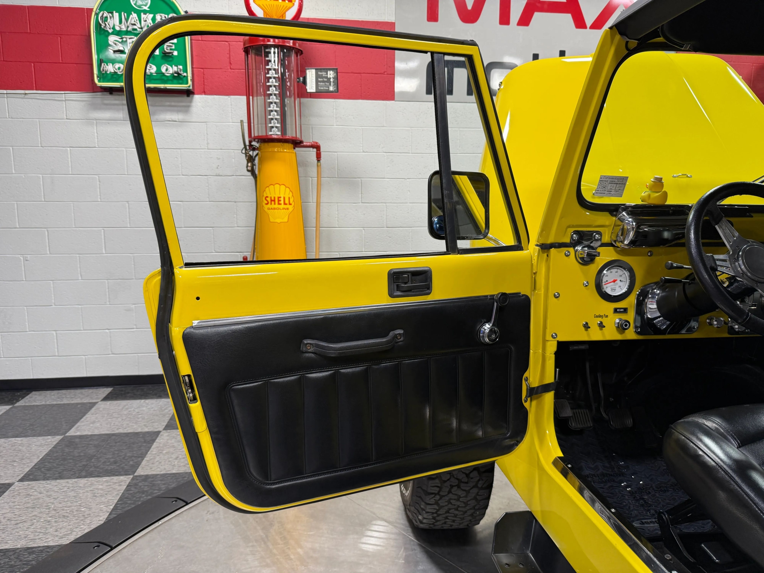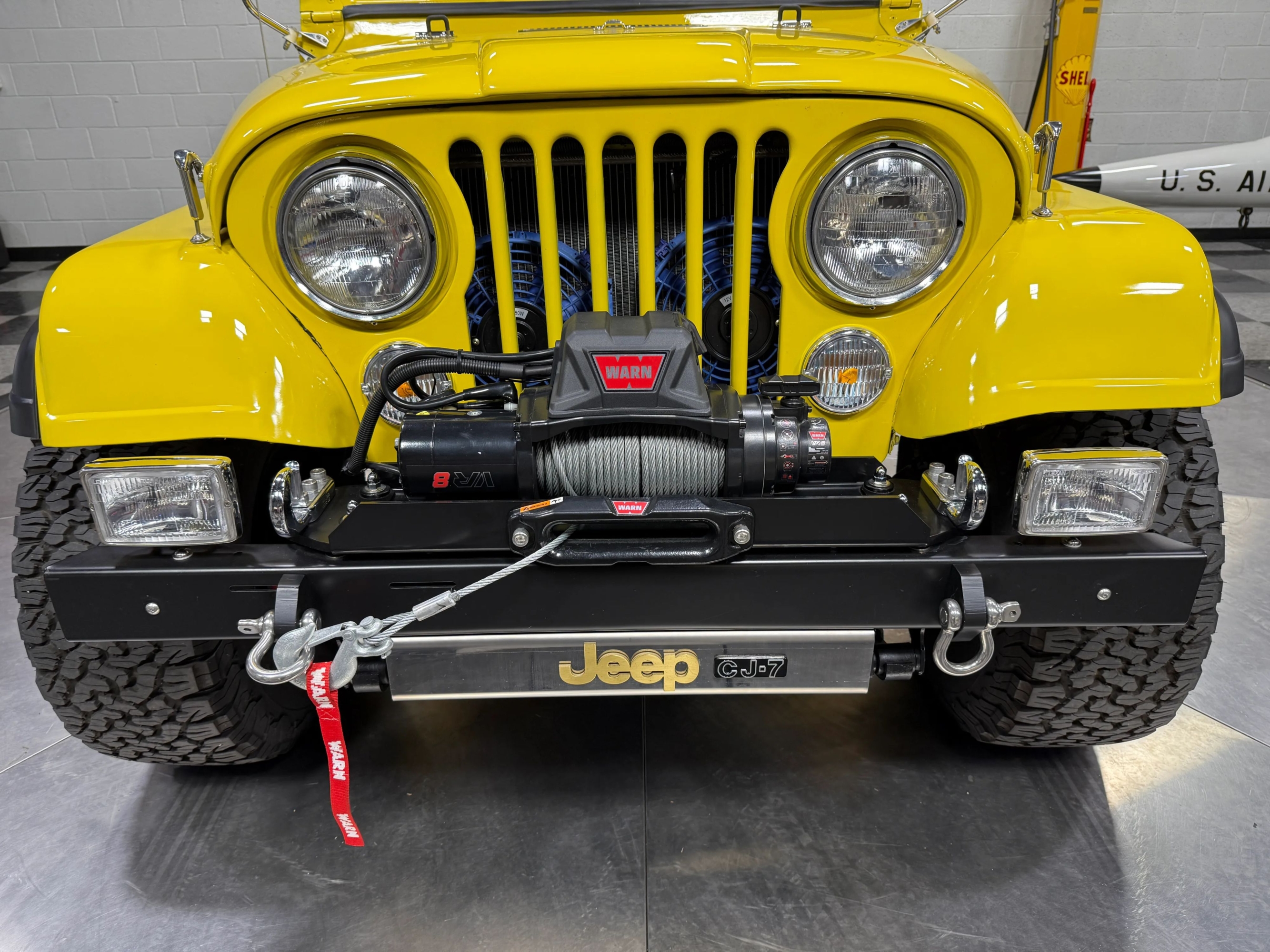 Maxmotive is proud to offer this 1979 Jeep CJ-7. Super clean Jeep, beautifully adorned in a beautiful yellow paint. The Jeep is powered by a 360 V-8 (how all Jeeps should have come from the factory!) The power is driven through a 5 speed manual transmission paired with a manual selectable 4×4 transfer case. The Jeep has a steel body, riding nicely on Dick Cepek 15 aluminum wheels. A dual exhaust underneath the CJ-7 rumbles nicely through a pair of Magnaflow mufflers. As clean as this Jeep is, you can tell it has not been off roading since the fresh paint job. The steel inner wheel wells are in great shape. But if you choose to take her off-road, a front bumper mounted Warn winch is ready to assist.