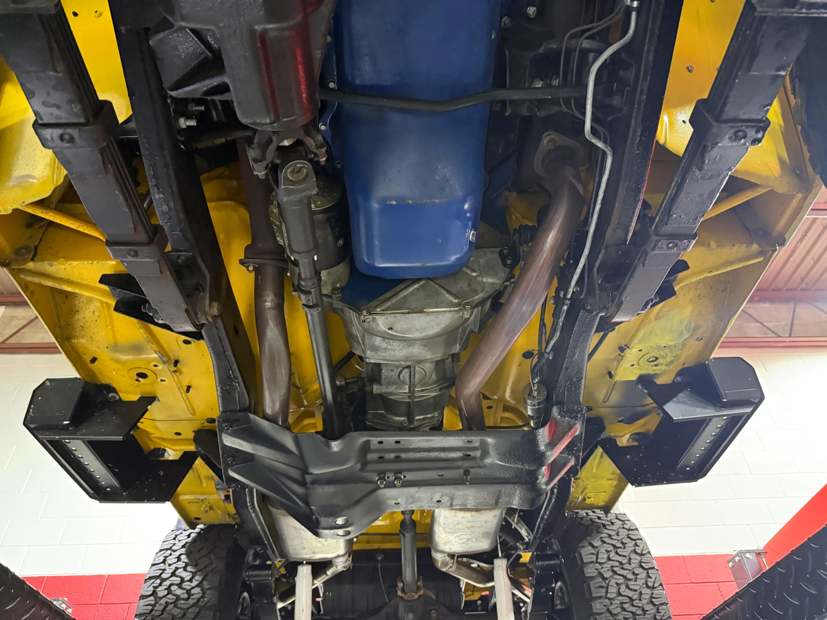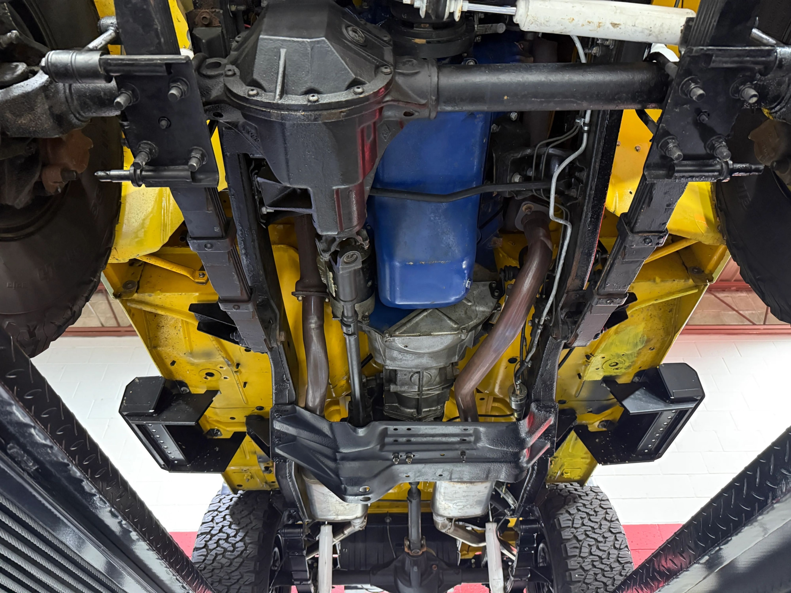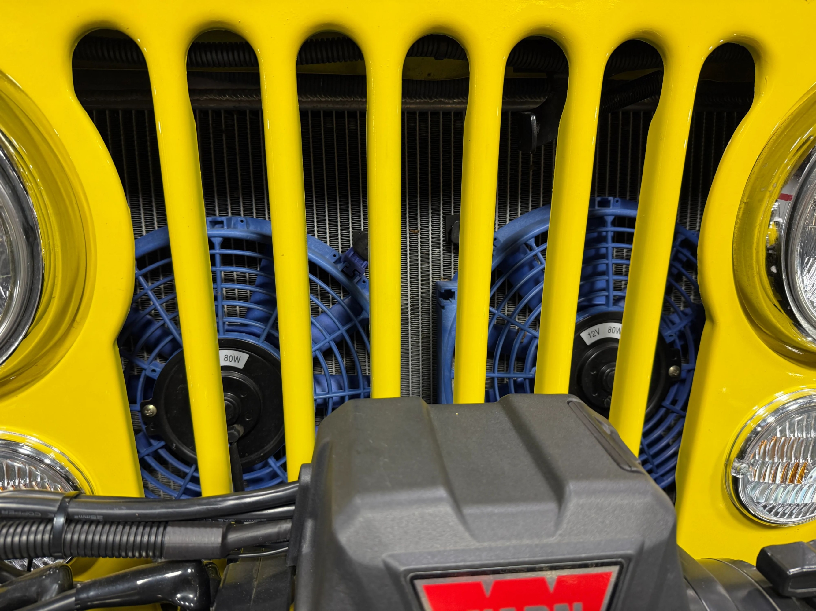 Aftermarket LED front and rear lights will assist, or light up the pavement for you. New carpet has been added to the Jeep, and the like new top has only been down two times since it was installed. It is noted, the Jeep does have a seep from the rear main when parked for a few days. This Jeep was treated to an exterior paint job. The engine bay and underside of the Jeep are a different shade of yellow than the exterior. Fuel gauge on the dash is not calibrated. For more pictures or video, please check our website at www.maxmotive.com